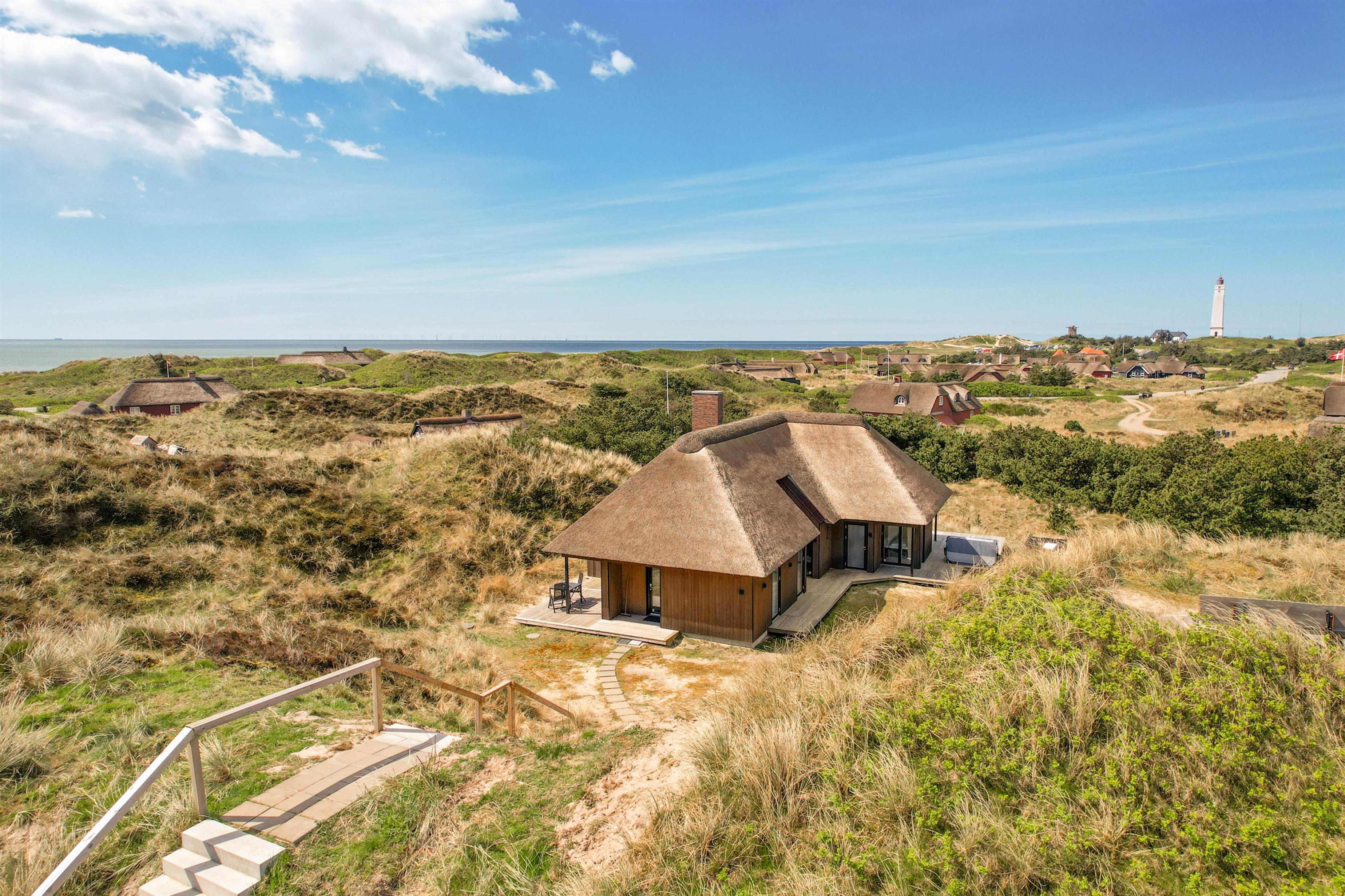 På Klitvej 9 i Blåvand venter jer en afslappende ferie i dette fantastiske, stilfulde og i 2022 nybyggede sommerhus med plads til 6 personer. Fra huset er der kun 200 meter til de brede klitter og den hvide badestrand. Med en udsigt direkte til Blåvandshuk Fyr får I her en uovertruffen beliggenhed midt i den vestjyske natur.