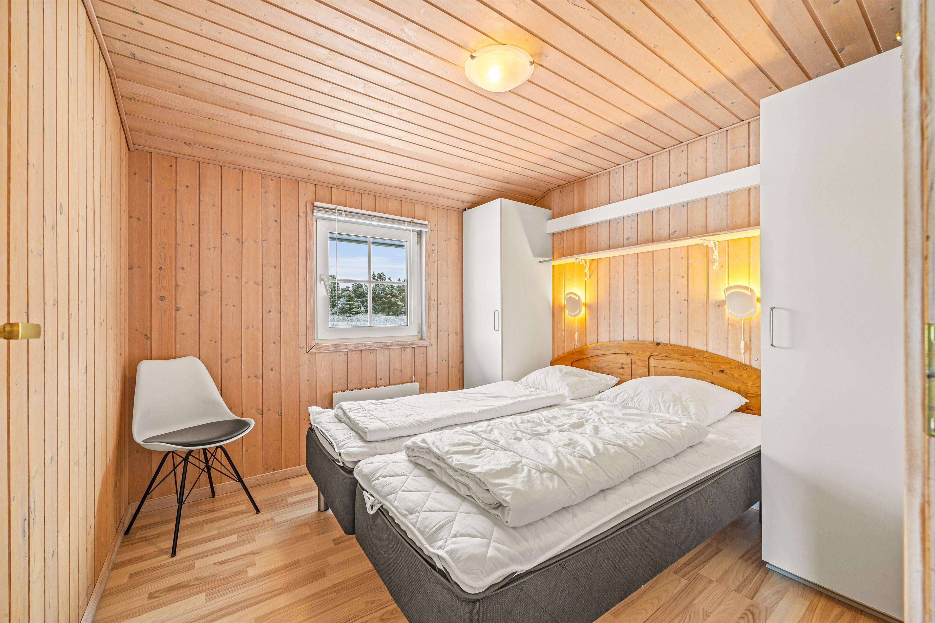 Sommerhuset har 6 værelser, der alle er praktisk placeret i den ene af feriehusets fløje. Der er komfortable dobbeltsenge på alle værelser, så I kan få en god nats søvn og samle energi til morgendagens ferieaktiviteter. I denne fløj finder I derudover det andet badeværelse, som desuden har både vaskemaskine og tørretumbler.