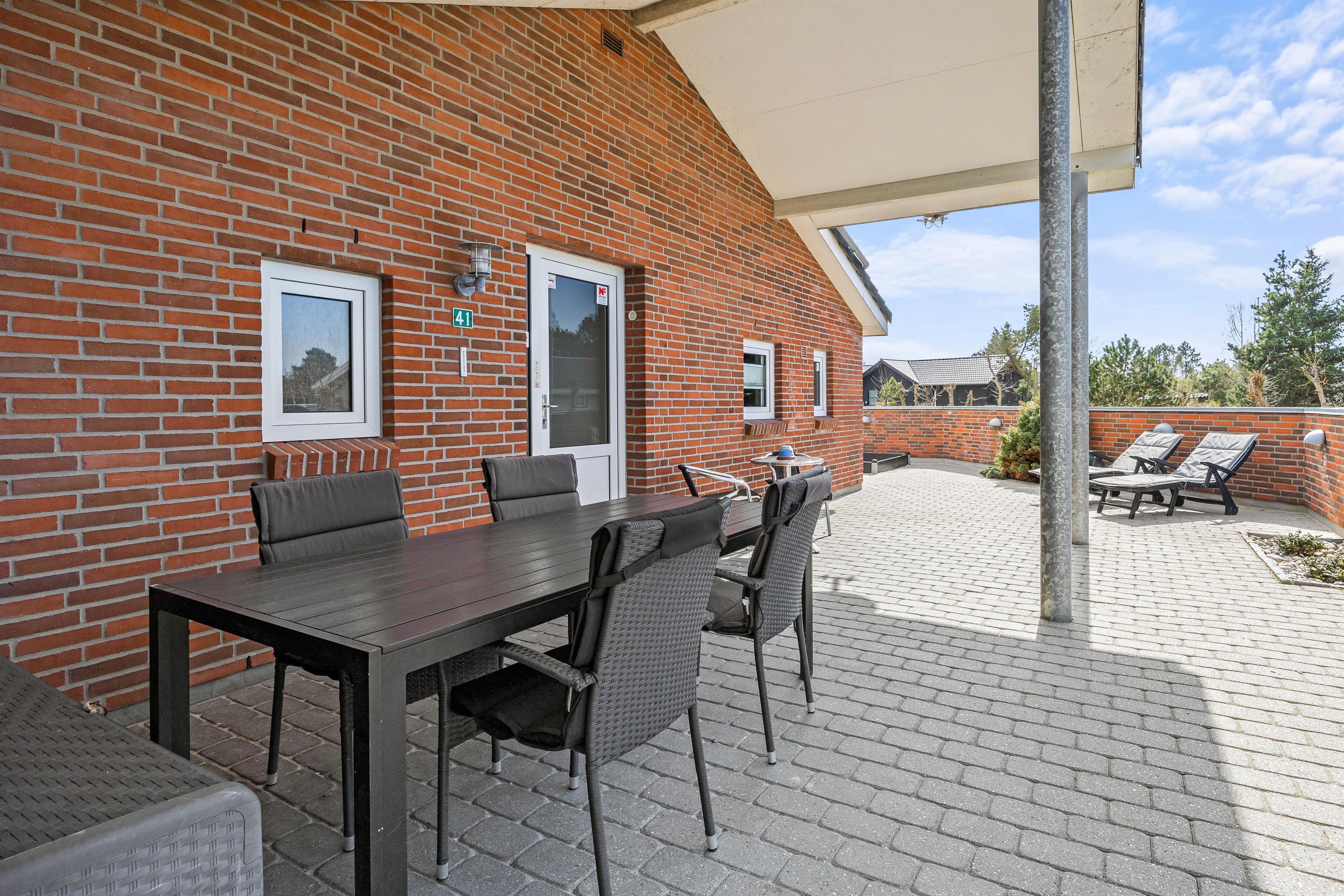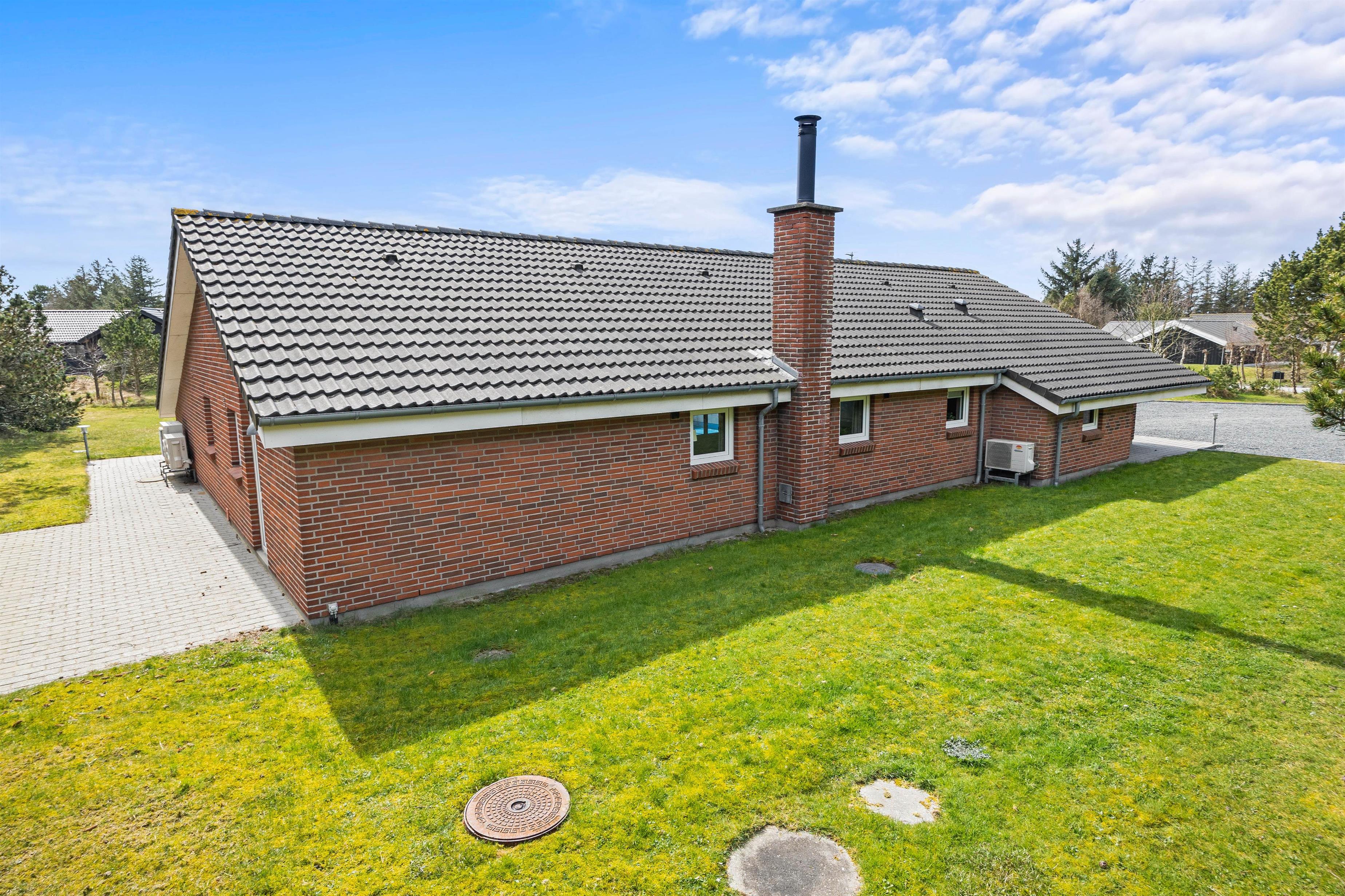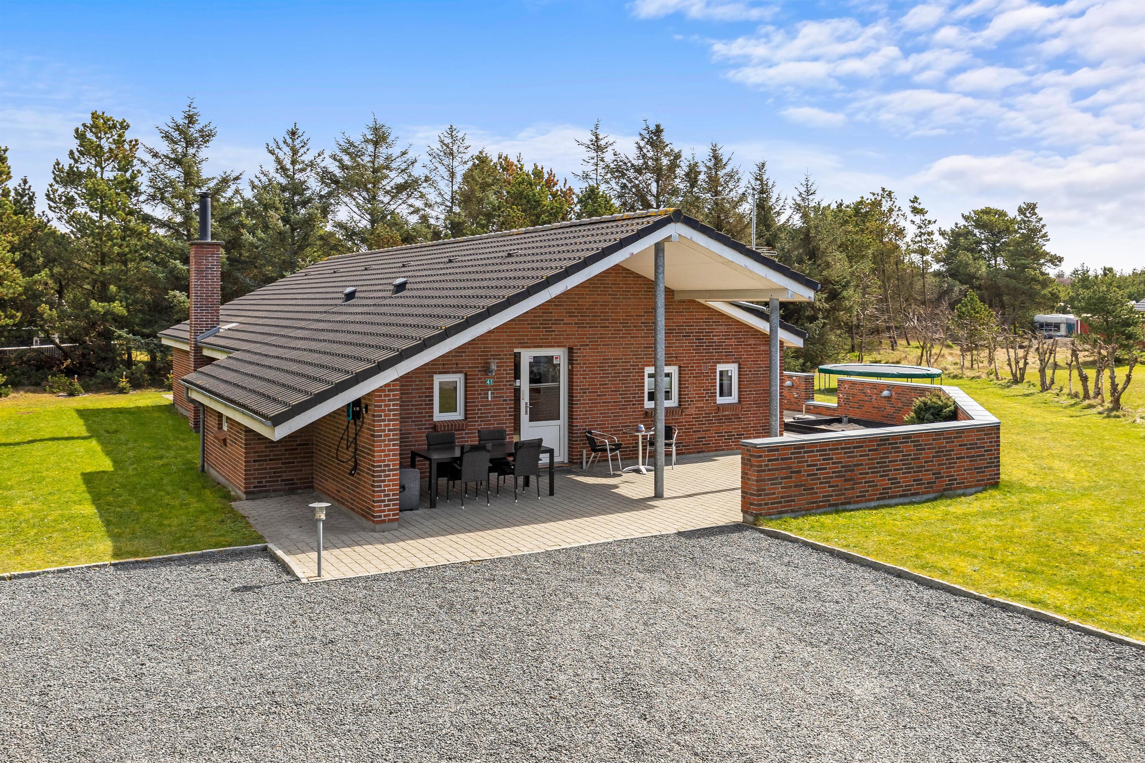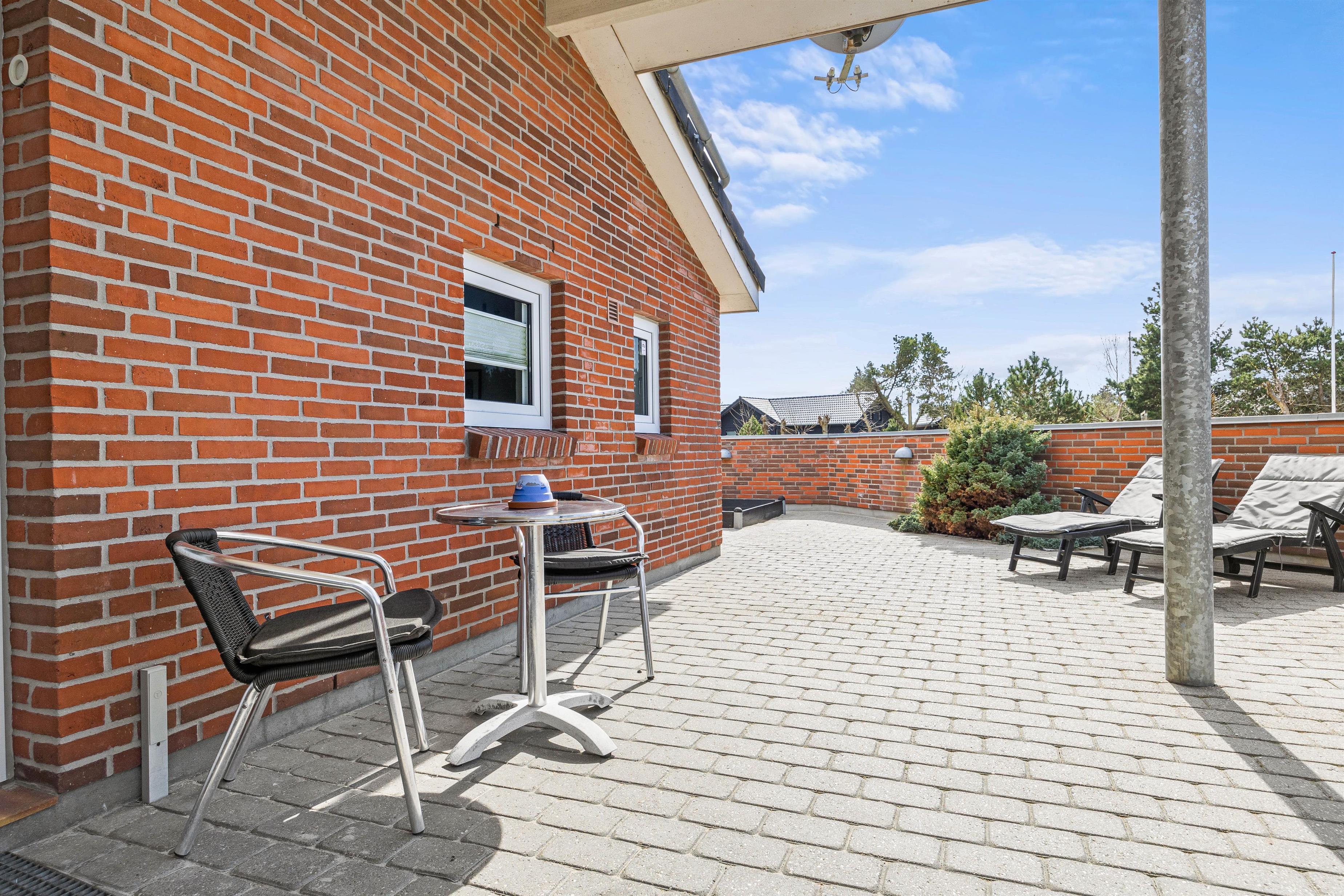 Sommerhuset, der kun ligger 800 meter fra stranden, er beliggende på en stor plænegrund og har en stor, afskærmet og delvist overdækket terrasse. Der står havemøbler og liggestole klar til jer, så I kan finde jer godt til rette på en god plet på terrassen. Desuden kan I takket være grillen spise en lækker grillmiddag på terrassen på de lune sommeraftener.