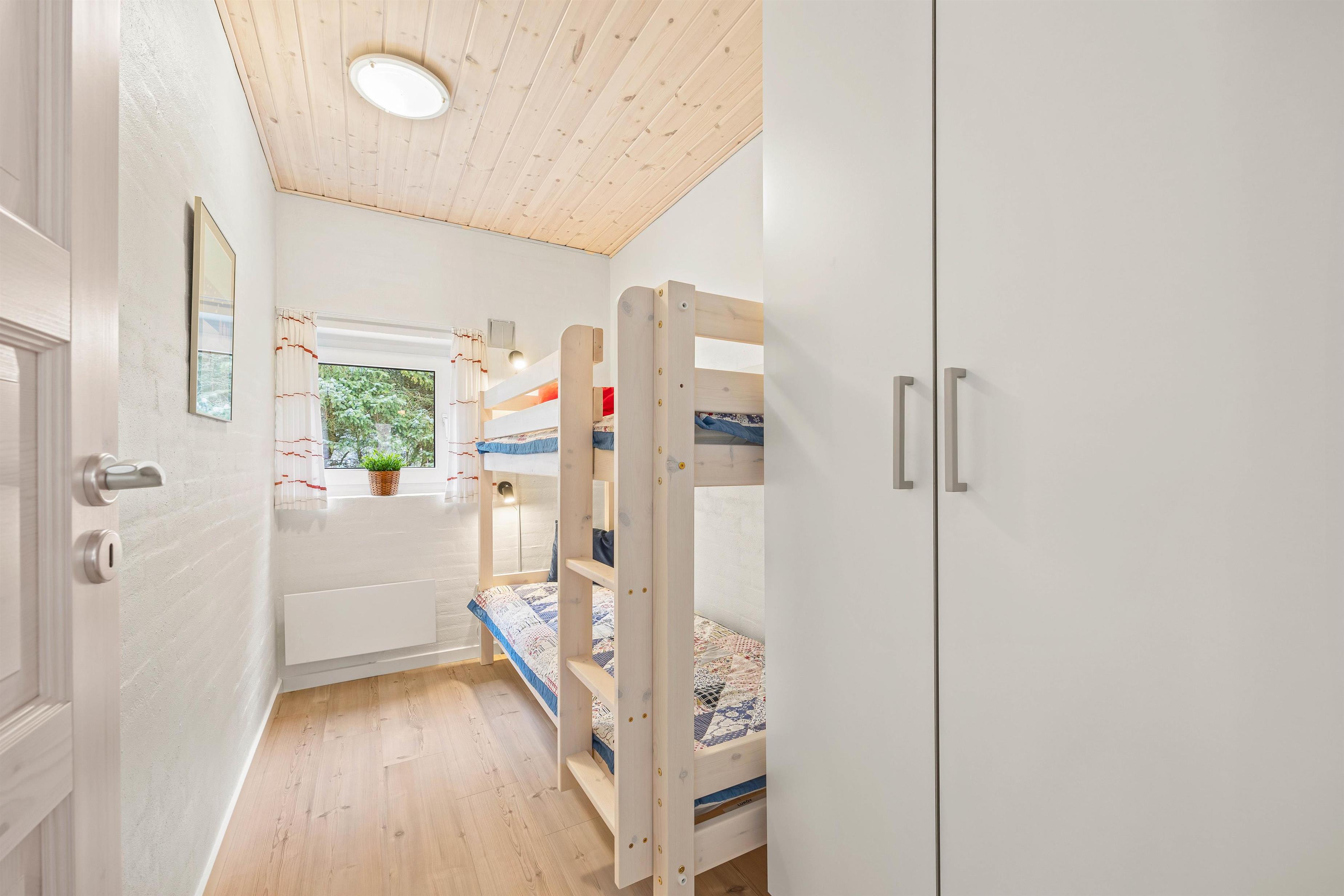 Når mørket falder på og øjnene begynder at falde i, står de fire soveværelser klar til jer! På to af værelserne er der dobbeltsenge på henholdsvis 180x200 cm og 140x200 cm, på det tredje værelse er der to enkeltmandssenge, 90x200 og på det sidste værelse køjesenge. Køjesengen måler 70x200 og vil sikkert være et hit hos børnene.