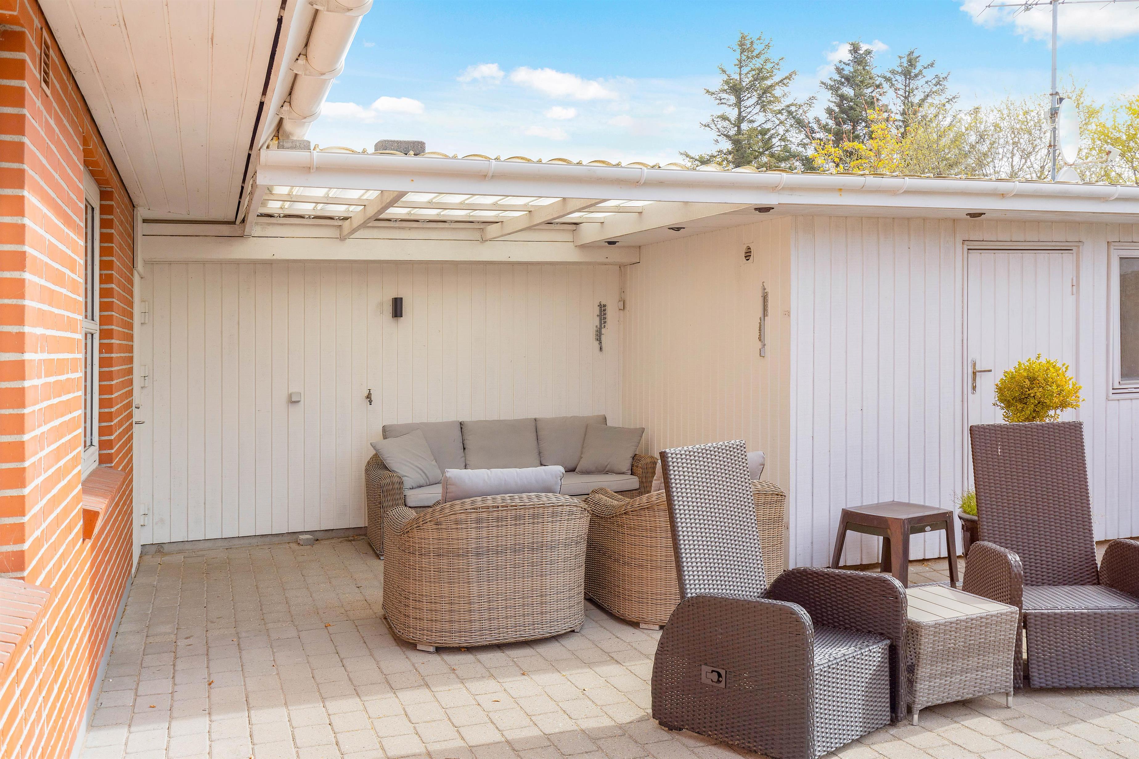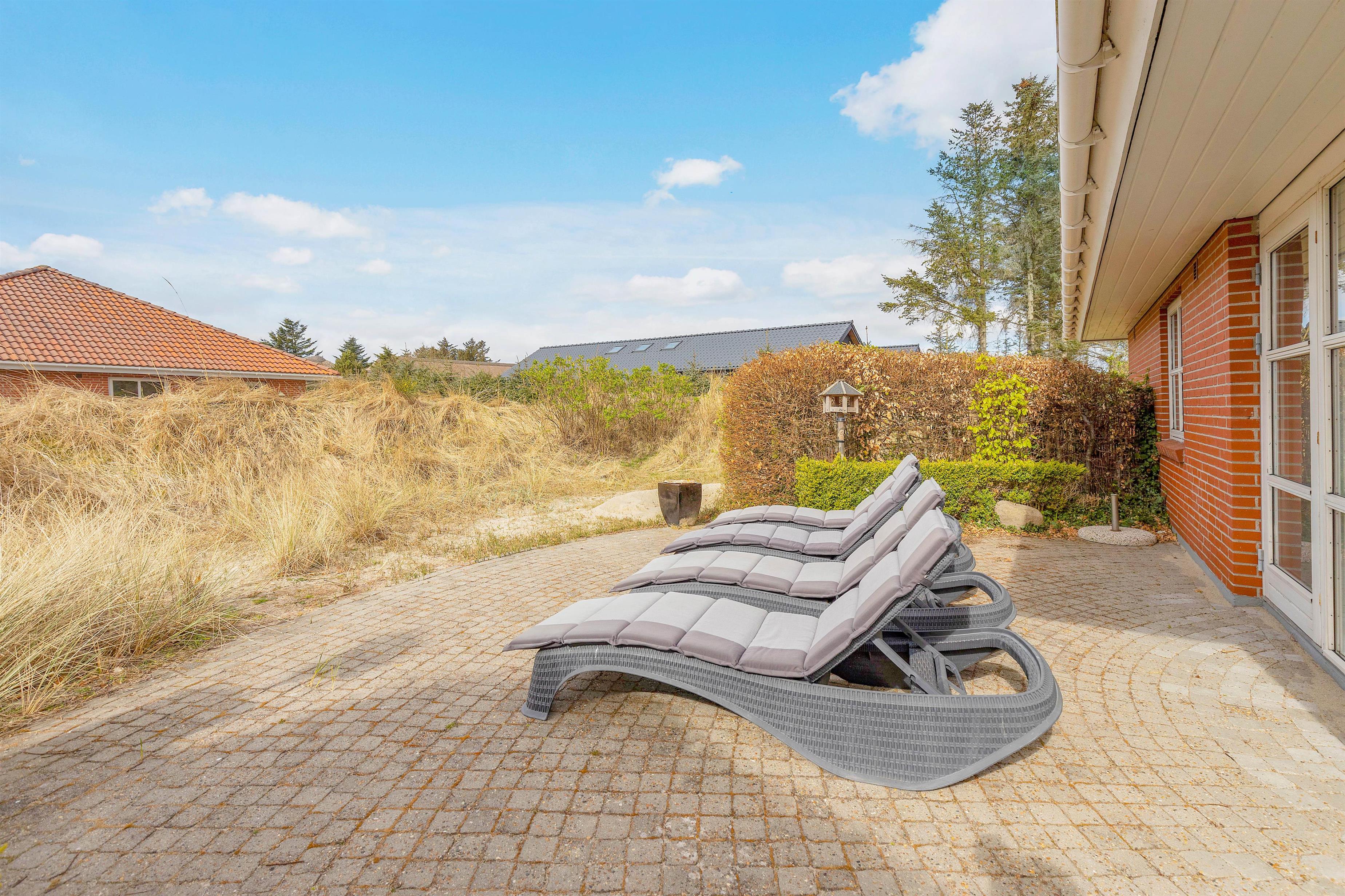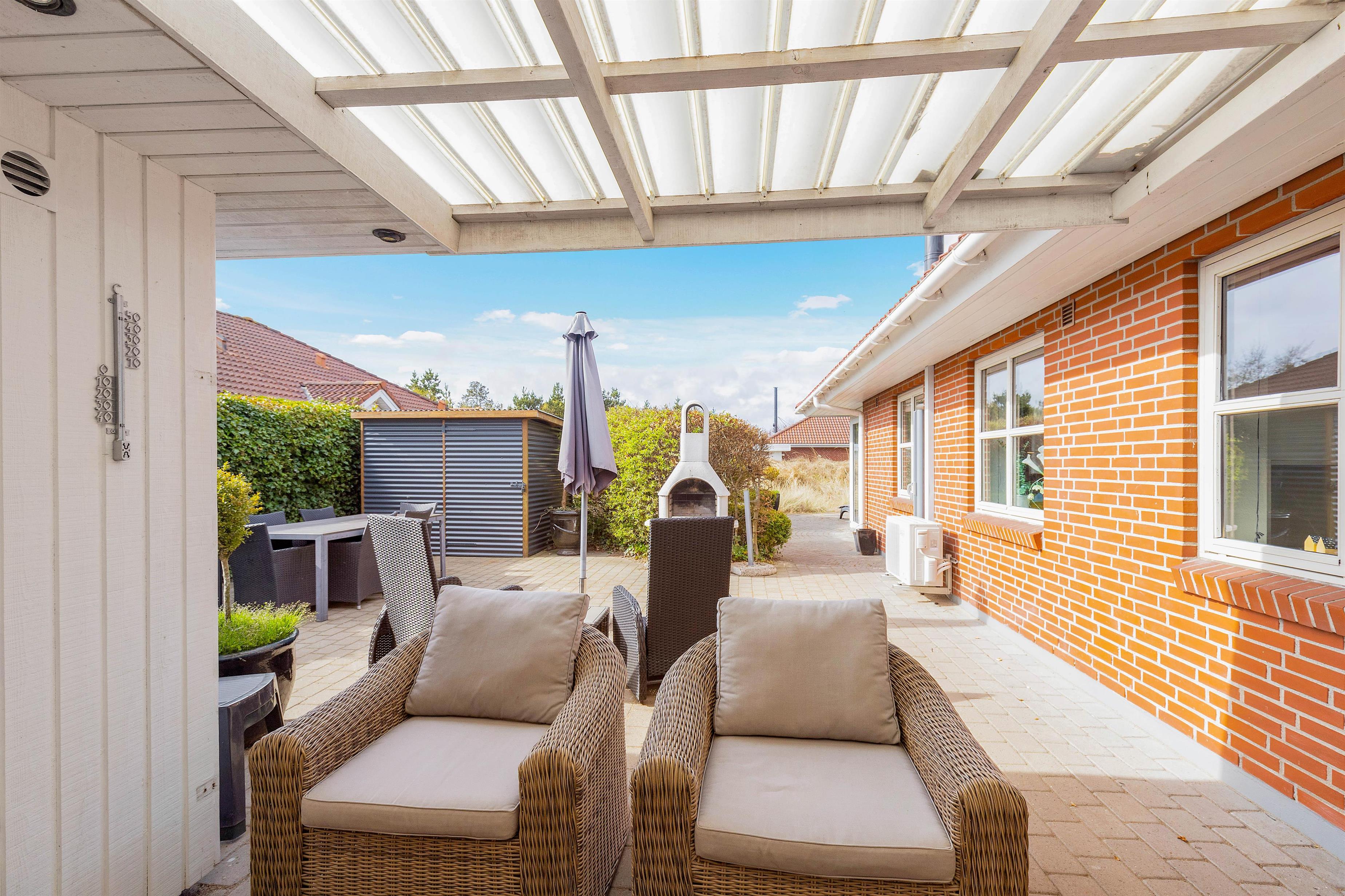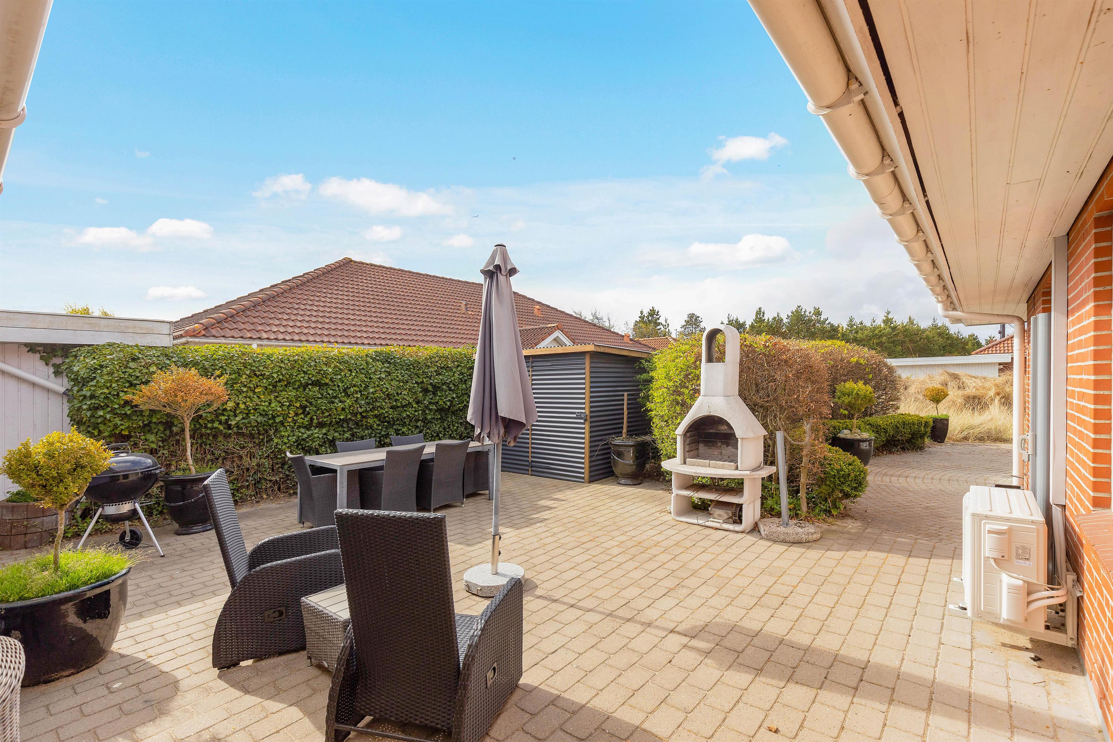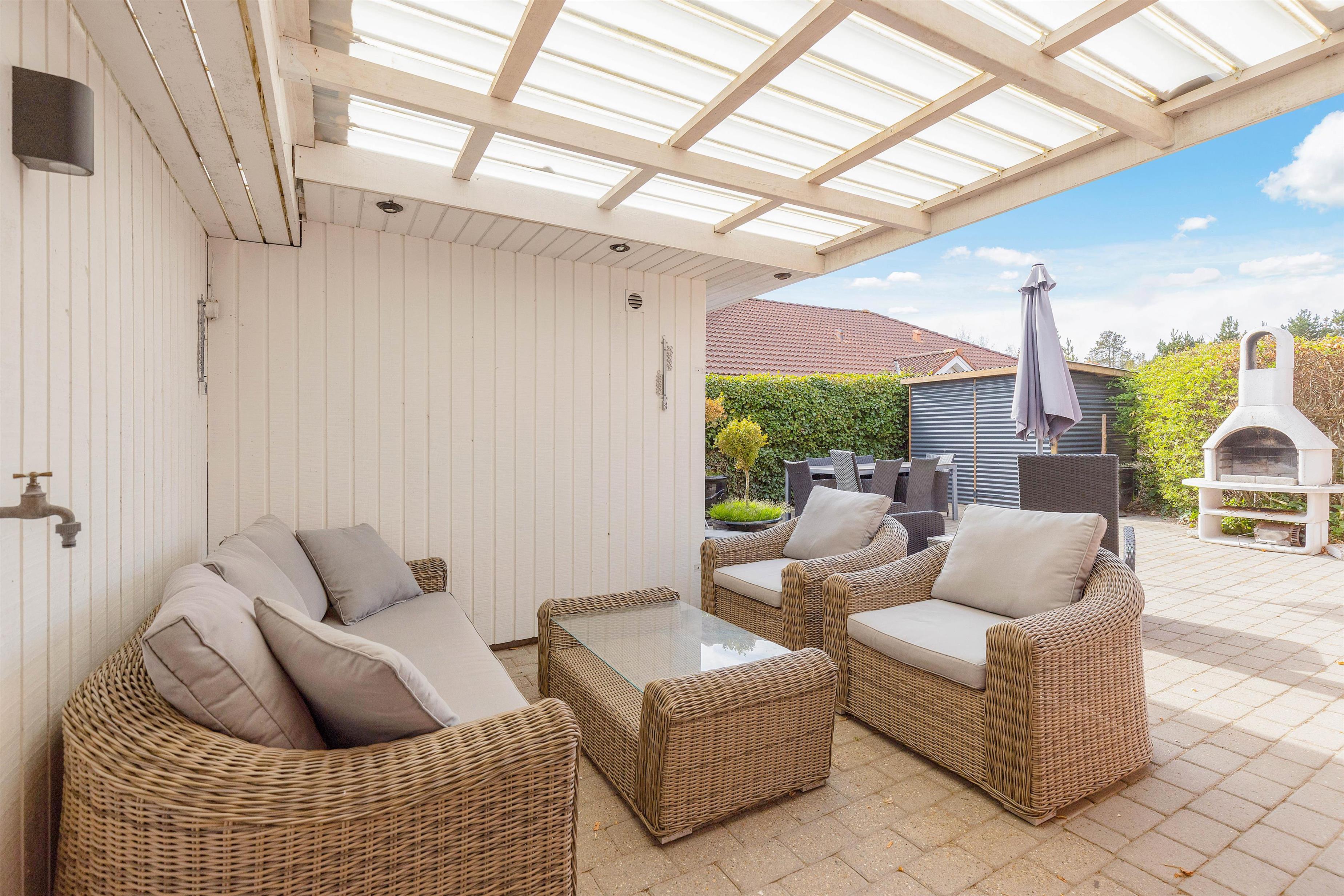 Med til huset hører en dejlig aflukket terrasse, hvor I helt ugeneret kan nyde de varme forårs- og sommerdage. Her er alt fra havemøbler til liggestole, og til de lune aftener står grillen klar, så I kan tilberede lækre steaks og pølser, for de dertil passende iskølede drinks sørger det store amerikanske køleskab.