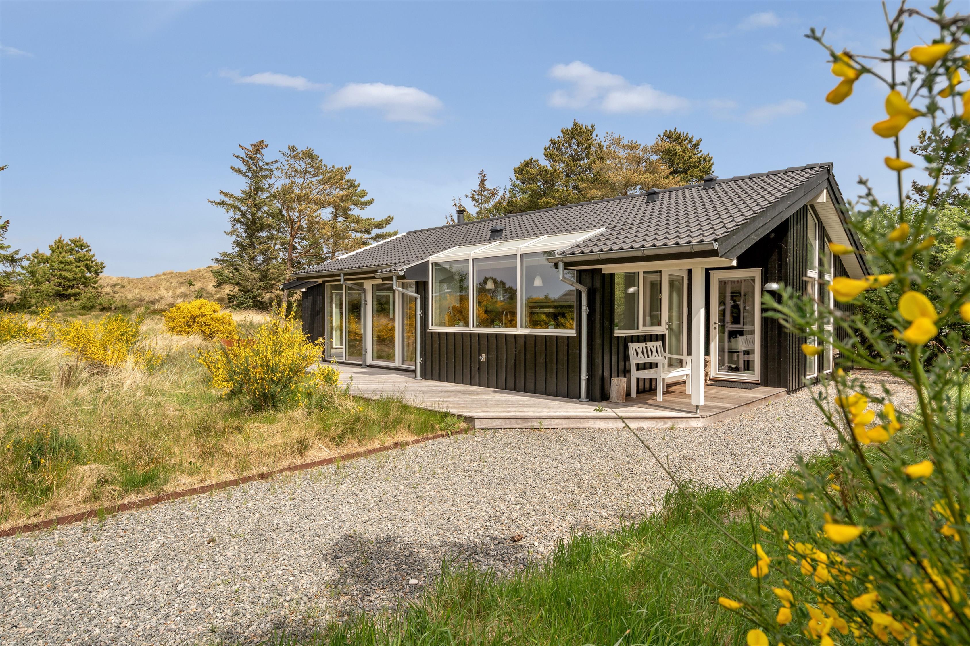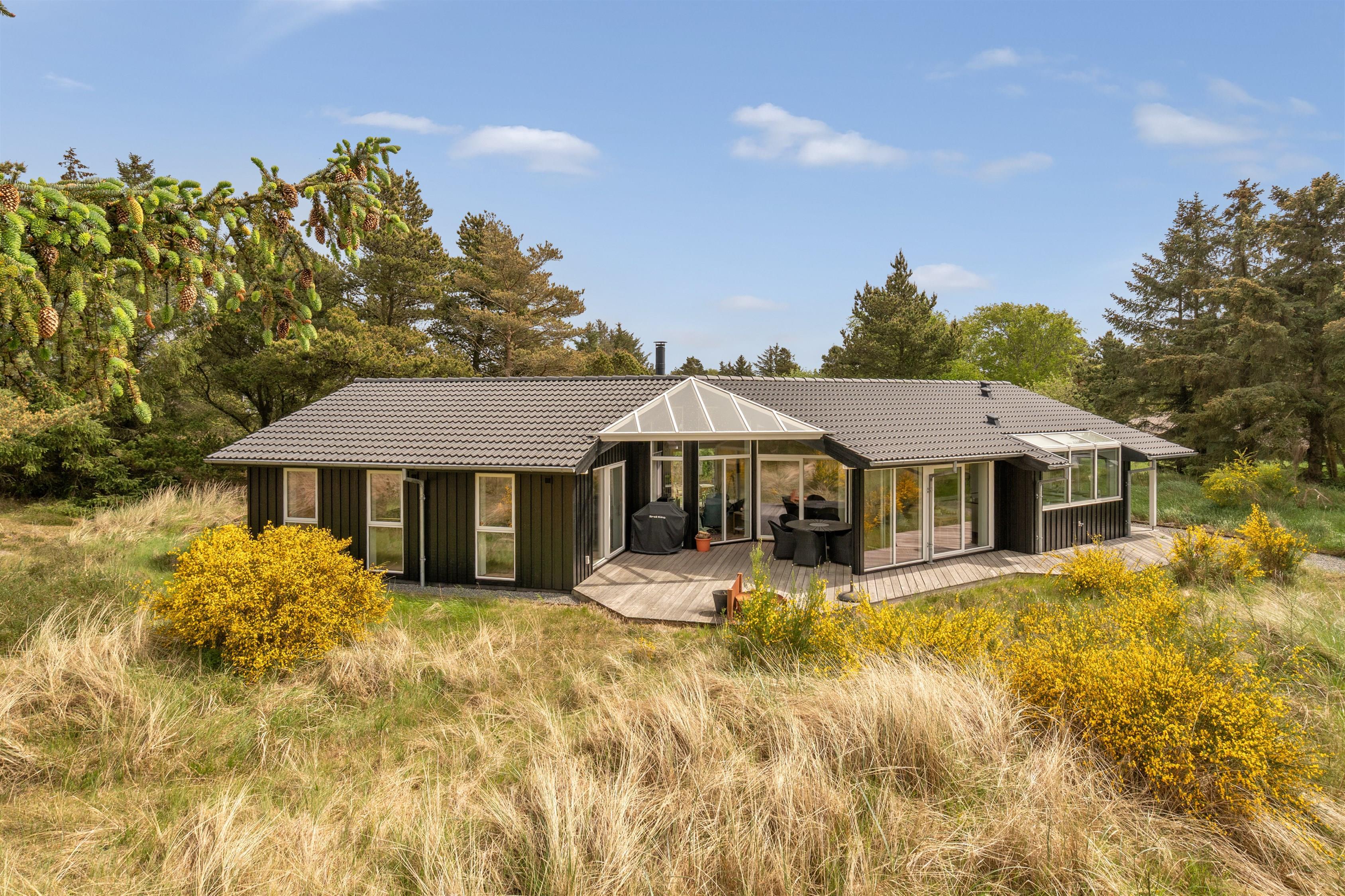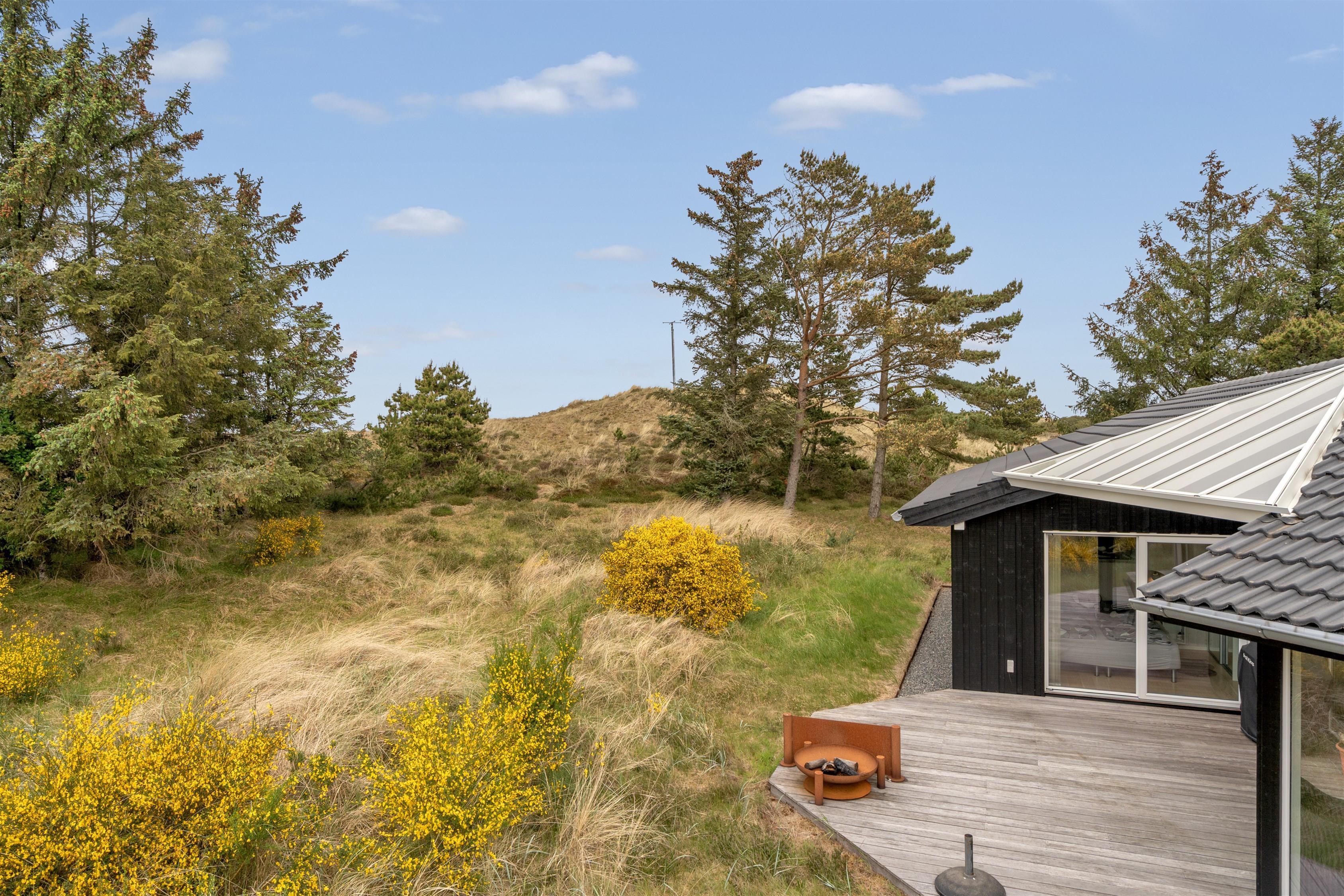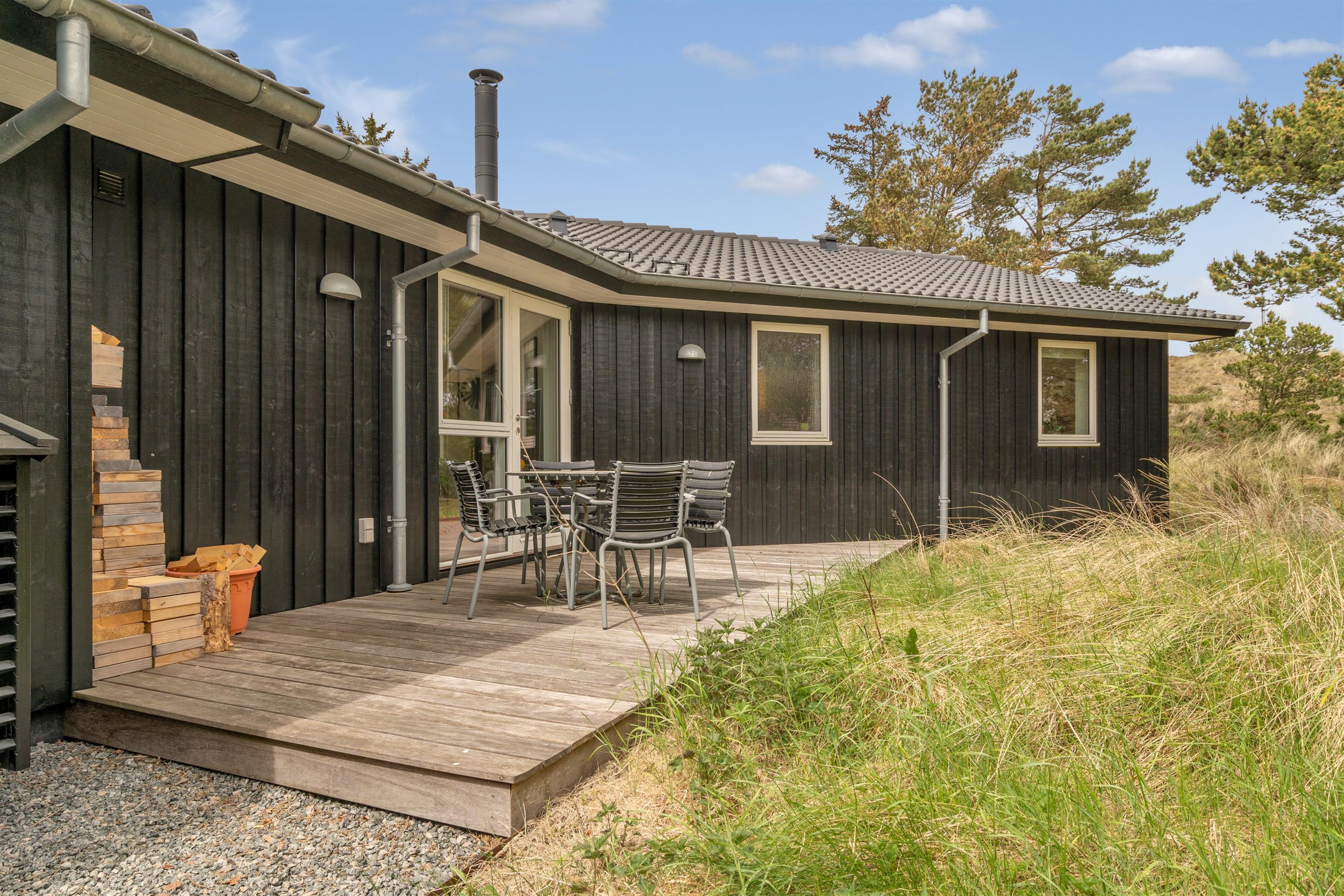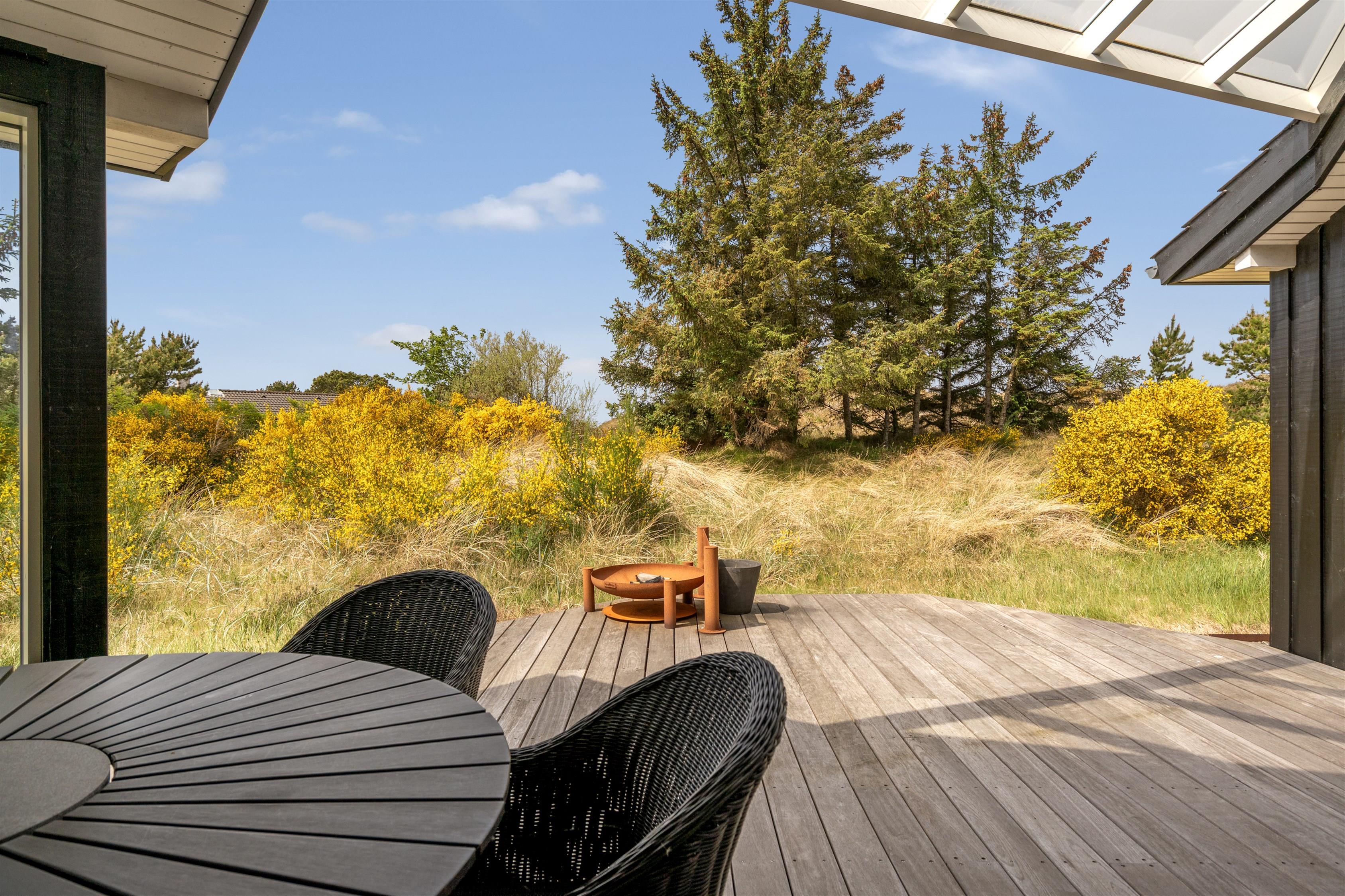 På den 1518 m2 store natur- og klitgrund har I også masser af plads til at hygge jer udendørs. Havemøblerne venter kun på jeres ankomst, så I kan nyde måltider fra gasgrillen udenfor eller bare slappe af, og den åbne del af terrassen indbyder til solbadning, hvor den overdækkede terrasse giver jer læ for vind og vejr.