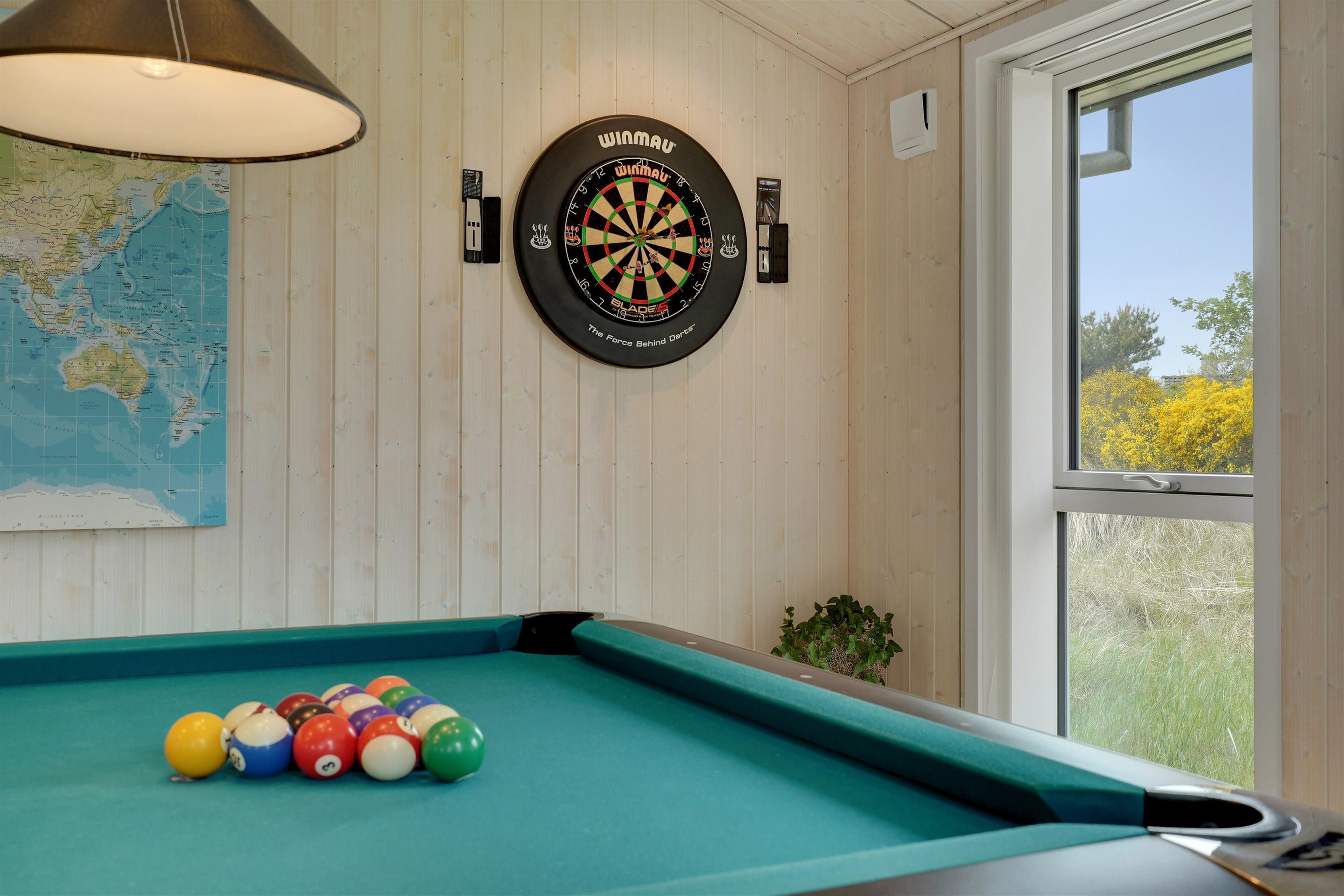 Hvis I er på jagt efter et ekstra lækkert hus til ferien, har I fundet det her, og et af husets plusser er wellness-området, hvor I kan blive varmet igennem, blødt op og få klaret hovedet i først saunaen og dernæst spaen – perfekt til en god afrunding af hver feriedag. Vil I også være aktive på ferien, kan I hygge jer sammen over husets poolbord. Hvem bliver mon feriens mester i pool?