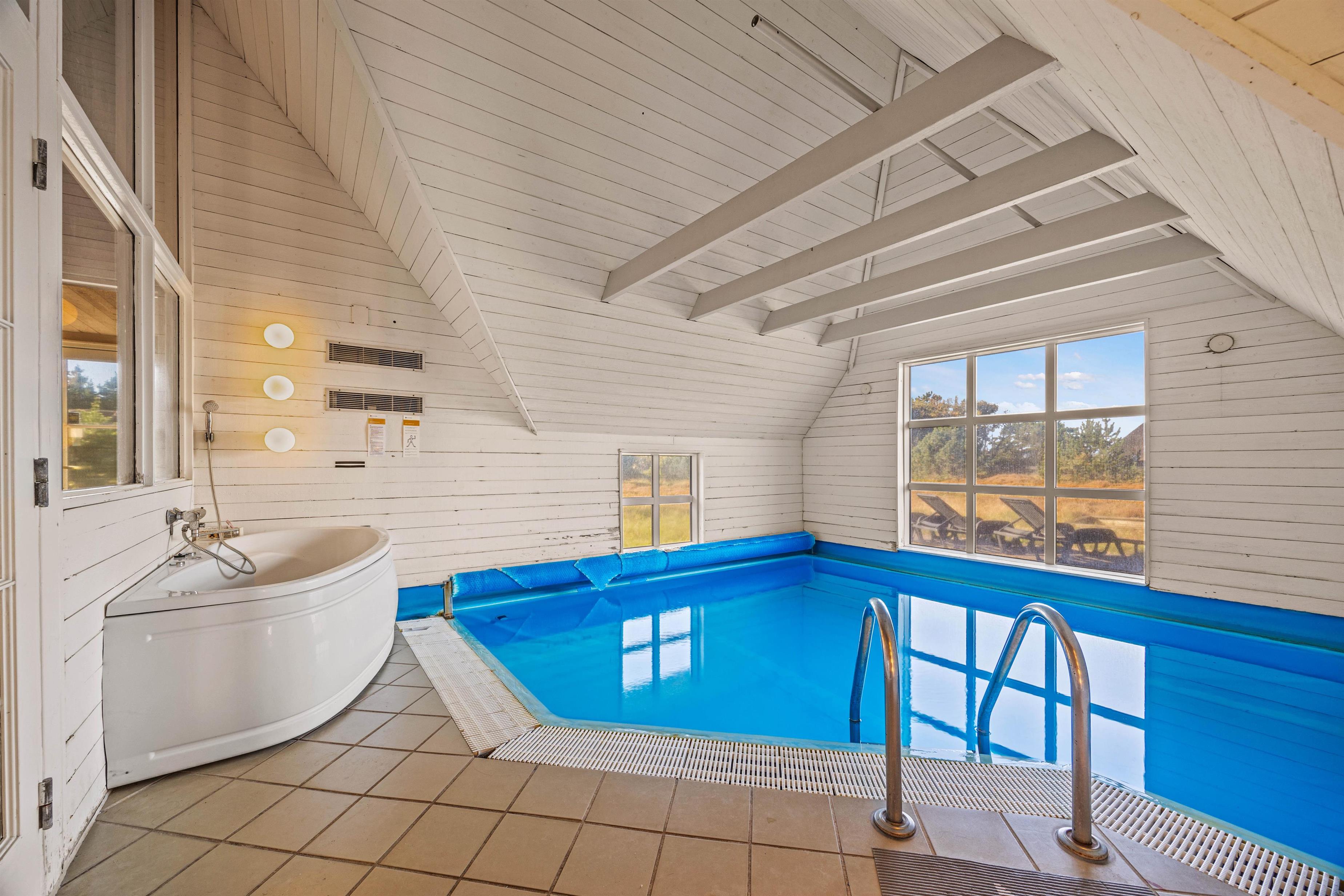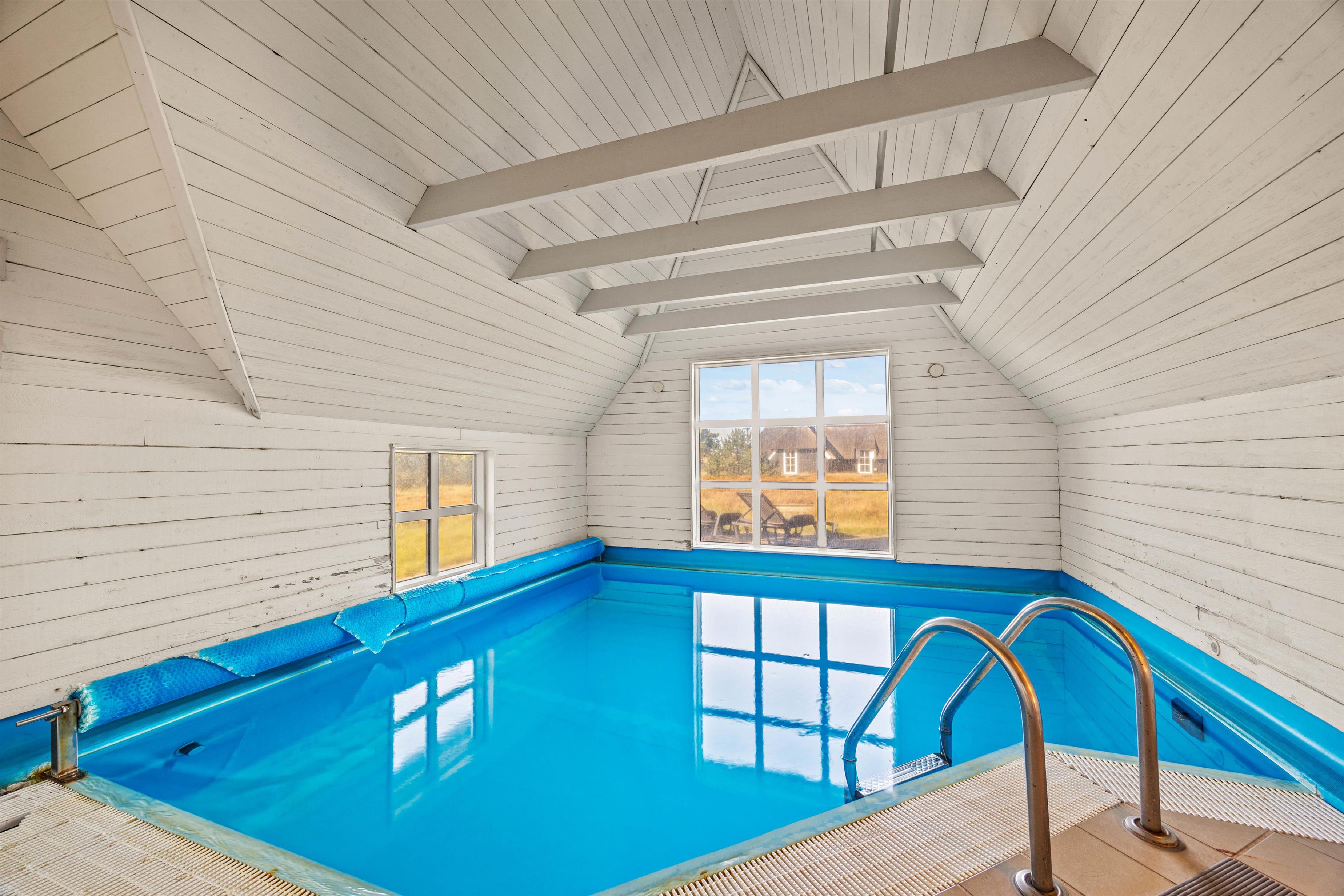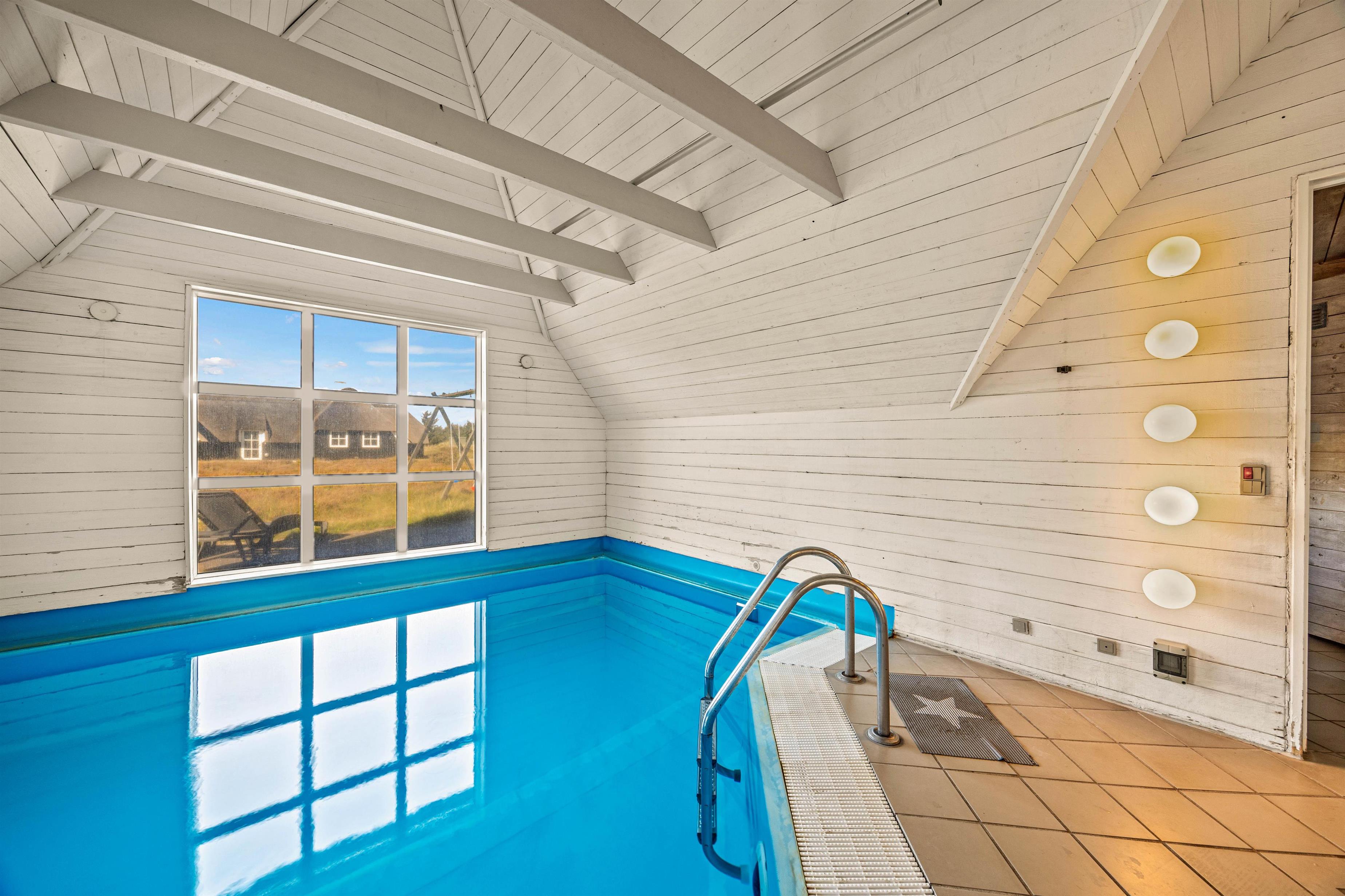 En af de helt store attraktioner ved dette sommerhus i Blåvand er den 16 m2 store pool, hvor hele familien kan hygge sig og bade sammen. Der er også en sauna, hvor I kan slappe af efter en aktiv dag, og en tømmespa til 2 personer, som indbyder til den ultimative feriefølelse. Huset blev renoveret i 2010, hvilket sikrer moderne og indbydende rammer.