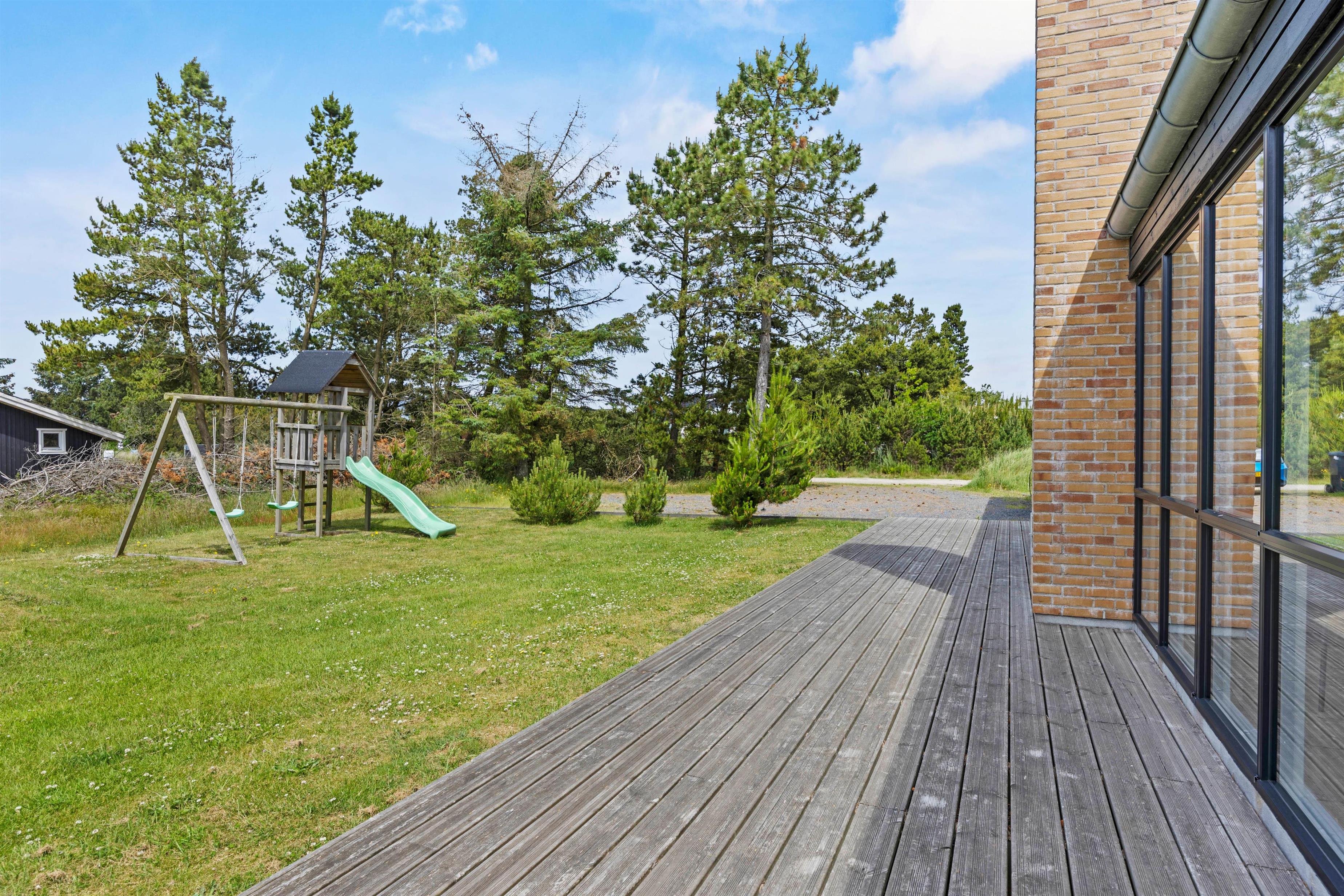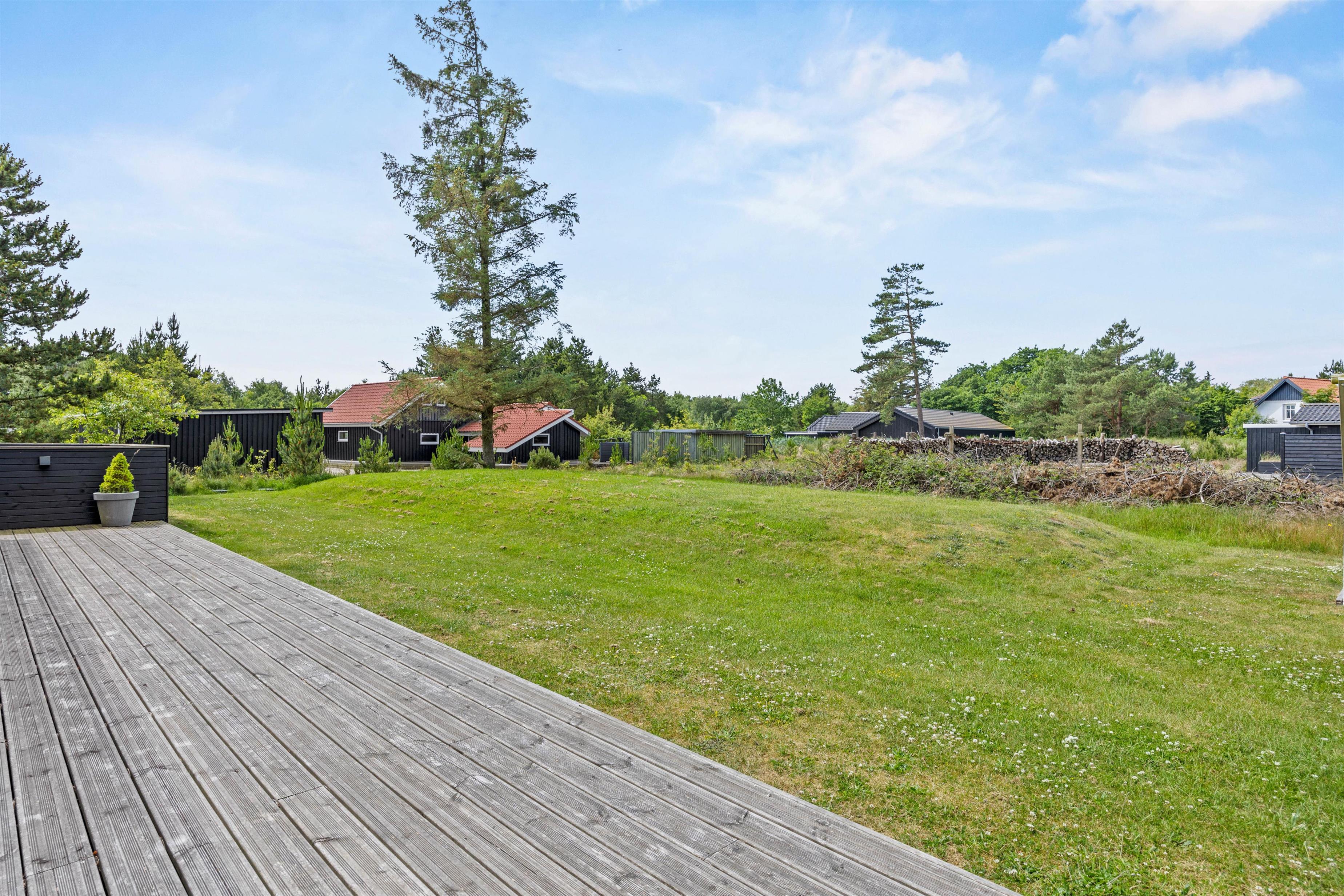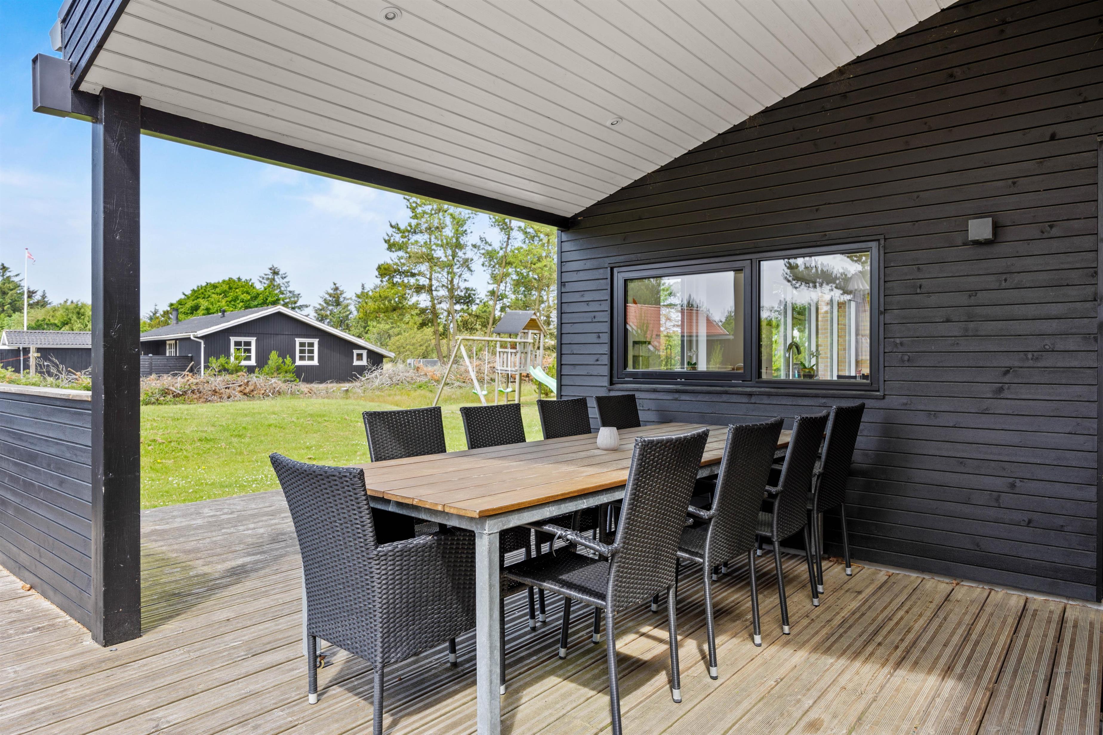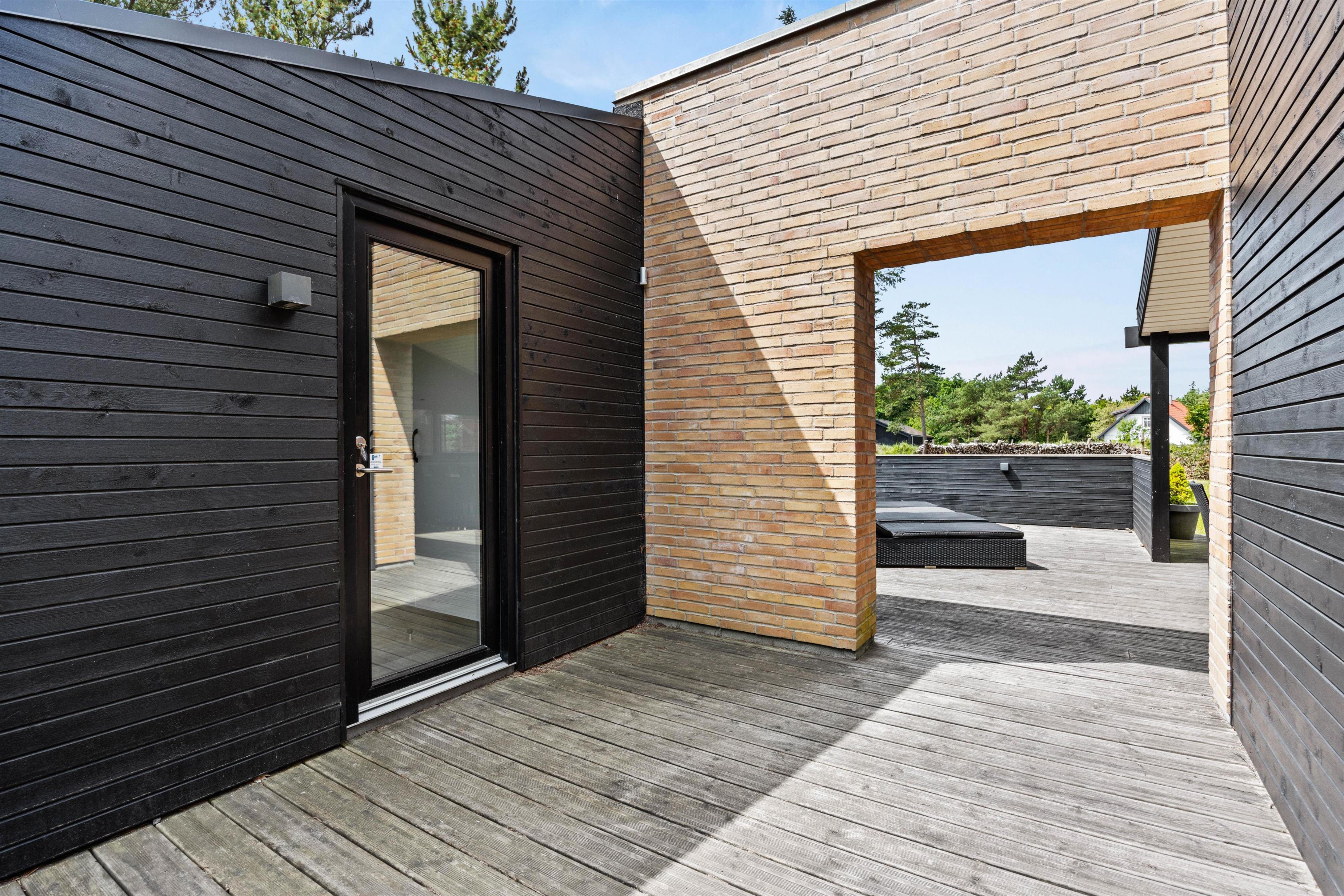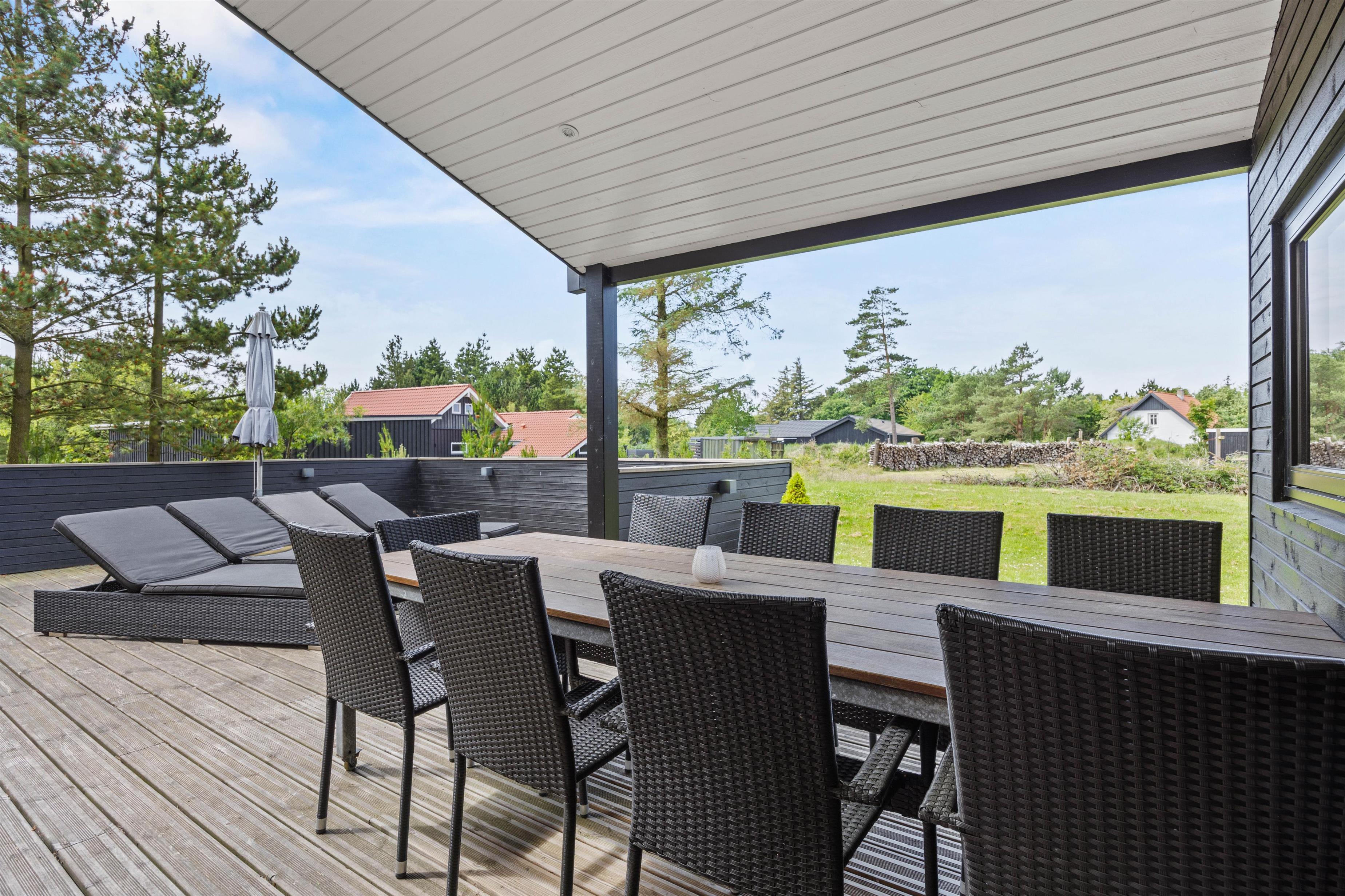 I har mere end god plads til at nyde de skønne solrige dage helt ugeneret på terrassen, der løber hele vejen rundt om huset. Her står både havemøbler og liggestole klar til jer, så I kan holde en dejlig dovnedag i de flotte omgivelser.