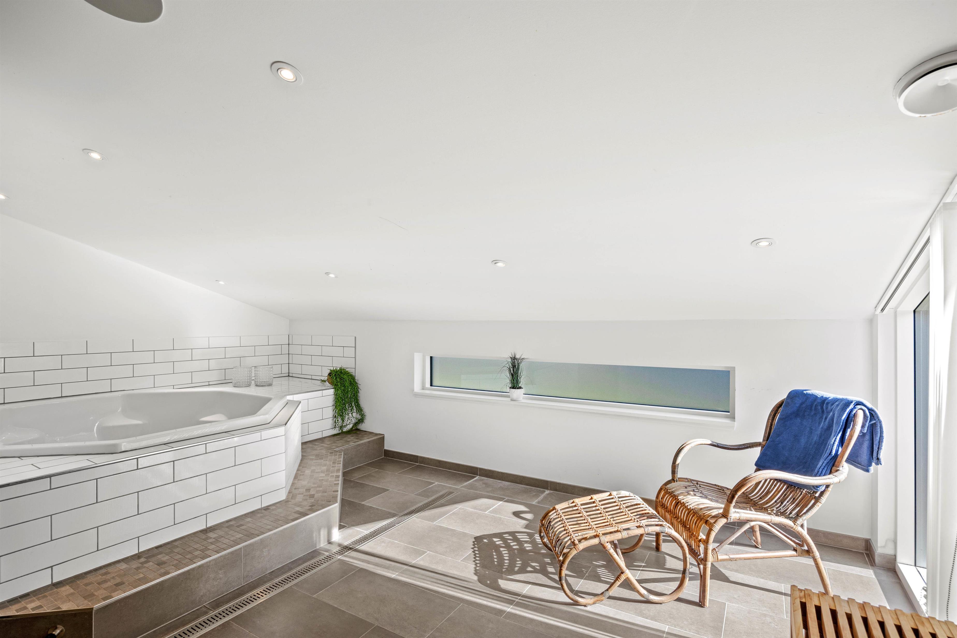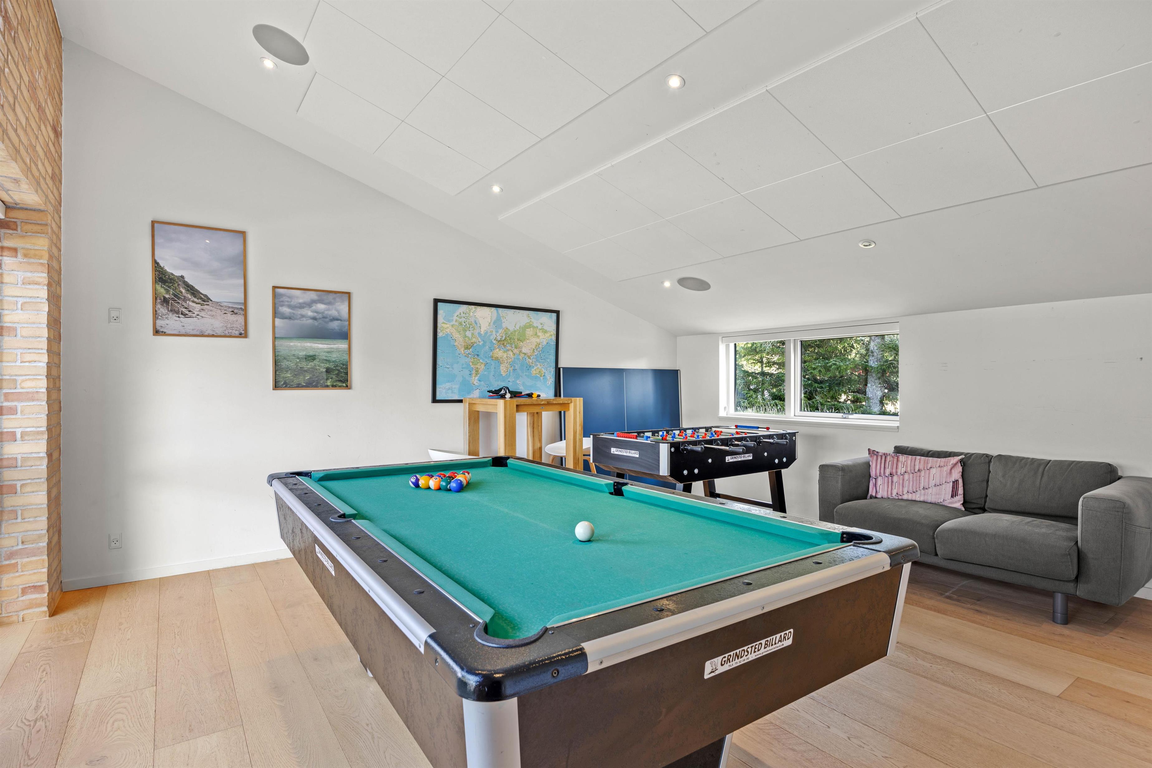 Der er 2 badeværelser i huset og desuden bad i sparummet, så I aldrig behøver at stå i kø for at få et bad, og både børn og barnlige sjæle vil kunne tilbringe timevis i det store aktivitetsrum med bordfodbold, bordtennis og billard. Imens de mindste feriegæster er godt underholdt, kan I nyde friheden i spabadet eller saunaen, hvor I kan koble helt af og læne jer tilbage i det varme vand. Især skønt på kolde dage ved Vestkysten, eller efter en lang gåtur i det vestjyske landskab.