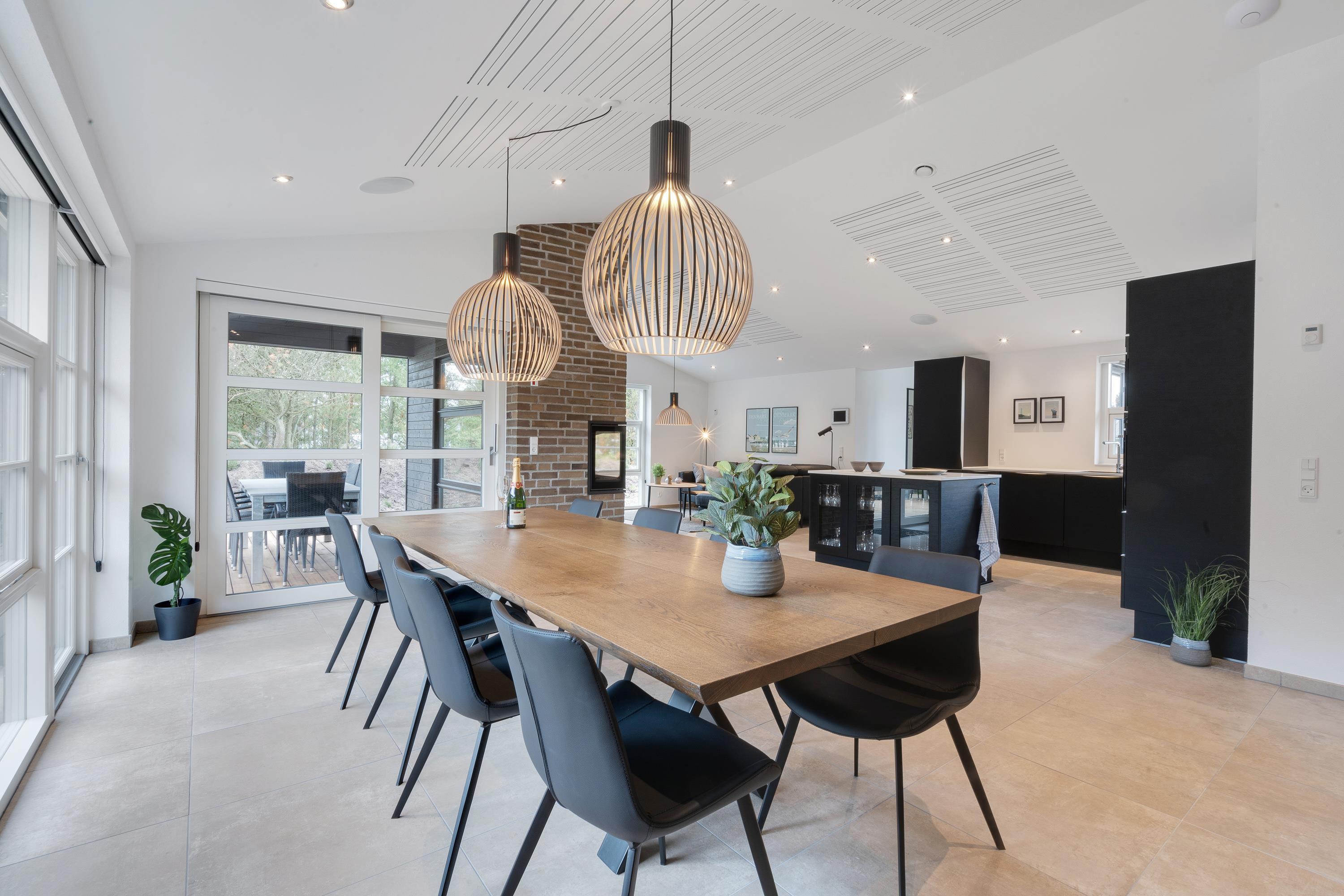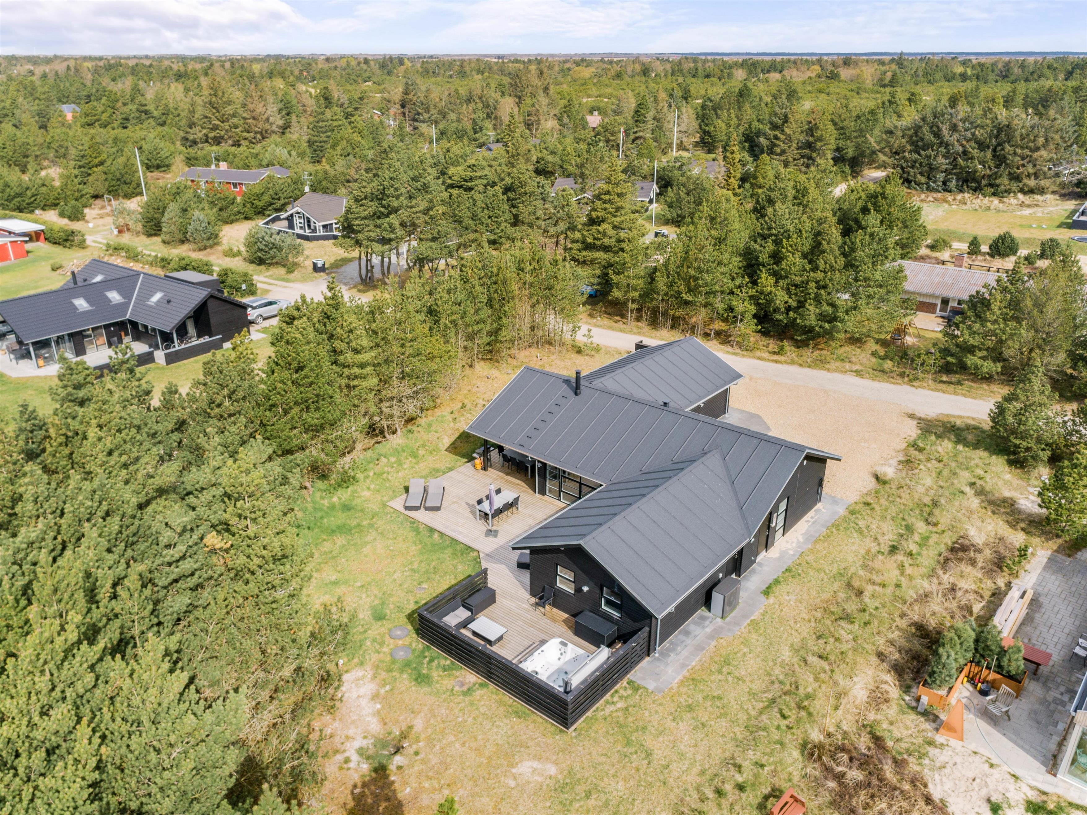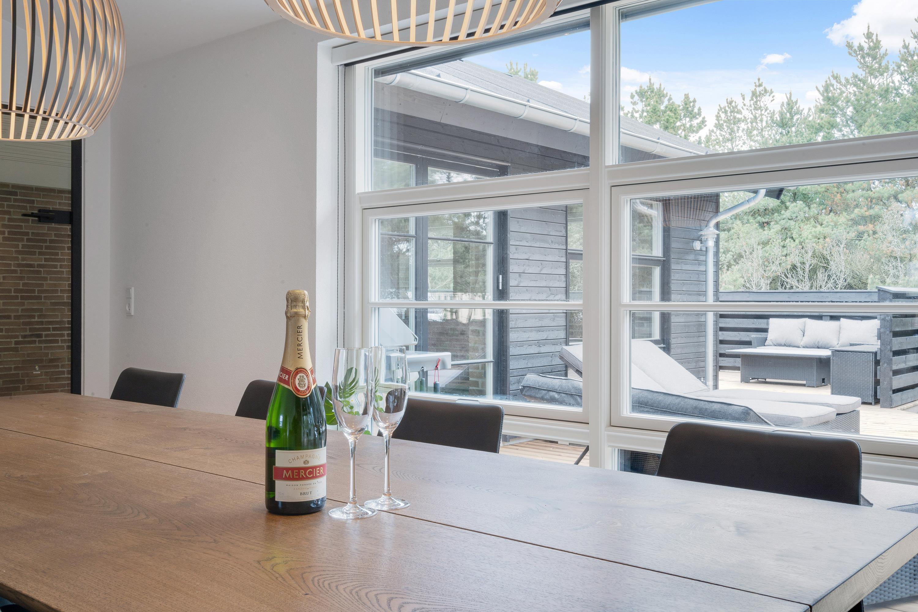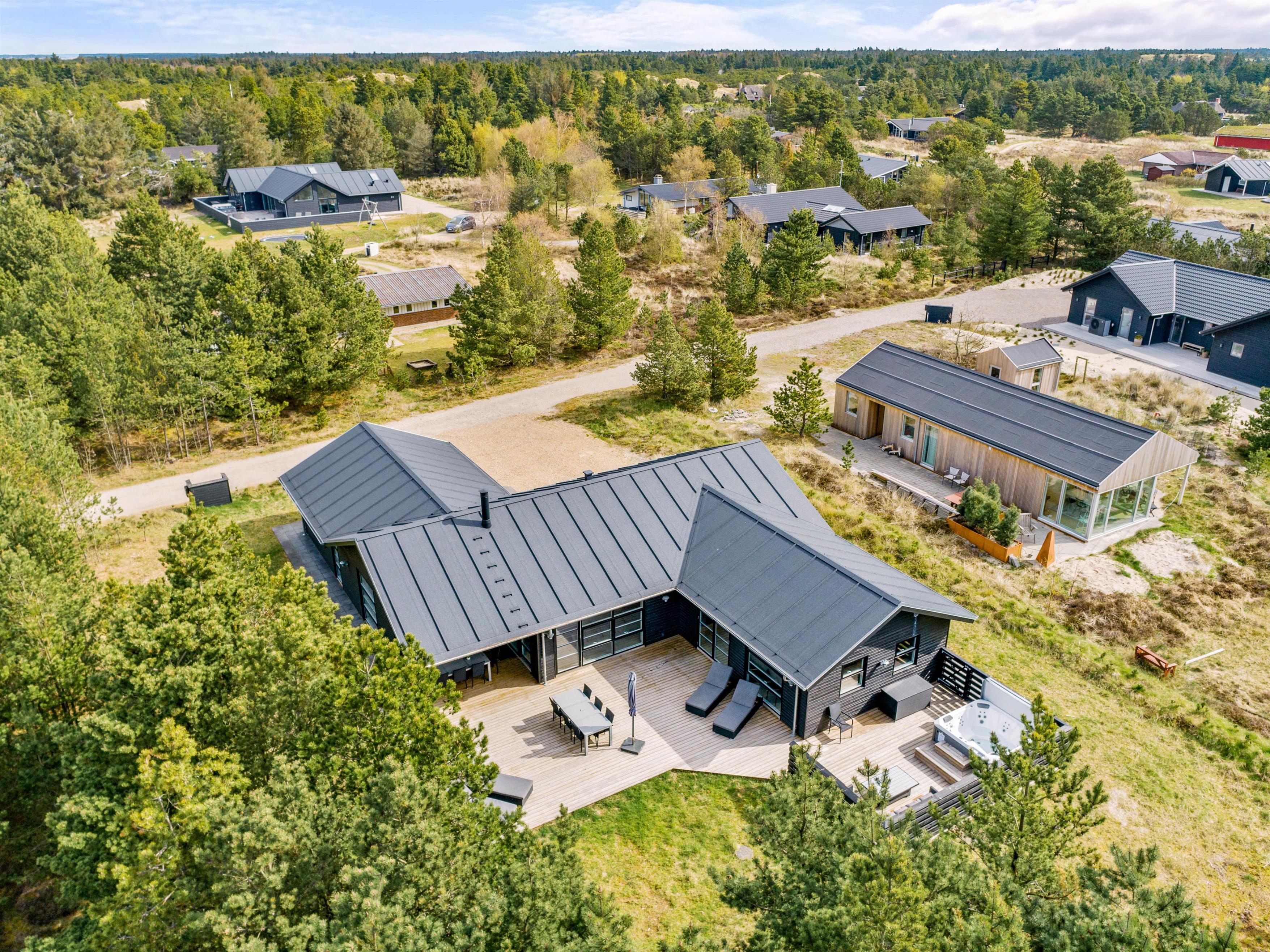 Fra poolområdet er der udgang til ferieboligens lækre terrasse. Med afskærmning og delvis overdækning kan I altid være sikre på at have ly og læ, mens I nyder den friske luft og Blåvands naturskønne omgivelser. På terrassen står desuden et stort udendørs spabad, der giver anledning til masser af wellnessoplevelser i det fri. Her kan I sidde under stjernehimlen og nyde tilværelsen med et koldt glas vin.