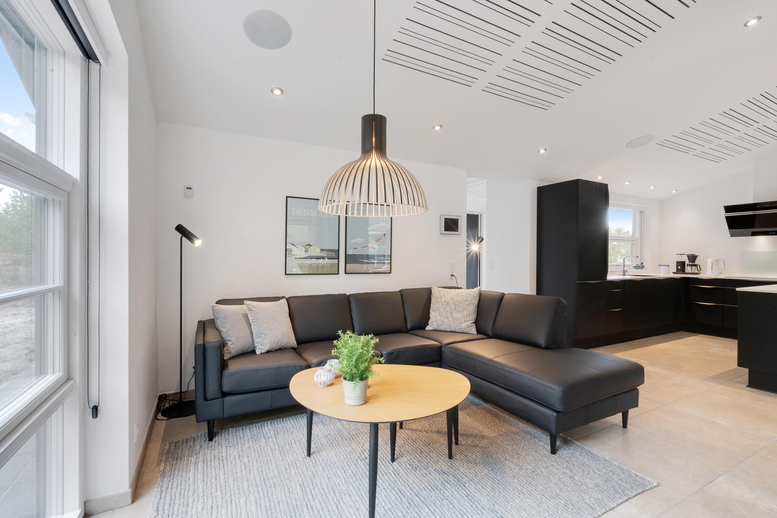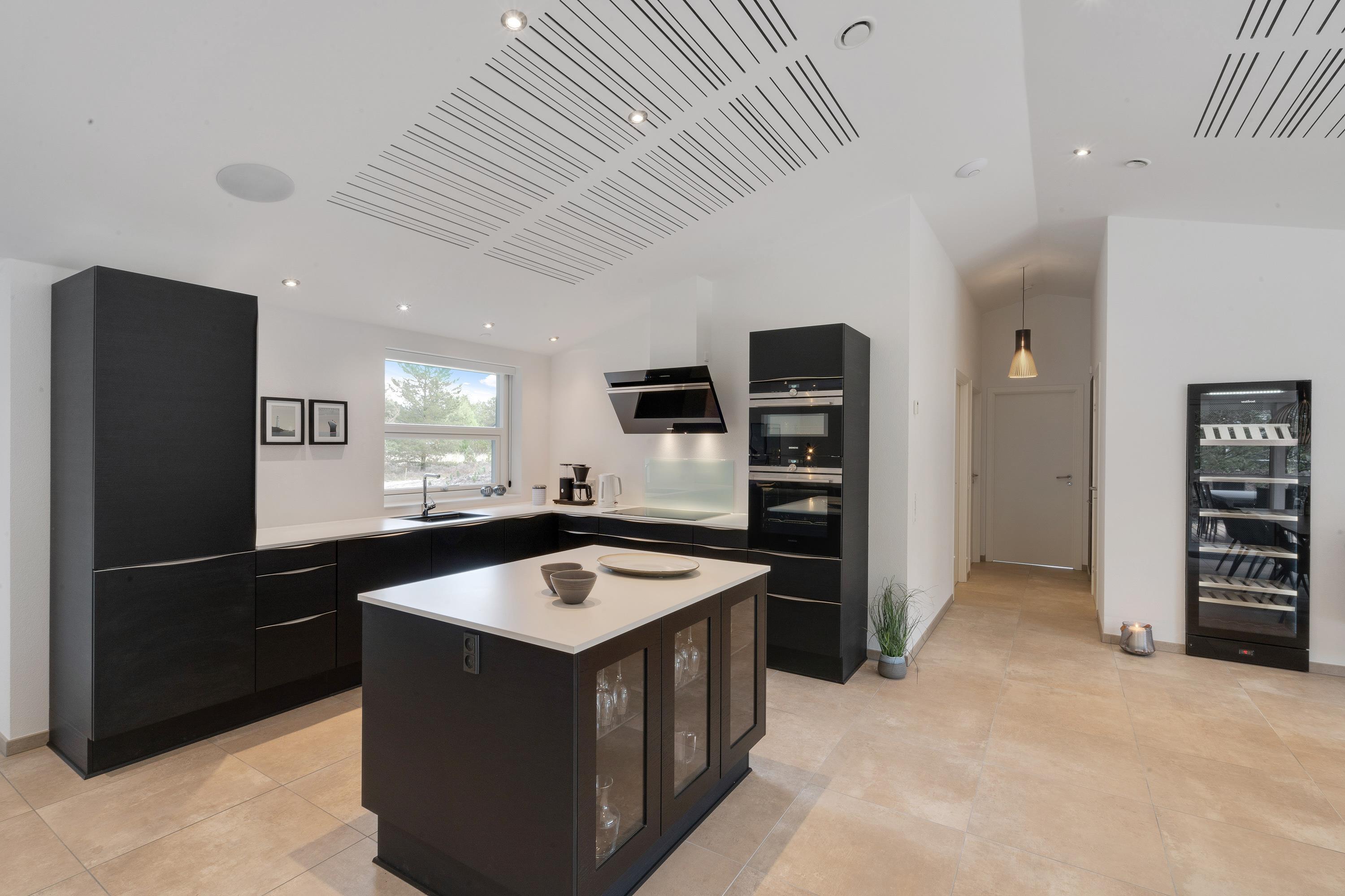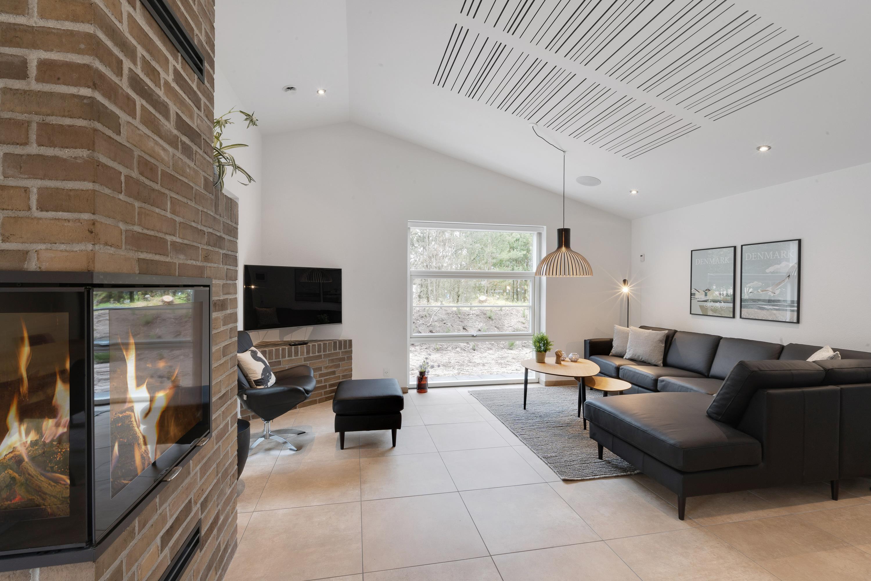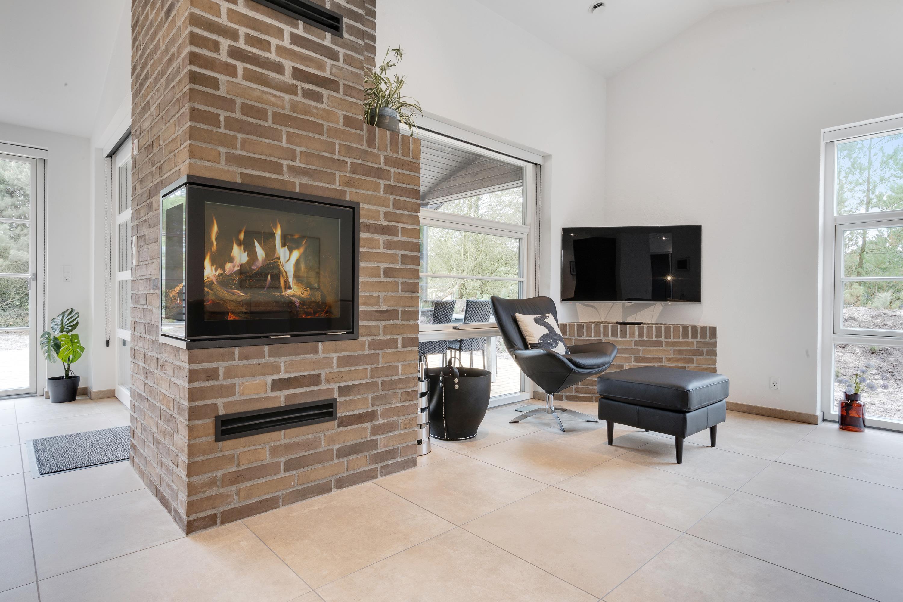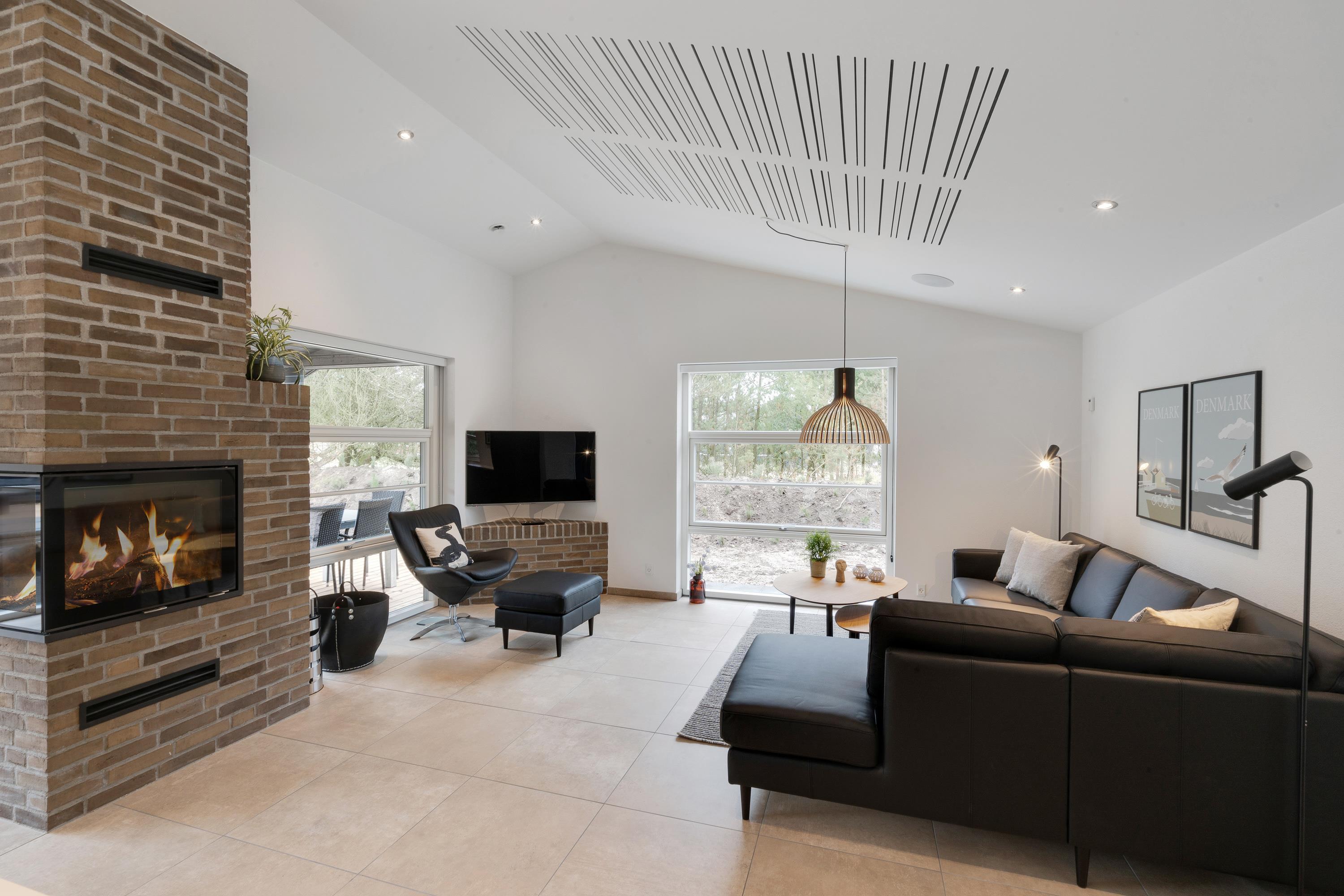 Hele sommerhuset er udstyret med gulvvarme, og alrummet er indrettet med pejseindsats, som tilfører ekstra varme og ikke mindst hyggelig stemning. Det veludstyrede køkken med køkkenø bliver samlingspunktet, når aftensmaden skal tilberedes, og som en ekstra bonus er der et vinkøleskab, så I altid kan nyde et koldt glas hvidvin eller rosé.