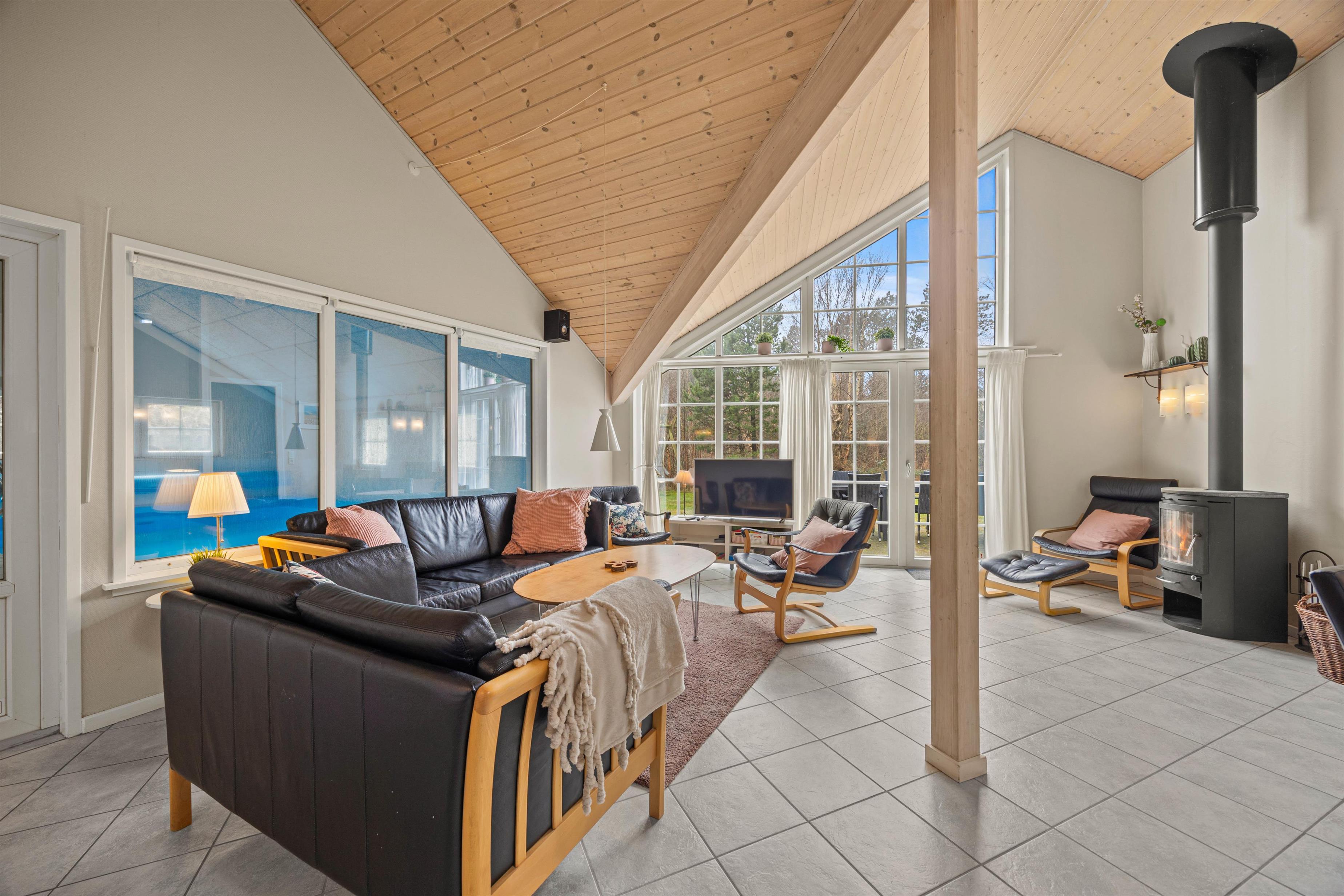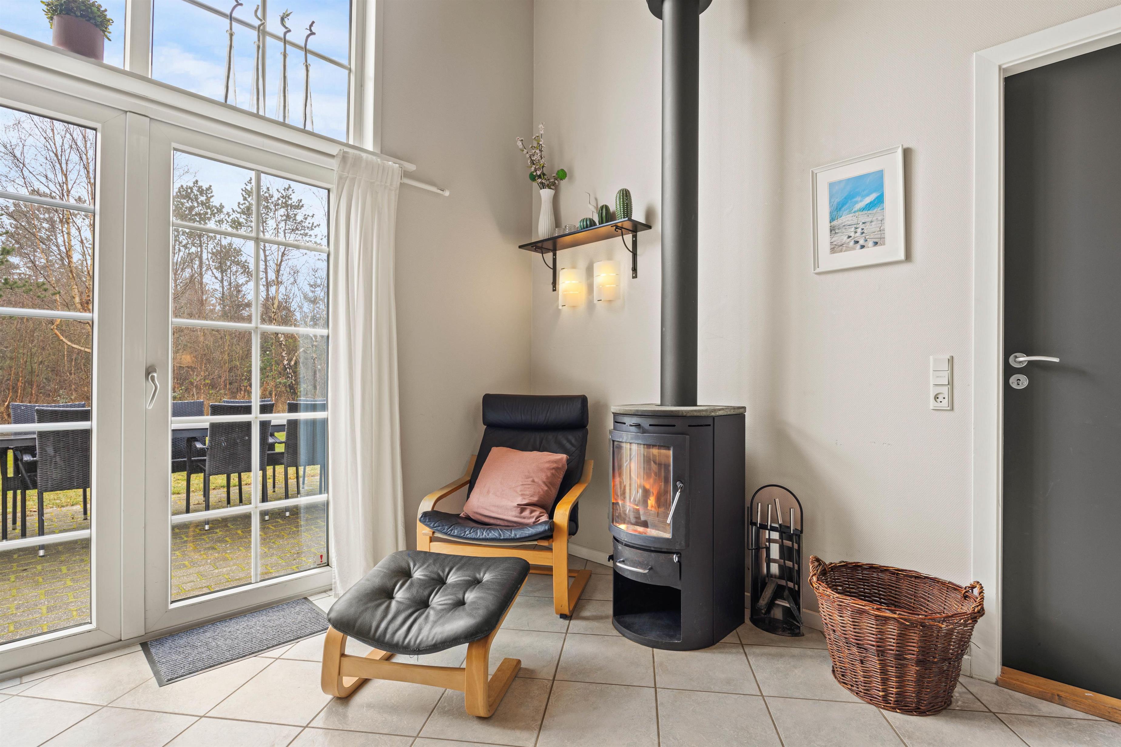 Efter en aktiv dag kan I slappe af i saunaen eller nyde et varmt boblebad i spaen, der indbyder til ren afslapning. På de køligere dage sørger brændeovnen og den energibesparende varmepumpe for en behagelig temperatur i hele huset, mens de knitrende flammer fra brændeovnen skaber en hyggelig stemning.