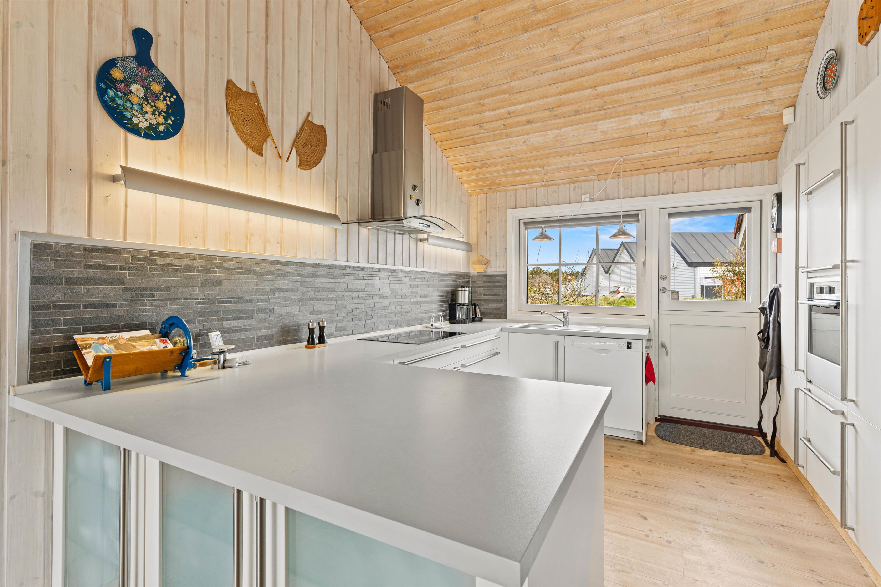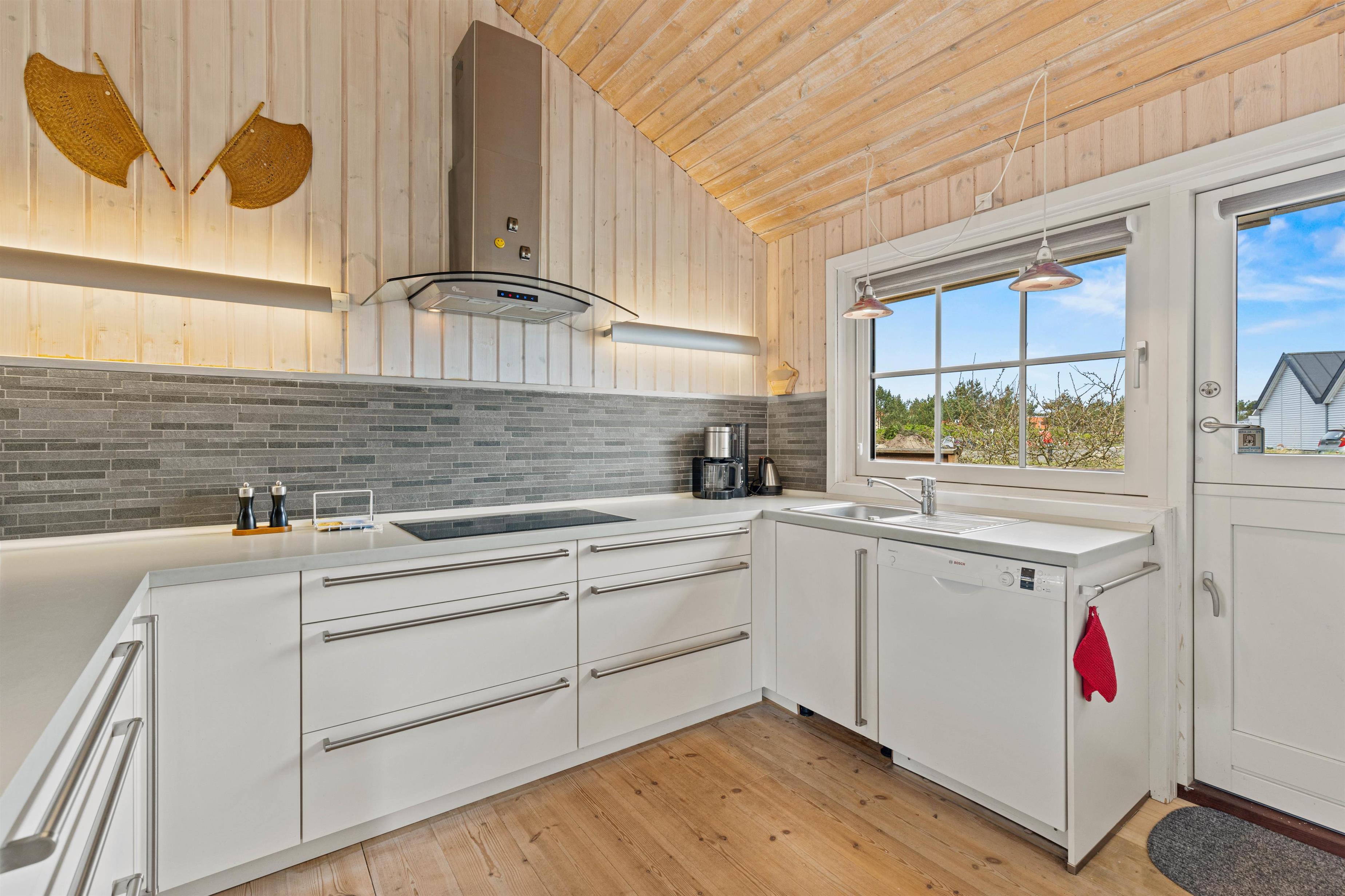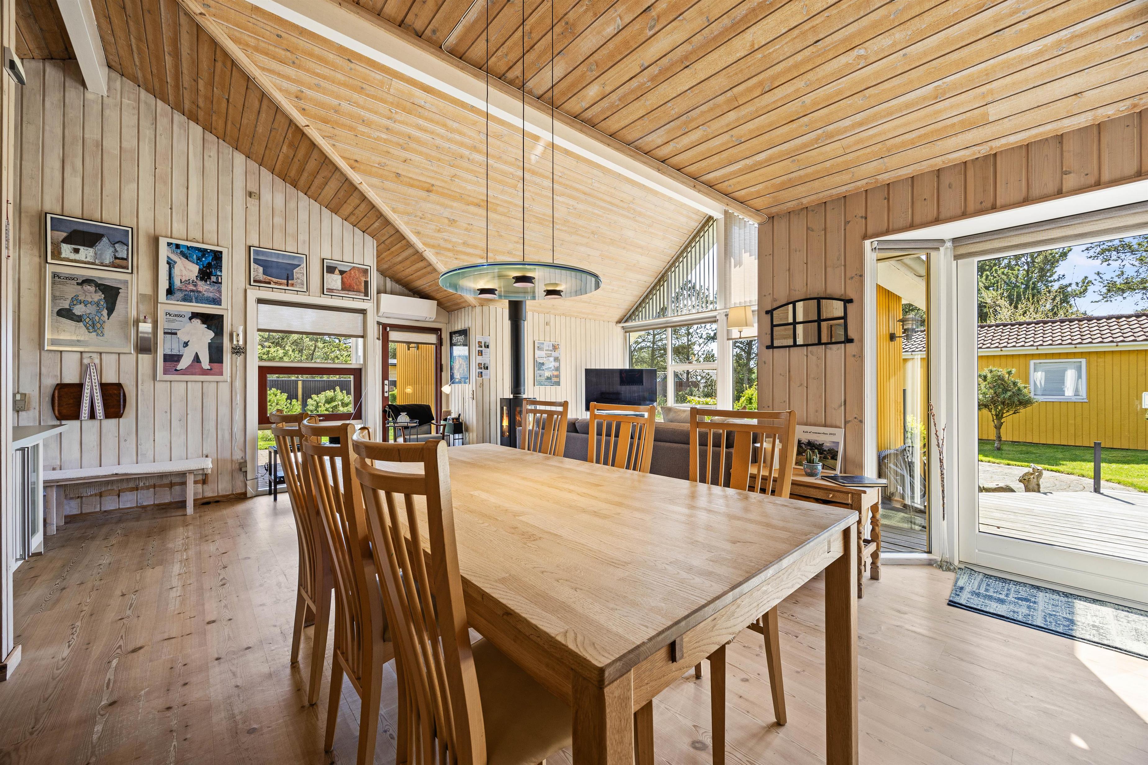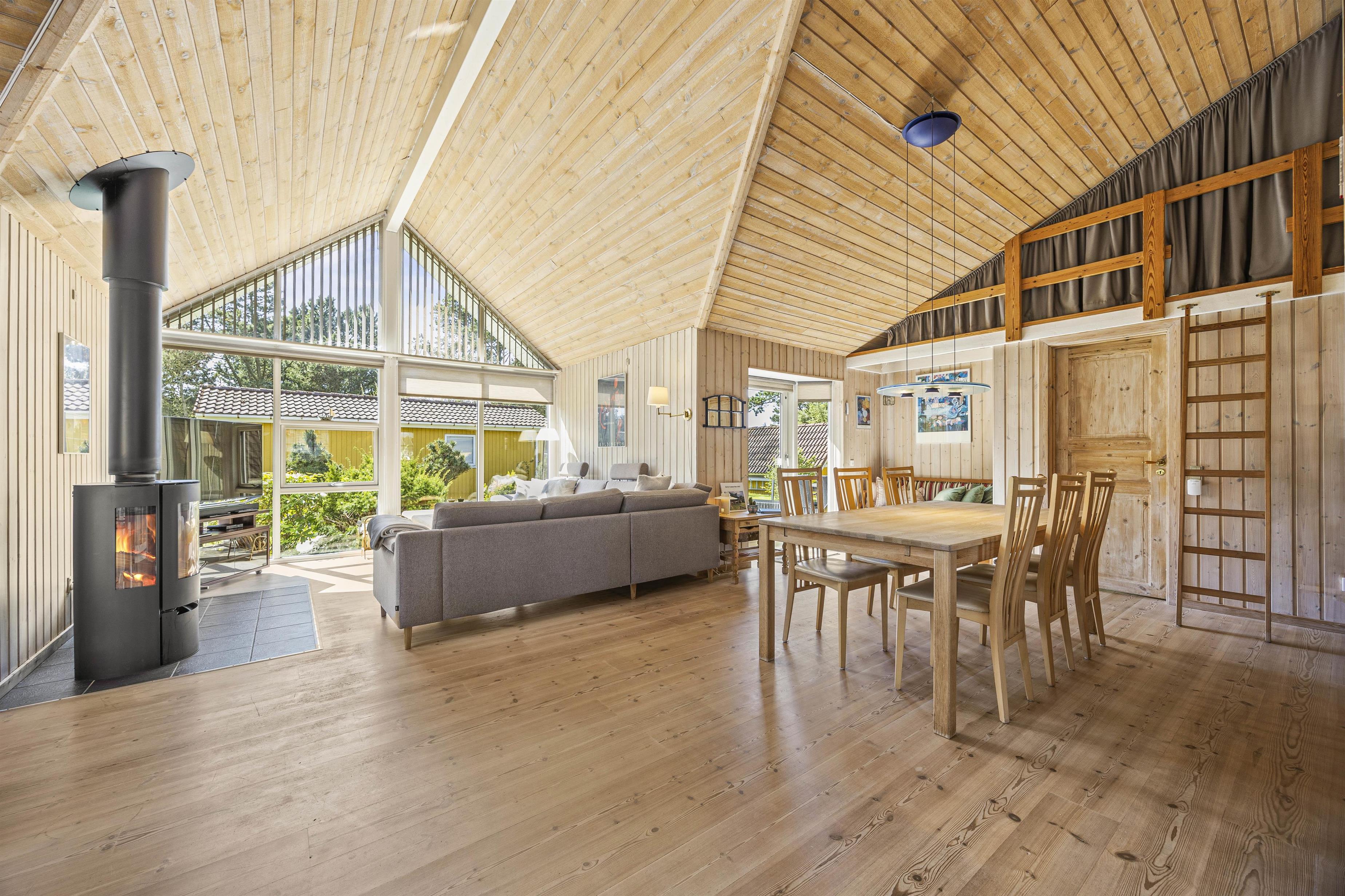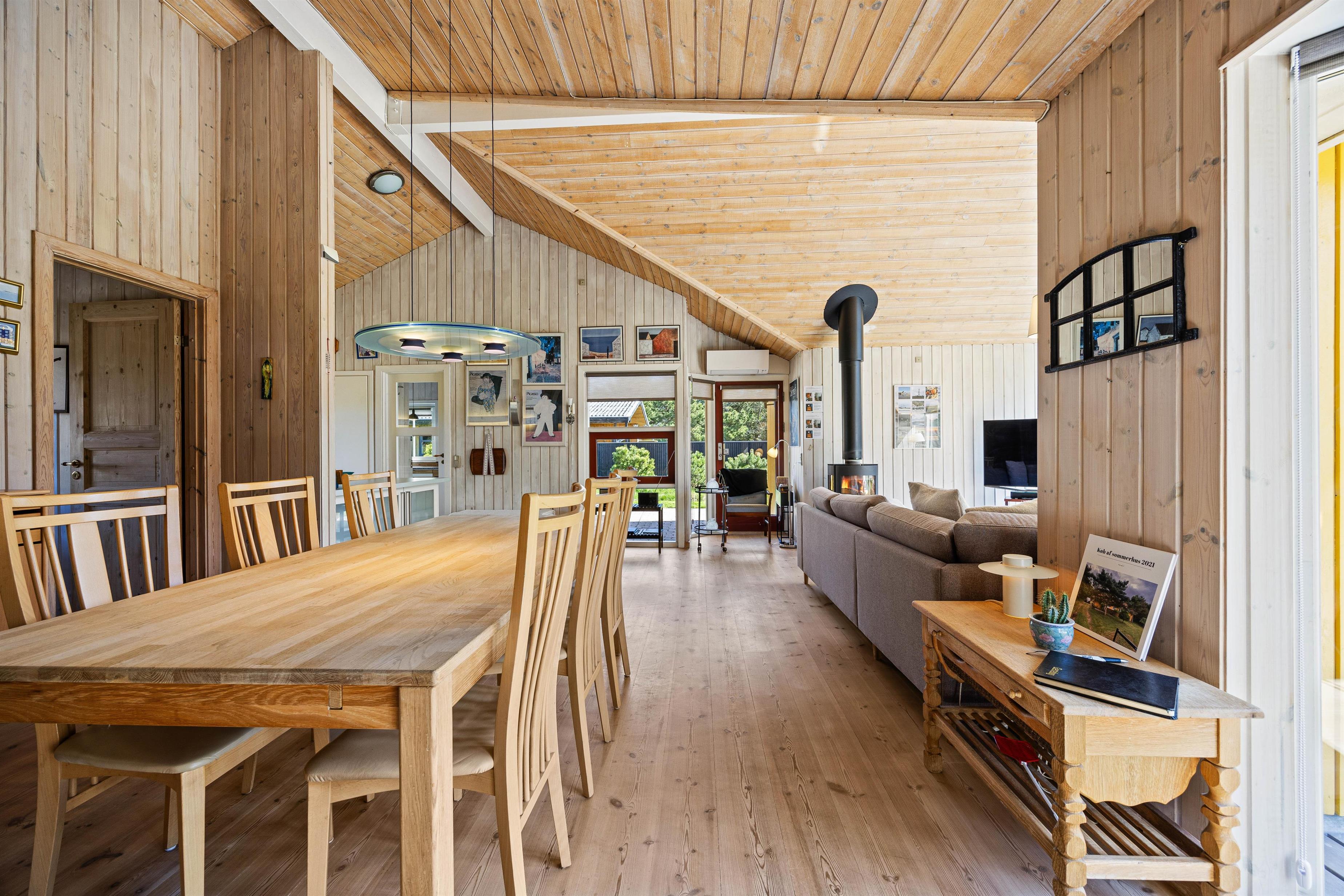 Det velindrettede køkken ligger i forbindelse med spisestuen og opholdsstuen med kip til loft hvor i sammen vil tilbringe gode ferieøjeblikke med hjemmelavede måltider ved spisebordet.