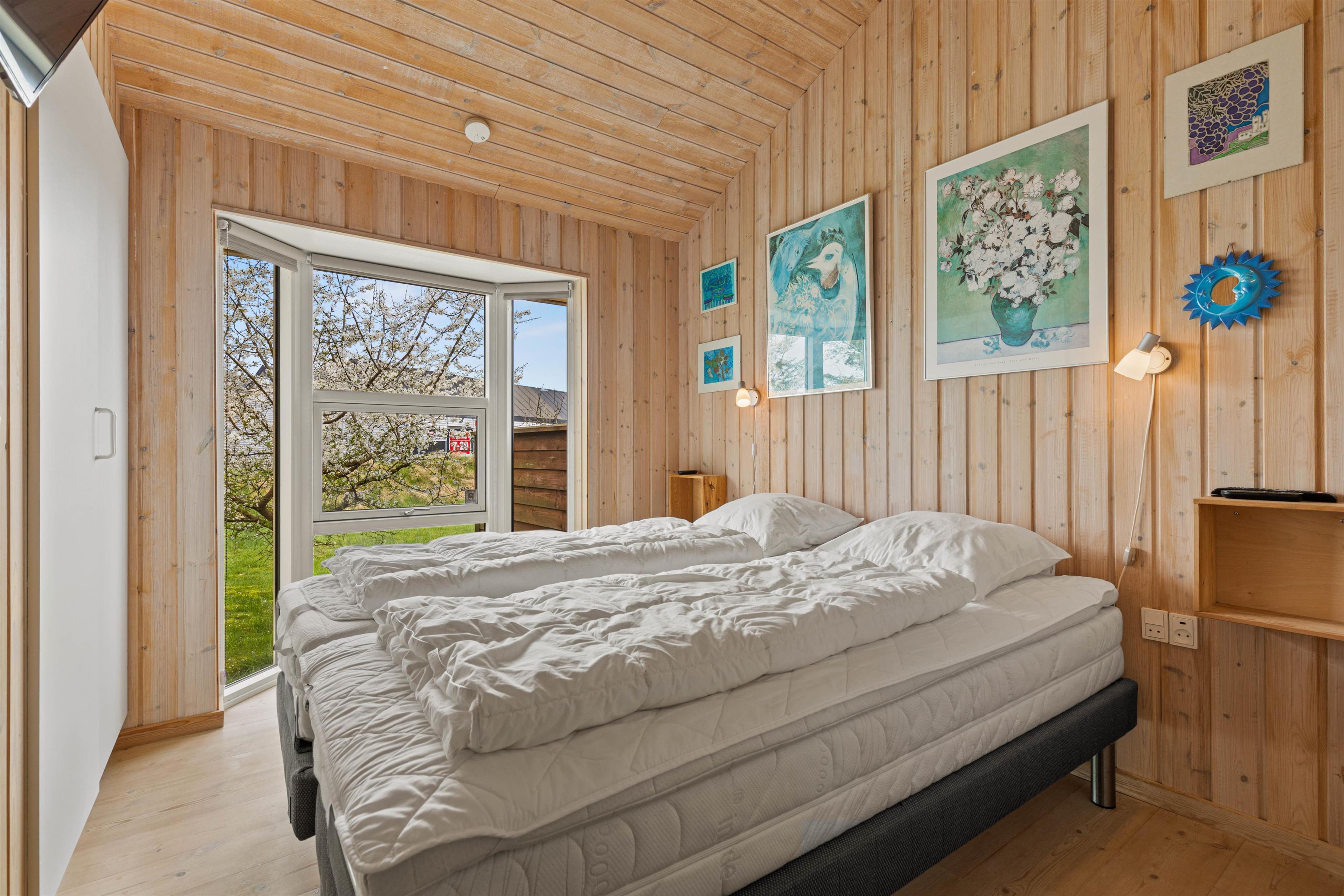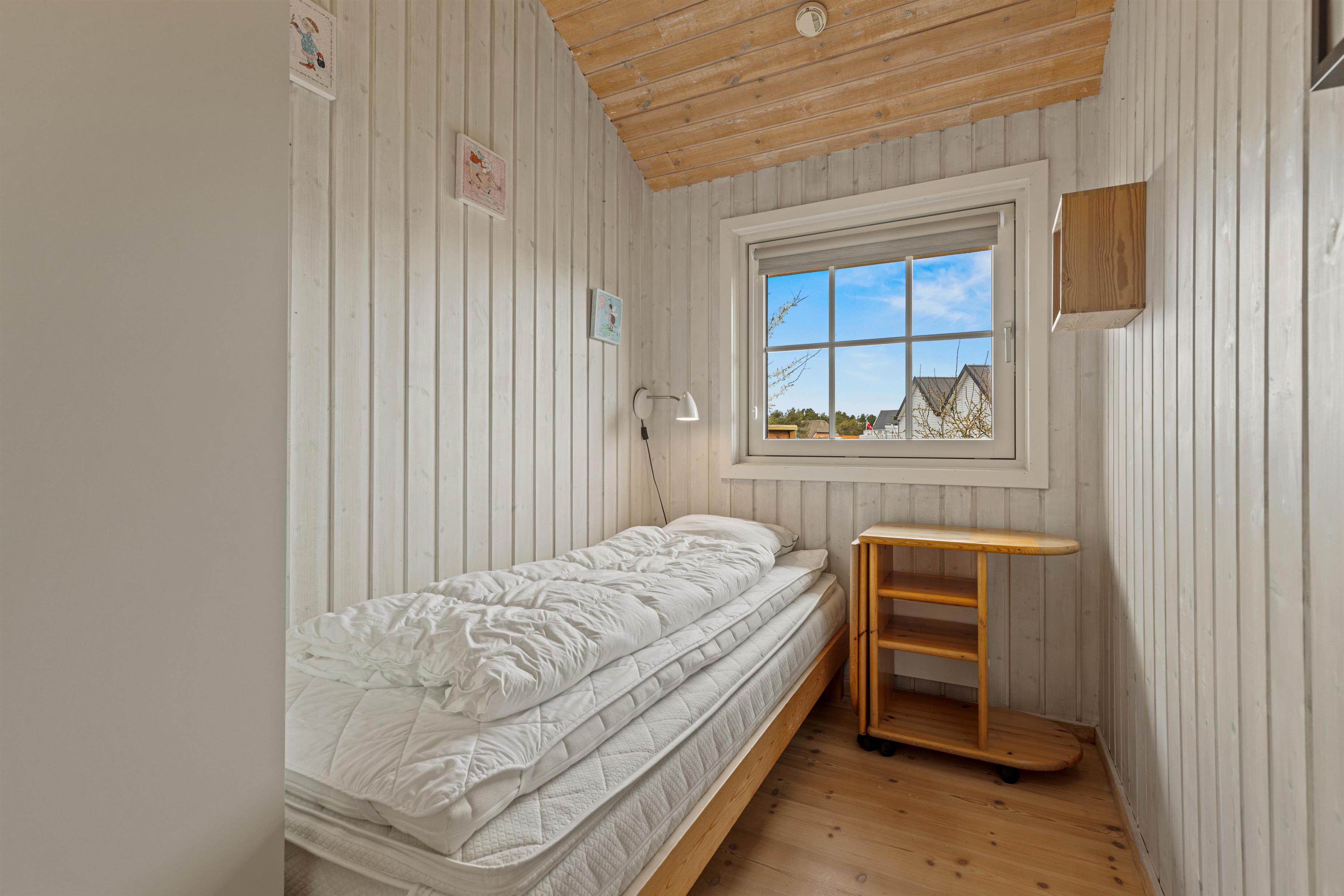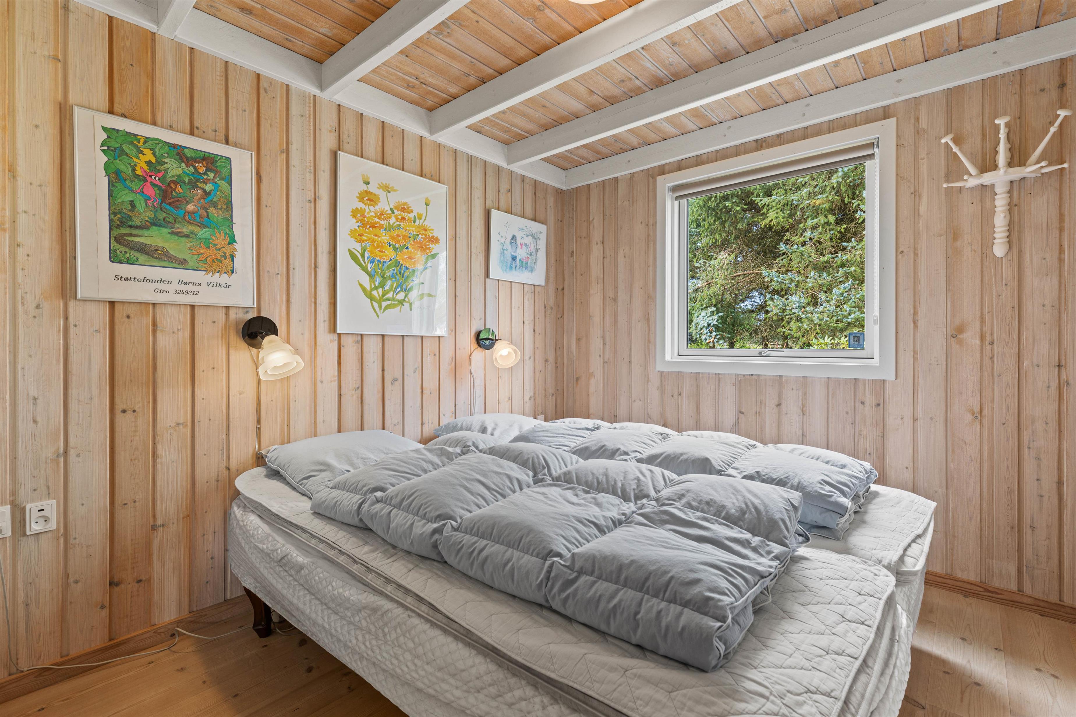 Sommerhuset har tre soveværelser, 2 med dobbeltsenge og 1 med en enkelt seng. I husets badeværelse er der installeret gulvvarme, så ingen fryser fødderne, når der skal børstes tænder om morgenen. Efter en lang gåtur ved stranden eller i naturen, bliver det godt med en afslappende tur i husets spabad og sauna.