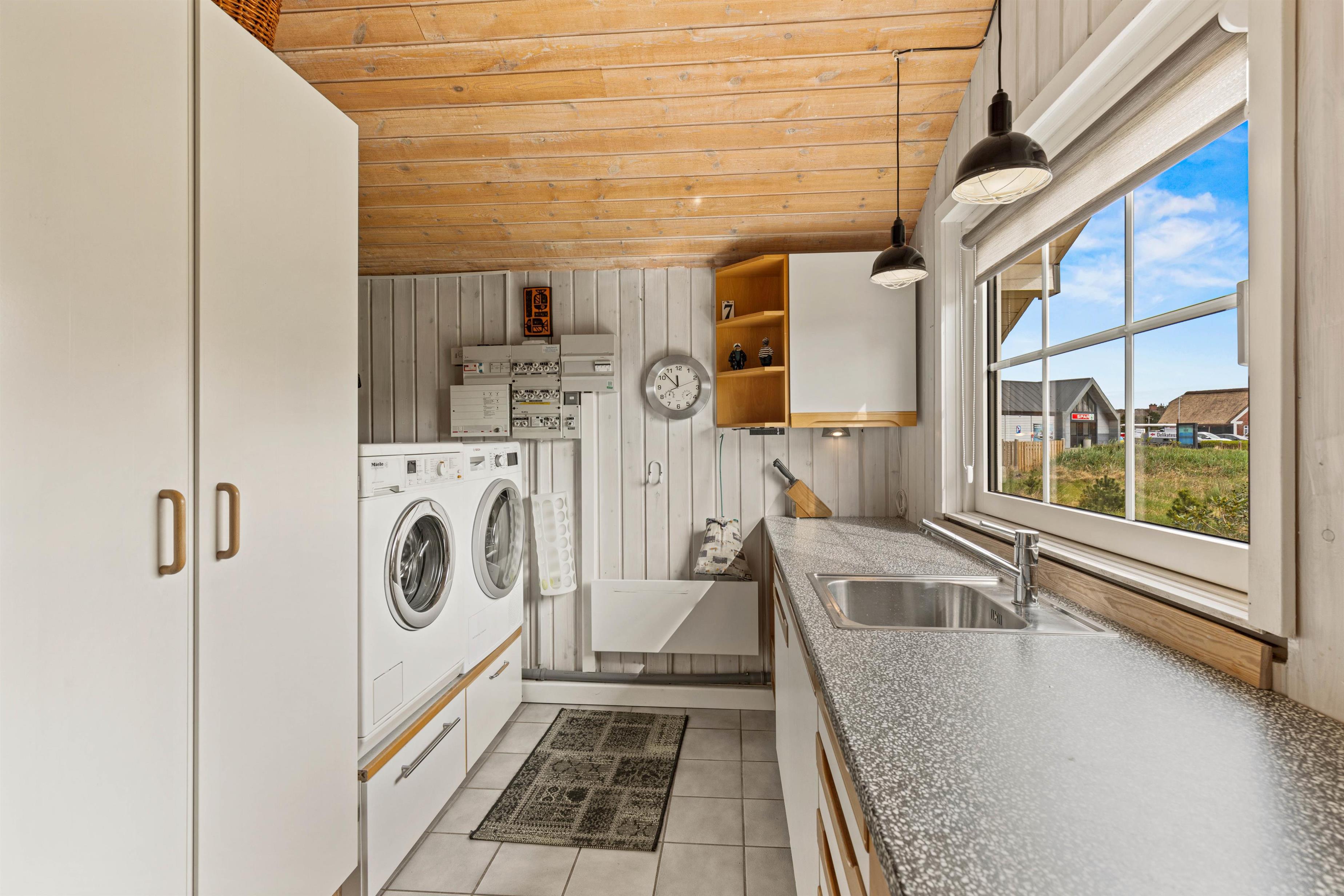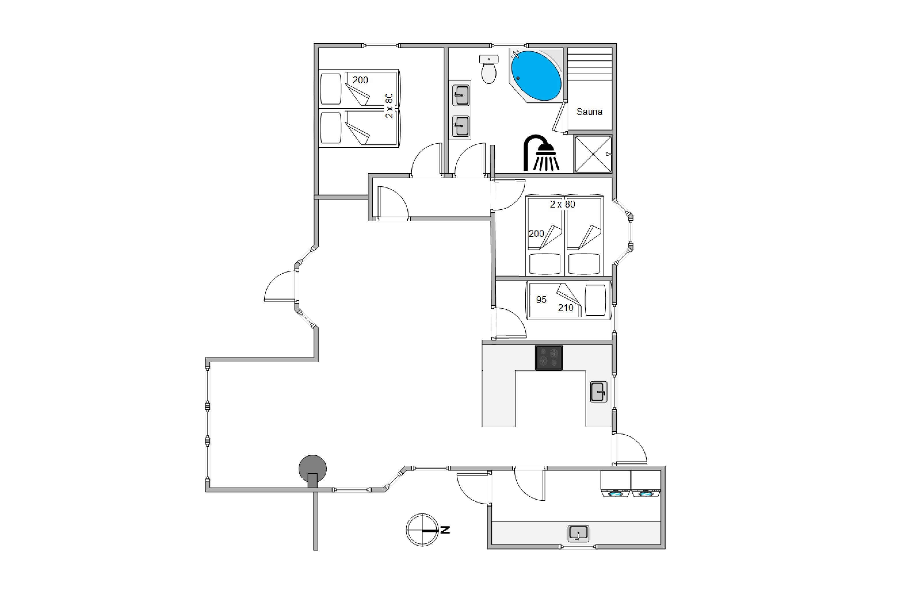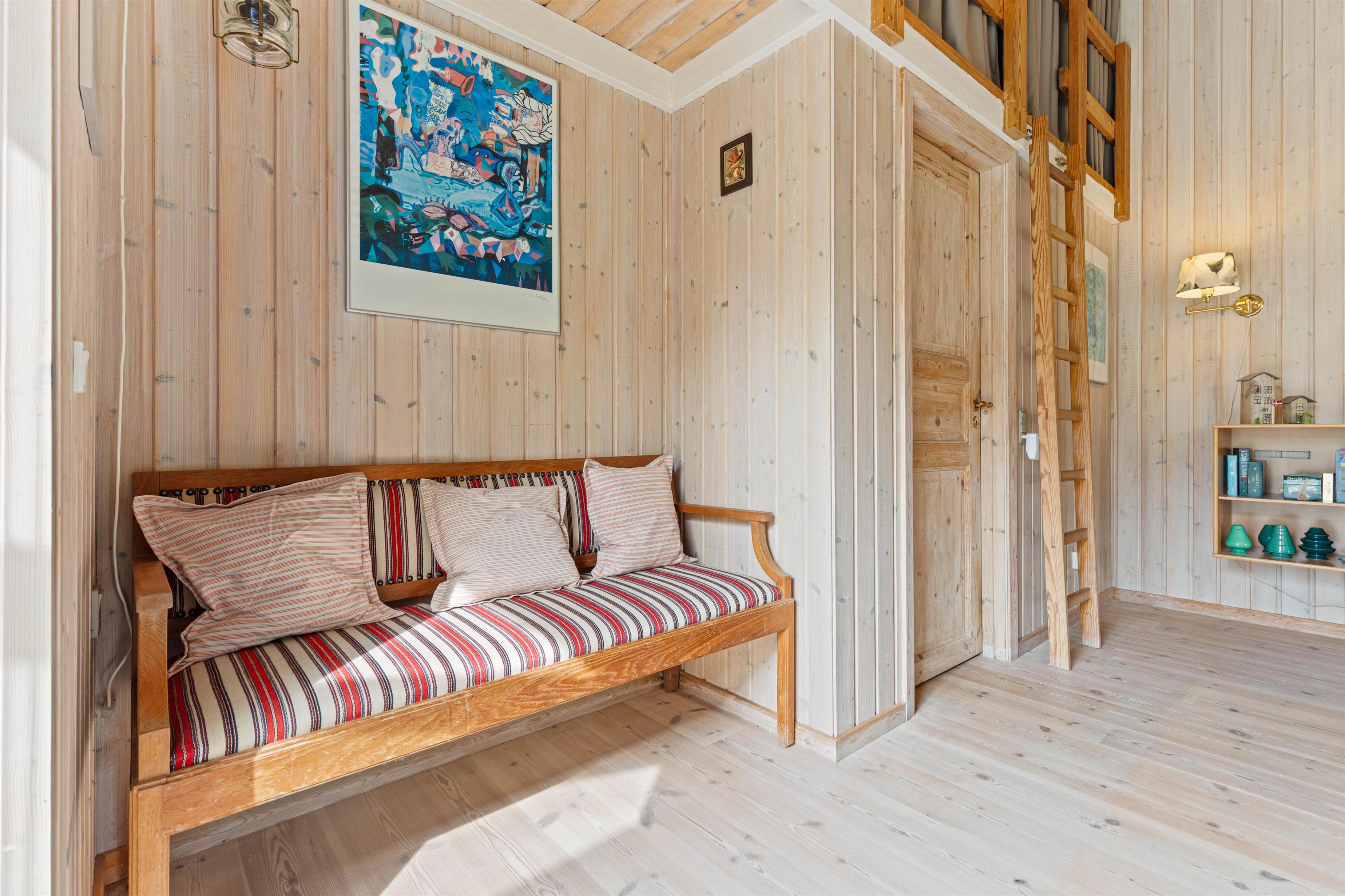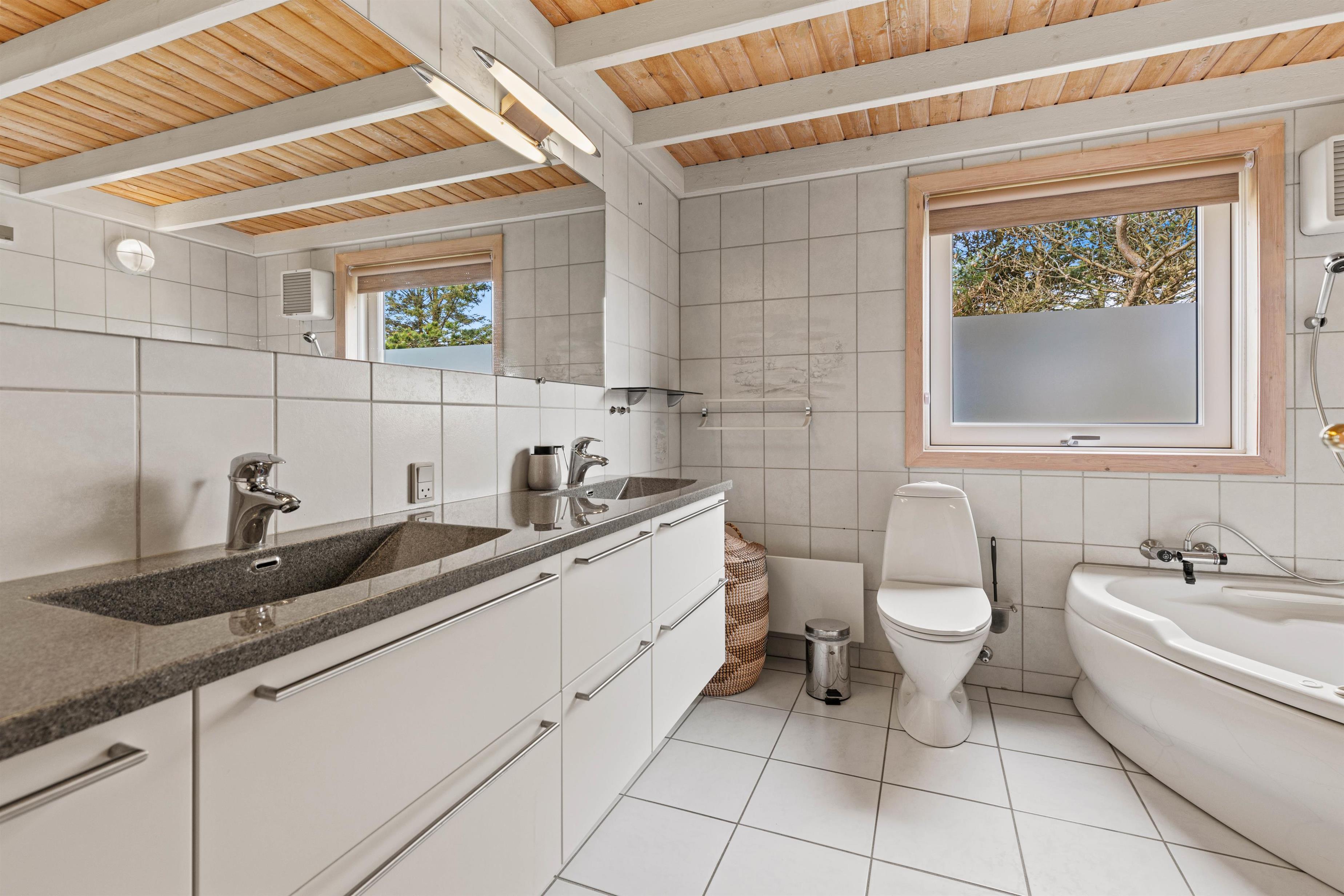 Sommerhuset har tre soveværelser, 2 med dobbeltsenge og 1 med en enkelt seng. I husets badeværelse er der installeret gulvvarme, så ingen fryser fødderne, når der skal børstes tænder om morgenen. Efter en lang gåtur ved stranden eller i naturen, bliver det godt med en afslappende tur i husets spabad og sauna.