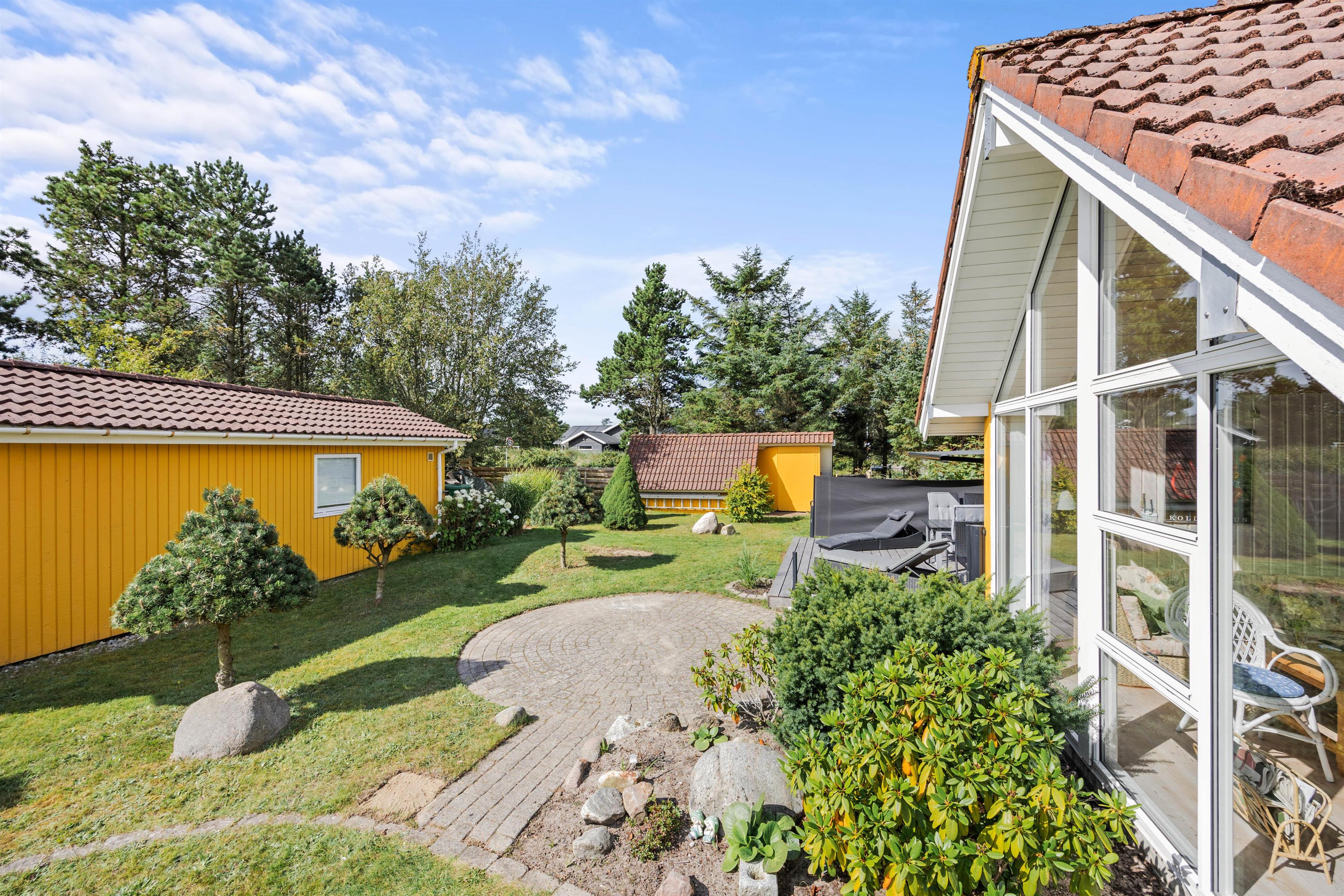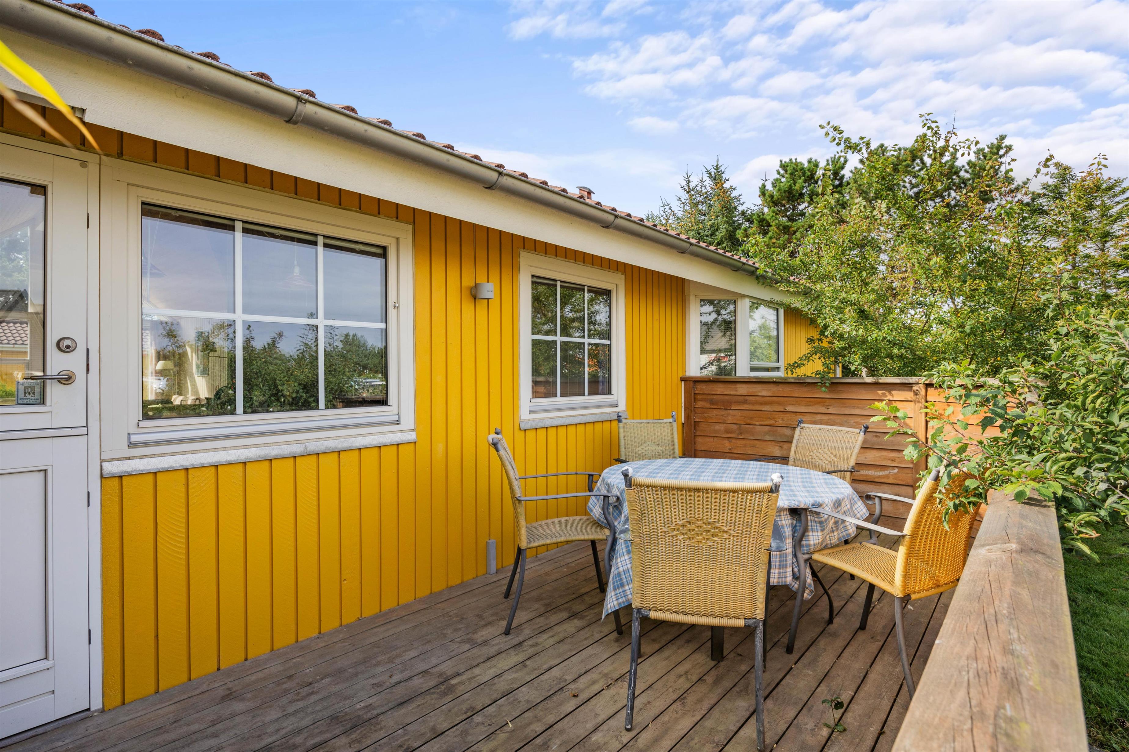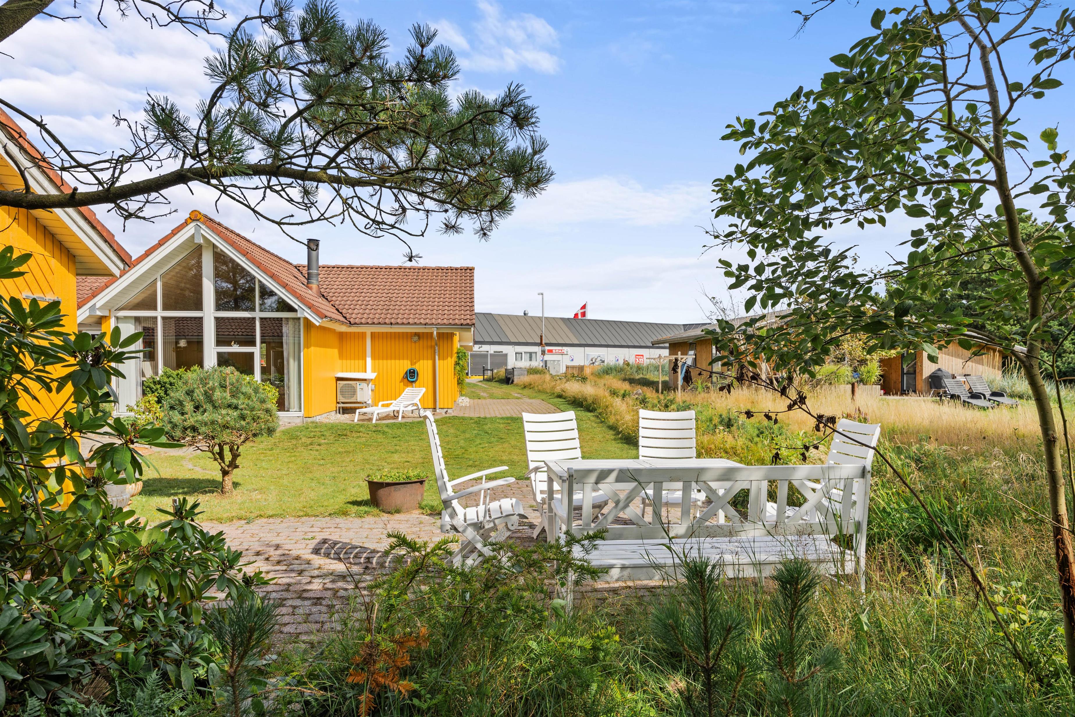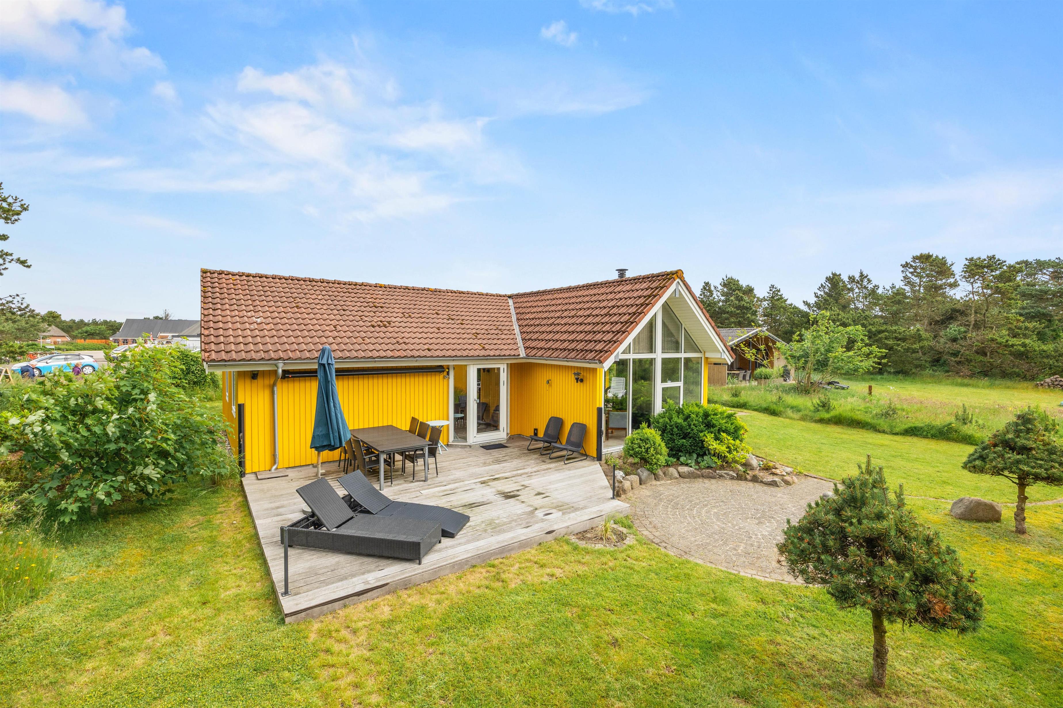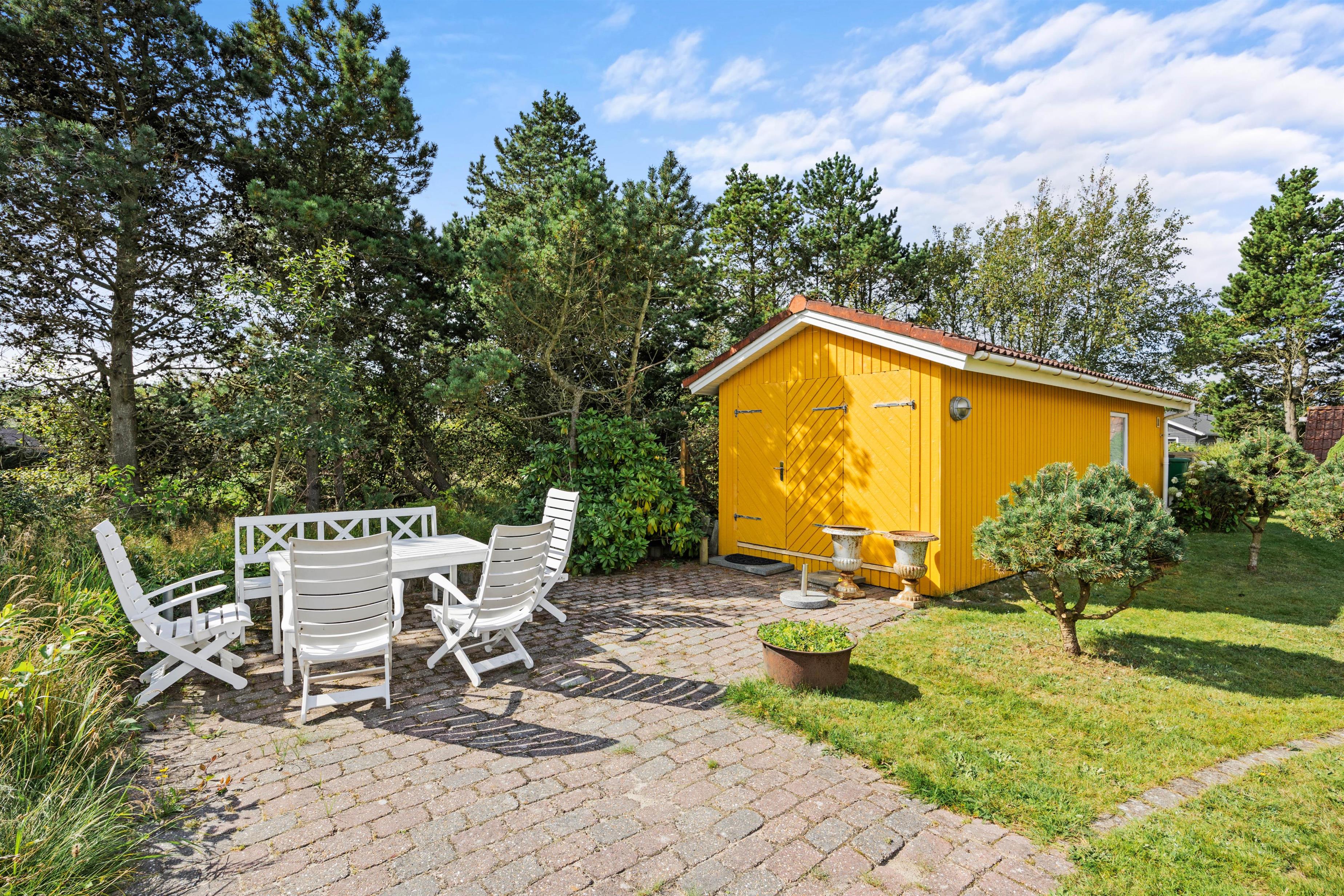 Feriehuset råder over 2 gode terrasser - én foran huset og én bagved. Begge terrasser er udstyret med havemøbler. Den bagerste terrasse er også udstyret med 2 liggestole og har en udsigt til en dejlig velanlagt naturgrund. Her kan I nyde solen og opleve hyggelige aftentimer, måske med en dejlig grillmenu.