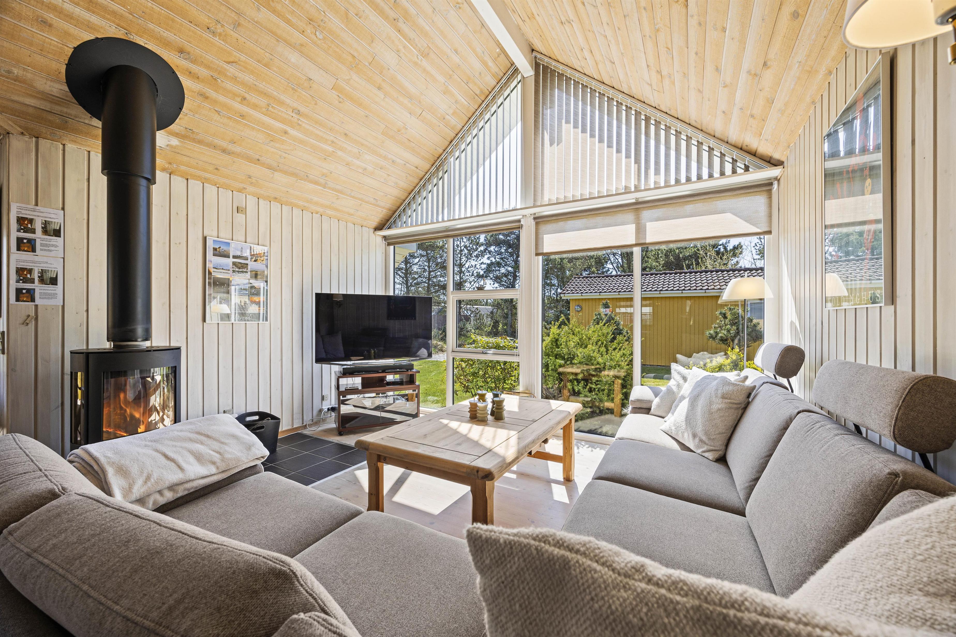 Charmerende og hyggelig atmosfære med brændeovn