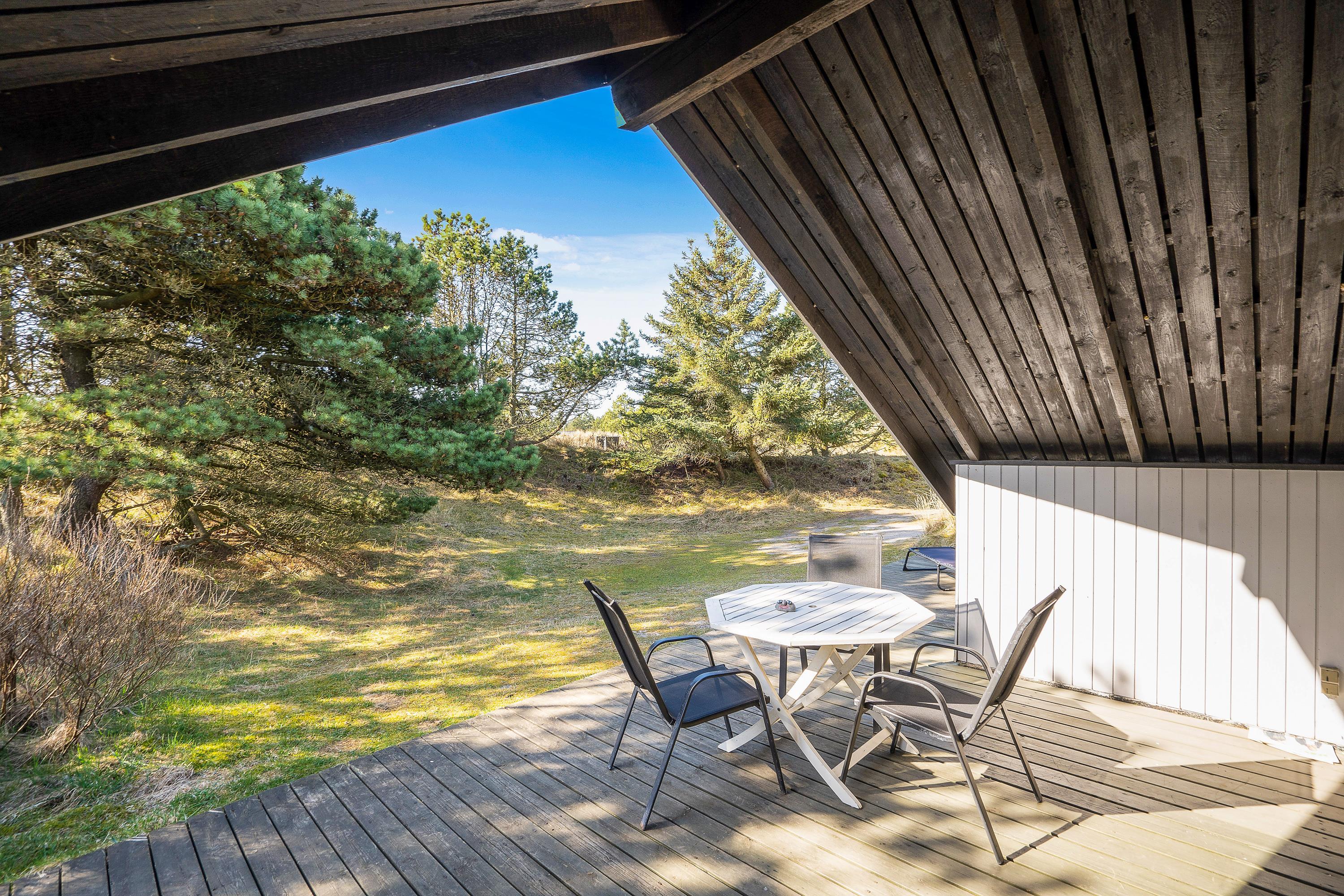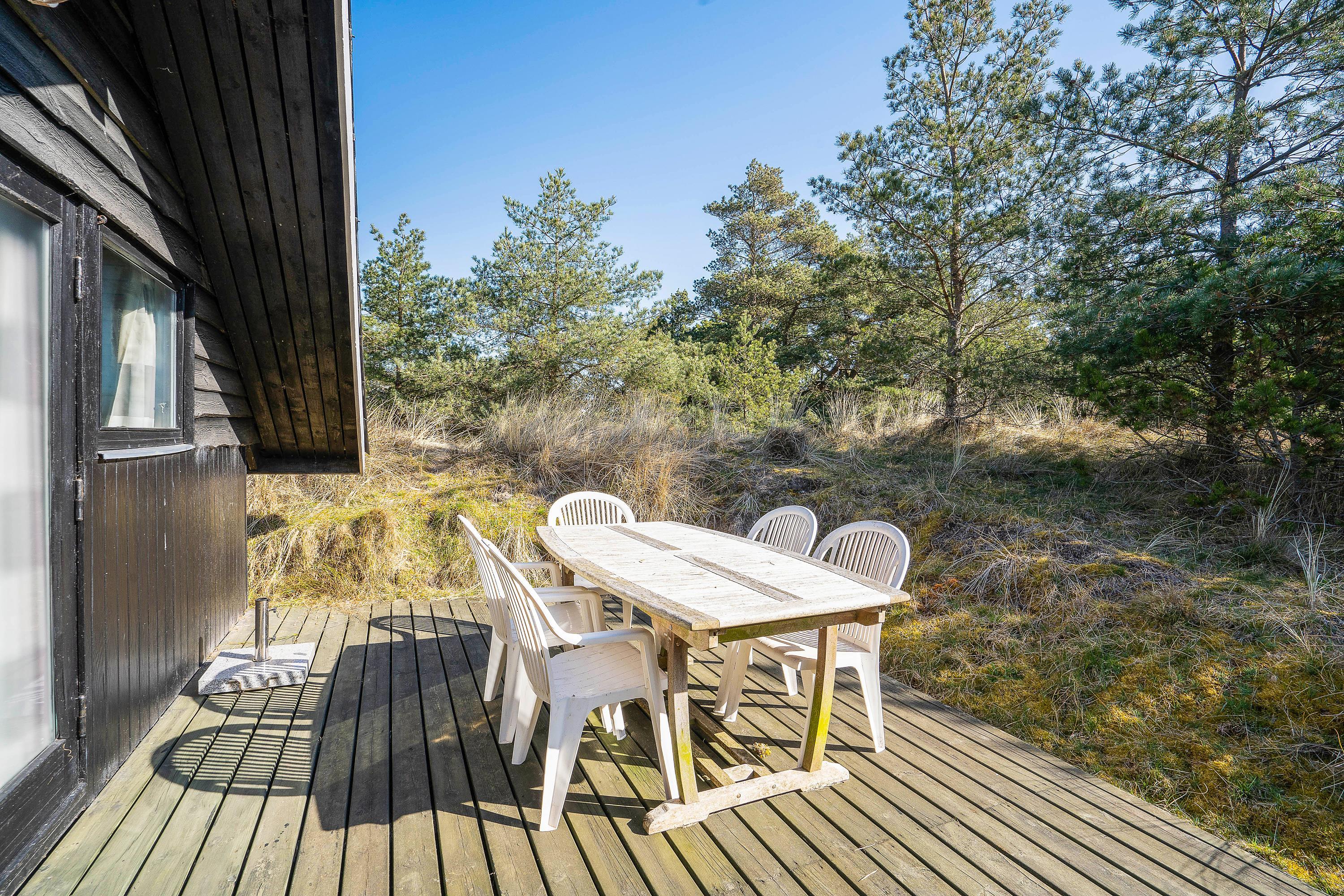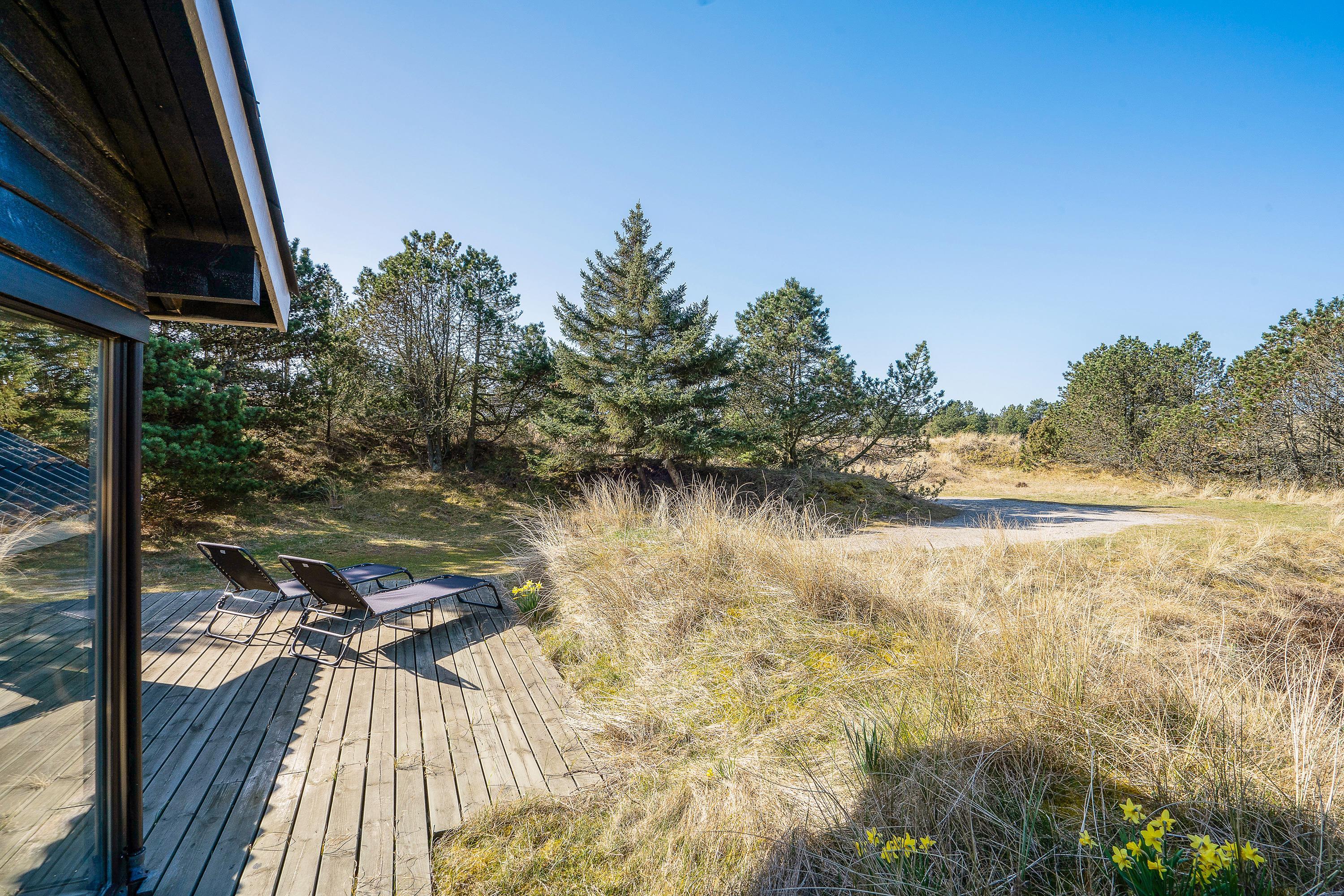På terrassen har I både havemøbler og liggestole, som I kan finde jer godt til rette i. Læn jer tilbage og slap af til lyden af fuglefløjt, vindens susen i træerne og feriefreden. Mens I nyder ferien fra terrassen, vil jeres hunde helt sikkert elske at snuse nysgerrigt rundt på den store naturgrund.