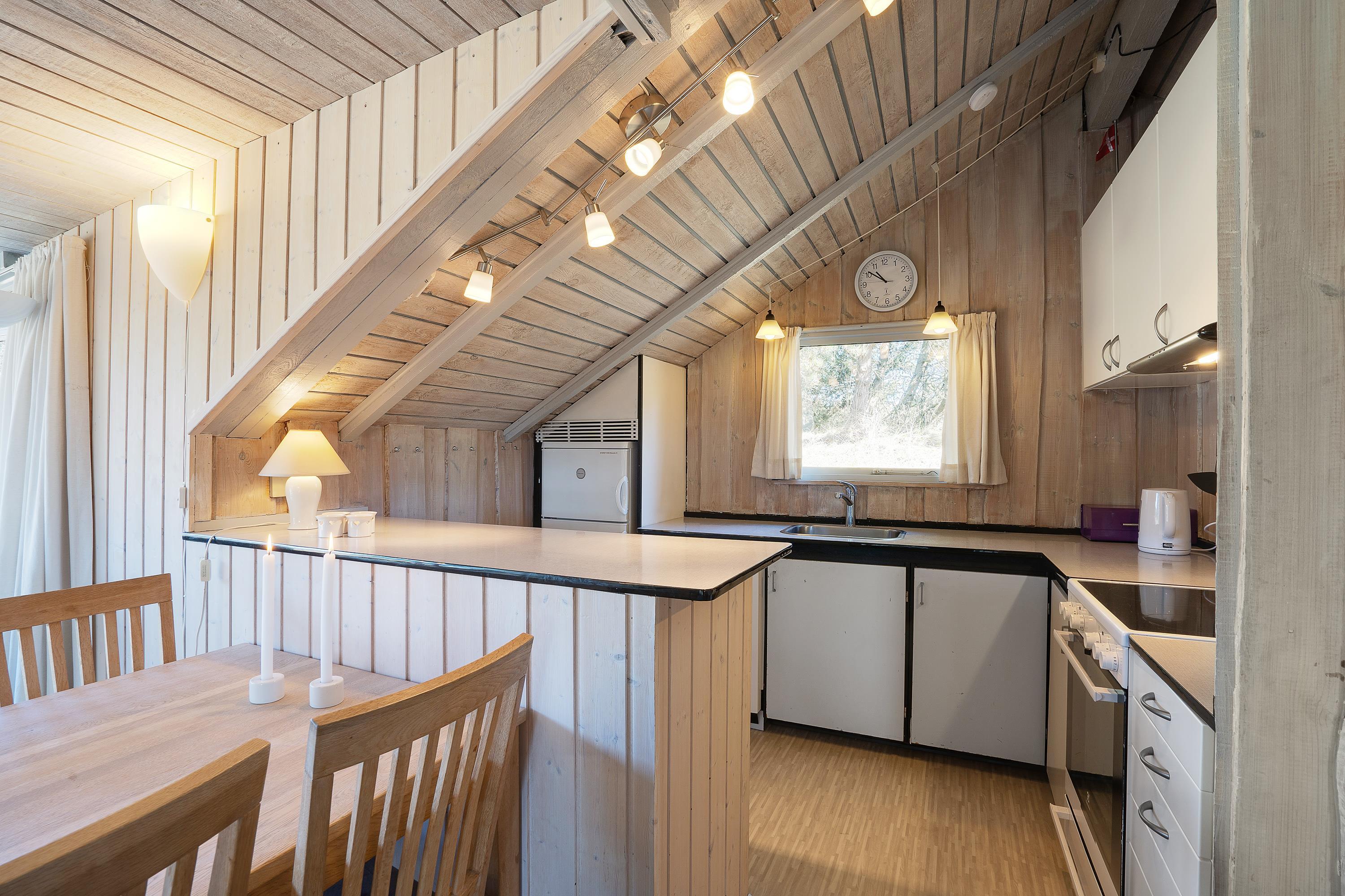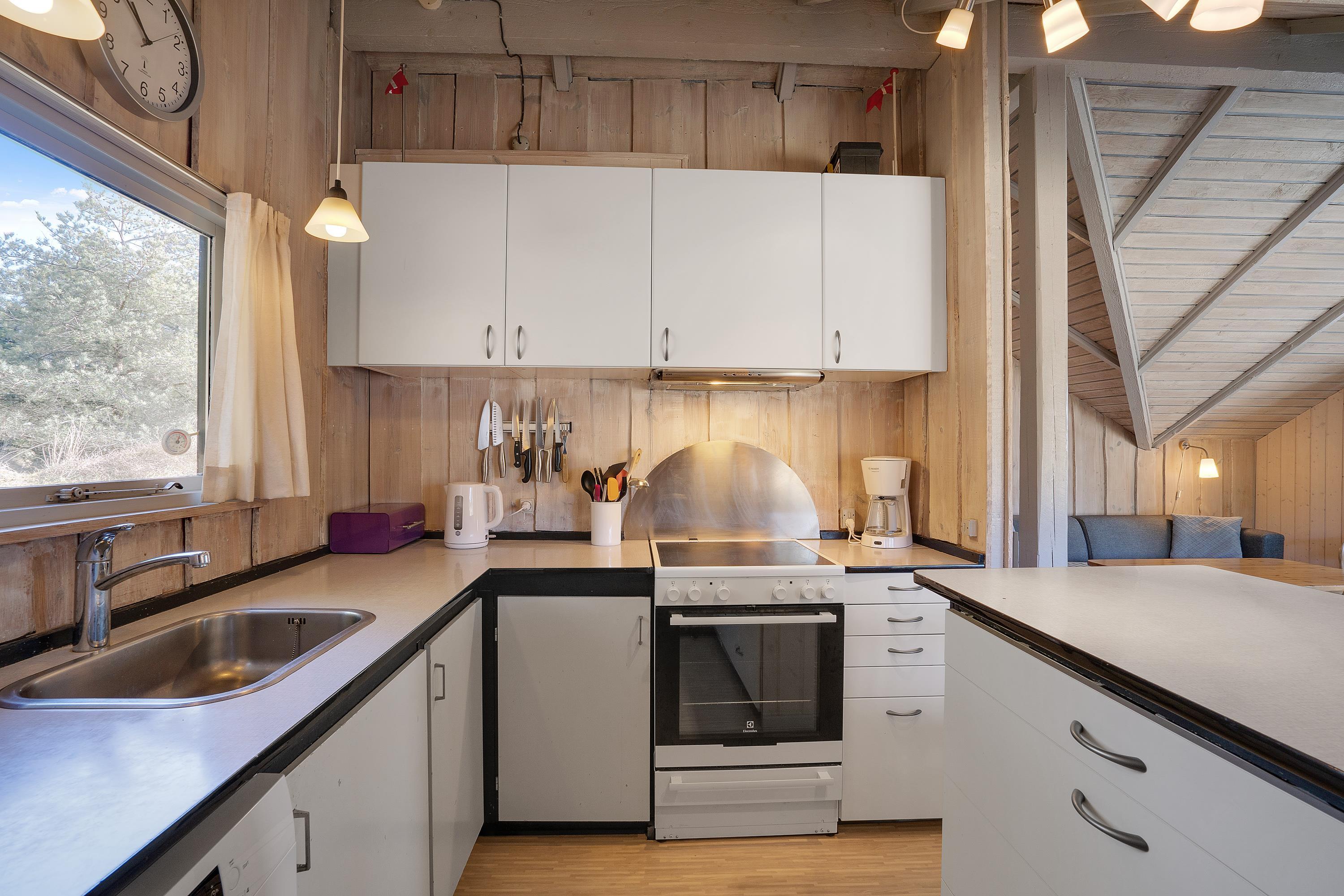 Især i køkkenalrummet er hyggen i centrum. Her kan hele familien samles til hyggelige feriestunder sammen, og amatørkokkene kan stå for madlavningen i køkkenet, mens andre slapper af i stuen. Efter madlavningen står opvaskemaskinen for opvasken, så I kan tilbringe endnu mere ferietid sammen. Om aftenen kan I streame film på tv’et via chromecast.