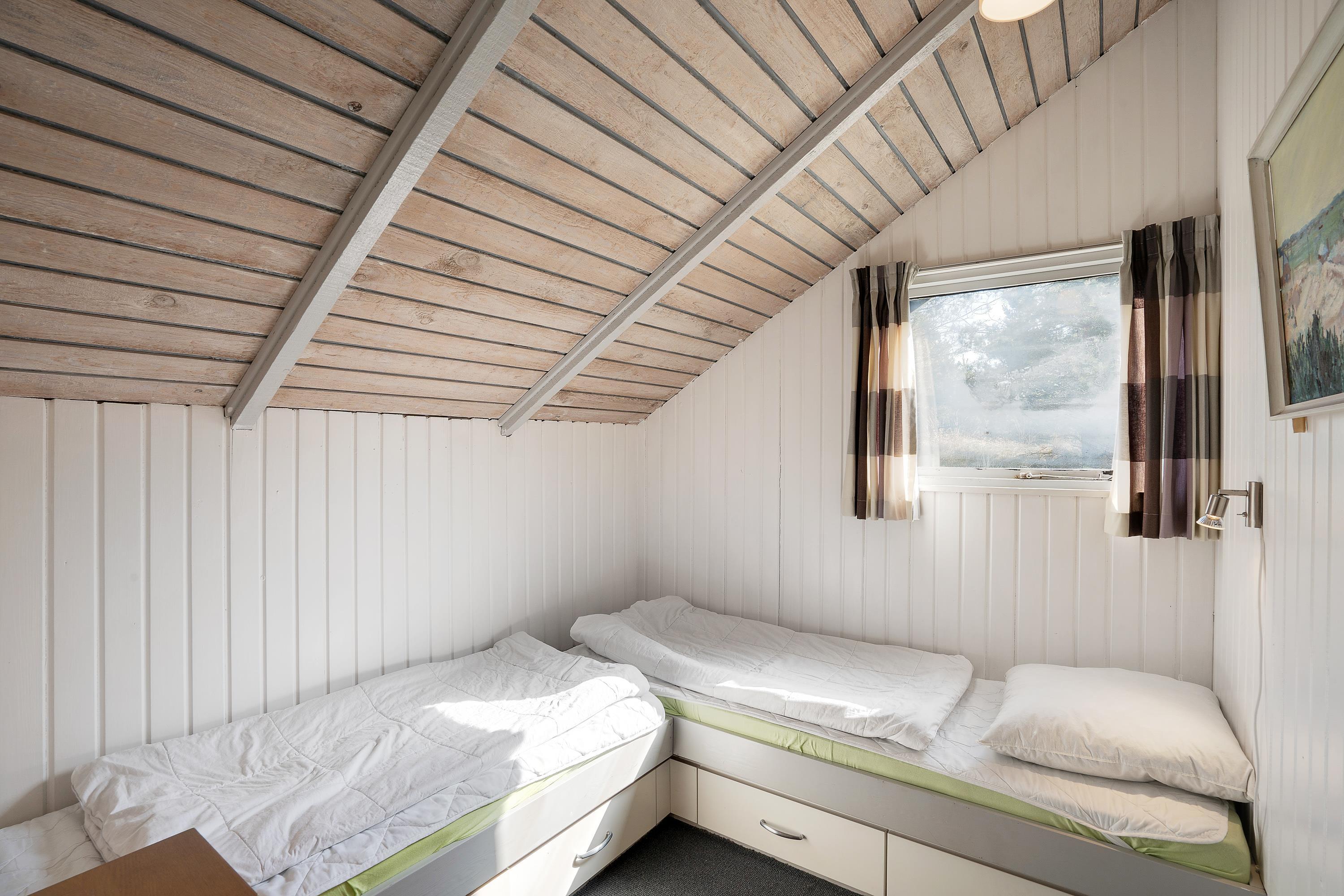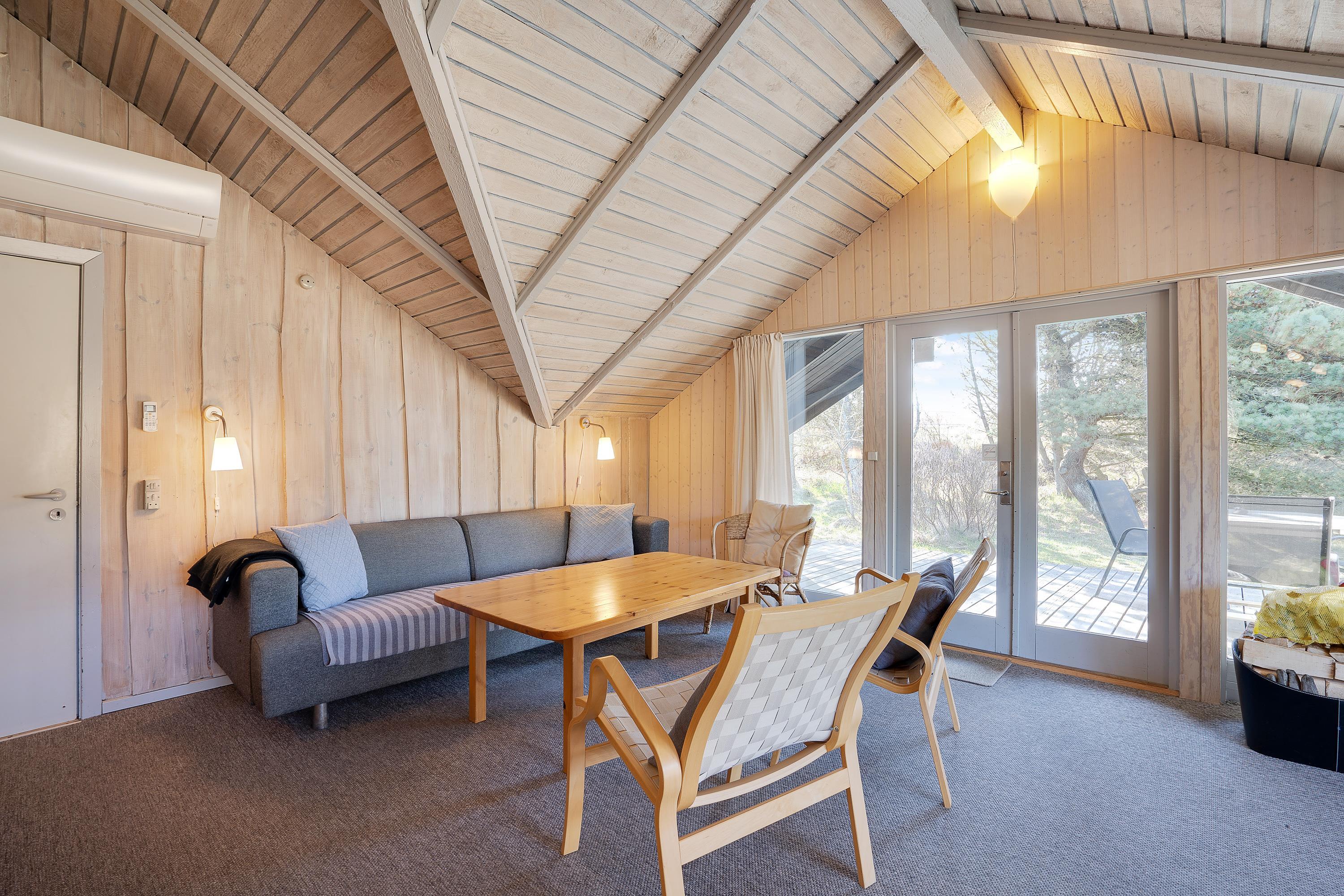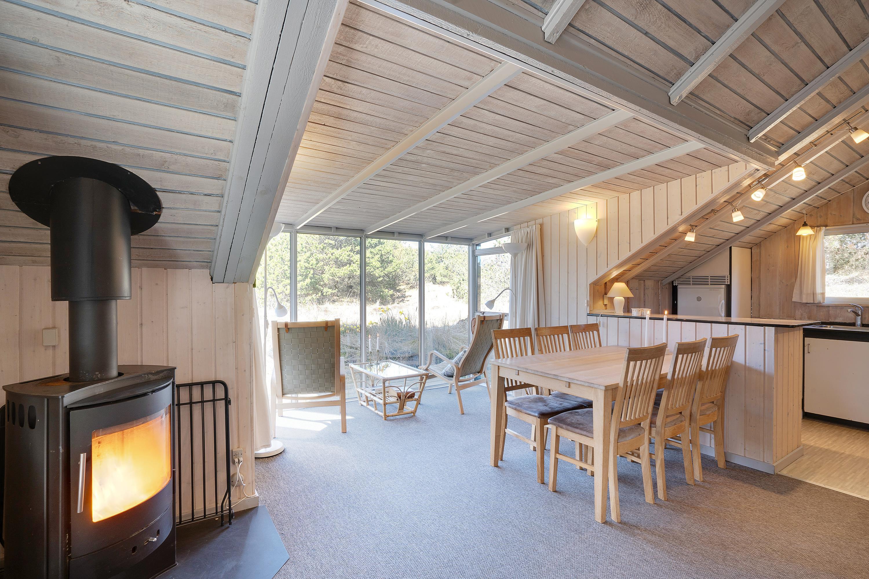 Hygge kommer I ikke til at mangle i sommerhuset på Bakkedraget 13 i Blåvand. Feriehuset har en enkel indretning med lyse trævægge og -lofter, et godt lysindfald og loft til kip, der tilsammen giver en rar ferieatmosfære.