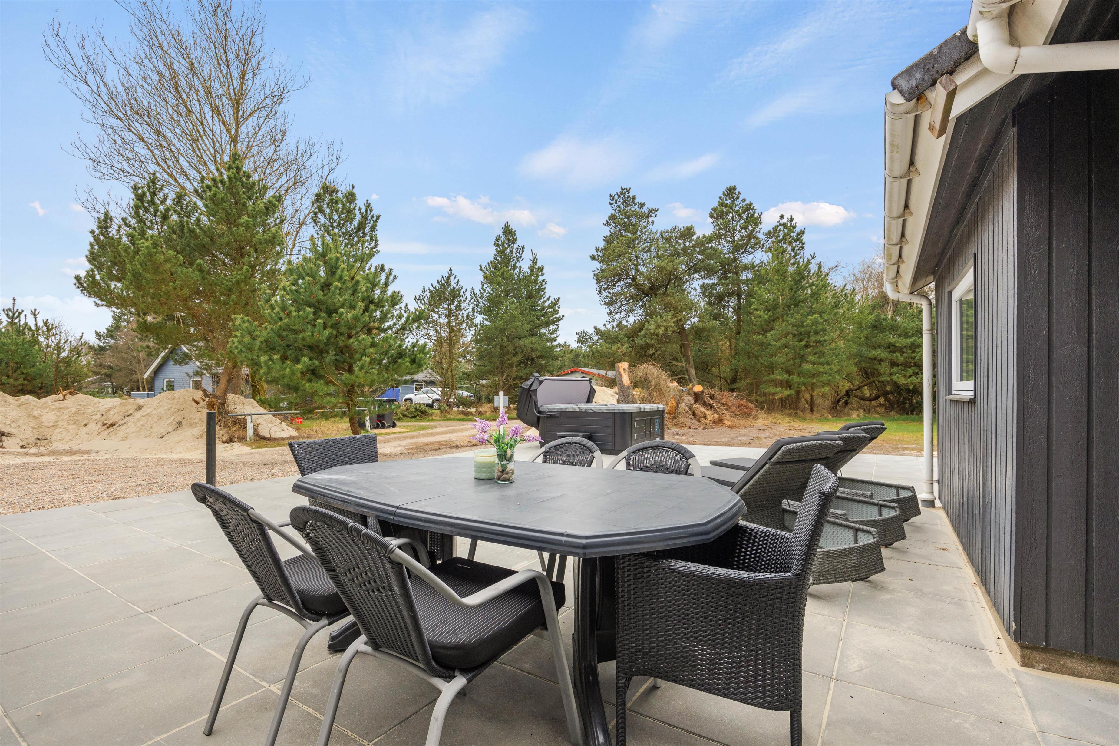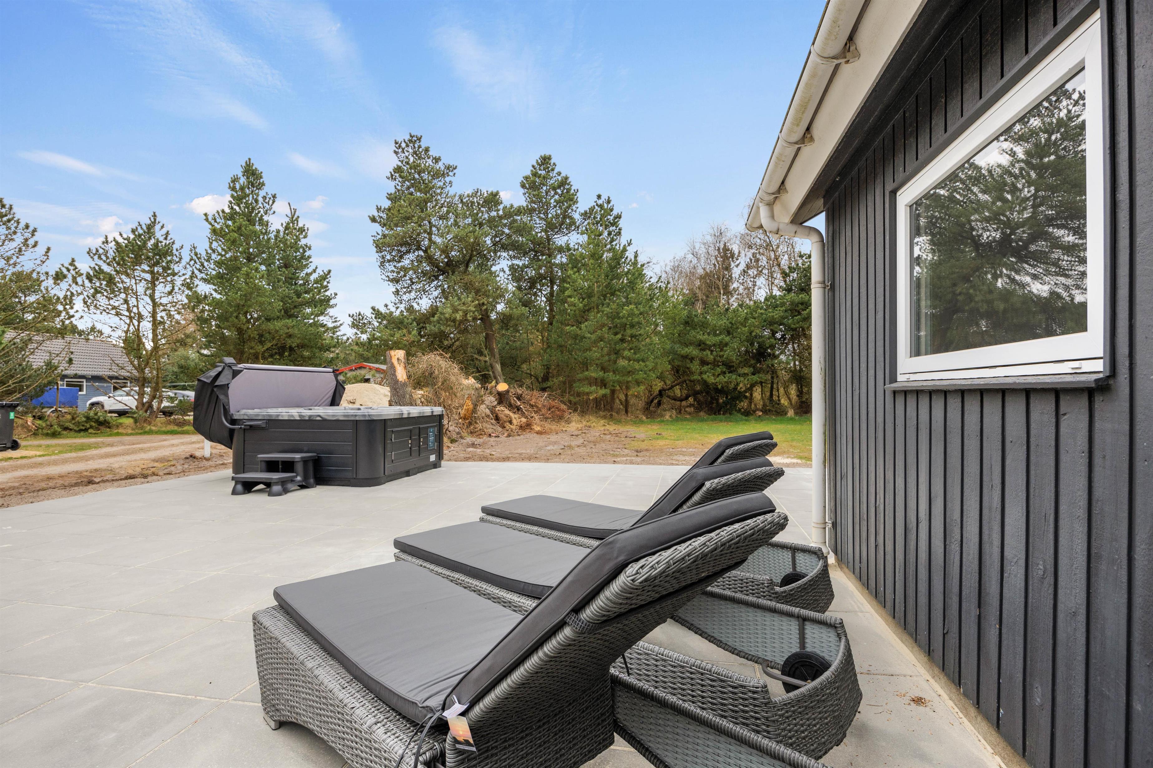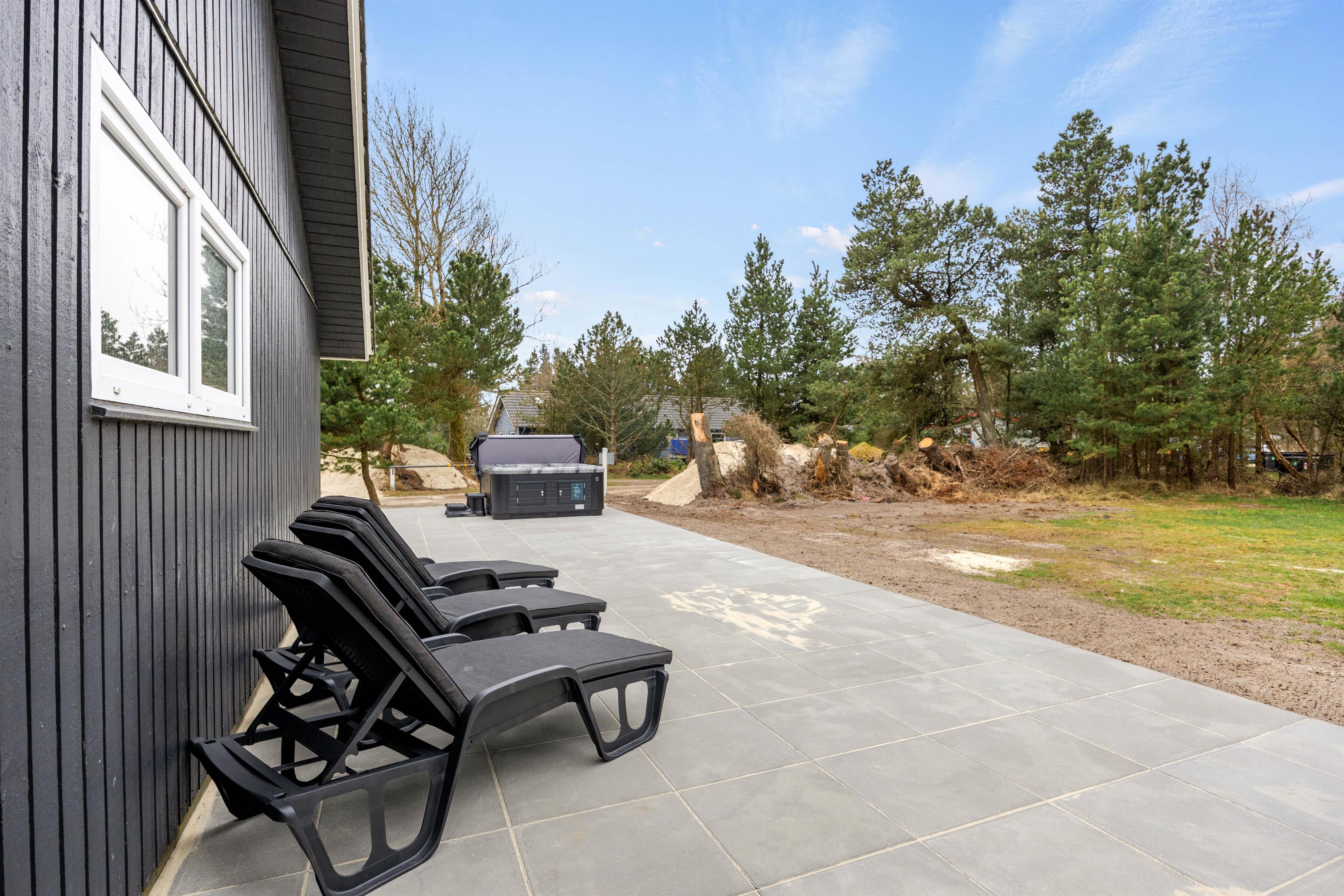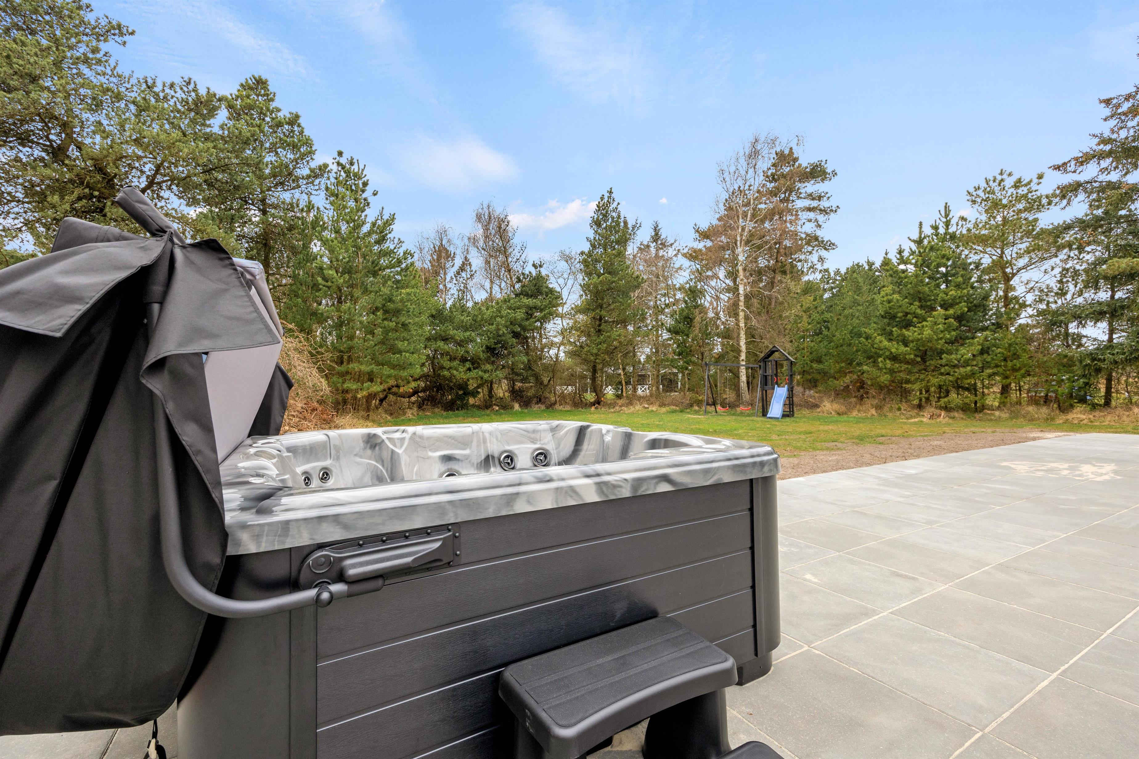 Udenfor kan I også komme helt ned i gear – her venter jer en udespa samt en dejlig terrasse, hvor man kan slappe af hele dagen. Imens I ligger og hygger jer på feriehusets liggestole, eller sidder med en god bog og en kop kaffe på terrassen, så er børnene godt beskæftigede med leg, da her både er gynger, sandkasse og en flad grøn græsplæne, hvor man sagtens kan spille lidt bold og samle appetit til maden.