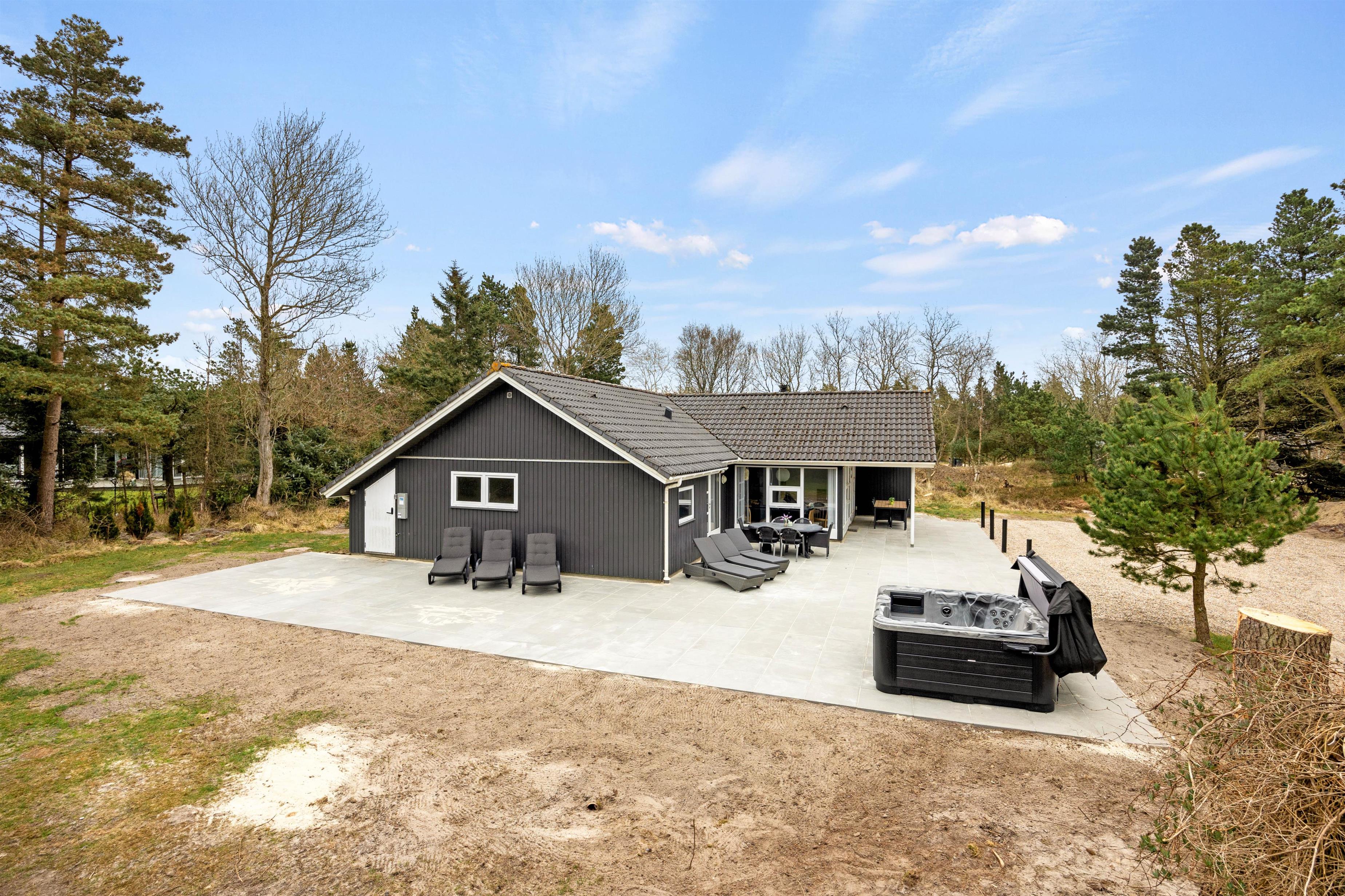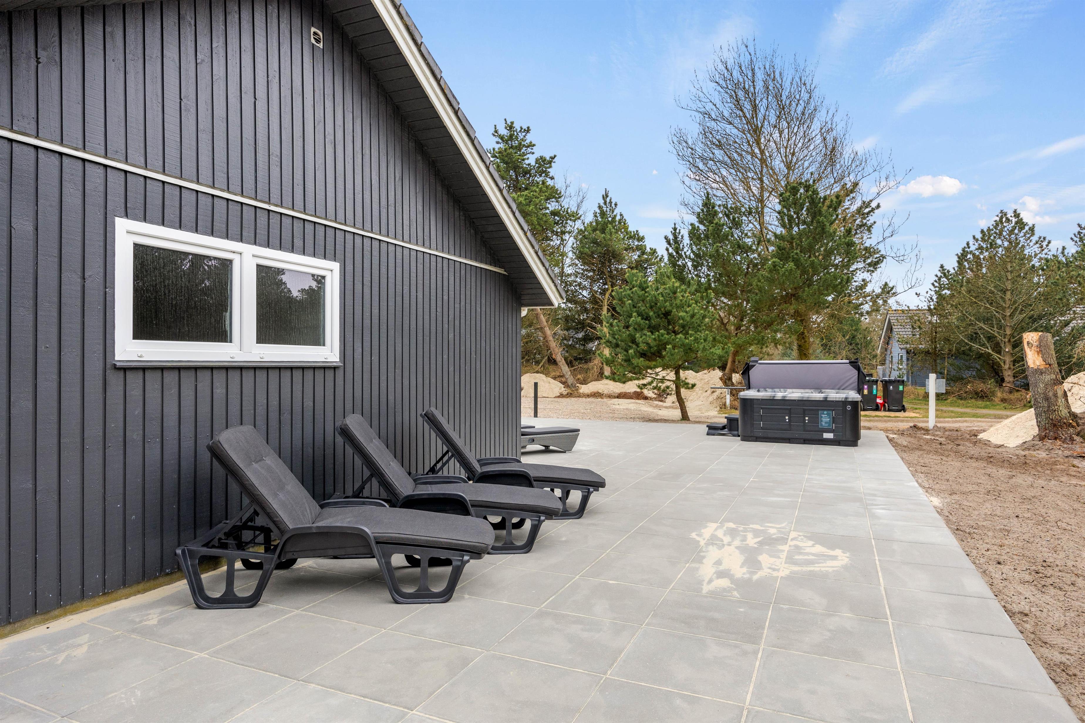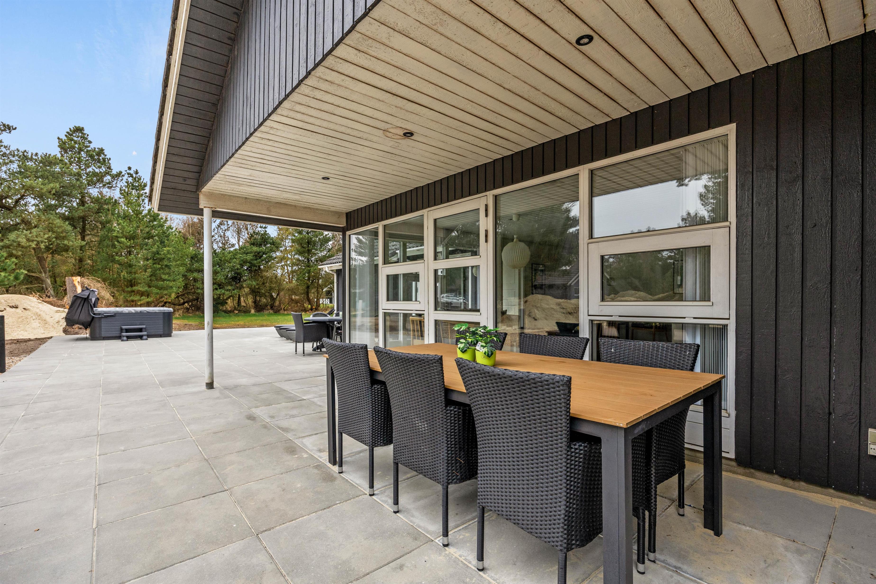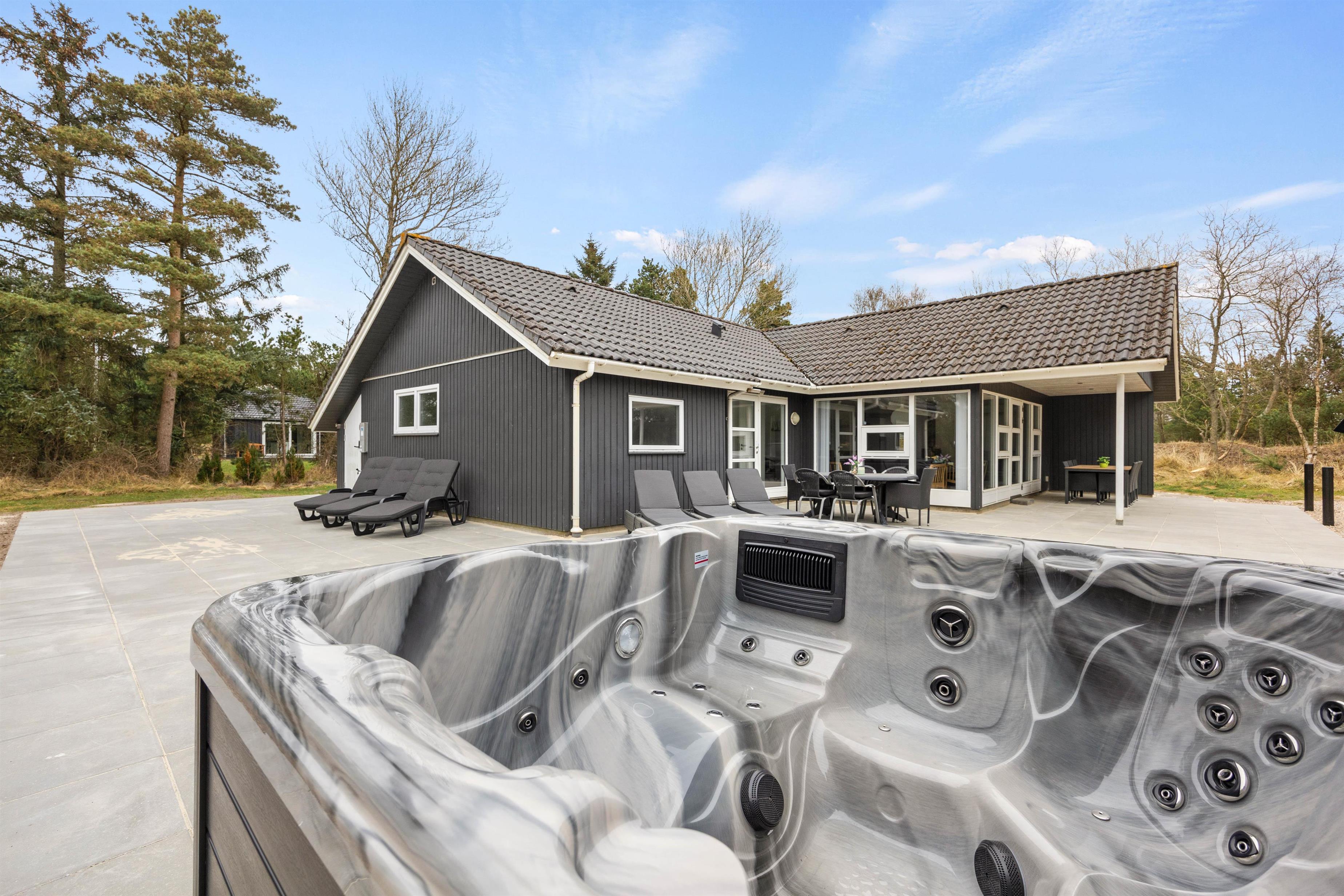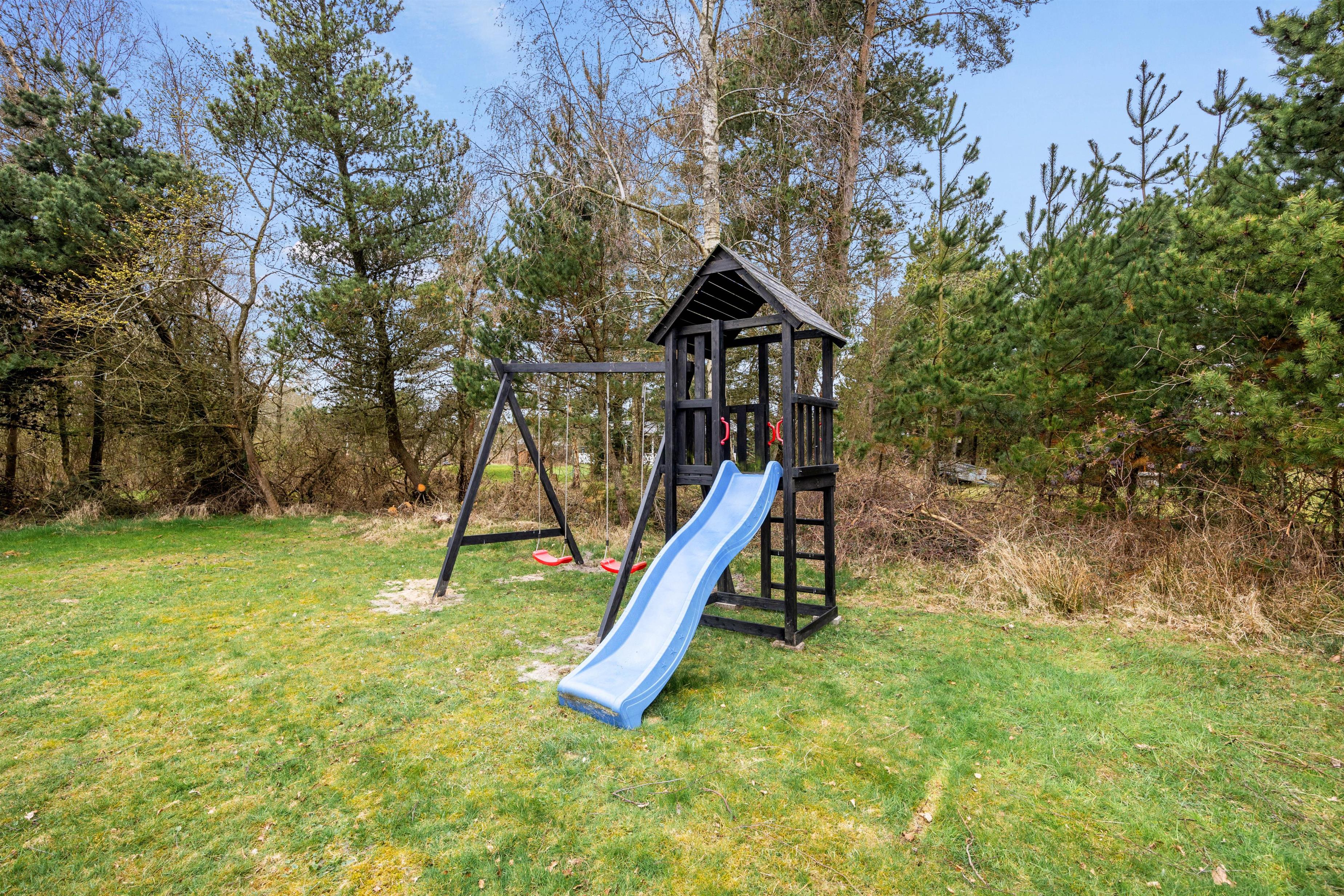 Udenfor kan I også komme helt ned i gear – her venter jer en udespa samt en dejlig terrasse, hvor man kan slappe af hele dagen. Imens I ligger og hygger jer på feriehusets liggestole, eller sidder med en god bog og en kop kaffe på terrassen, så er børnene godt beskæftigede med leg, da her både er gynger, sandkasse og en flad grøn græsplæne, hvor man sagtens kan spille lidt bold og samle appetit til maden.