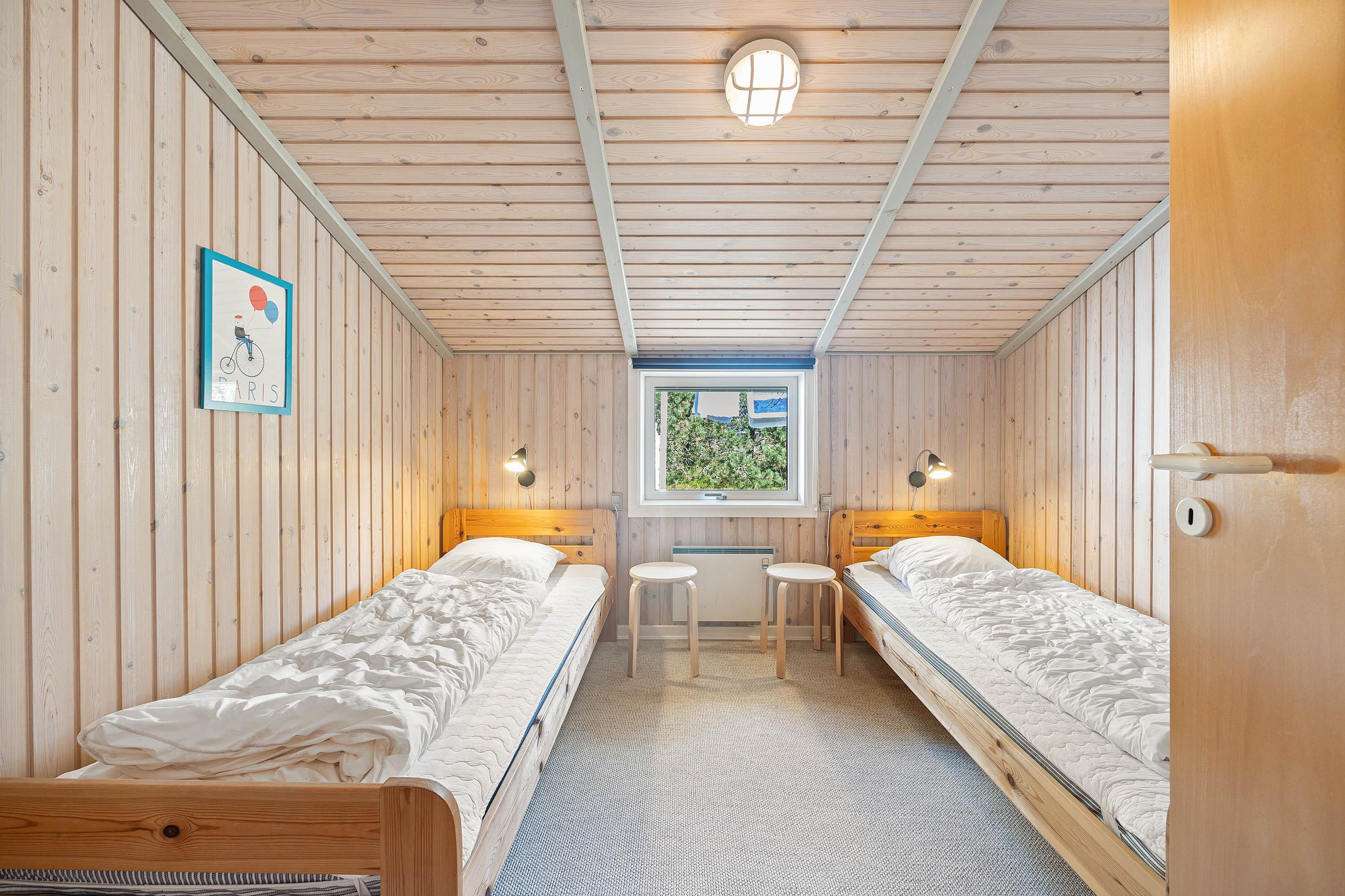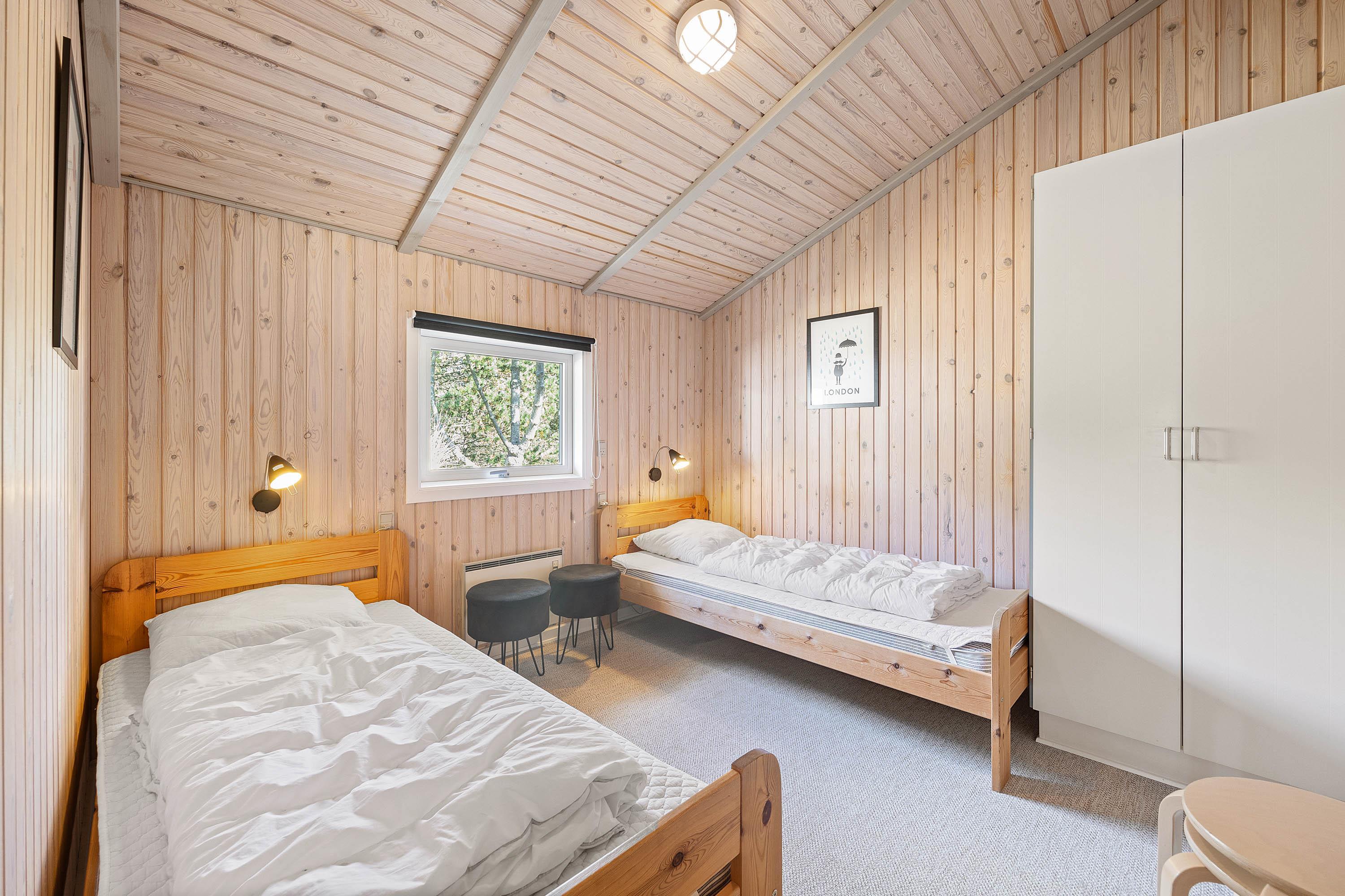 Derudover er der i sommerhuset 4 gode soveværelser, som I kan søge mod om aftenen, når en skøn feriedag lakker mod enden, så I kan samle ny energi til jeres næste feriedag. 2 af soveværelserne er indrettet med 2 enkeltsenge hver, mens de andre 2 soveværelser er indrettet med en dobbeltseng hver.