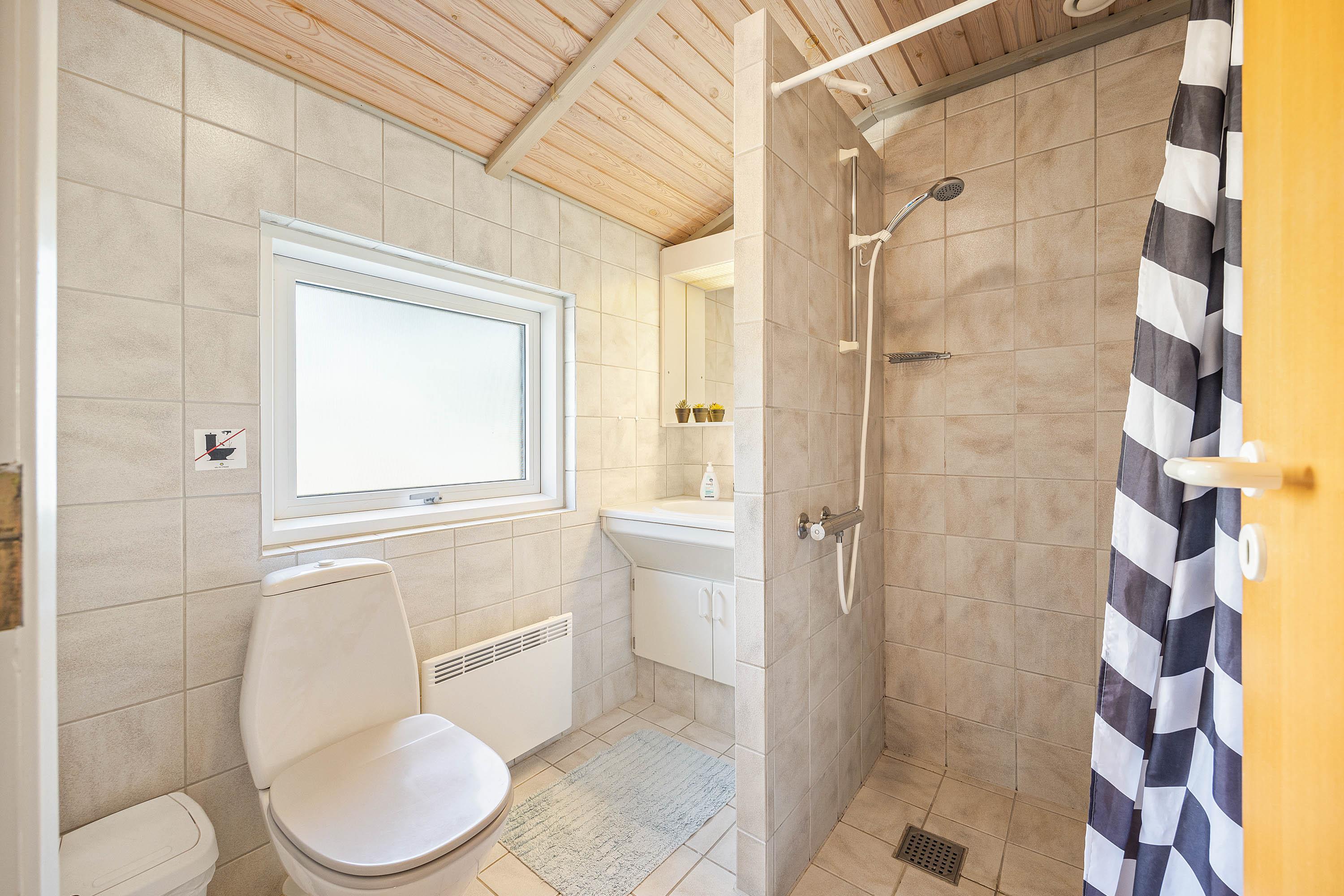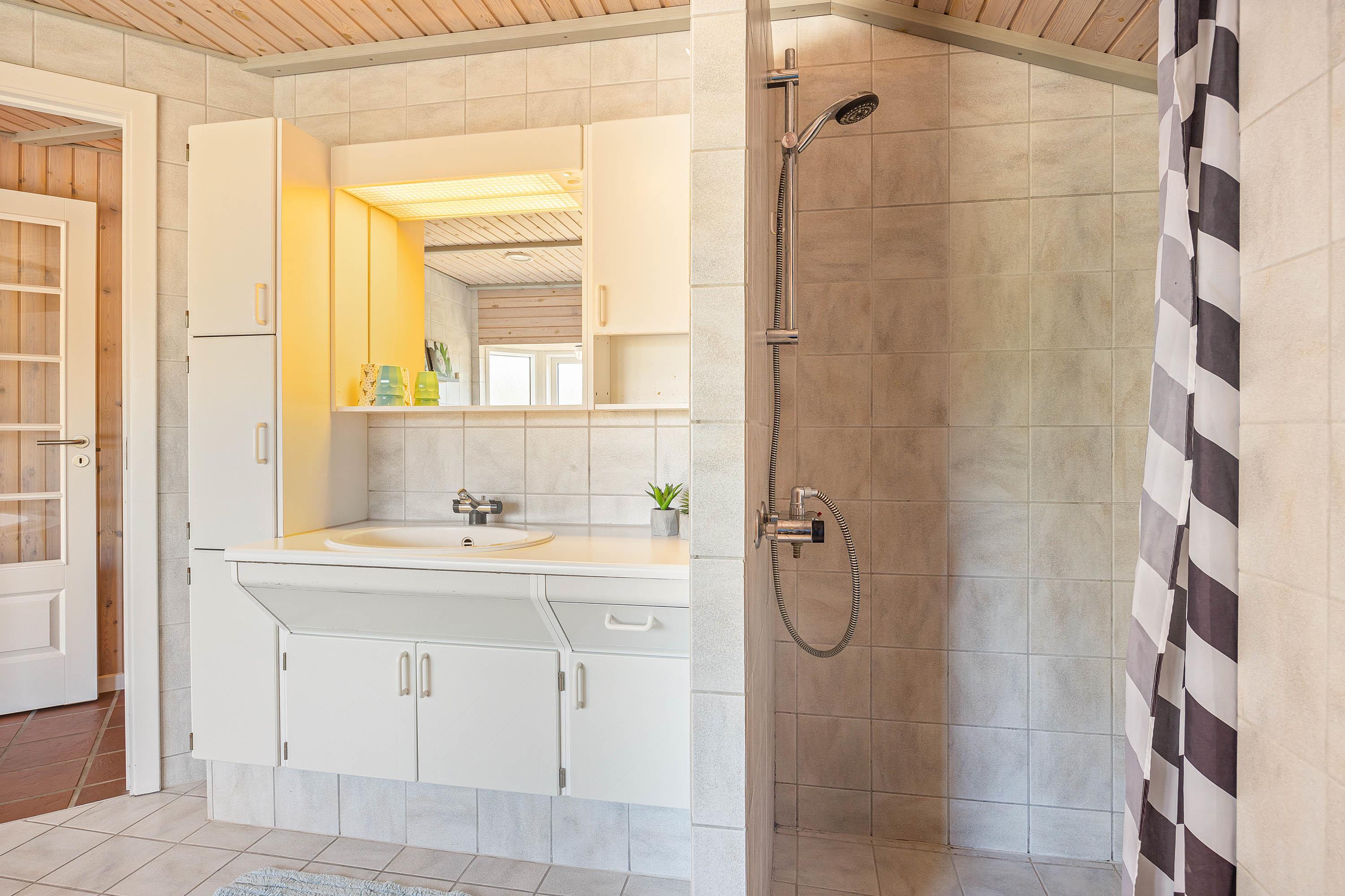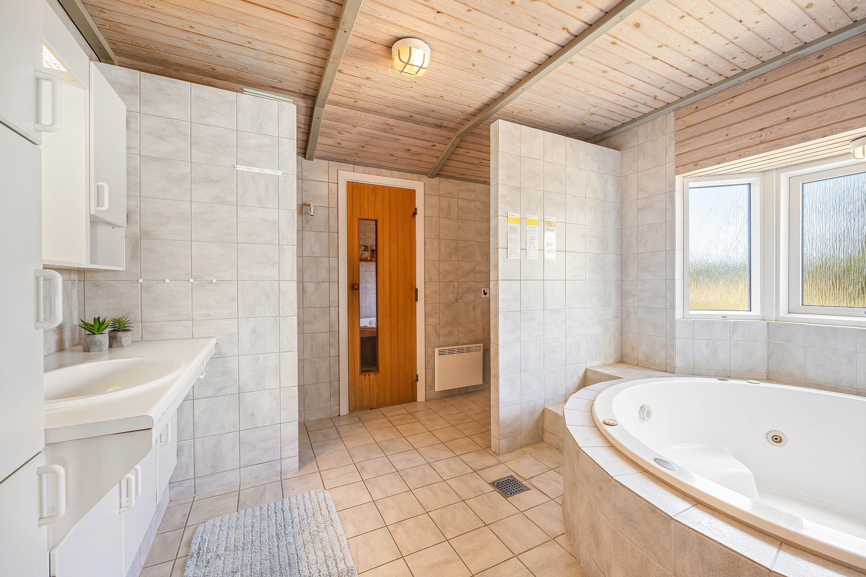 Sommerhuset byder på 2 badeværelser med gulvvarme, og på det ene af badeværelserne venter jer også en dejlig spa. I spaen kan I nyde afslappende stunder i løbet af ferien, hvor I kan komme helt ned i gear i det boblende vand.