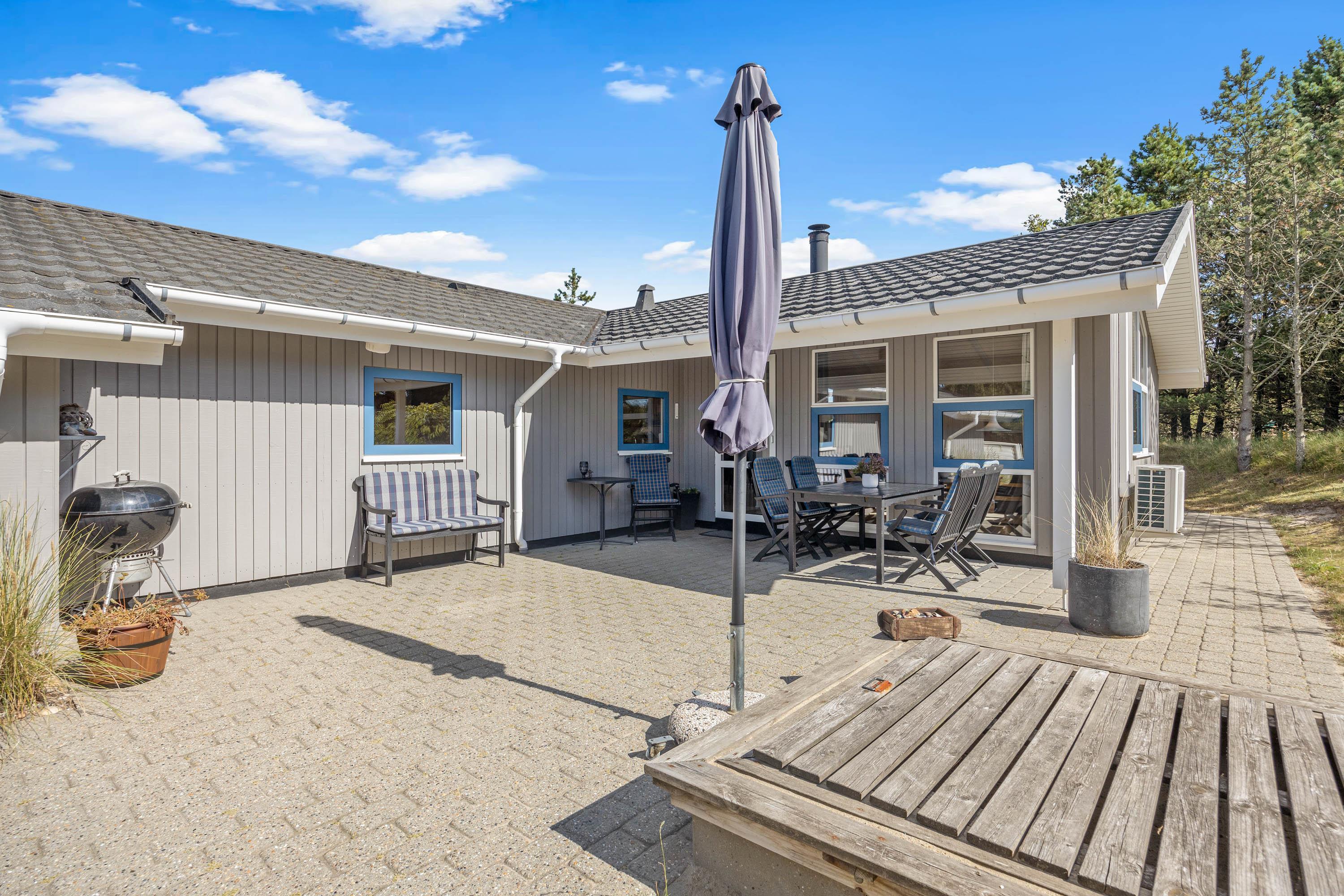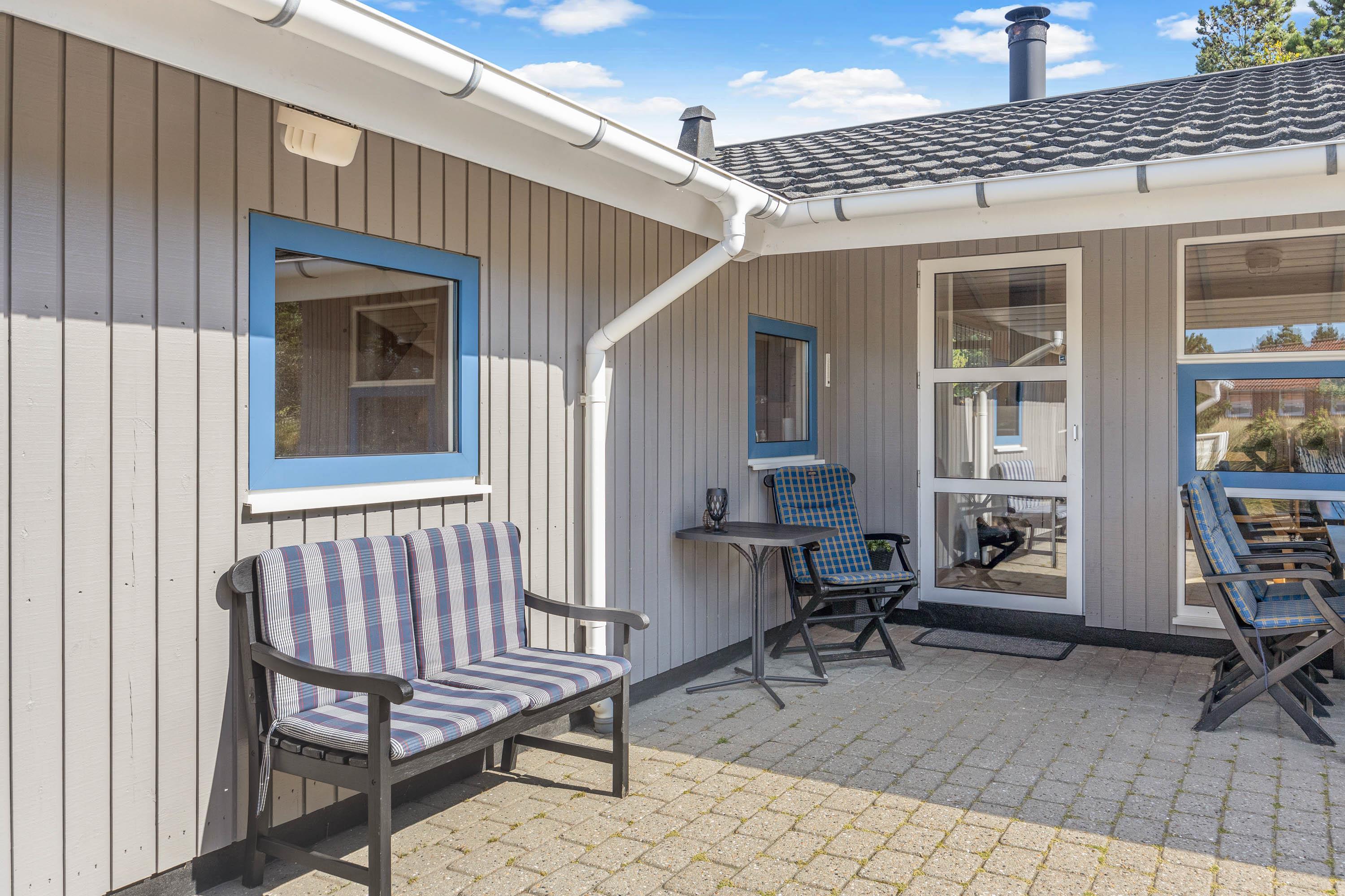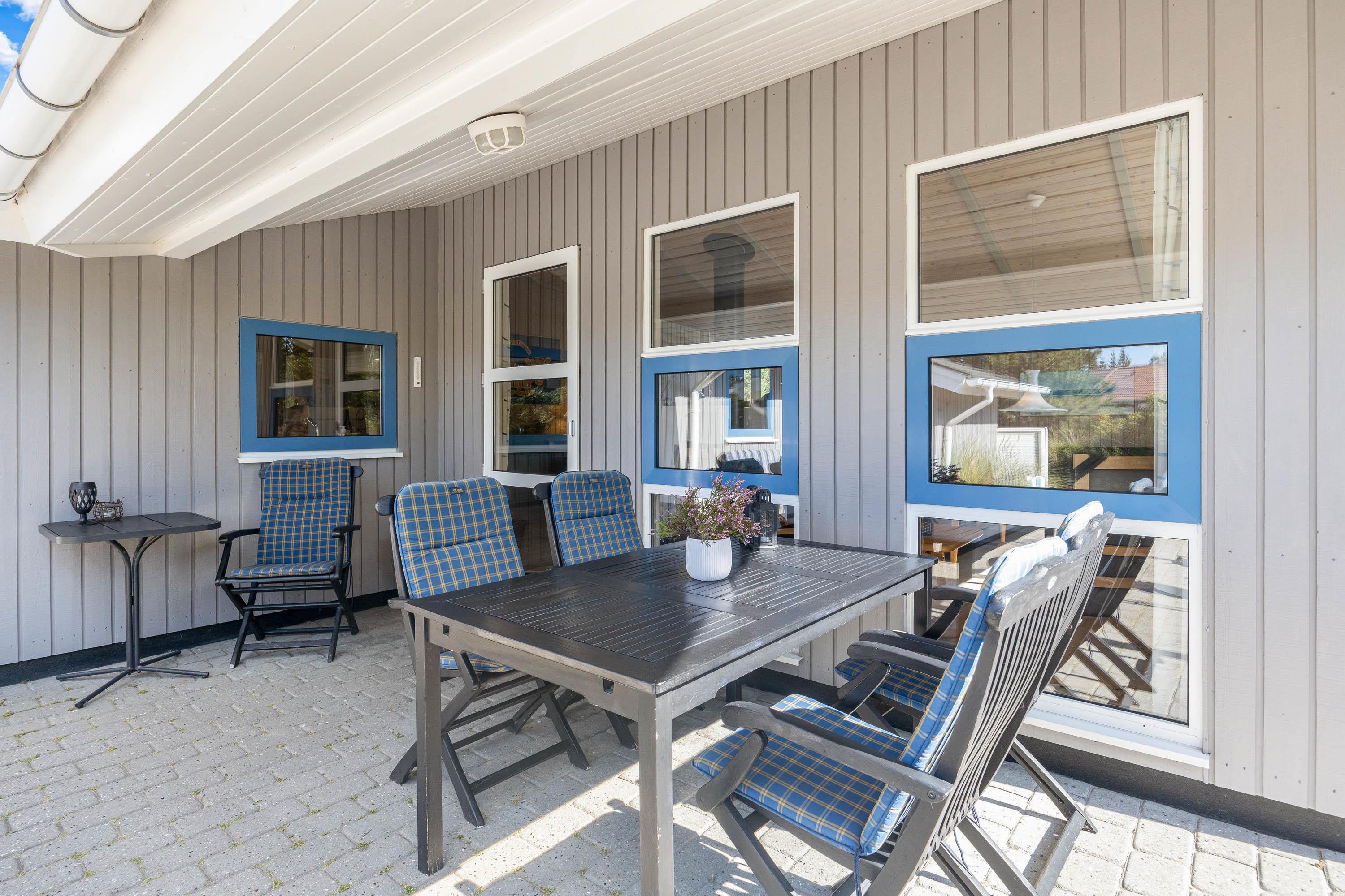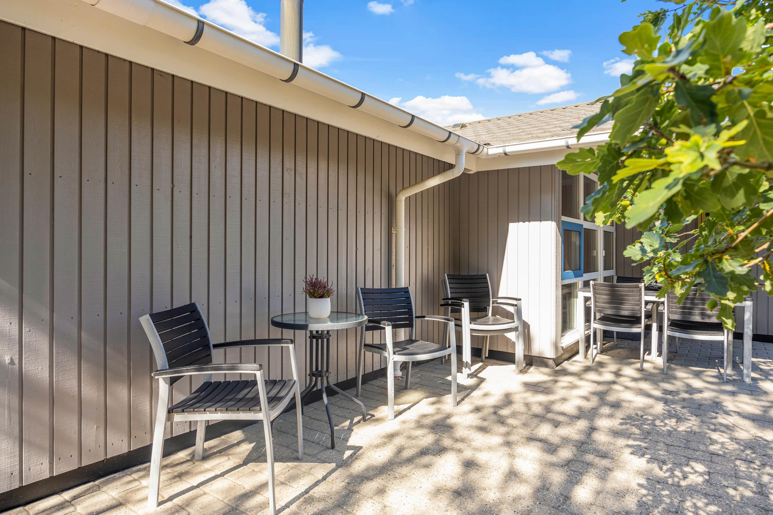 Sommerhuset har en stor terrasse, som I kan rykke ud på på de solrige feriedage. Her venter jer havemøbler og liggestole, som I kan finde jer godt til rette i på en god plads i solen. I har desuden en grill til rådighed, så I kan tilberede lækre grillmiddage, som I kan nyde på terrassen på de lune ferieaftener.