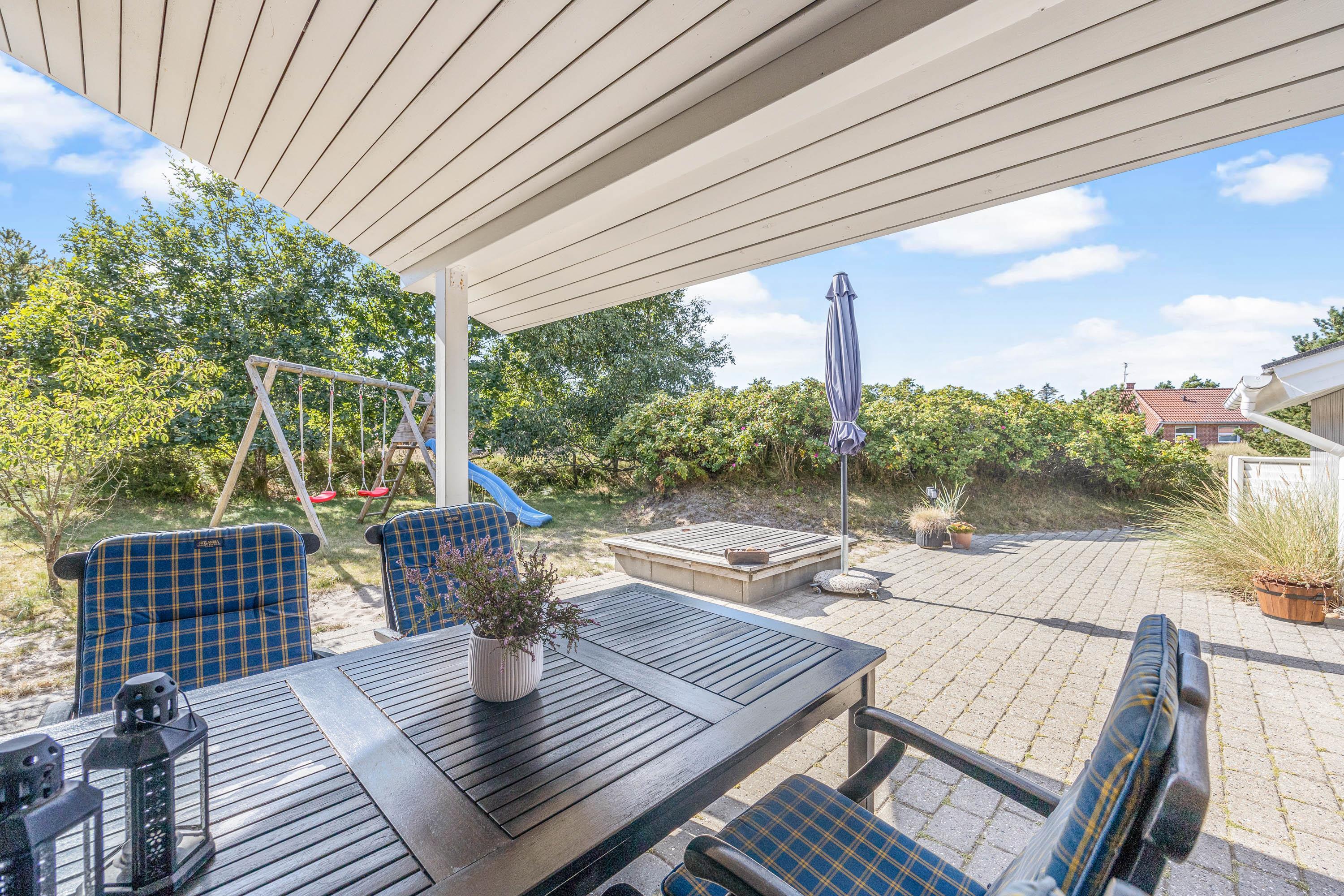 Sommerhuset ligger på en naturgrund i Blåvand, der er 1.803 kvadratmeter stor, hvor det er muligt for både store og små at nyde nogle hyggelige feriedage.