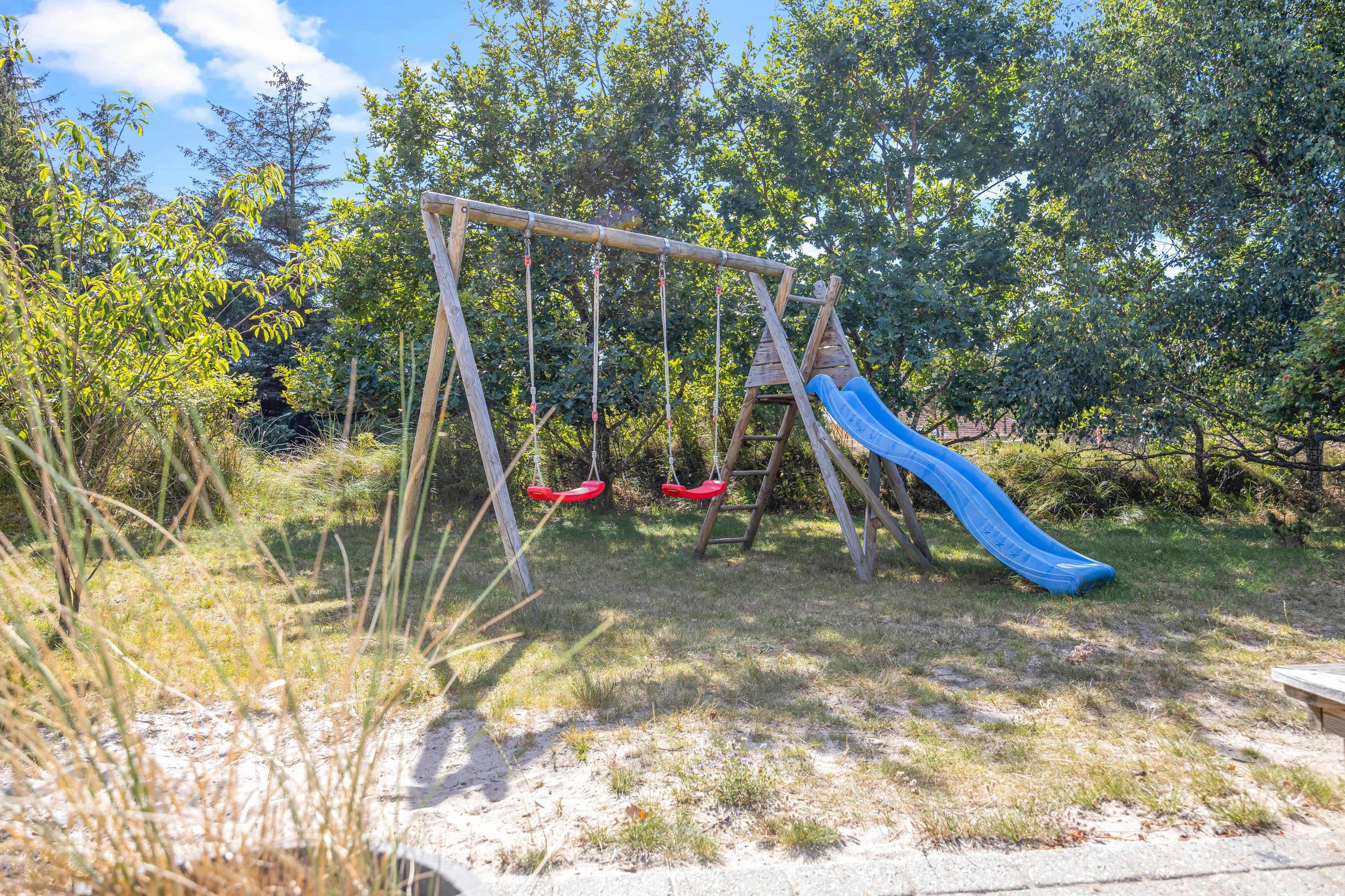 Mens I nyder sol og afslapning på terrassen, kan feriens yngste gæster lege på grunden. Til dem er der også en sandkasse, hvor de kan bygge nogle flotte sandslotte, og et gyngestativ, som de kan gynge på.