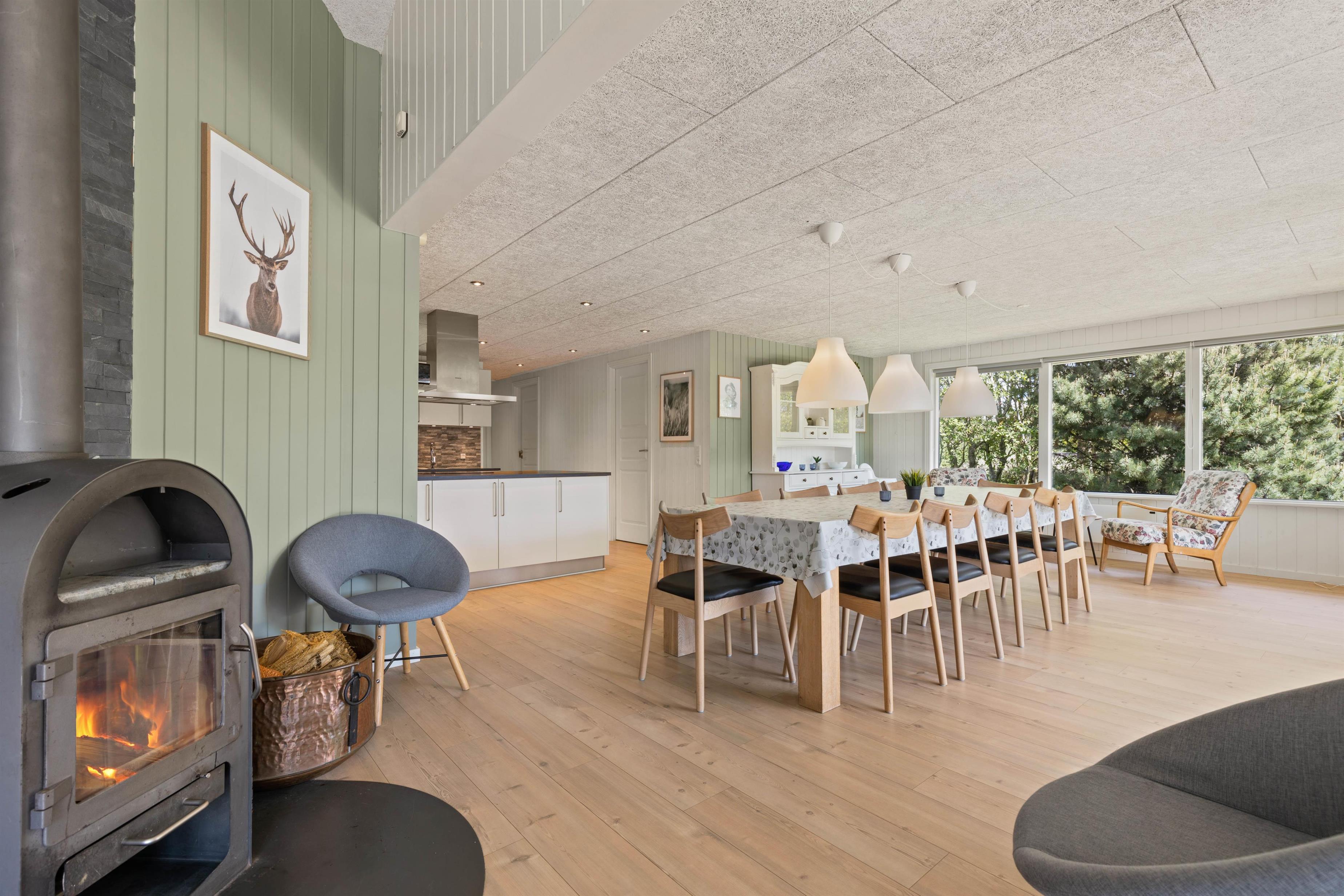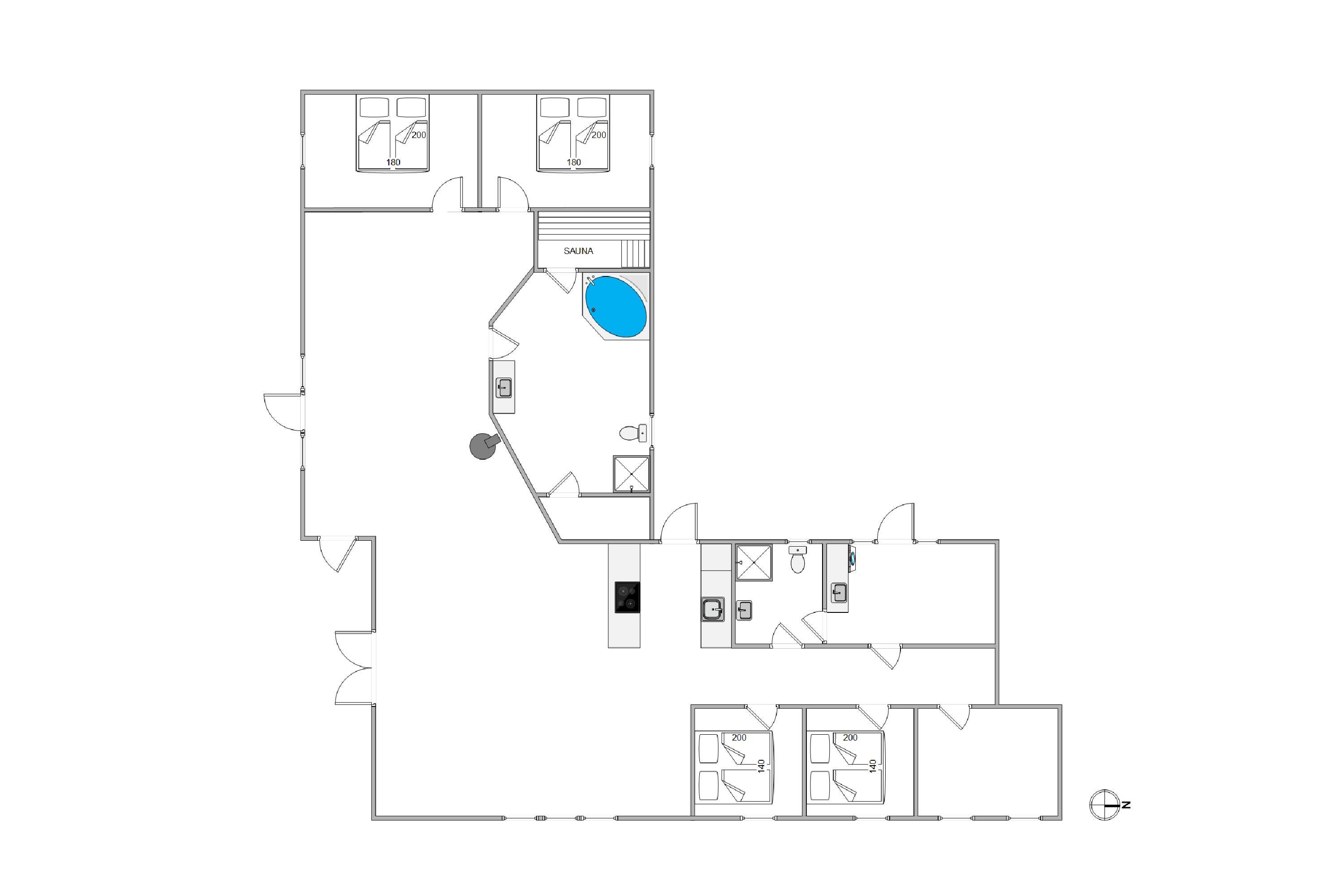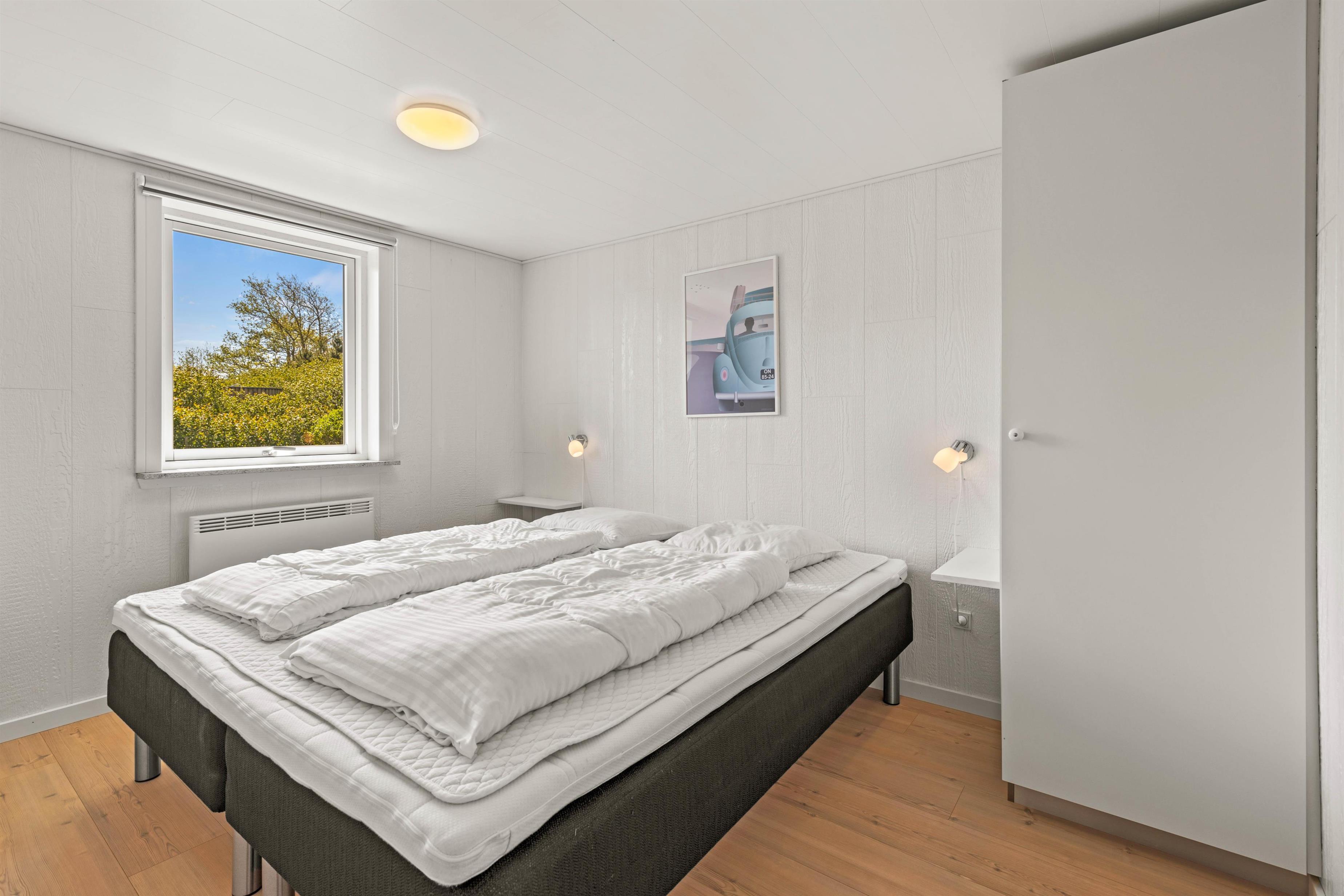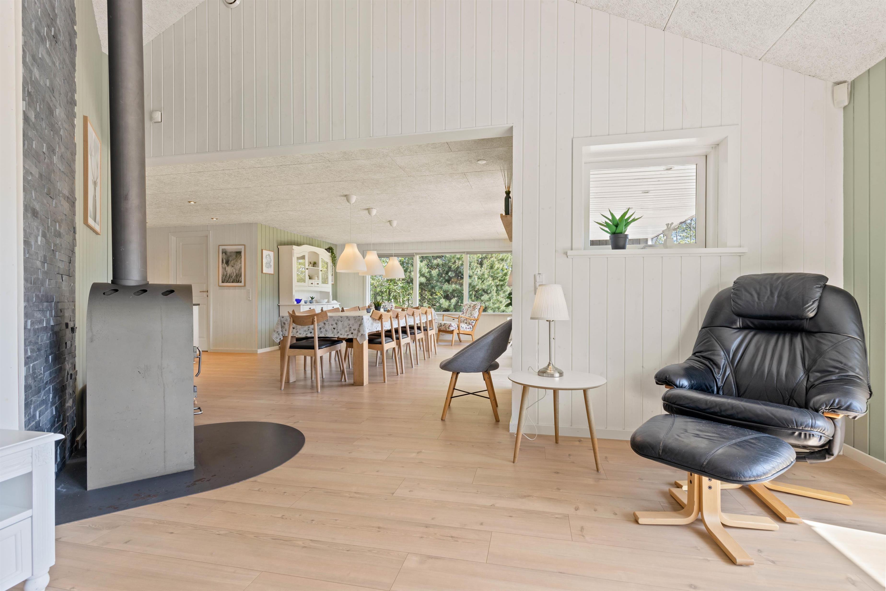 Sommerhuset på Sønder-Vasevej 154 byder på nærmest alt, hvad hjertet begærer - en lys og venlig indretning med et stort fællesrum, hvor der er god plads til at være sammen enten omkring spisebordet til måltider eller spil eller i de gode sofaer ved brændeovnen. Feriehusets 4 soveværelser med dobbeltsenge ligger fordelt i 2 afdelinger. De 2 badeværelser har begge gulvvarme, og det ene har både spabad og sauna.