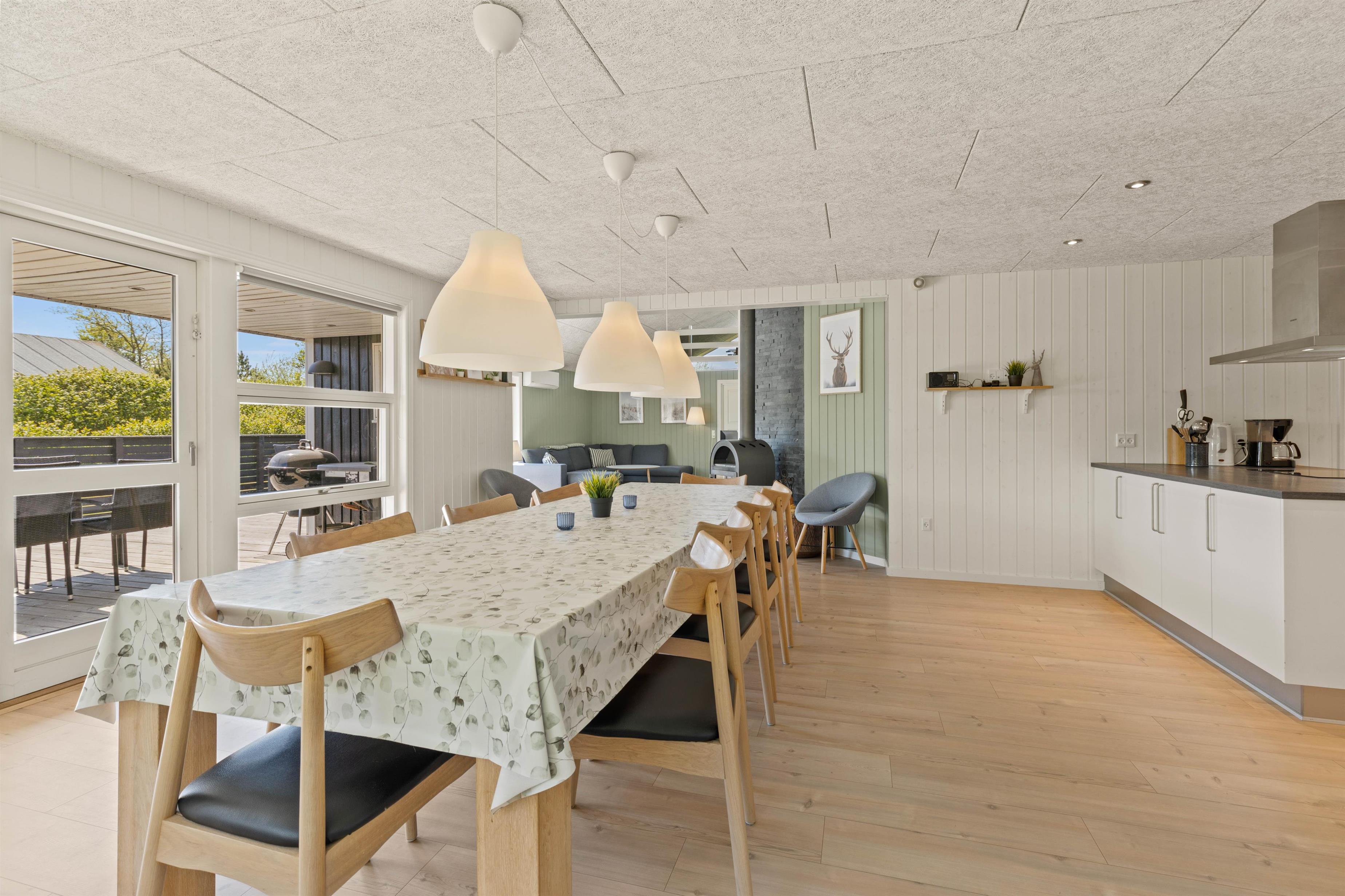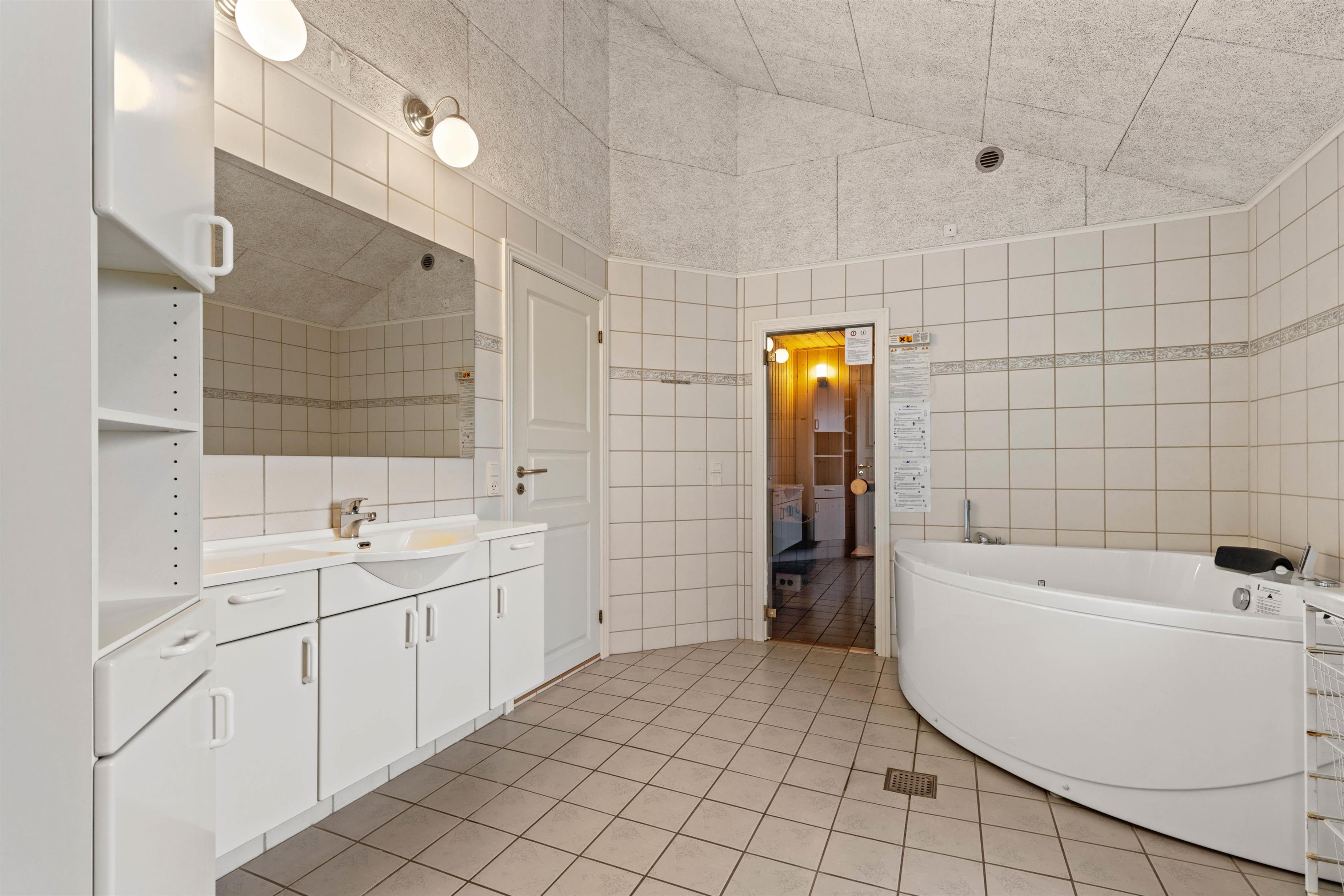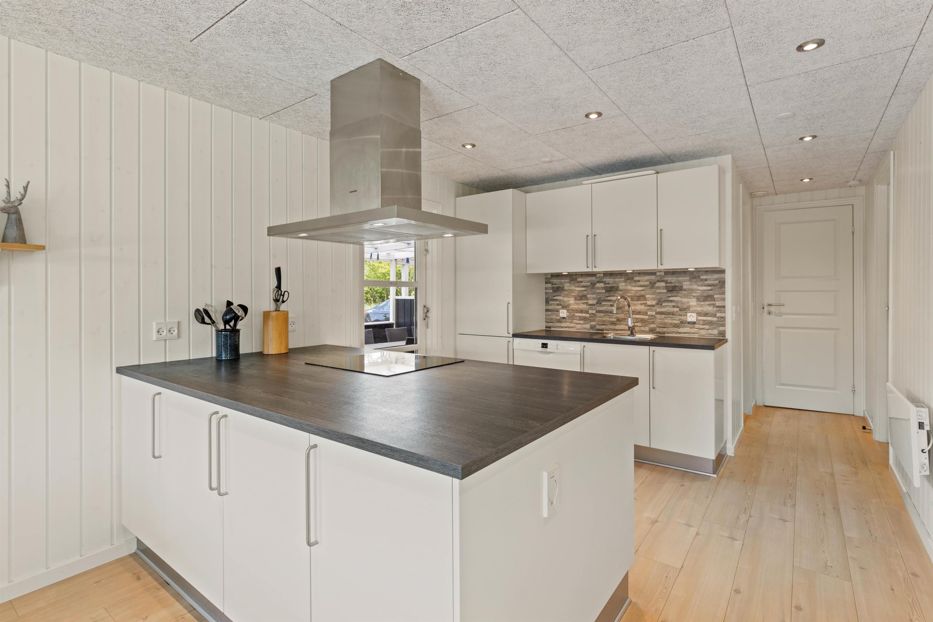 Sommerhuset på Sønder-Vasevej 154 byder på nærmest alt, hvad hjertet begærer - en lys og venlig indretning med et stort fællesrum, hvor der er god plads til at være sammen enten omkring spisebordet til måltider eller spil eller i de gode sofaer ved brændeovnen. Feriehusets 4 soveværelser med dobbeltsenge ligger fordelt i 2 afdelinger. De 2 badeværelser har begge gulvvarme, og det ene har både spabad og sauna.