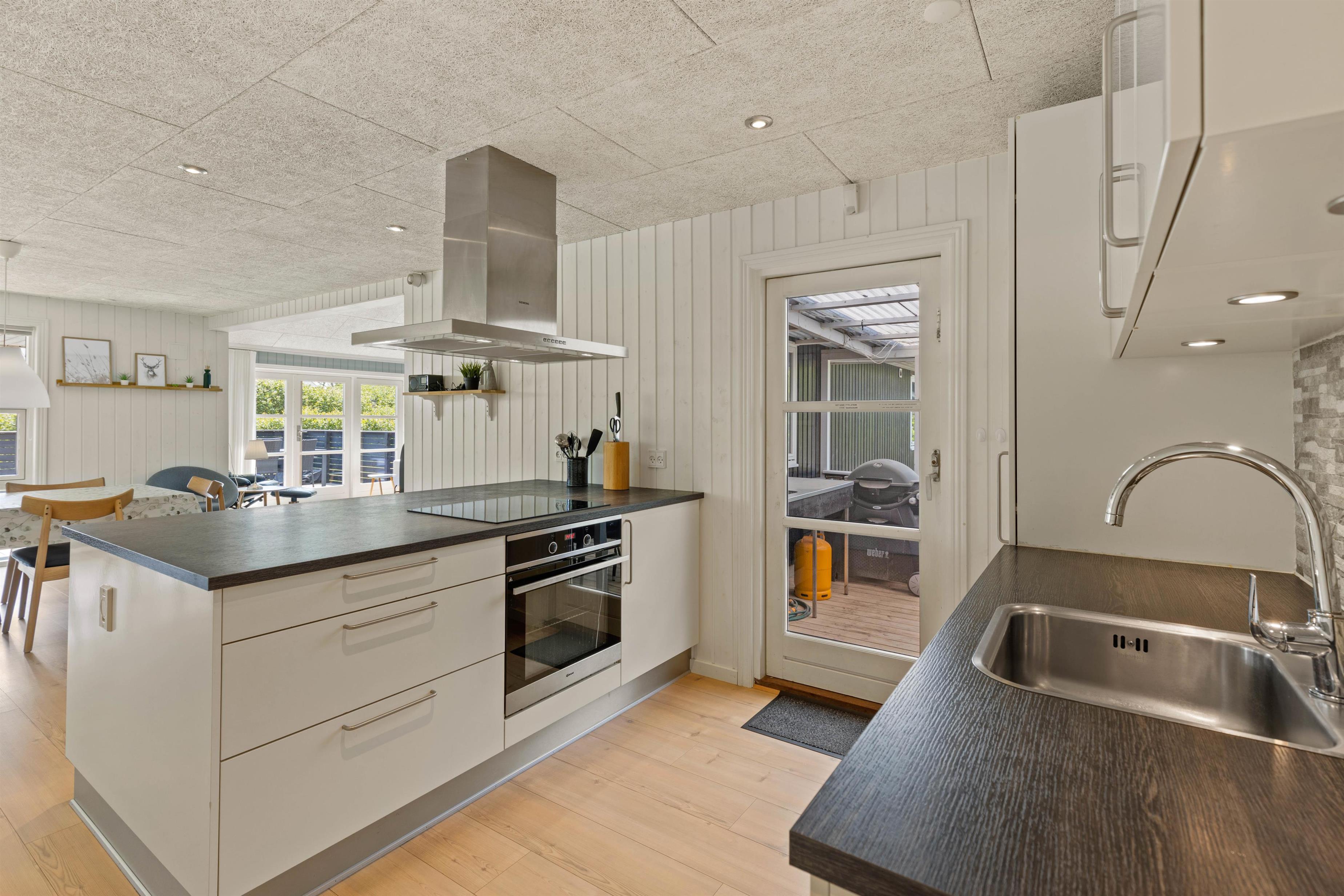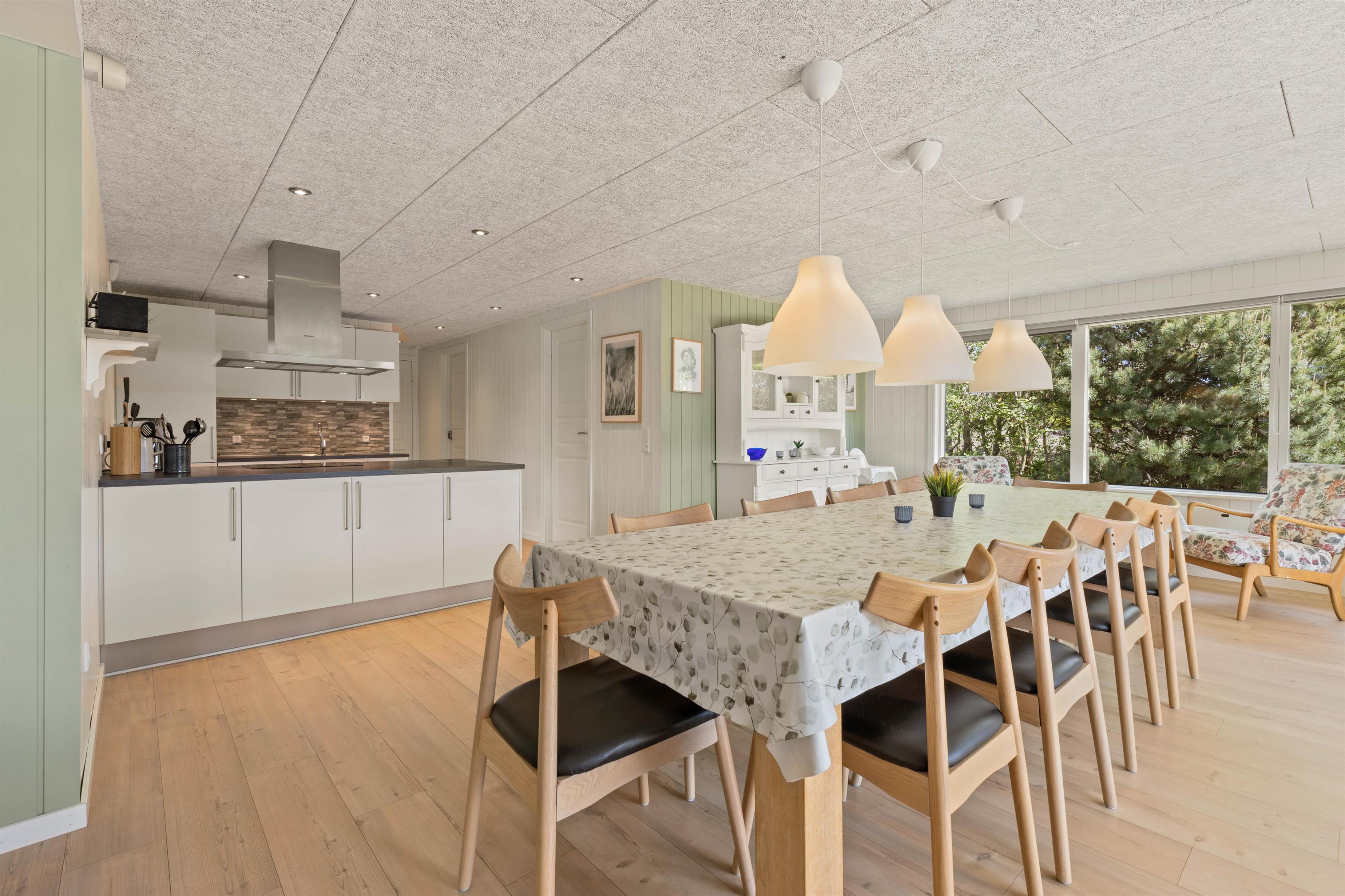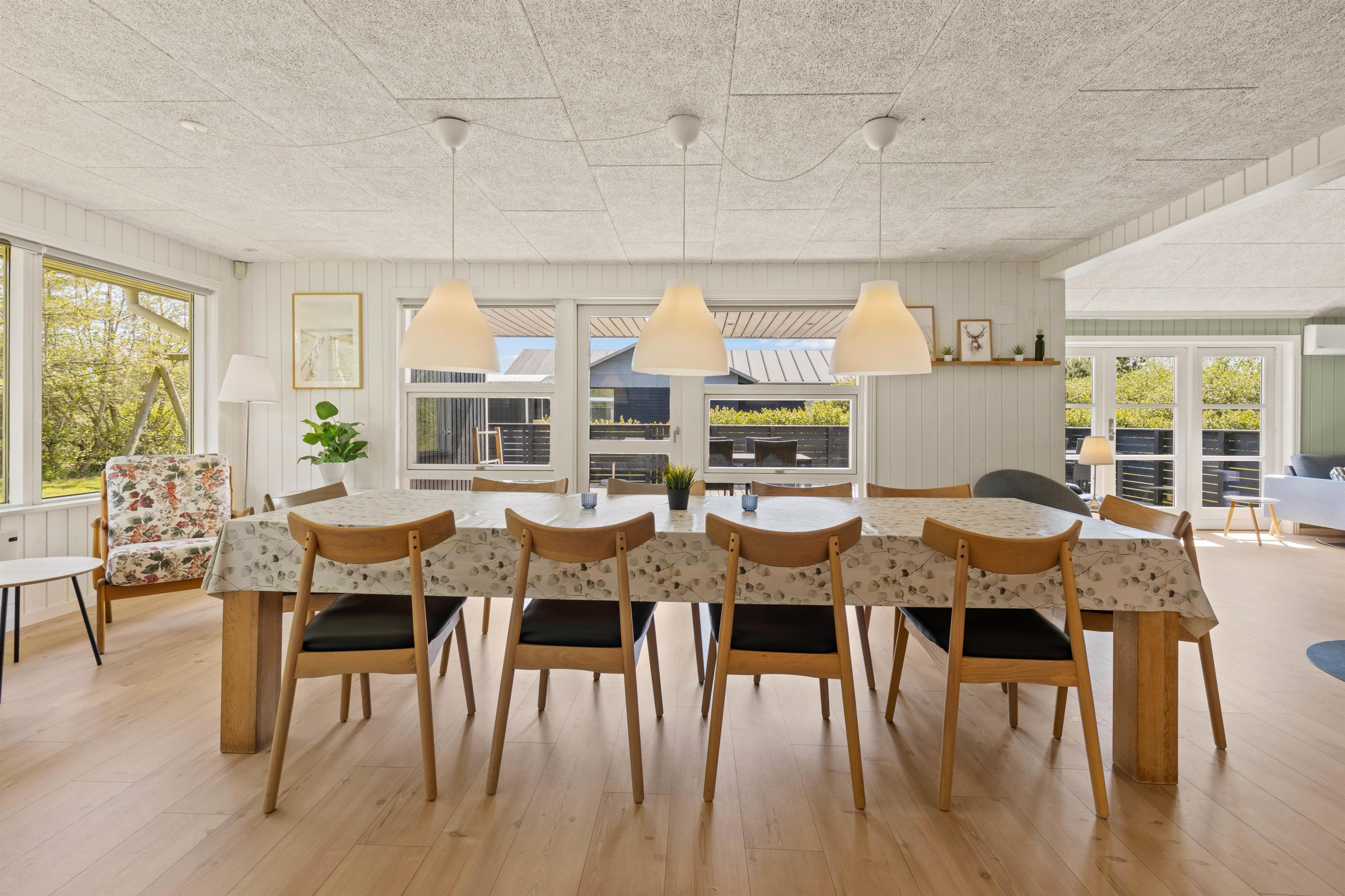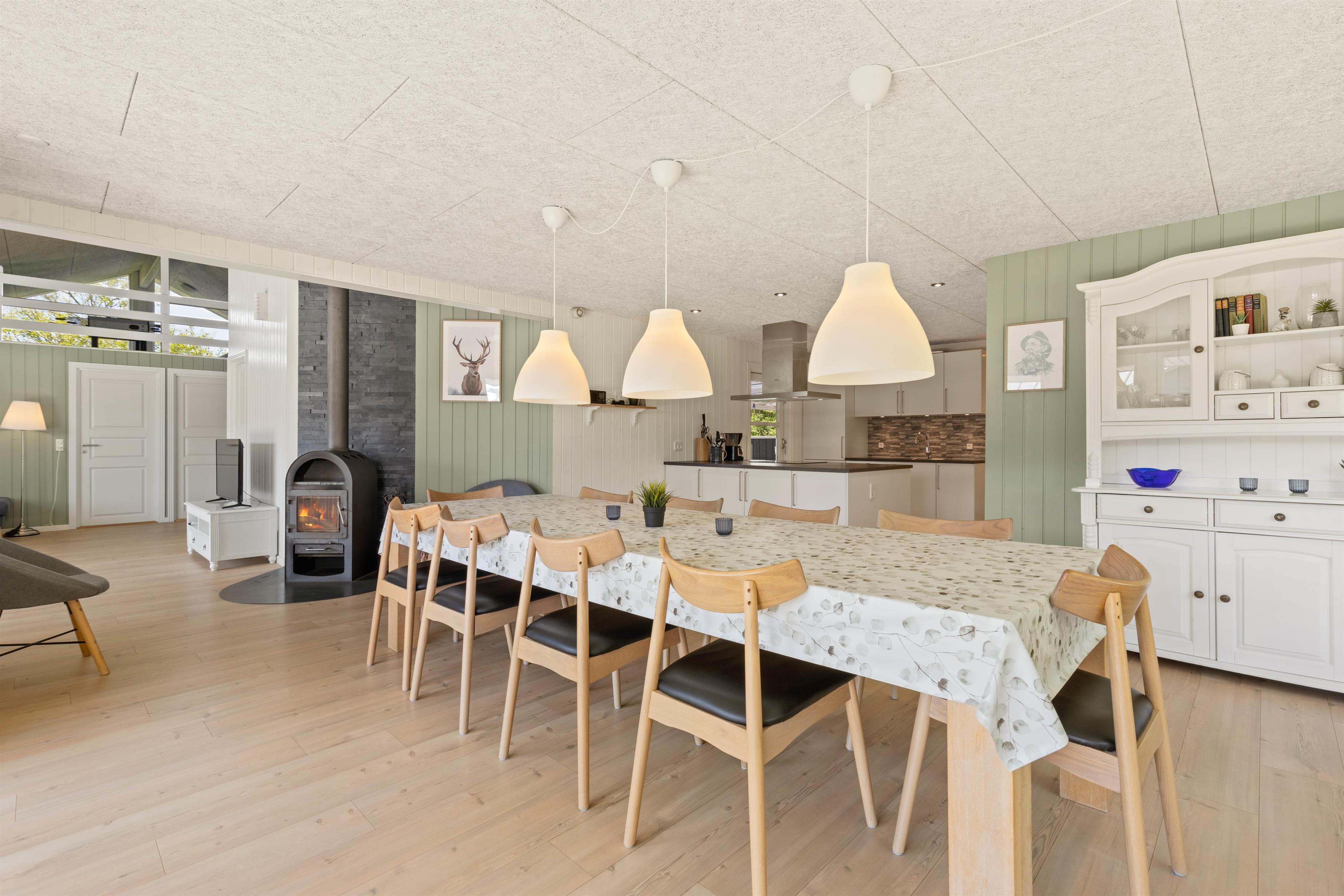 Sommerhuset på Sønder-Vasevej 154 byder på nærmest alt, hvad hjertet begærer - en lys og venlig indretning med et stort fællesrum, hvor der er god plads til at være sammen enten omkring spisebordet til måltider eller spil eller i de gode sofaer ved brændeovnen. Feriehusets 4 soveværelser med dobbeltsenge ligger fordelt i 2 afdelinger. De 2 badeværelser har begge gulvvarme, og det ene har både spabad og sauna.