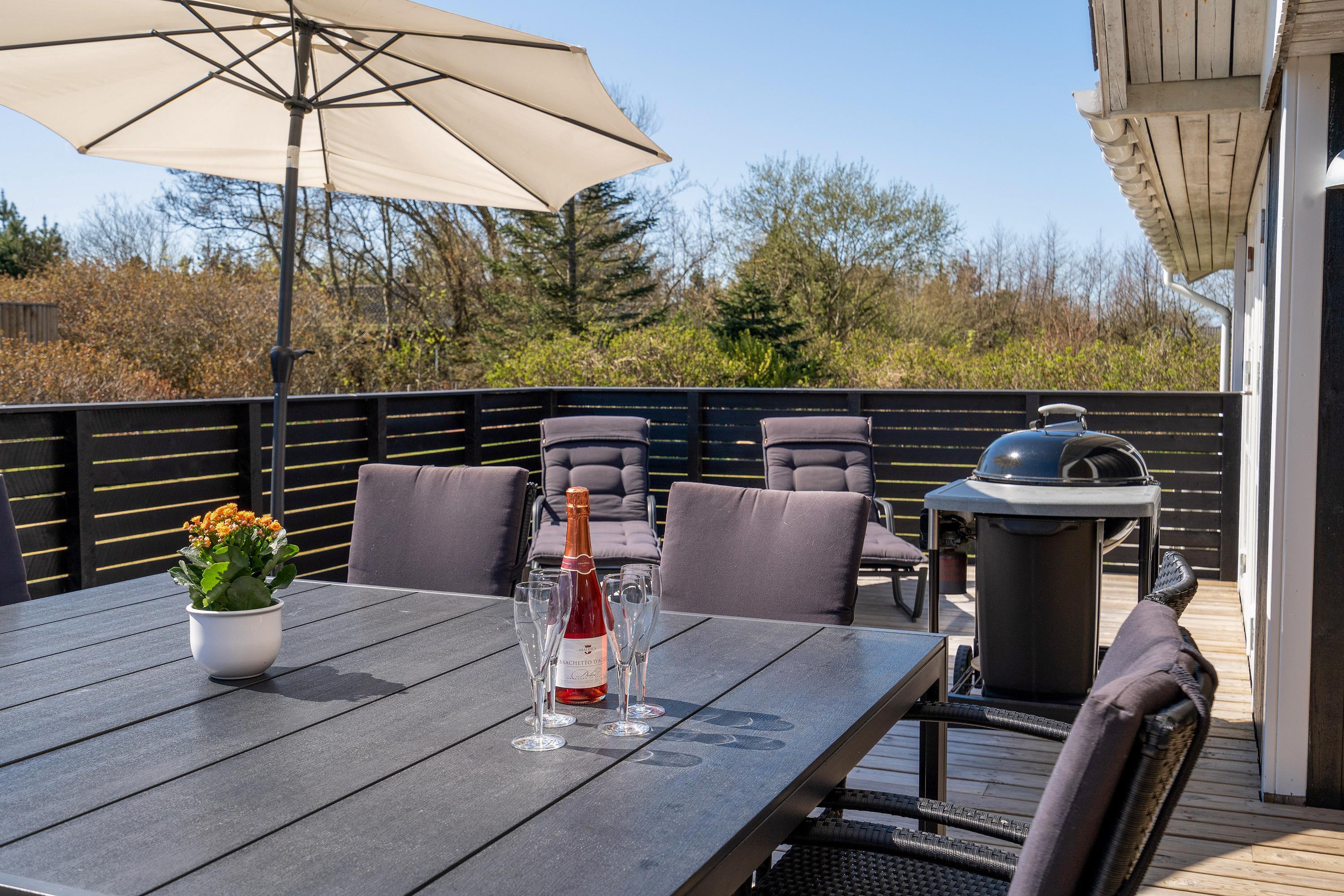På Sønder-Vasevej er der masser af mulighed for at nyde den friske luft. Med afskærmning og overdækning finder I altid en læfyldt plads på terrassen. Om morgenen kan I tage morgenmaden og kaffen med udenfor, og på de gode sommerdage kan I tage en lur i liggestolene og slutte dagen perfekt af med en grillaften.