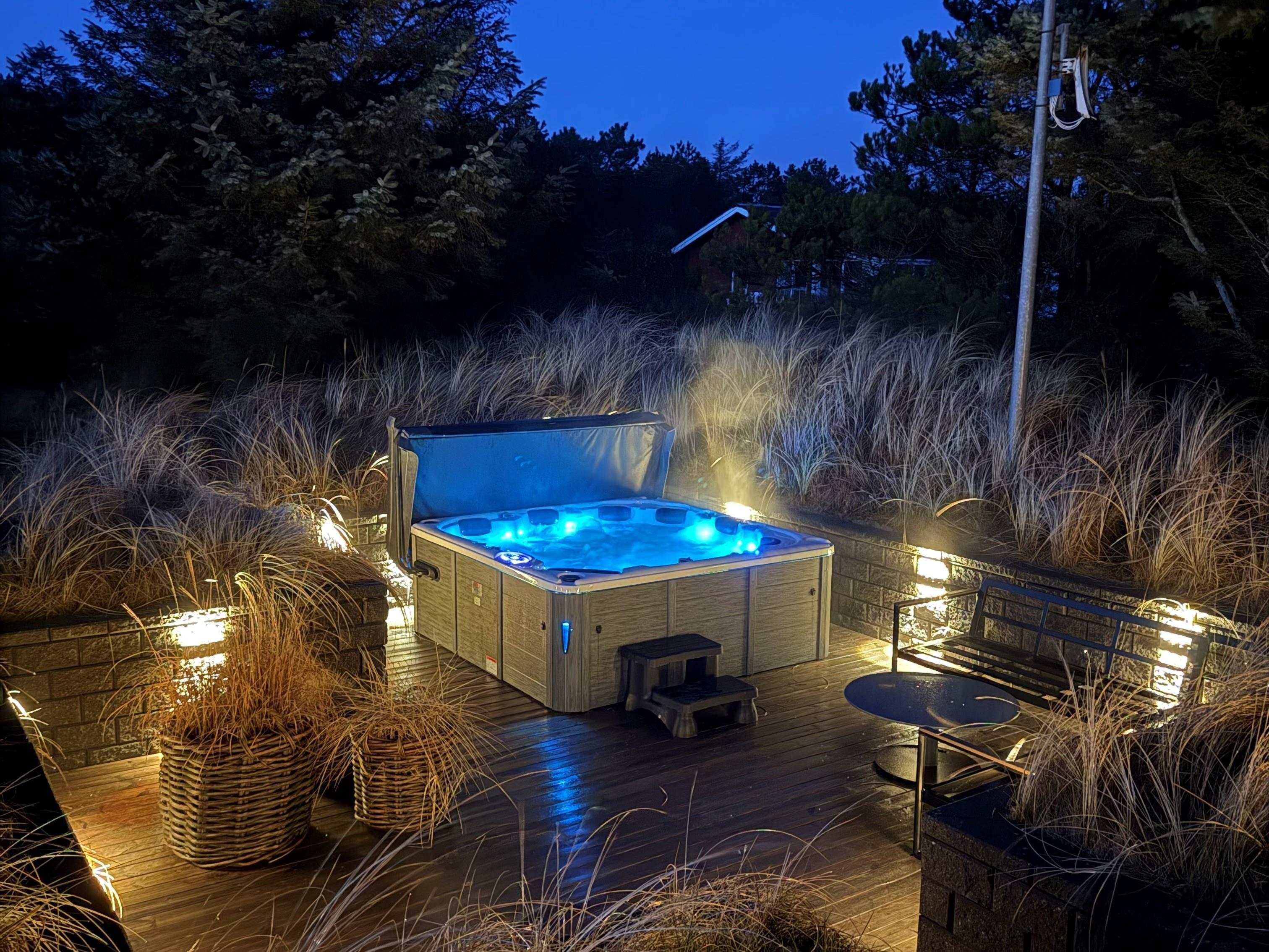 I sommerhuset er rammerne sat for en afslappende ferie ved Vesterhavet. Badeværelset er indrettet med spabad, så I kan nyde lidt ekstra wellness, og brændeovnen i stuen tilfører både hyggelig feriestemning og god varme med sine knitrende flammer. Den skønne, indbydende udespa kan bruges hele året rundt og giver mulighed for at slappe af i det varme, boblende vand. Udespaen er udstyret med behagelige massagedyser, en liggeplads og 5 gode siddepladser, så både familie og venner kan hygge sig sammen. Her kan I nyde roen, lade kroppen slappe af og samle kræfter efter dagens oplevelser.