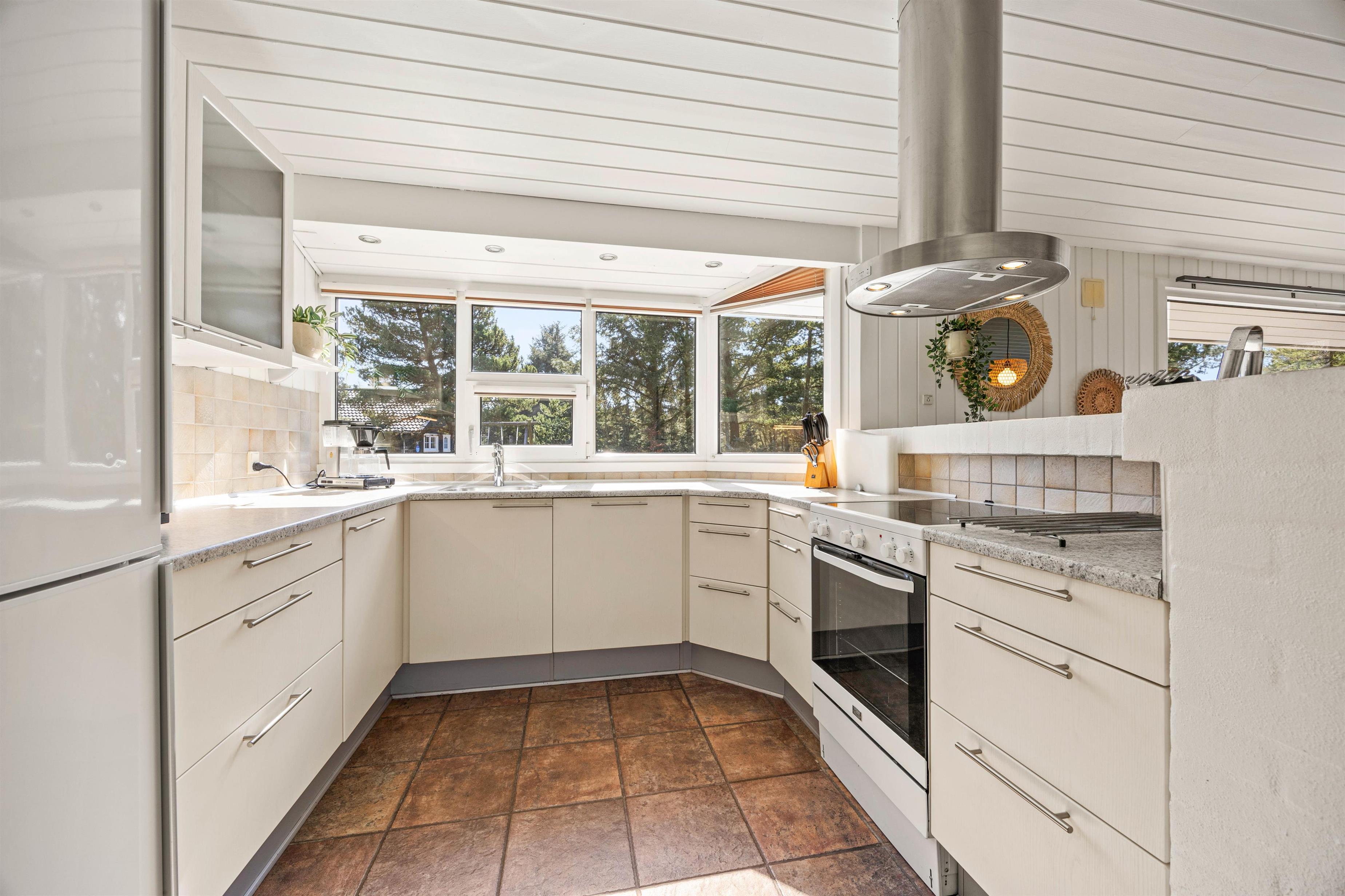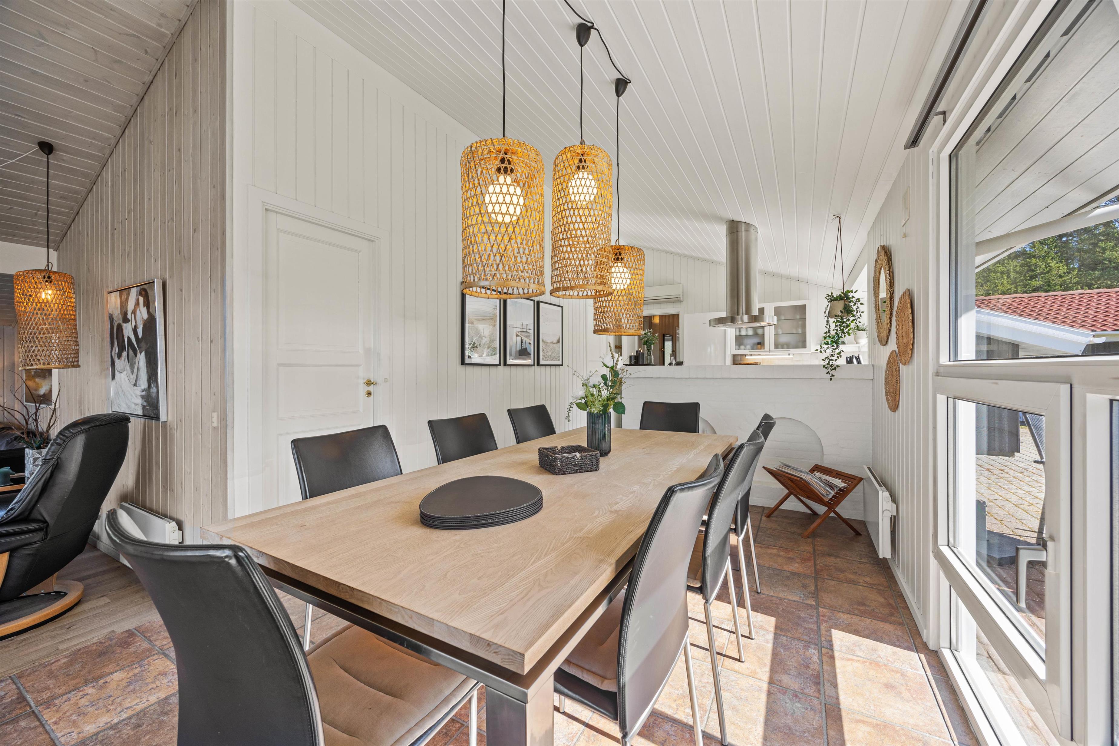 Når hele familien skal nyde hinandens samvær, kan I bevæge jer ned i sommerhusets stue, hvor I kan spille brætspil eller drikke en varm kop kaffe foran brændeovnen. Feriehuset er naturligvis praktisk indrettet med opvaskemaskine, vaskemaskine og tørretumbler. Derudover er sommerhuset udstyret med en økonomisk varmepumpe, der sikrer et godt indeklima.