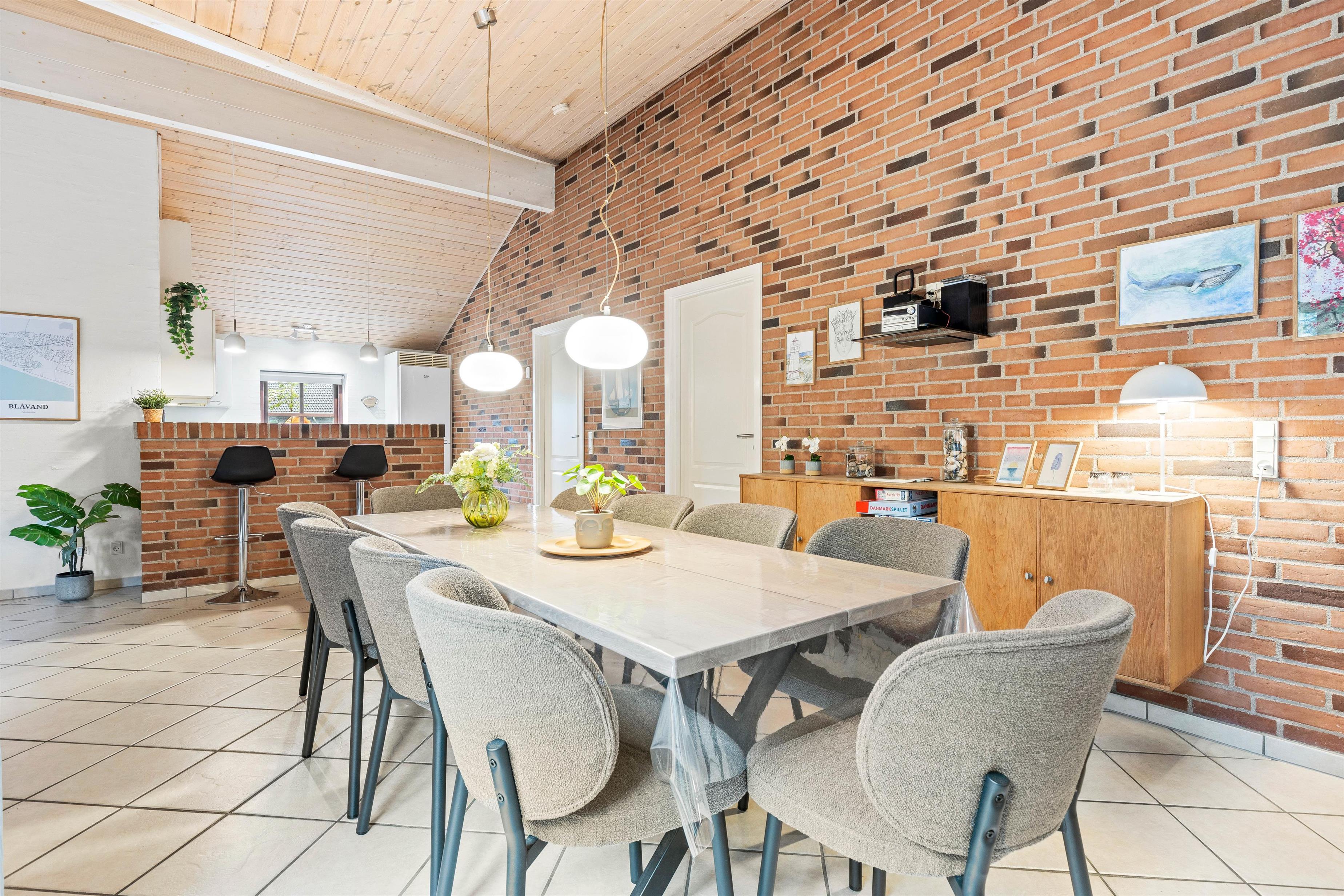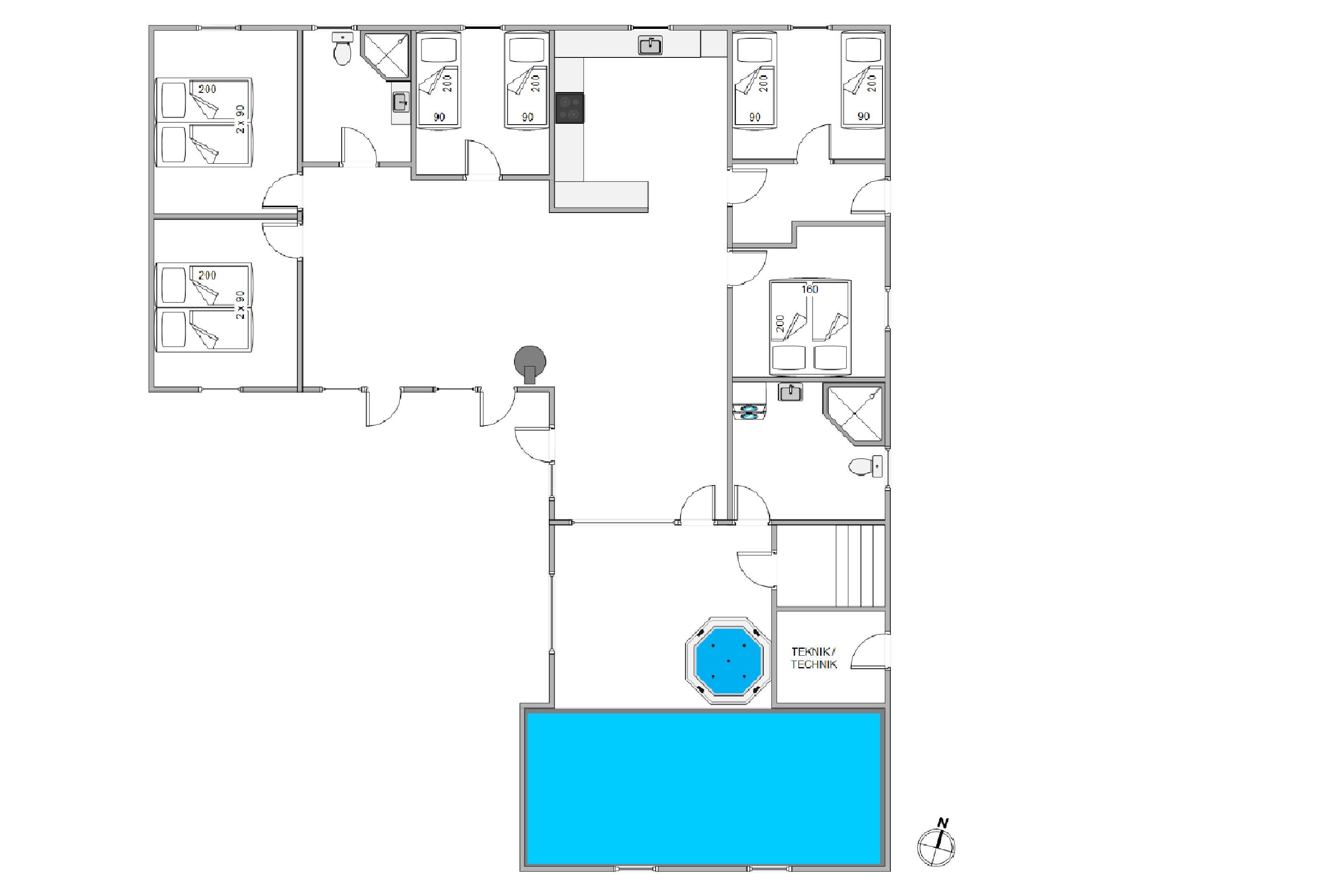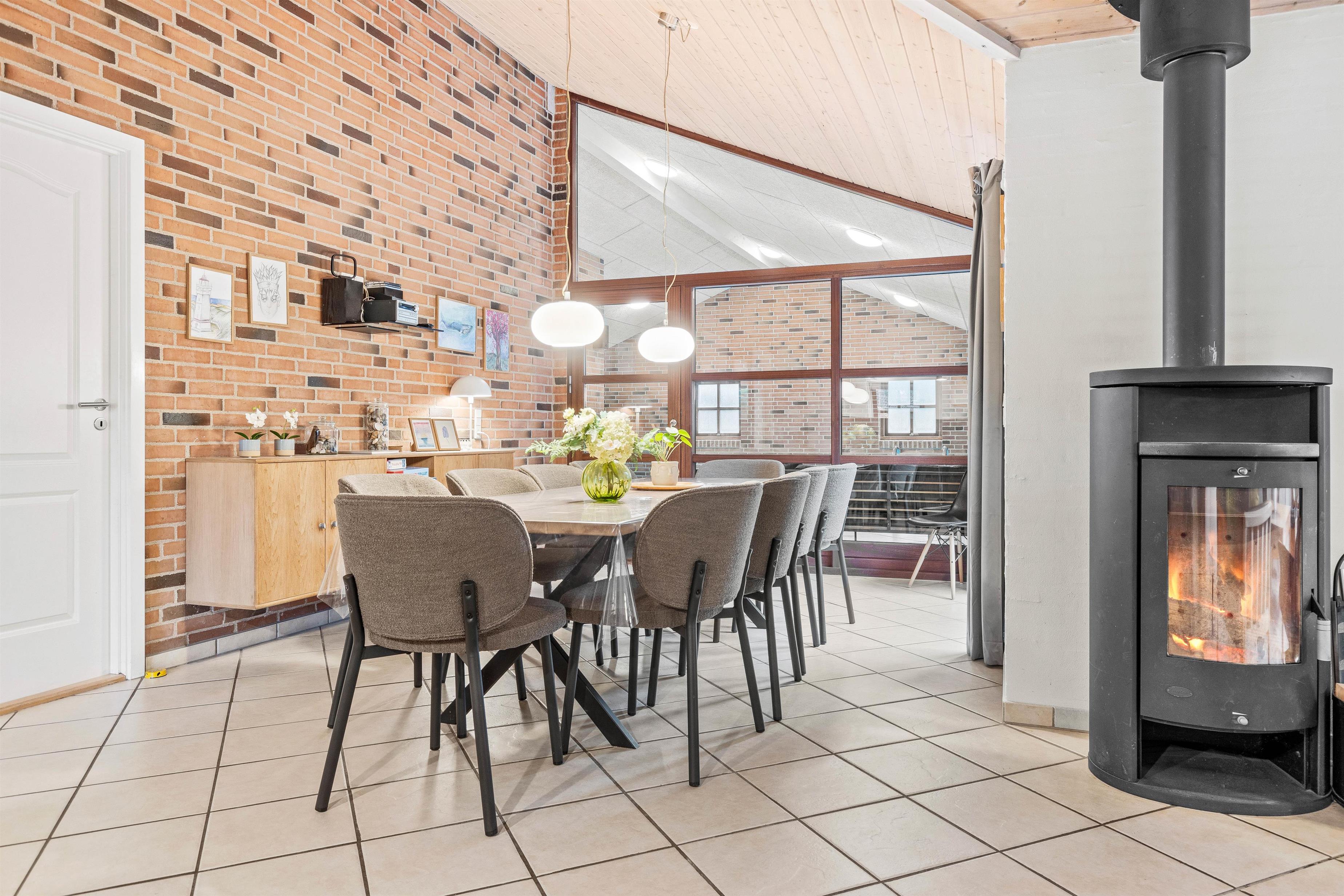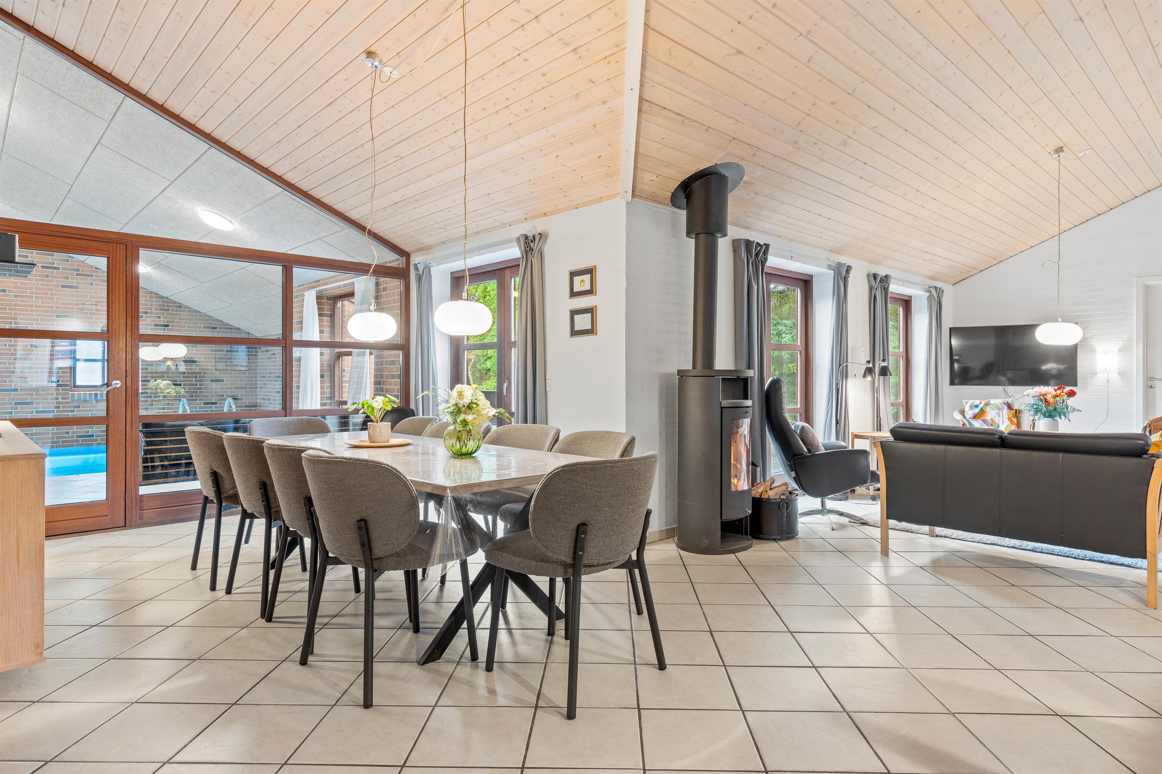 Poolhuset råder over 186 kvadratmeter og dermed god plads til hele familien. I vil med garanti hurtigt falde til i den lyse og hjemlige indretning, der rummer alle praktiske nødvendigheder. Både det åbne alrum og sommerhusets 2 badeværelser er udstyret med gulvvarme, og brændeovnen sørger med sine knitrende flammer altid for ekstra hyggelig feriestemning.