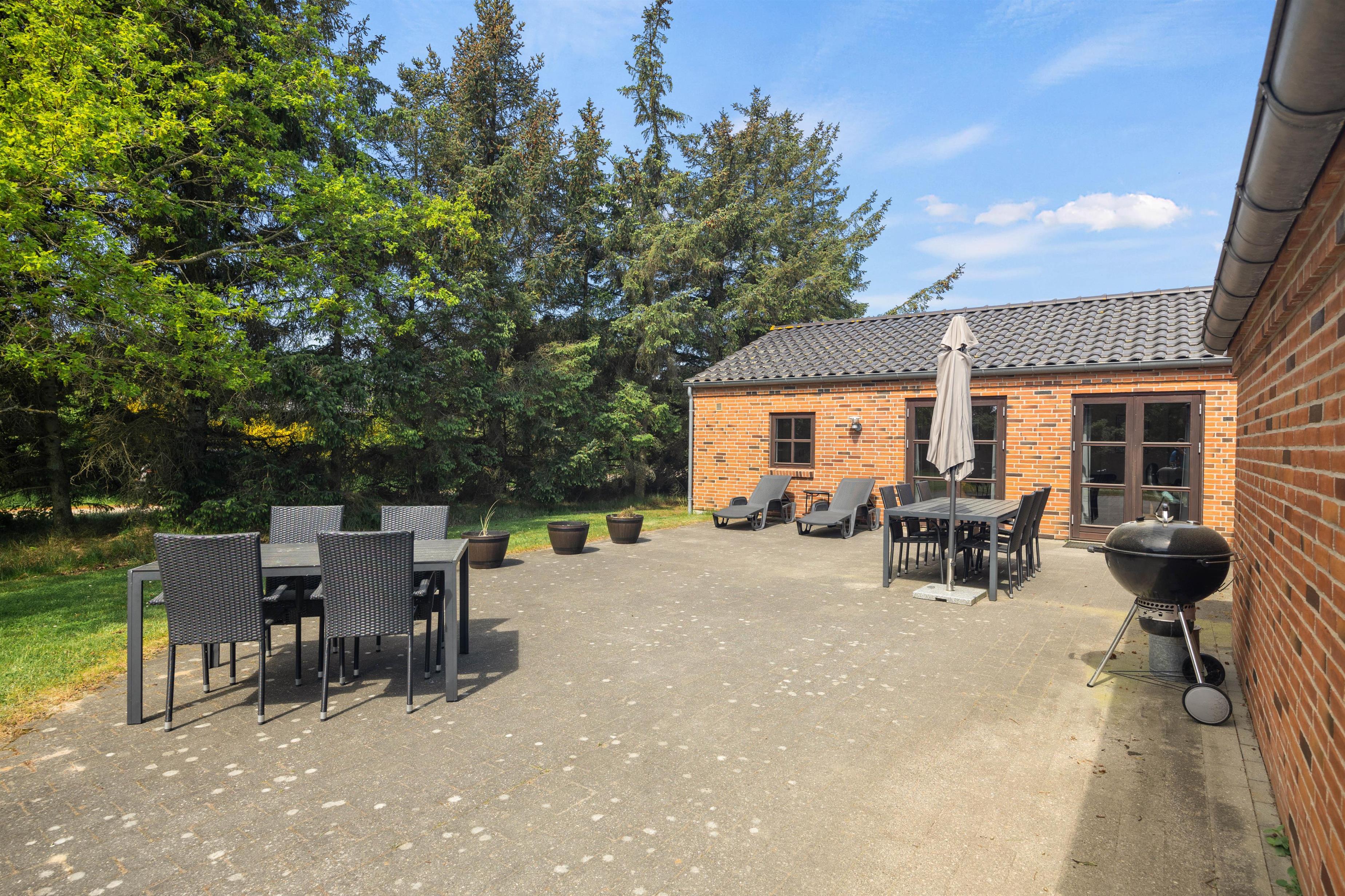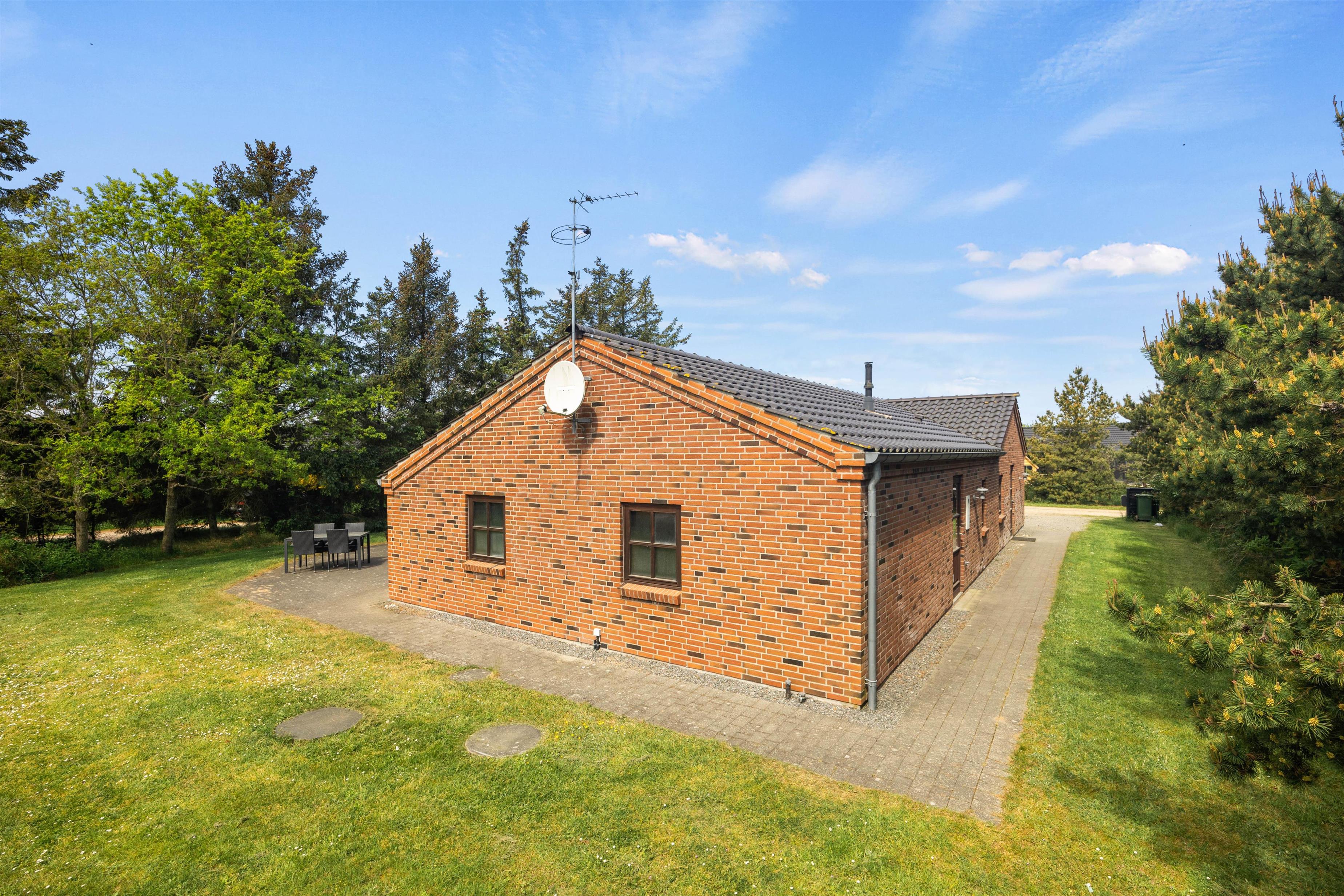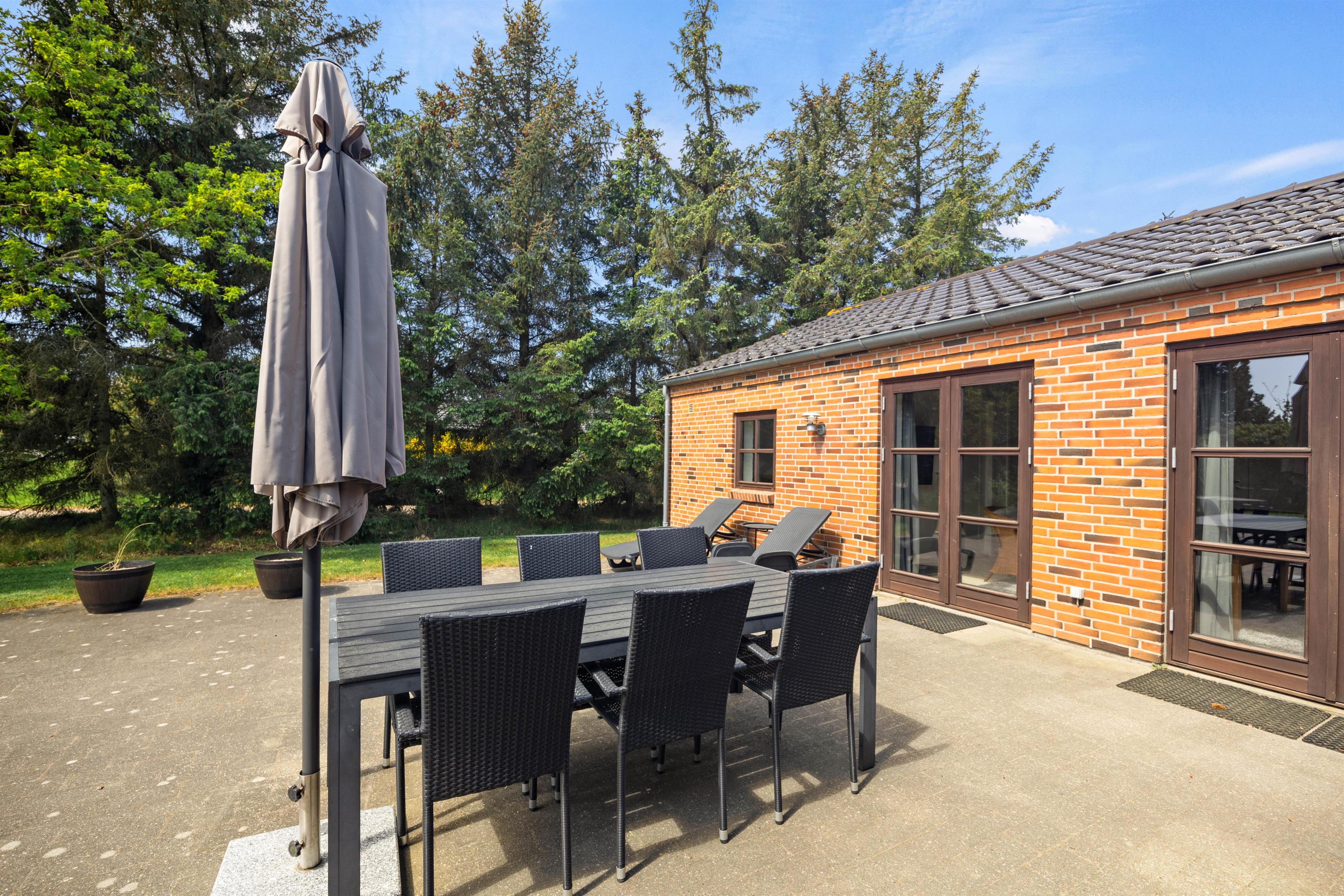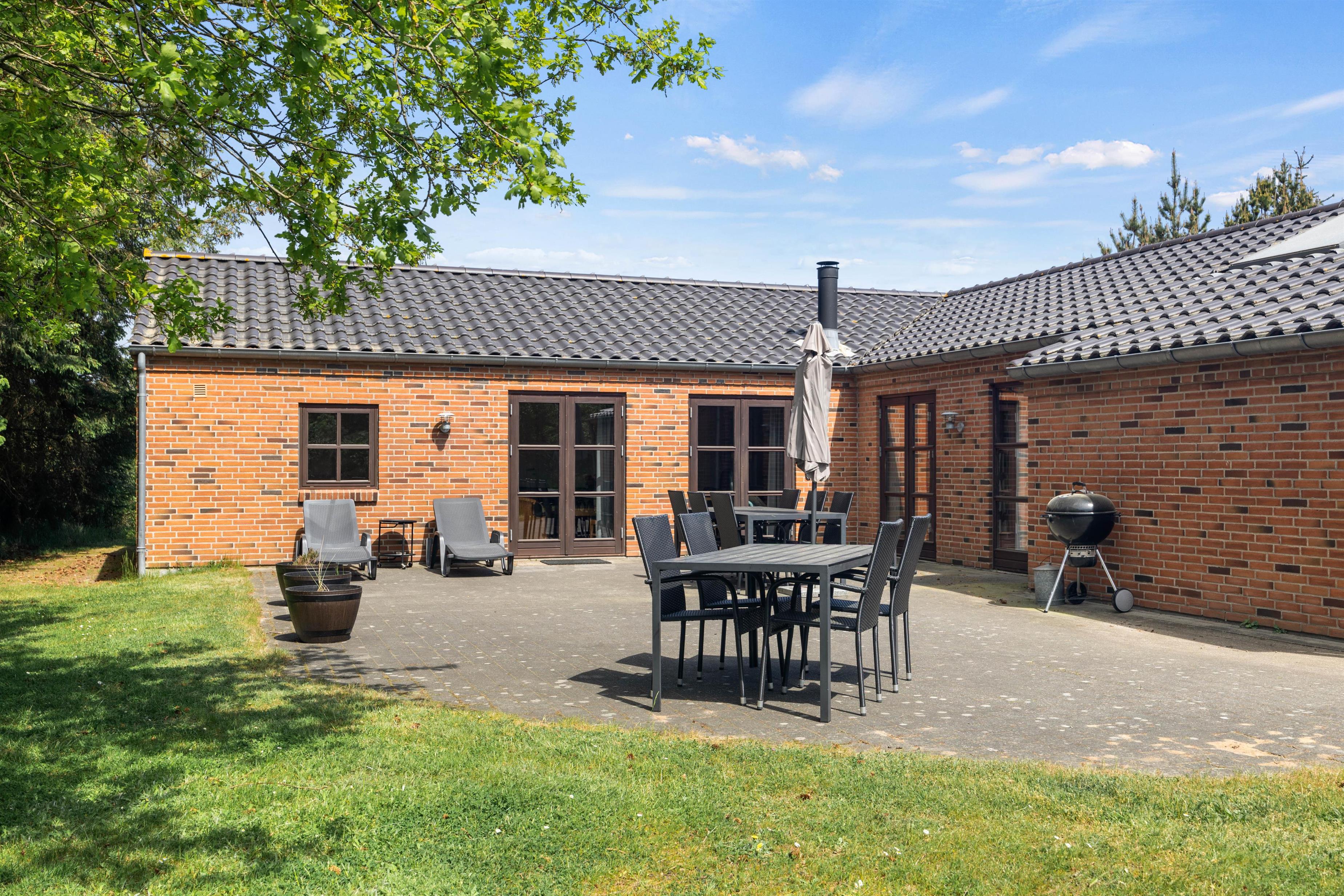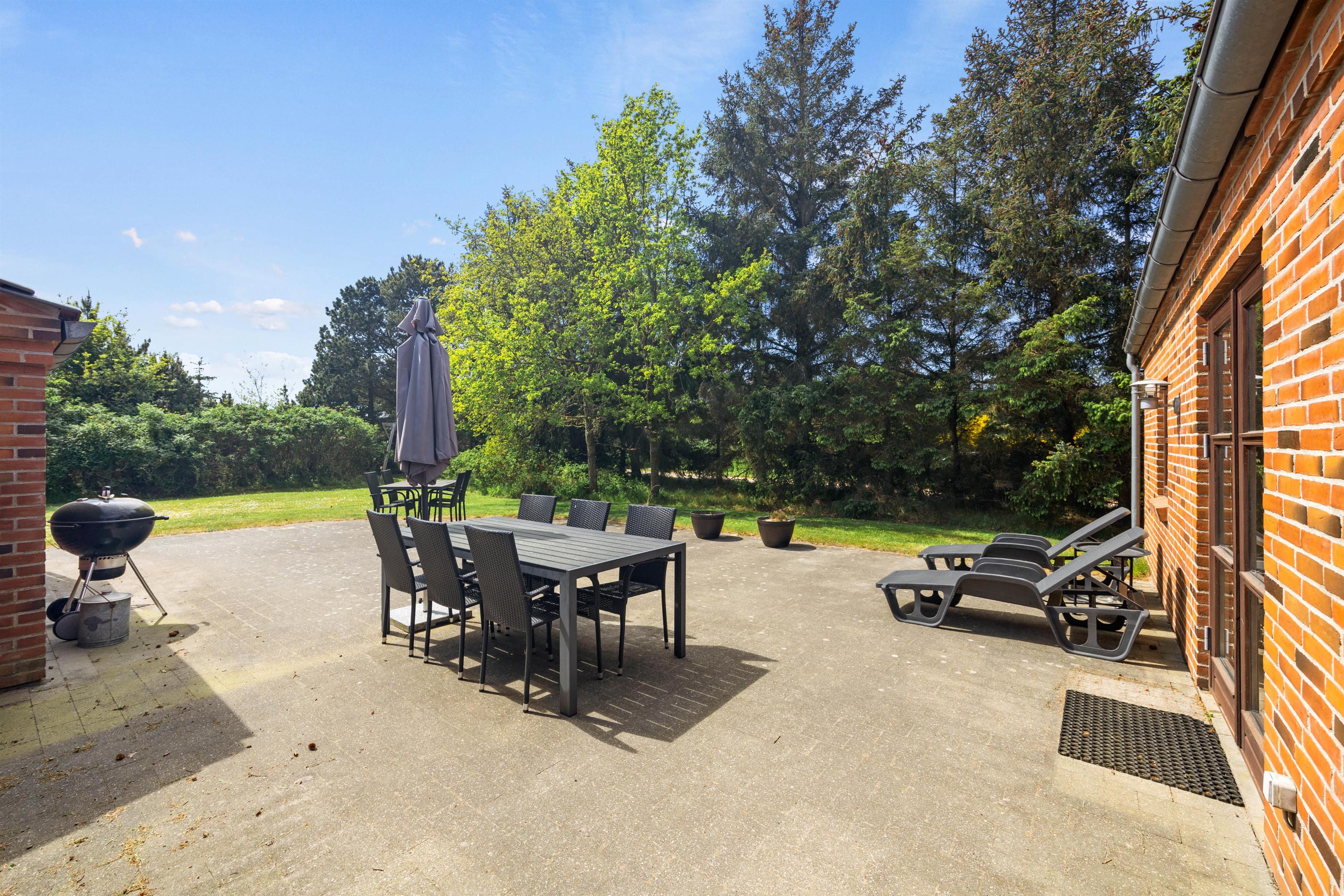 De dejlige solskinsdage kan nydes på den store flisebelagte terrasse. Børnene vil elske at lege og spille bold på den velholdte græsplæne, mens I slapper af i liggestolene, og til glæde for de yngste familiemedlemmer er der et gyngestativ på grunden.