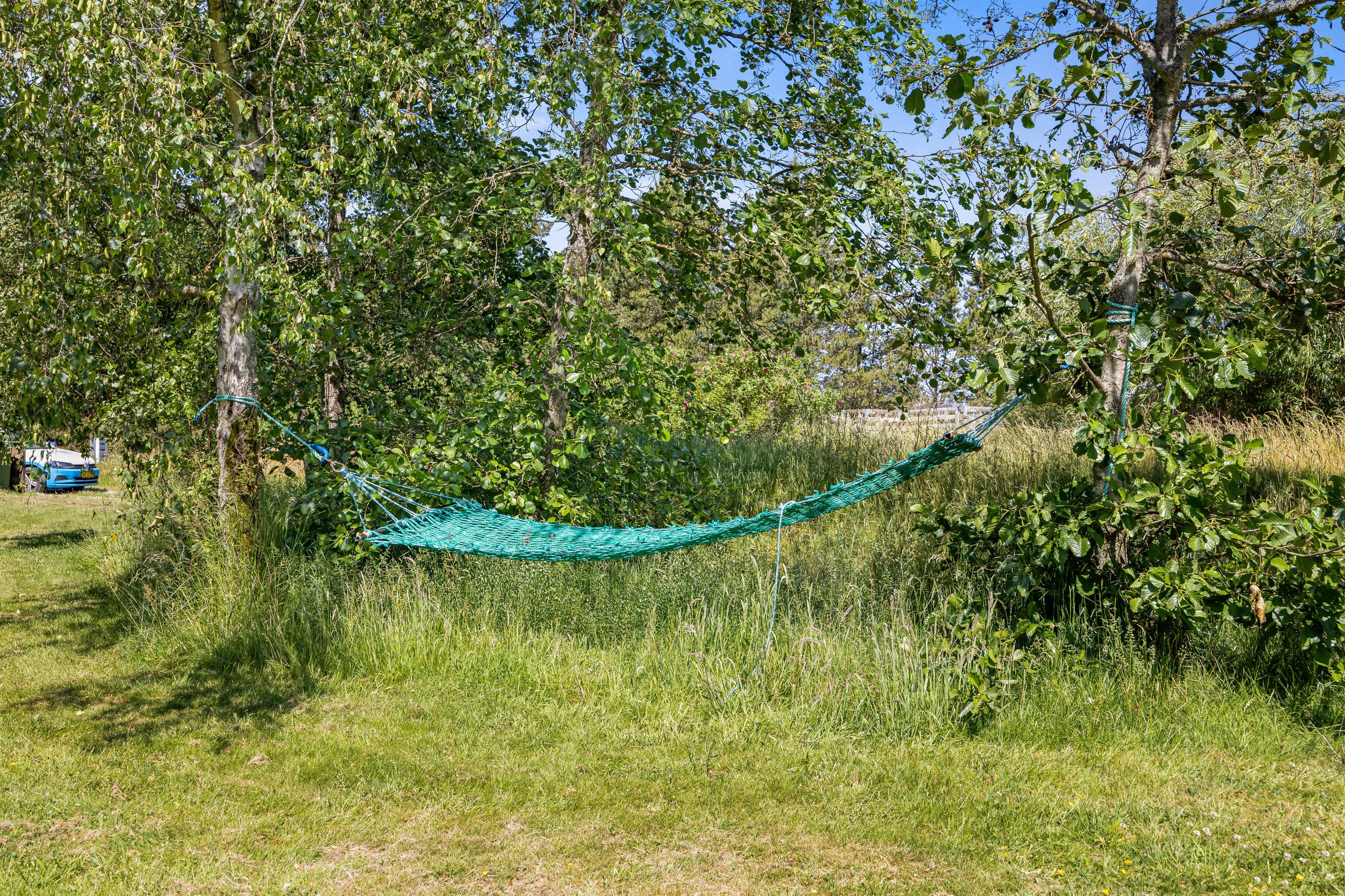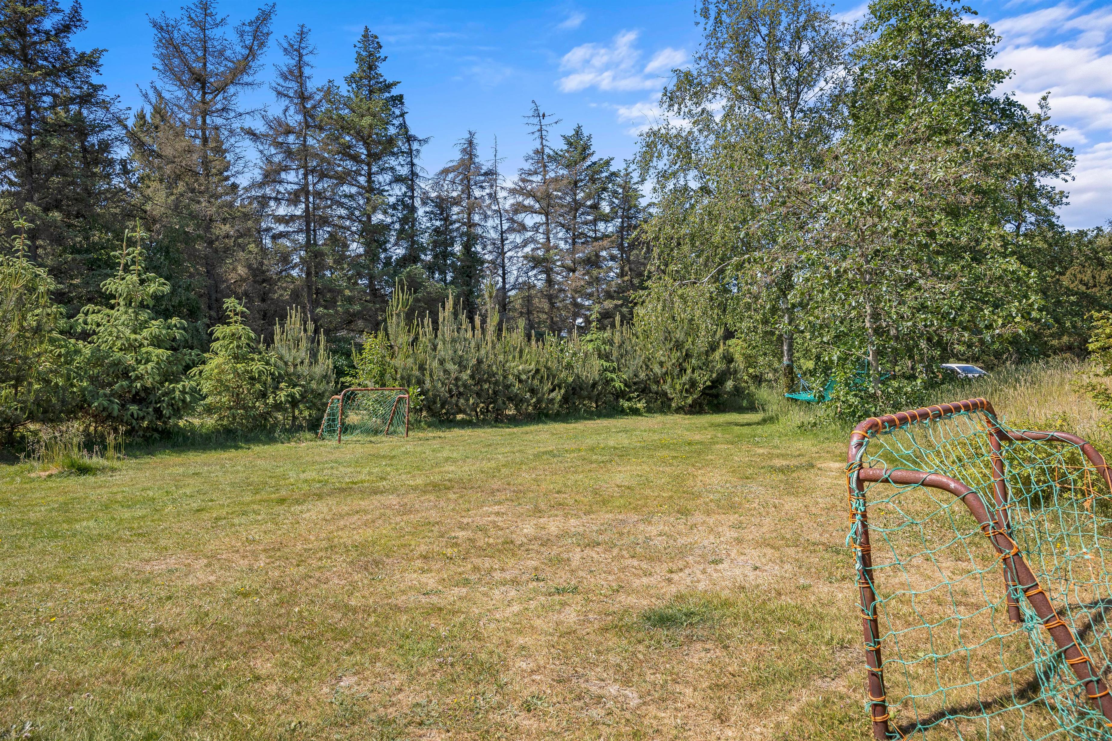 Sommerhuset ligger på en 3.738 kvadratmeter stor plænegrund, blot 1,6 kilometer fra stranden. På det store udeområde er der tænkt på både store og små, og derfor vil hele jeres ferieflok kunne nyde de varme og solrige feriedage sammen udendørs.
