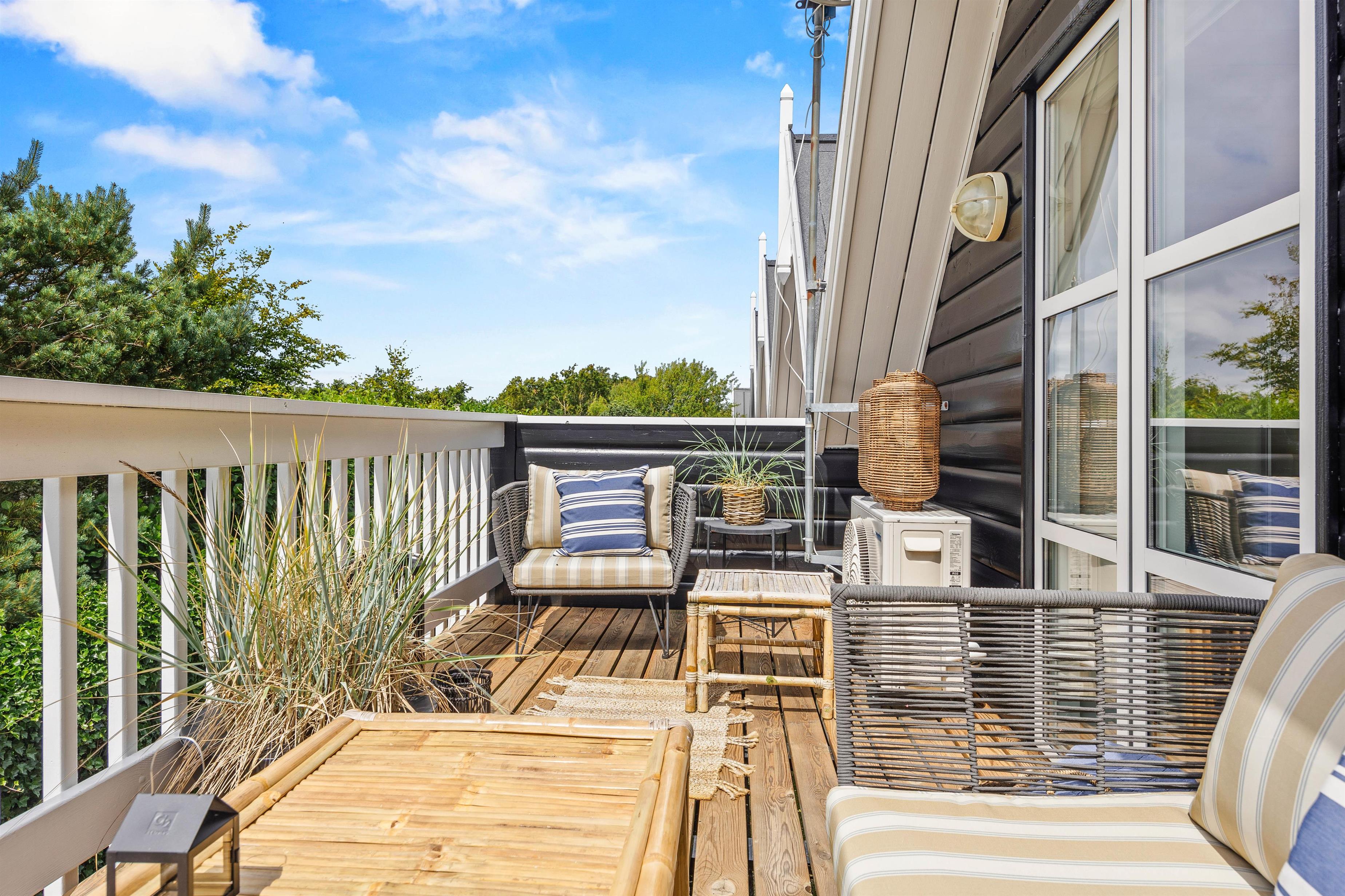 Soveværelserne er lyse med loft til kip og udstyret med særdeles gode senge. På den måde sikres en optimal ferie. Fra begge soveværelser er der mulighed for at komme udenfor - enten på en balkon eller på en terrasse, hvorfra en kop friskbrygget kaffe kan nydes.