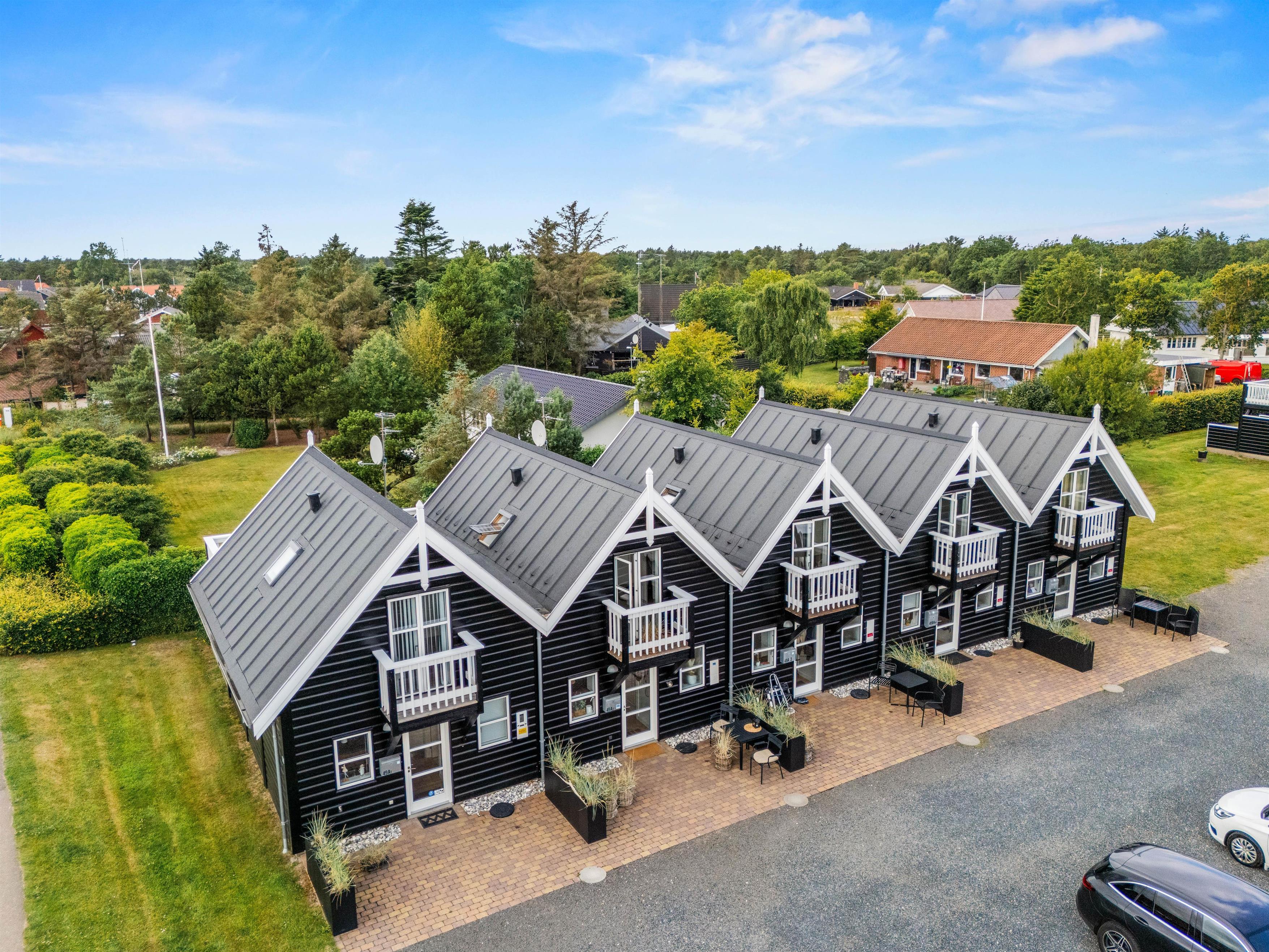 Ferielejligheden er udstyret med en energibesparende varmepumpe, som sørger for et behageligt indeklima hele året rundt, og til huset hører et gørnt fællesareal samt en parkeringsplads.