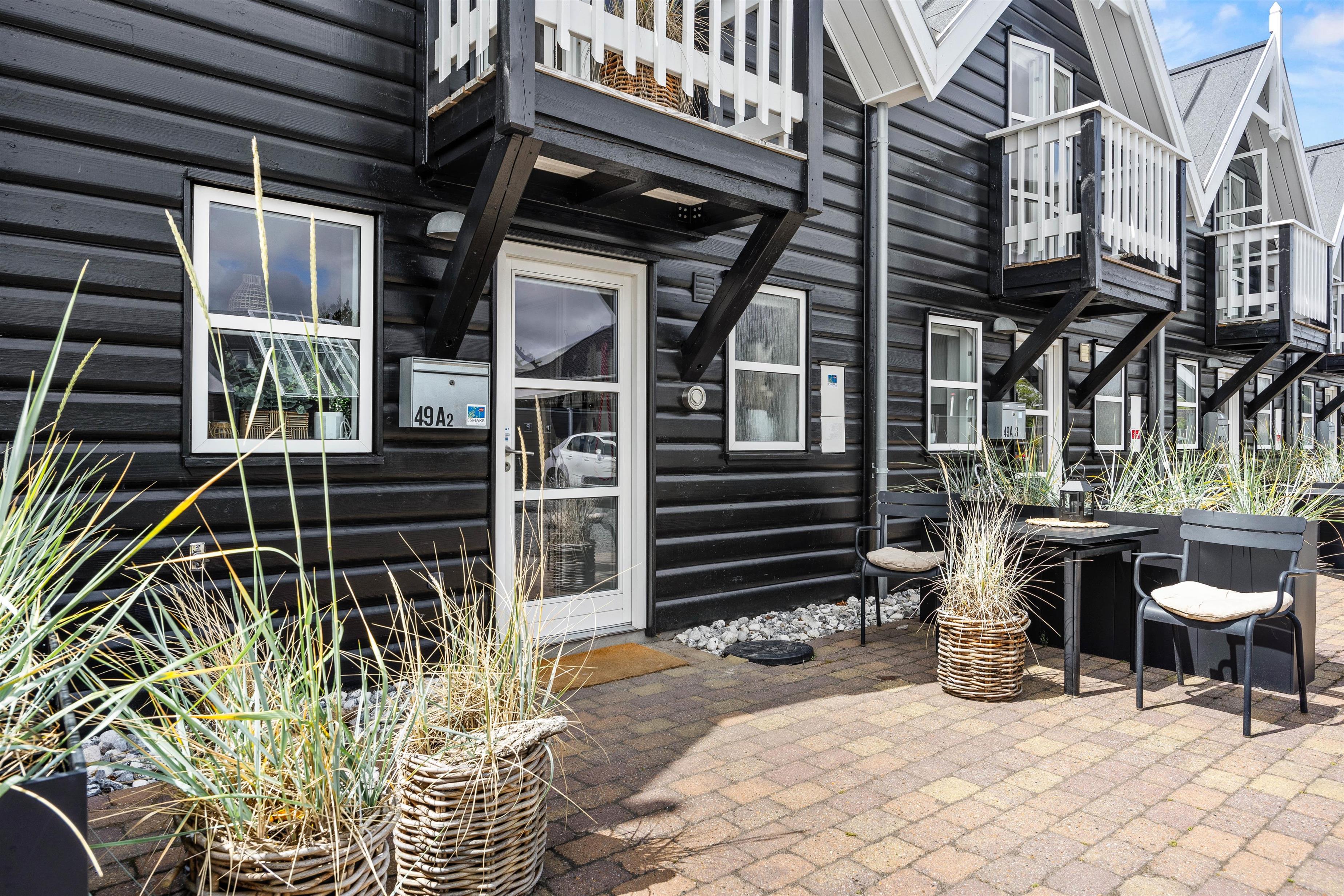 Ved ferielejlighedens indgang finder I ligeledes en lille siddekrog. Herfra kan morgensolen nydes, mens dagens udflugter tilrettelægges.