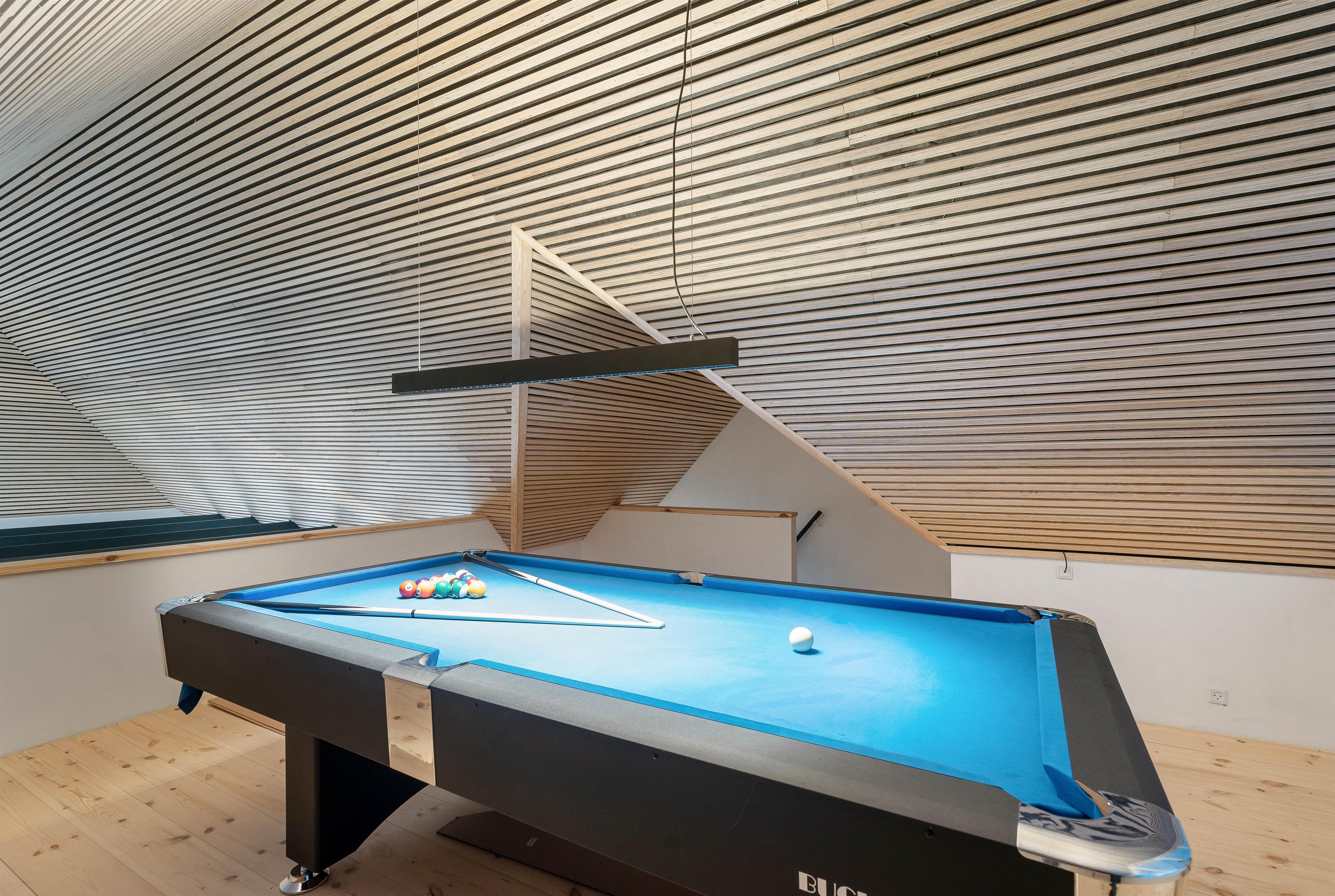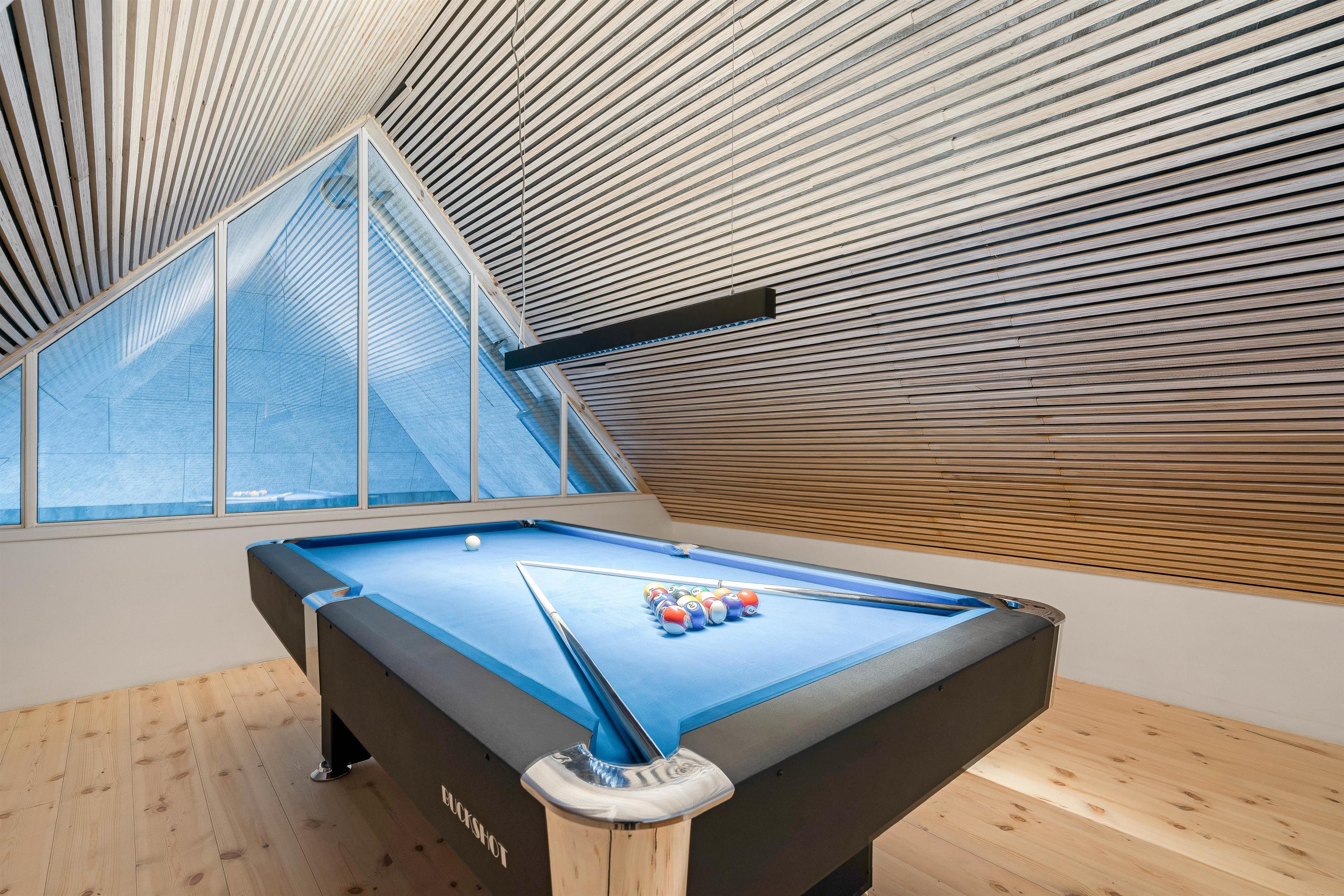 Udover swimmingpoolen er der også et aktivitetsrum i sommerhuset. Aktivitetsrummet er at finde på sommerhusets førstesal, og her har I mulighed for at spille billard. I aktivitetsrummet er der tæppe på gulvet for at dæmpe for støj.