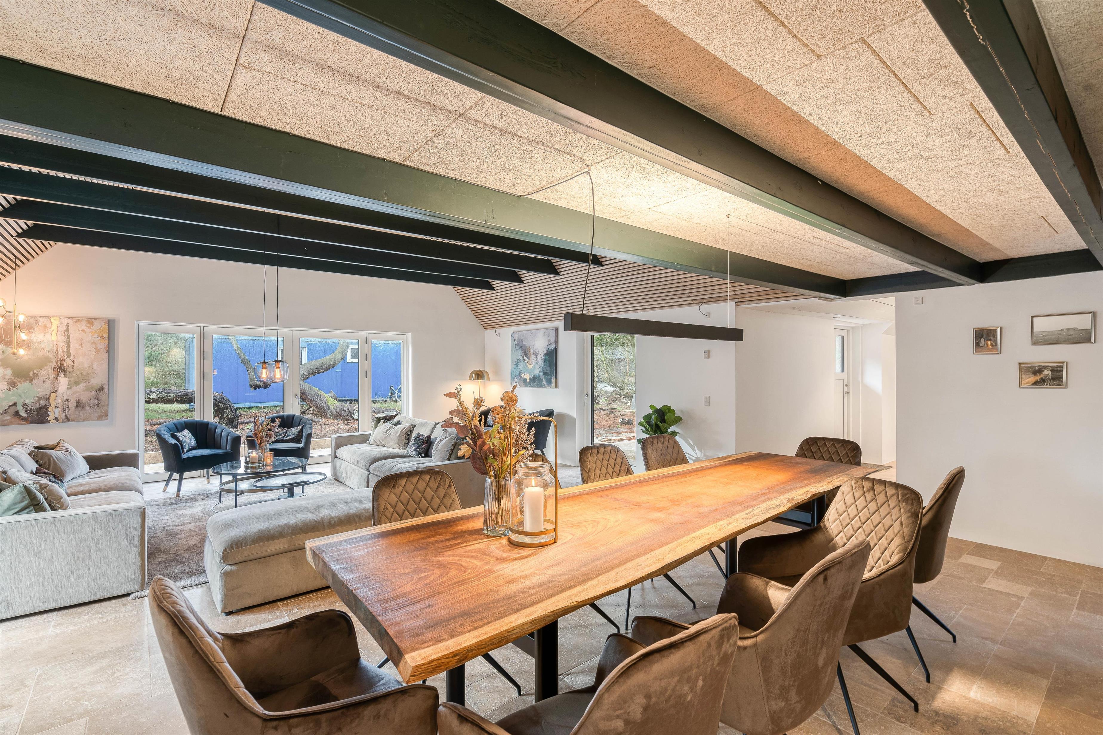 Indendørs byder sommerhuset også på flere højdepunkter. Først og fremmest er der den 22 kvadratmeter store og 1,55m dybe pool, som uden tvivl bliver et kæmpe hit blandt feriens vandhunde, der kan lege og bade i vandet i timevis. Er I mere til wellness, kan I læne jer tilbage i sommerhusets dampbad, og få løsnet godt op i krop og sjæl.