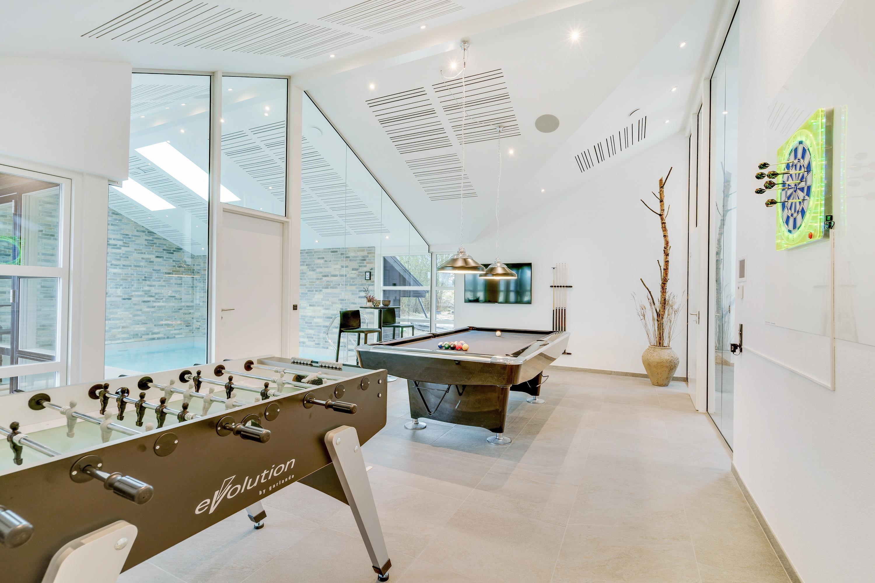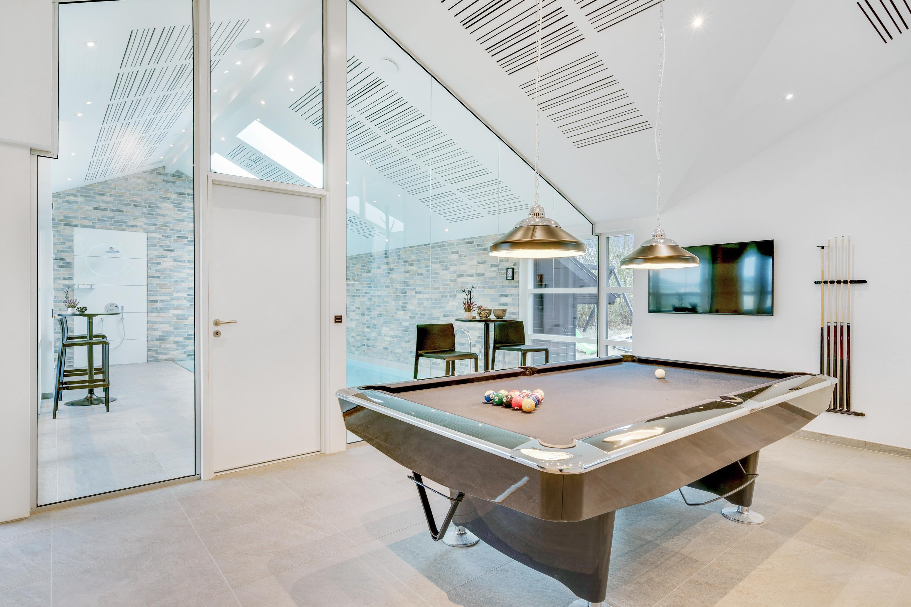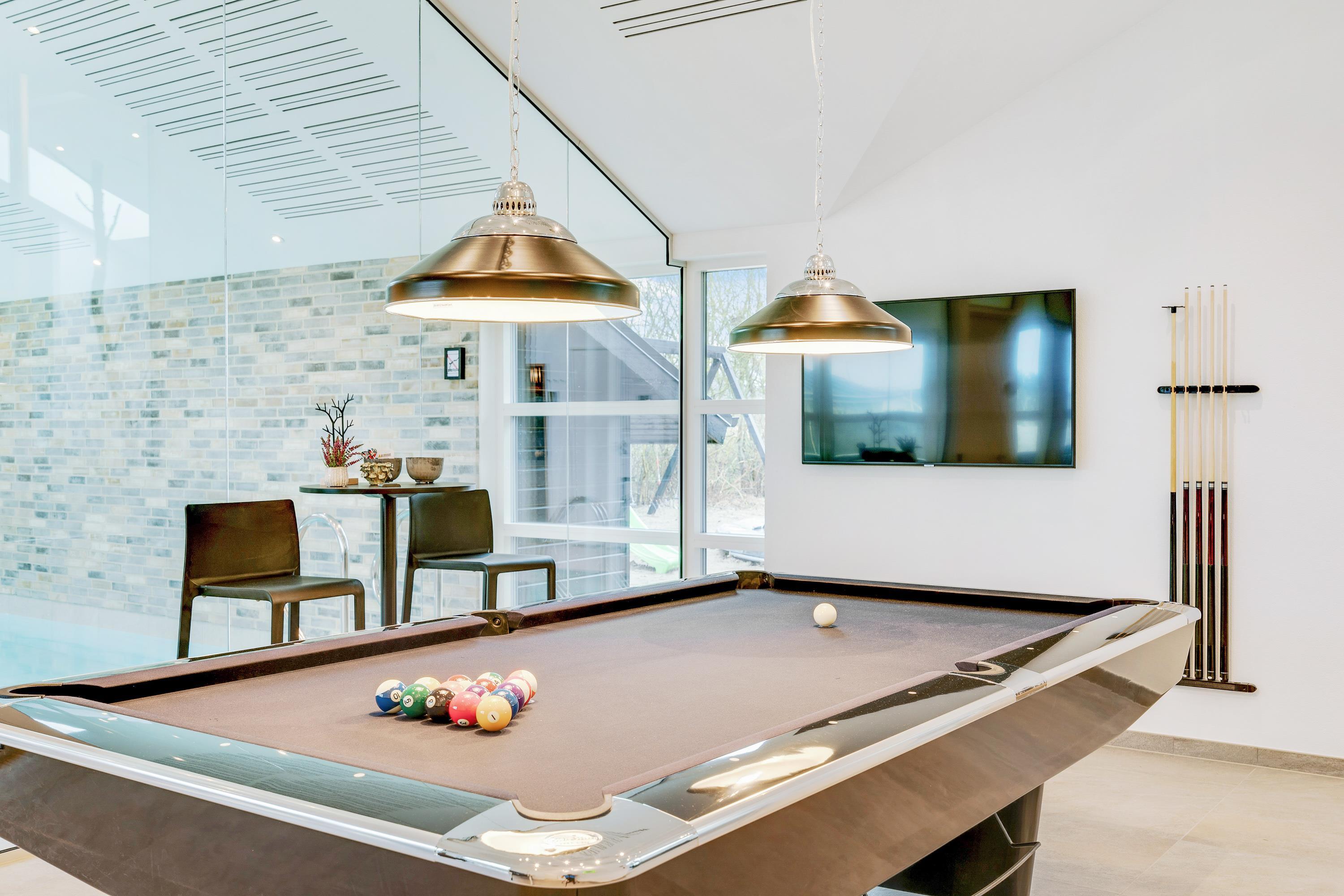 Sommerhusets swimmingpool og aktivitetsrummet med pool-bord, bordfodbold og elektronisk dart med mobil-app giver de bedste forudsætninger for masser af fælles sjov og hygge, og når der skal slappes af, behøver I bare at tænde op i sauna for absolut wellness-feeling. Specielt hyggeligt er det, at tænde op i den udendørs spa og ligge i det varme boblende vand og tælle stjernerne på nattehimlen.