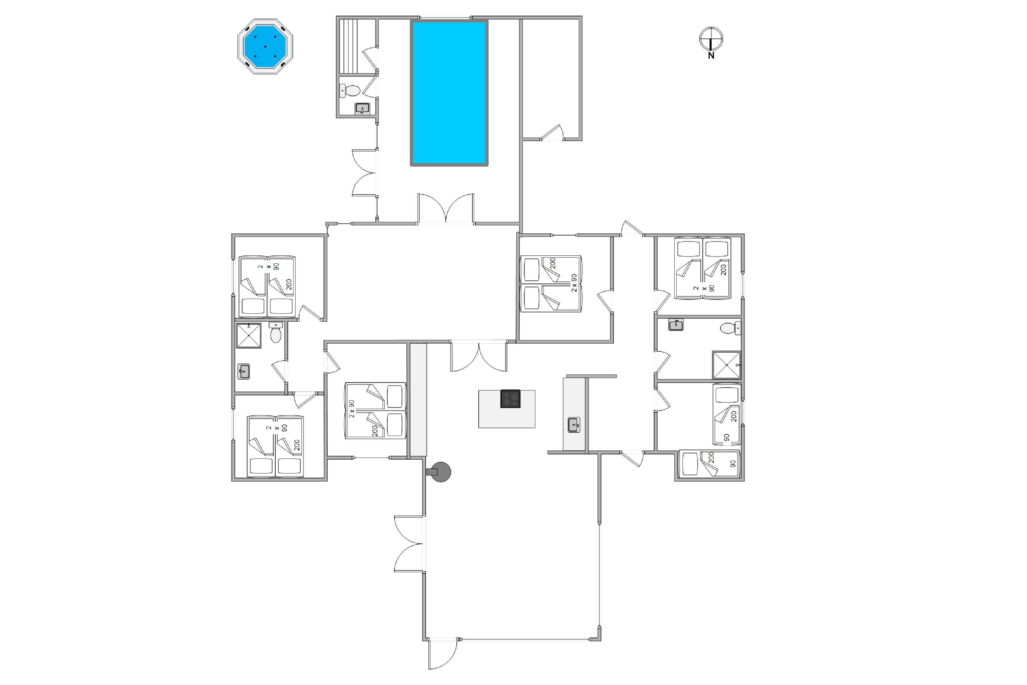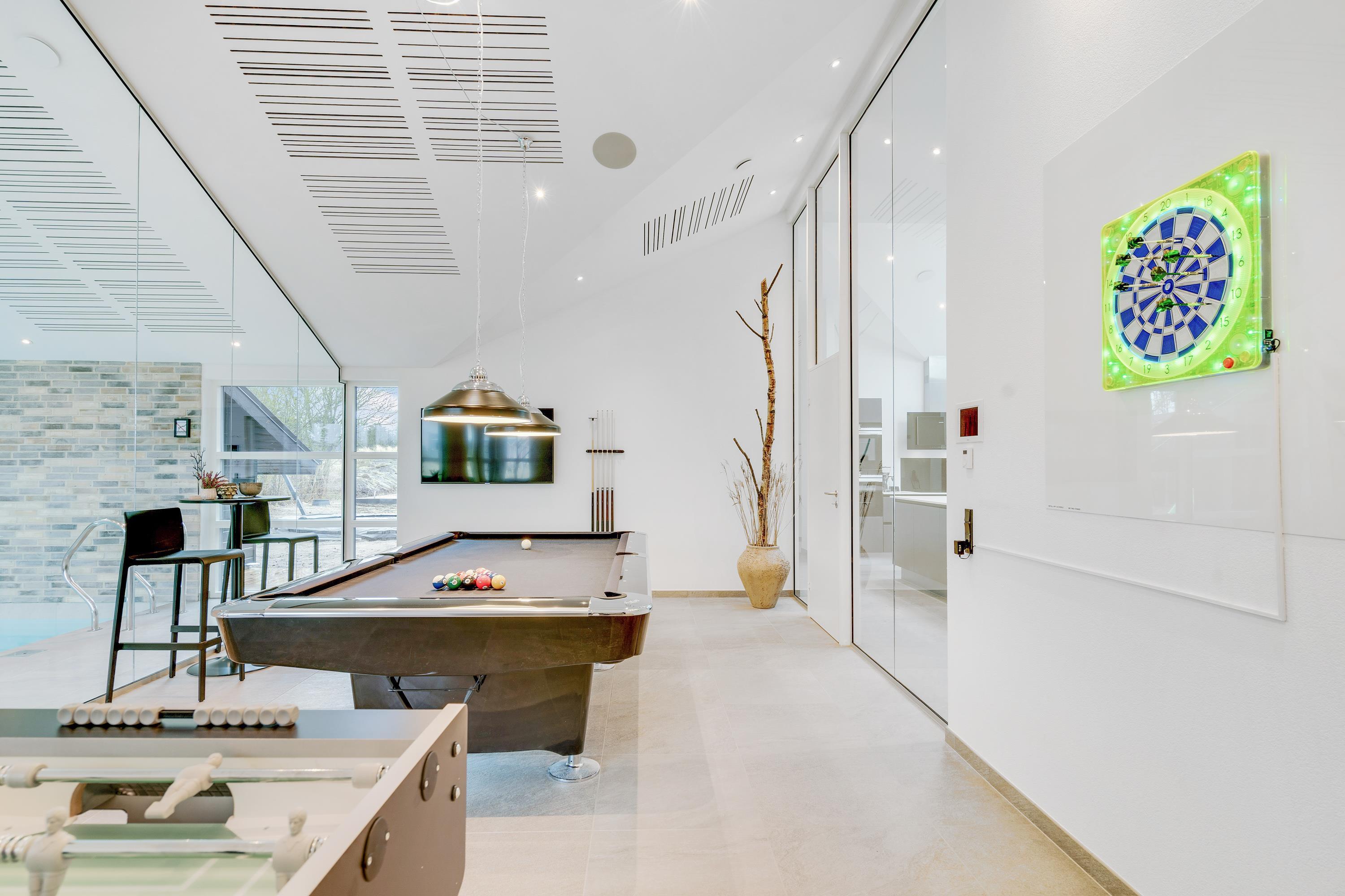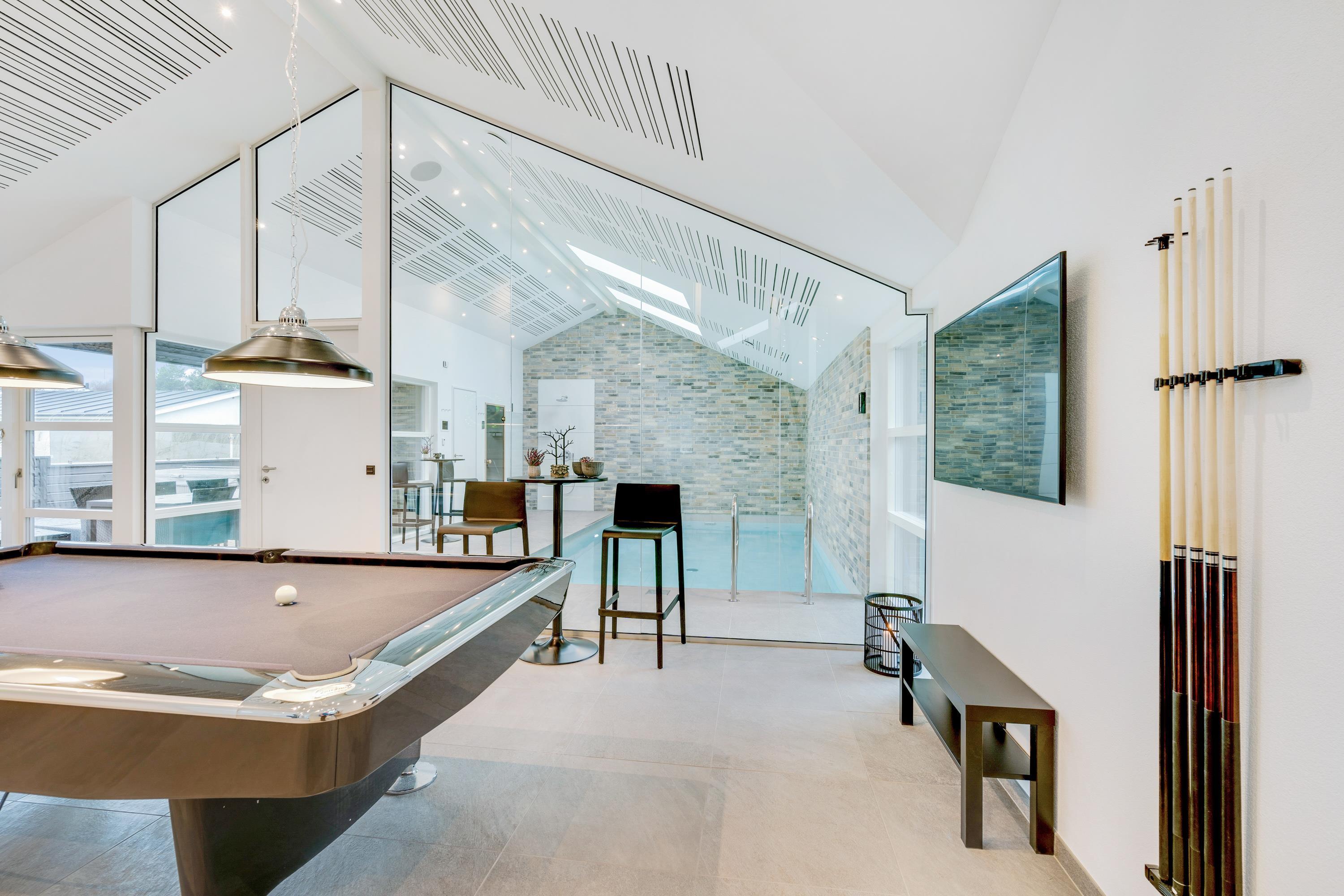 Sommerhusets swimmingpool og aktivitetsrummet med pool-bord, bordfodbold og elektronisk dart med mobil-app giver de bedste forudsætninger for masser af fælles sjov og hygge, og når der skal slappes af, behøver I bare at tænde op i sauna for absolut wellness-feeling. Specielt hyggeligt er det, at tænde op i den udendørs spa og ligge i det varme boblende vand og tælle stjernerne på nattehimlen.