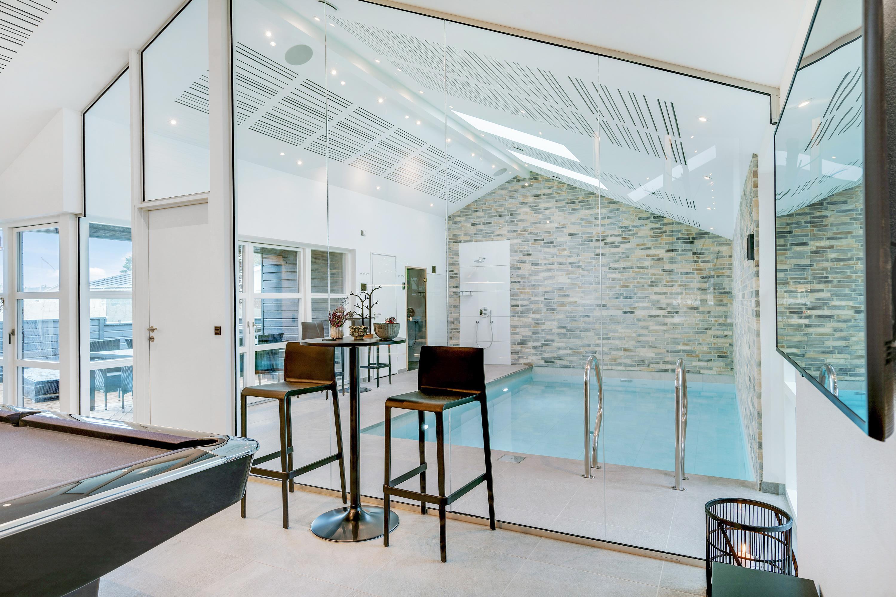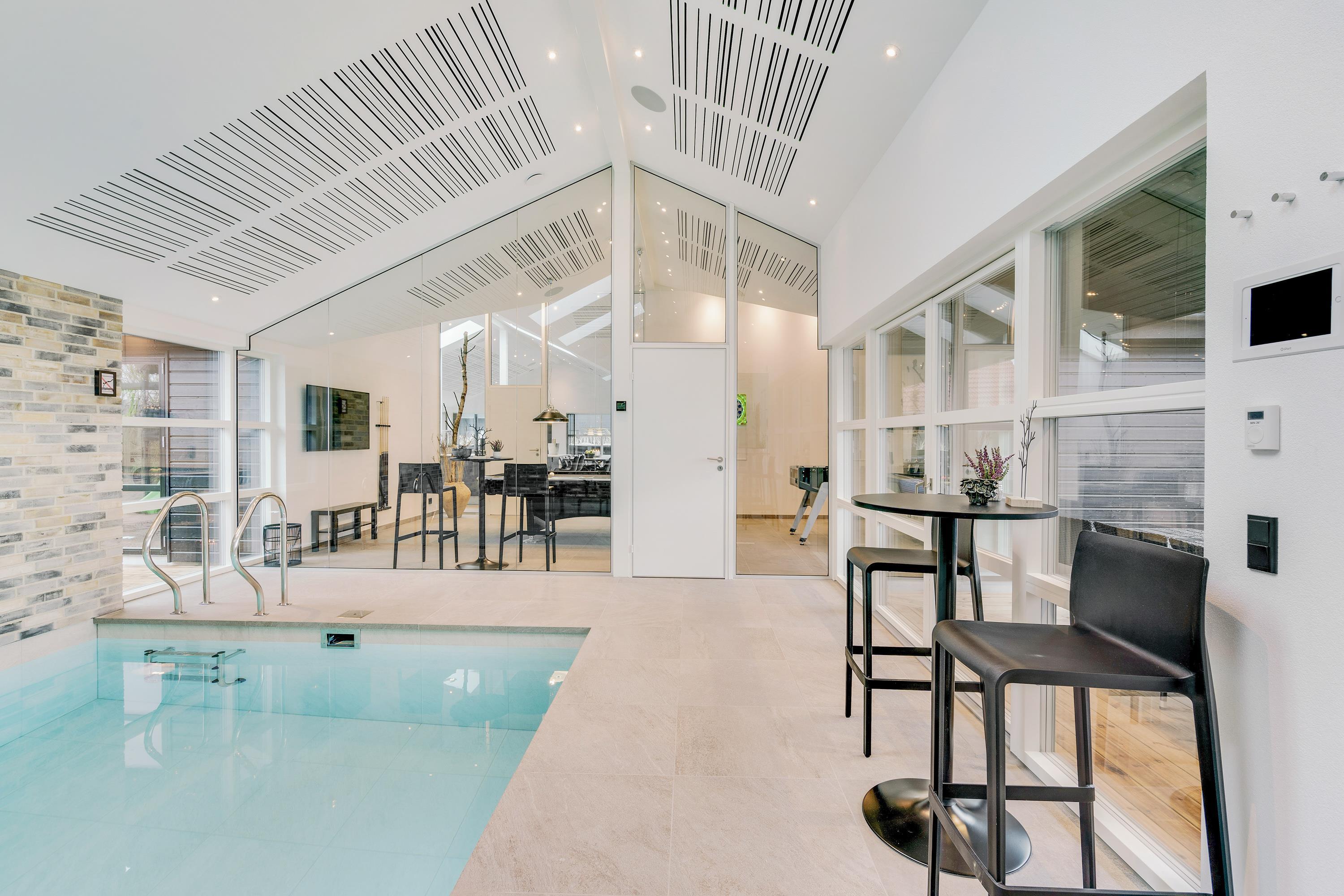 Stilfuldt poolhus med 3 badeværelser, sauna og udespa