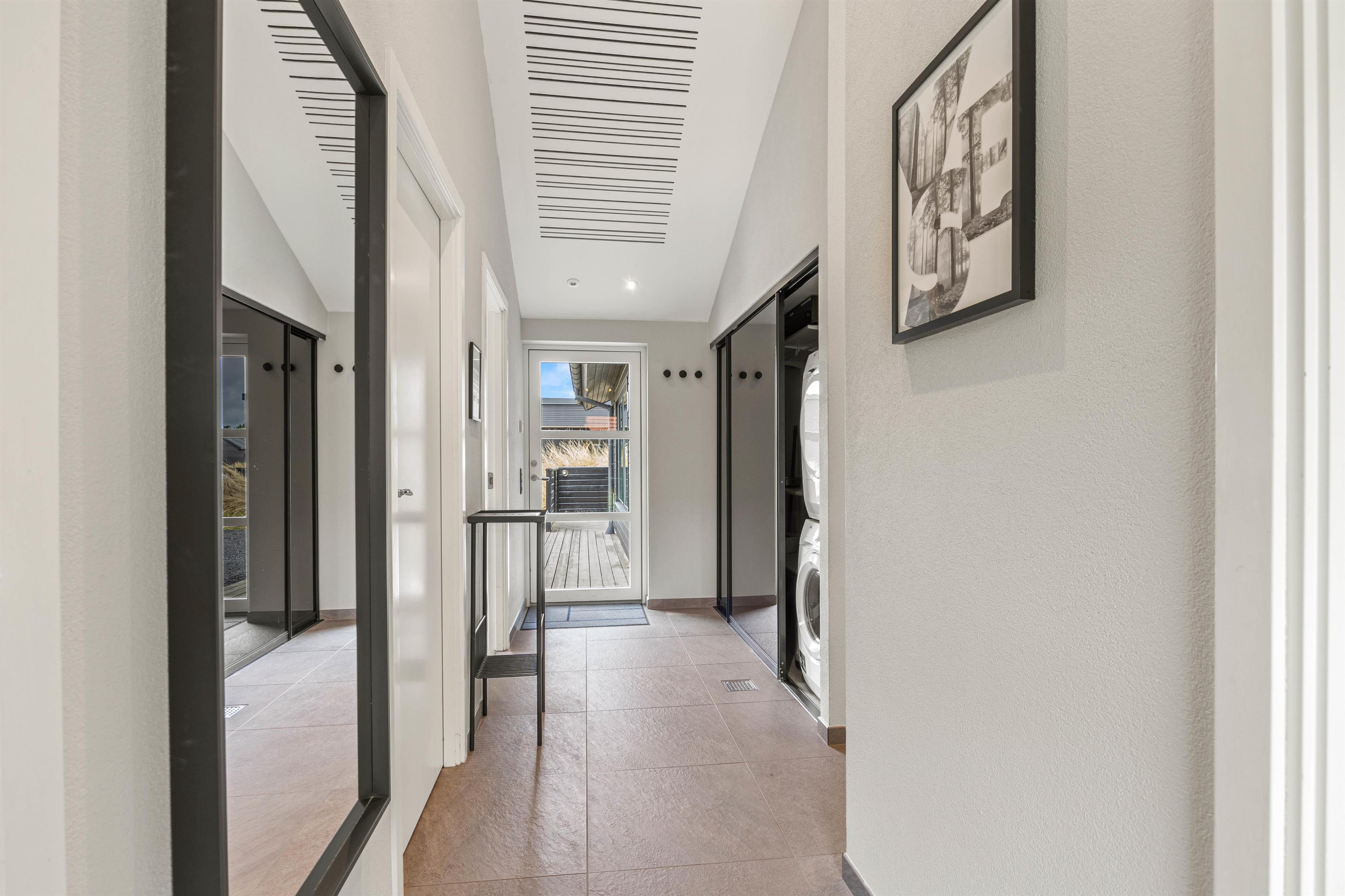 Med op til 12 personer kan I fra dette stilfulde feriehus tage på oplevelse i det yderste vest. Her står der 6 soveværelser og 3 moderne badeværelser til jeres rådighed, og det egner sig således perfekt både til den store familie eller til ferien med 6 par. Det moderne hus er indrettet med gode senge, Smart Tv i alle rum og et multirum lydsystem i fællesområderne.