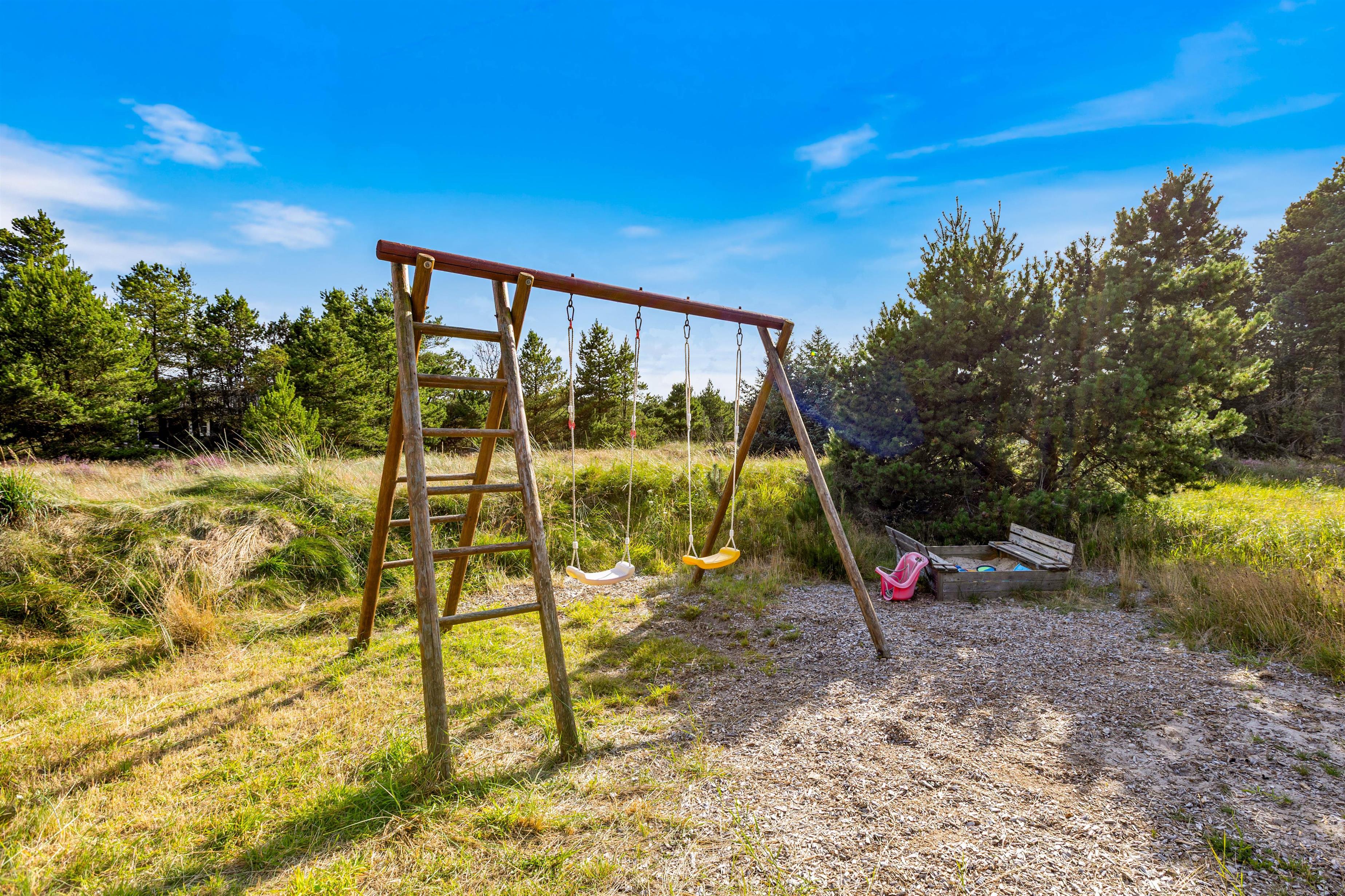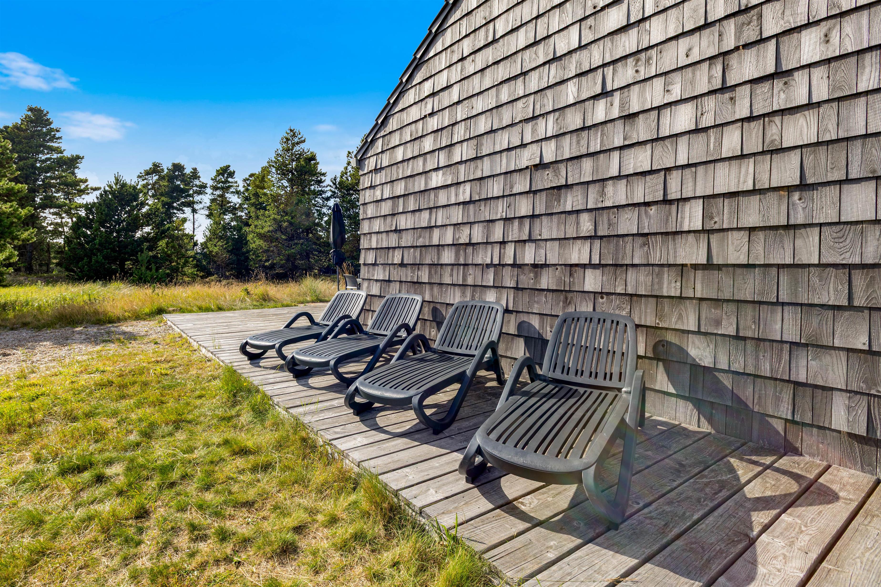 Rundt om sommerhuset går en stor, åben terrasse med overdækket del på begge sider. Når solen dukker op, er der altså ingen grund til ikke at rykke feriehyggen udenfor, eftersom der både er sørget for havemøbler, liggestole og grill til jer. Trækker det op til blæst og regn, kan I altid finde ly og læ under overdækningen.