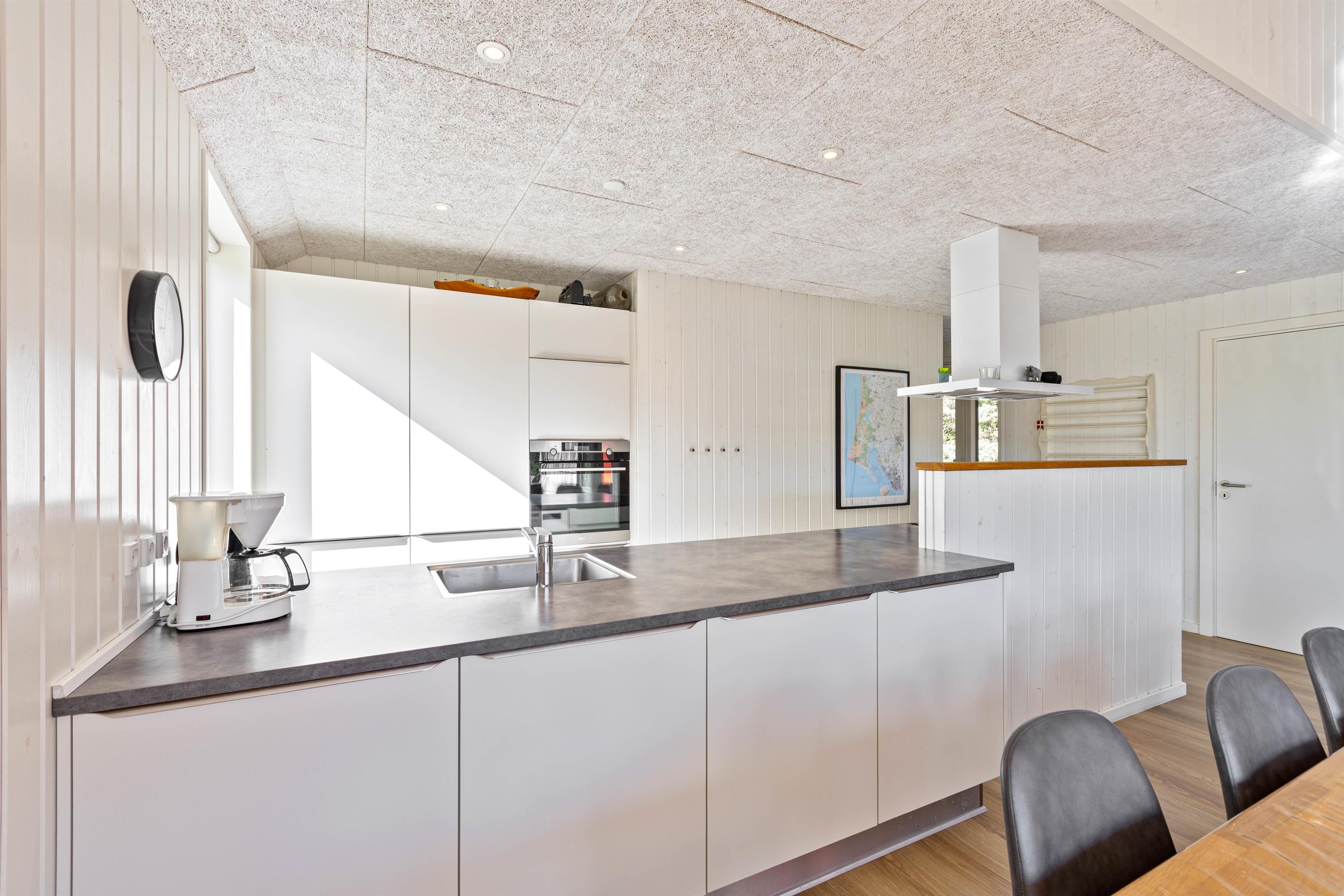 Dette flotte feriehus byder på 156 rummelige kvadratmeter og er et oplagt valg til den næste familieferie. Indretningen er stilfuld og moderne og opfylder selv den mest kræsne feriegæsts drømme, og blandt de praktiske faciliteter finder I både en opvaskemaskine, vaskemaskine og tørretumbler.