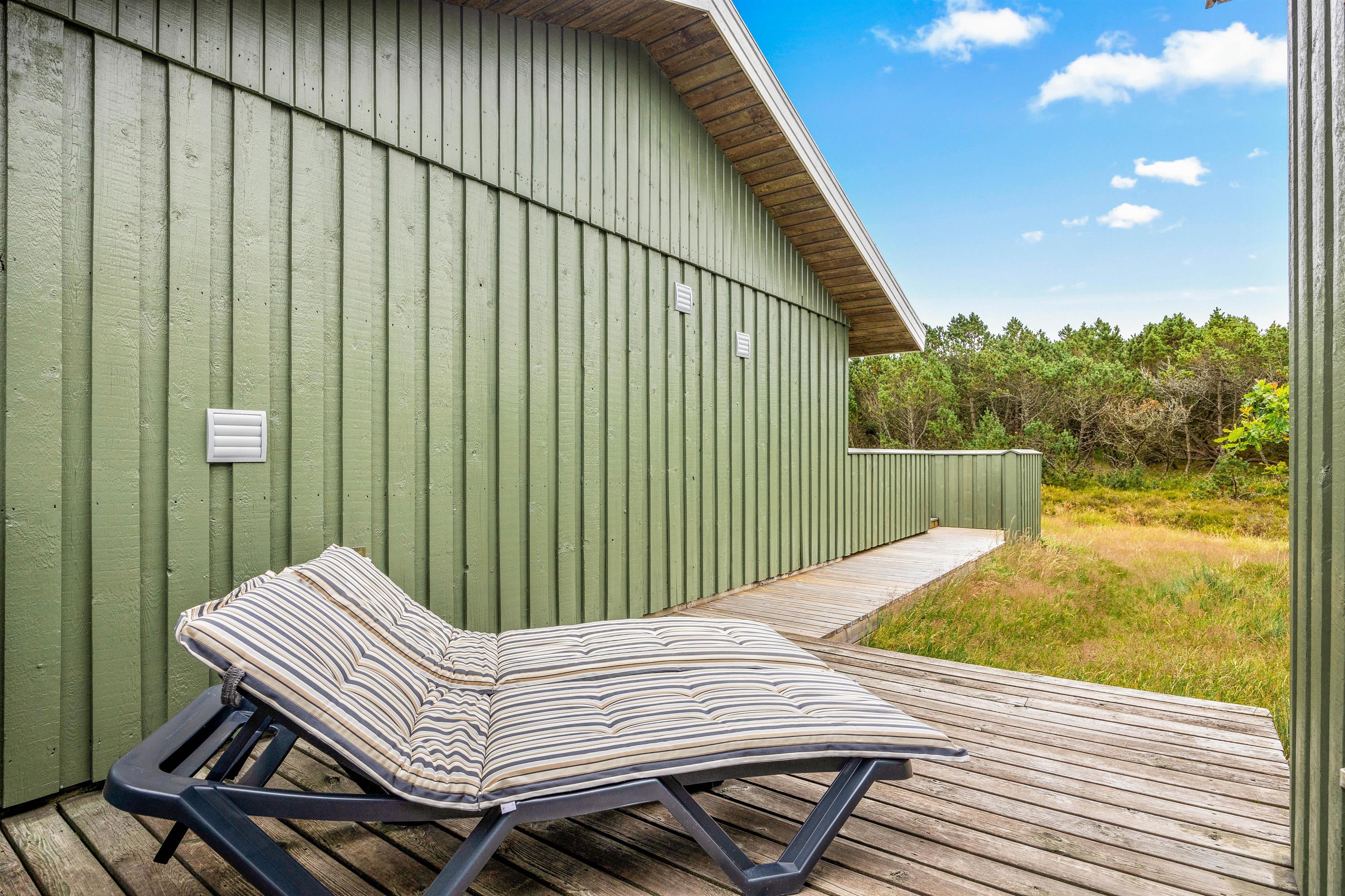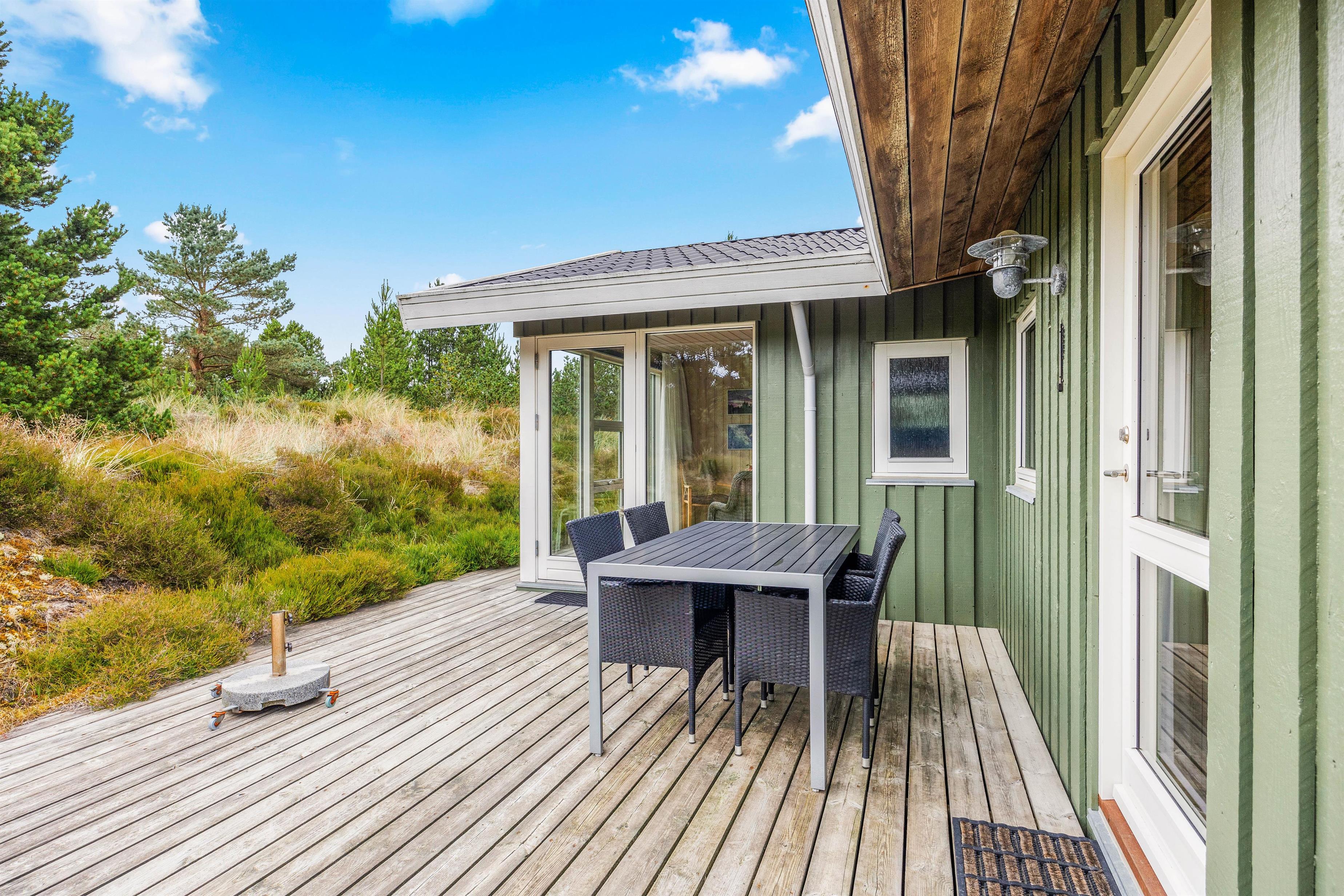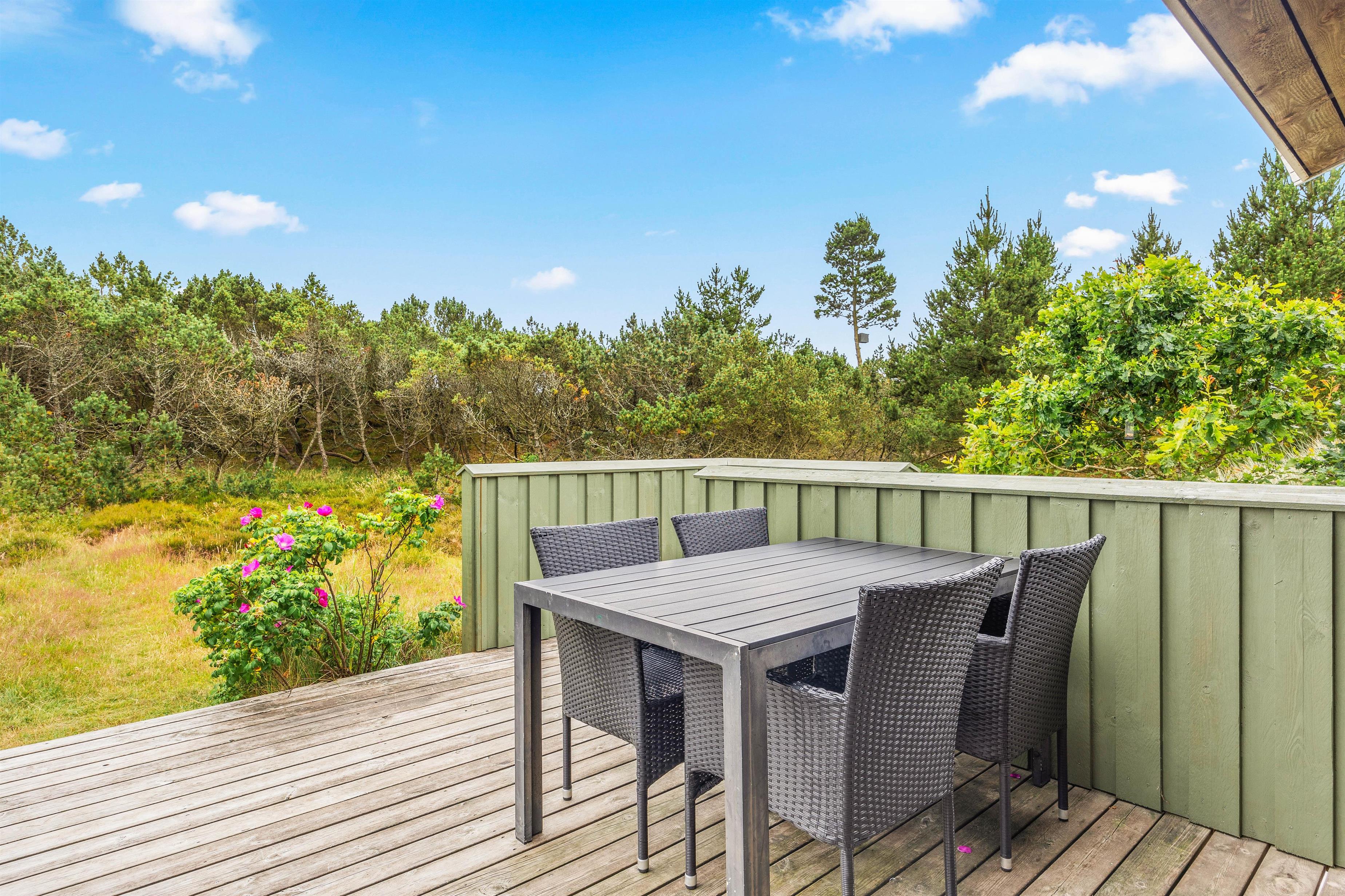 Sommerhusets delvist overdækkede terrasse kommer med garanti til at danne ramme om en masse uforglemmelige feriestunder. Med beliggenhed på en mere end 3.000 kvadratmeter stor naturgrund kan I helt ugeneret slikke sol på terrassen eller spise en hyggelig grillmiddag rundt om havebordet.