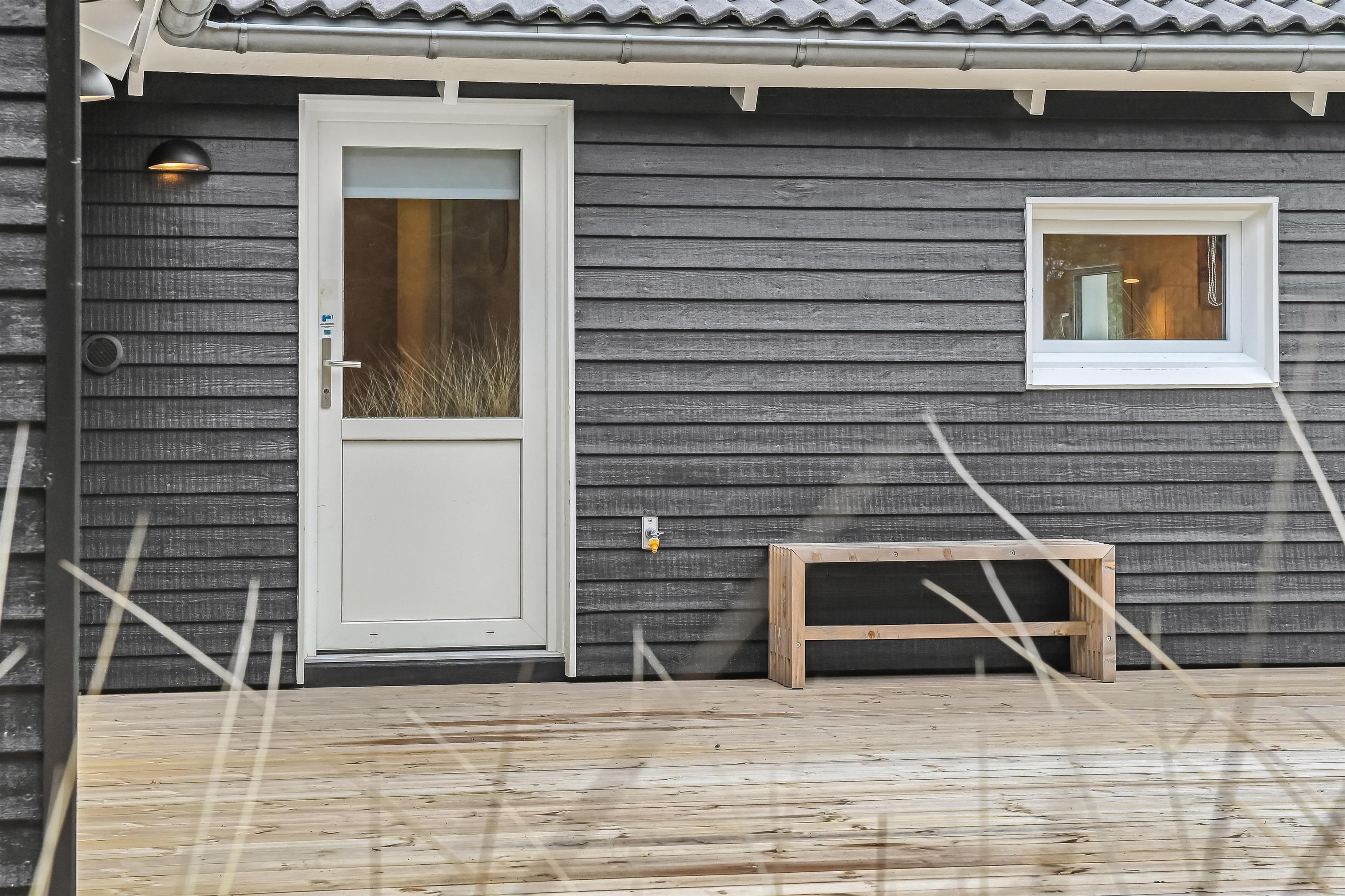 Fra sommerhuset kan I træde ud på den skønne, åbne terrasse, som er det oplagte sted at tilbringe feriens solrige dage. Her kan I finde jer en god plads i solen, hvor I kan sætte jer til rette i havemøbler og liggestole og bare nyde ferien.